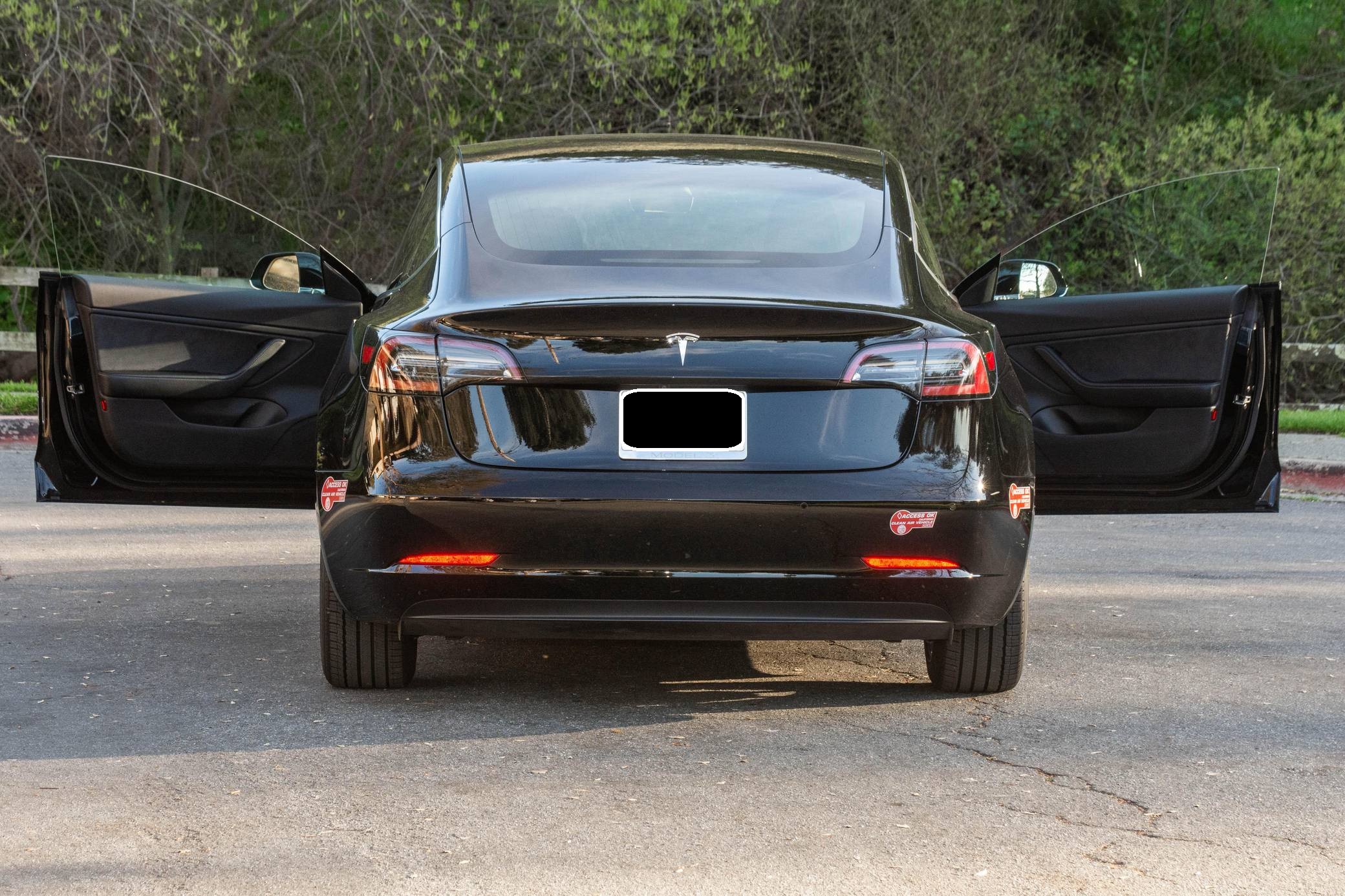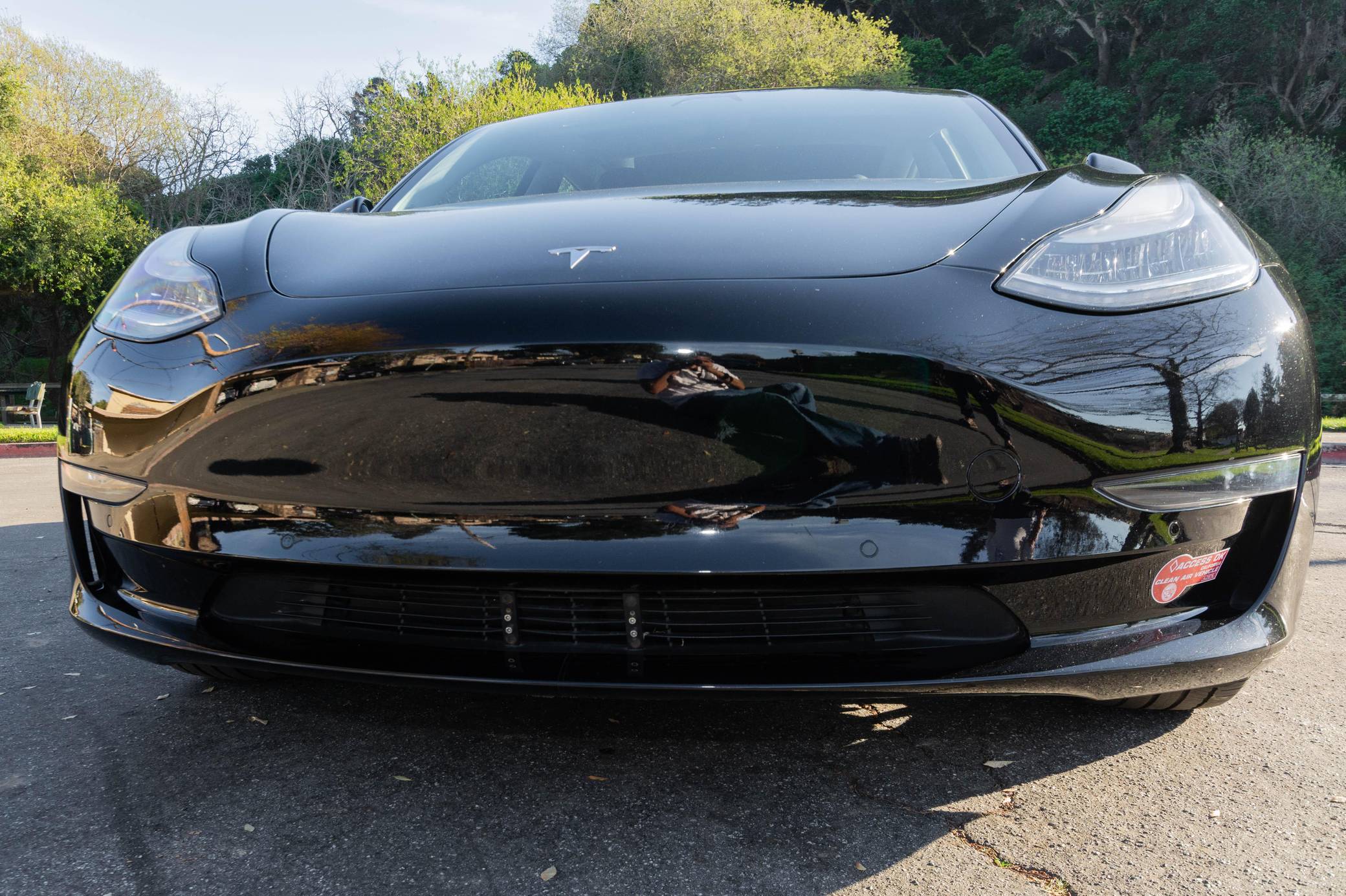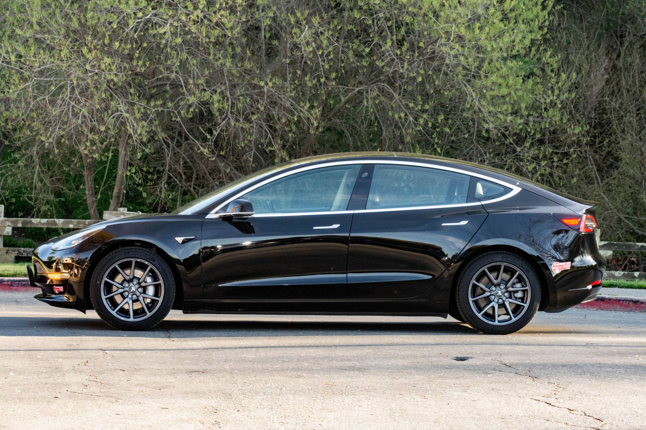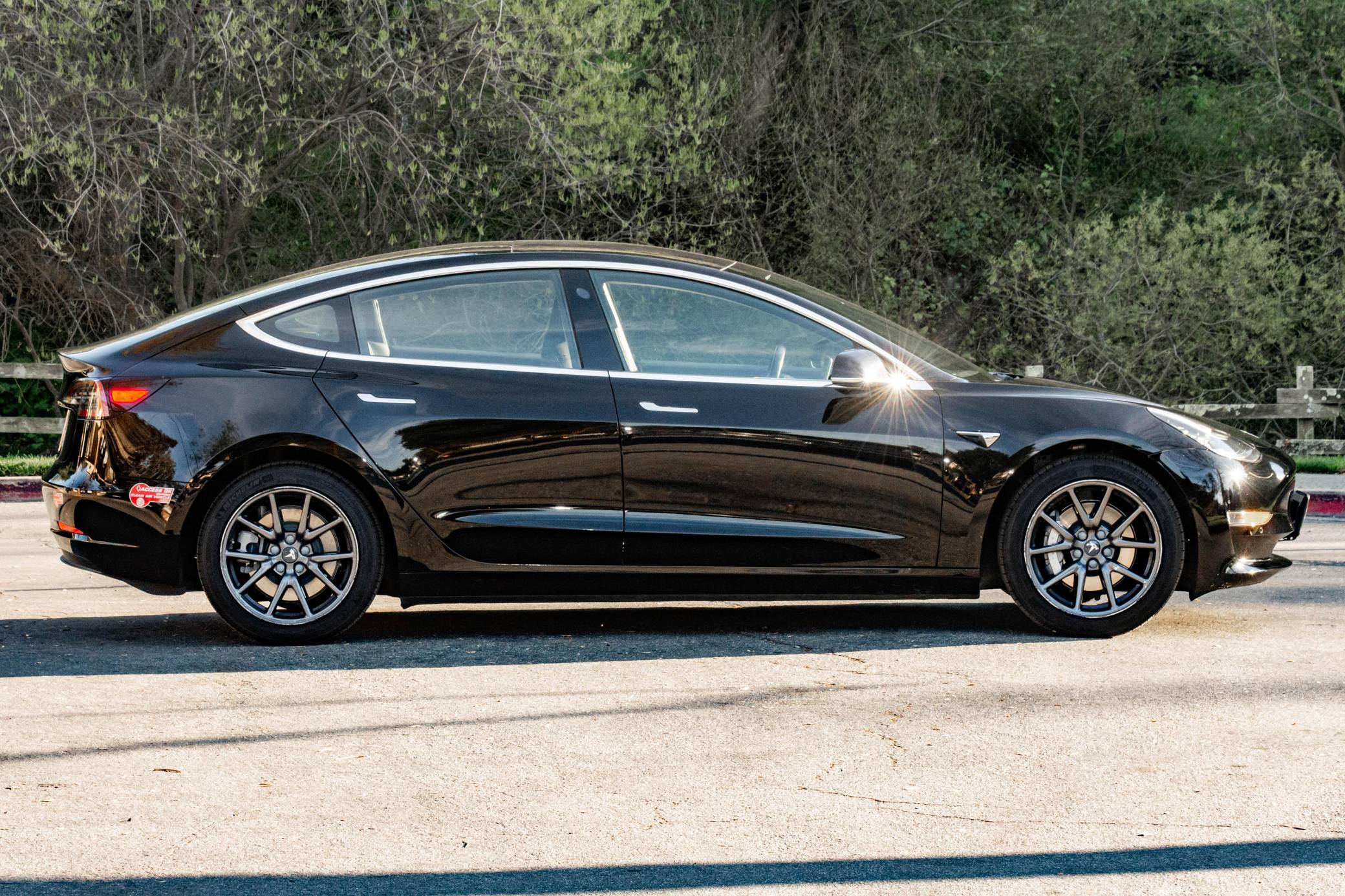 2018 Tesla Model 3 Long Range, finished in Solid Black with a black interior. It's equipped with 18-inch wheels, a Premium interior, power-adjustable front seats, a 15-inch touchscreen, and Autopilot technology, among other features. SunTek clear paint protection film on the front end and an Ottosteer magnetic front license plate bracket are the only modifications reported by the seller. At launch, the Model 3 was presented as a premium EV with a usable driving range and respectable performance, all at a reasonably attainable price. It was Tesla's entry-level car. It's still available today, and it has gone through several evolutions (including many software updates) since its introduction. Power comes from an electric motor, rated at 271 horsepower and 307 lb-ft of torque according to third-party estimates. Connected to a 75-kWh lithium-ion battery pack, it zaps the rear wheels into motion. When new, the Long Range version had an EPA-estimated driving range of up to 310 miles.
