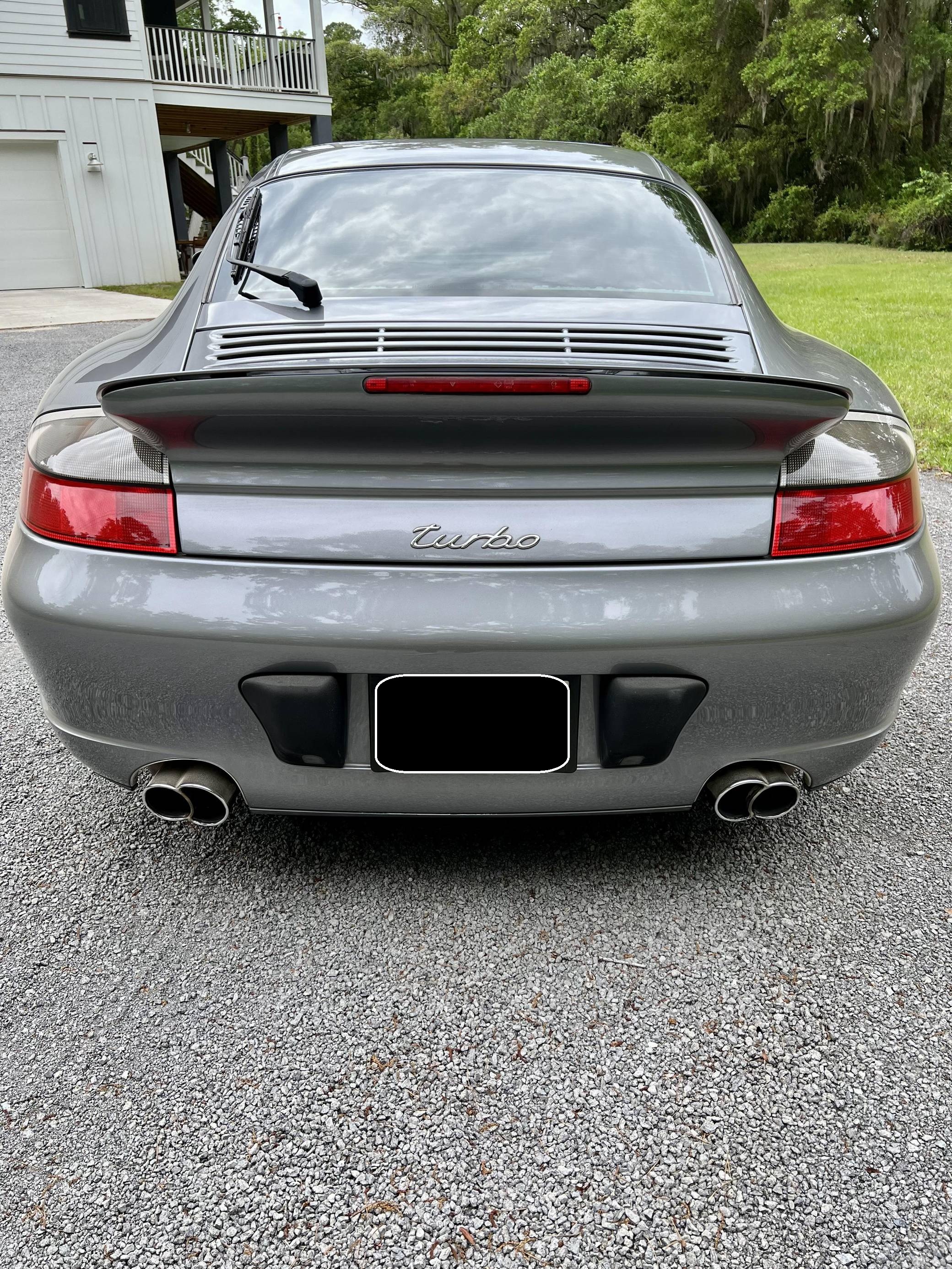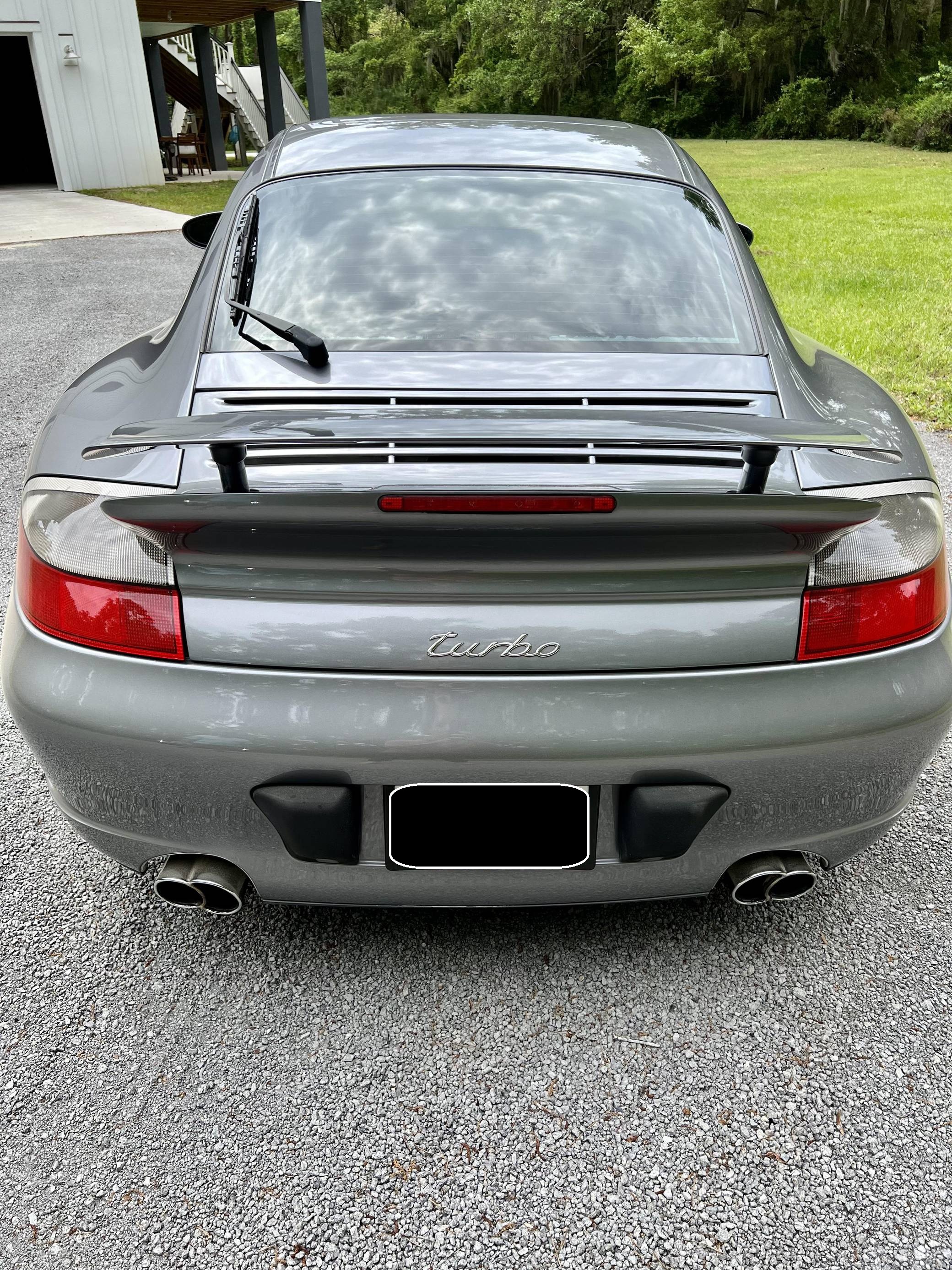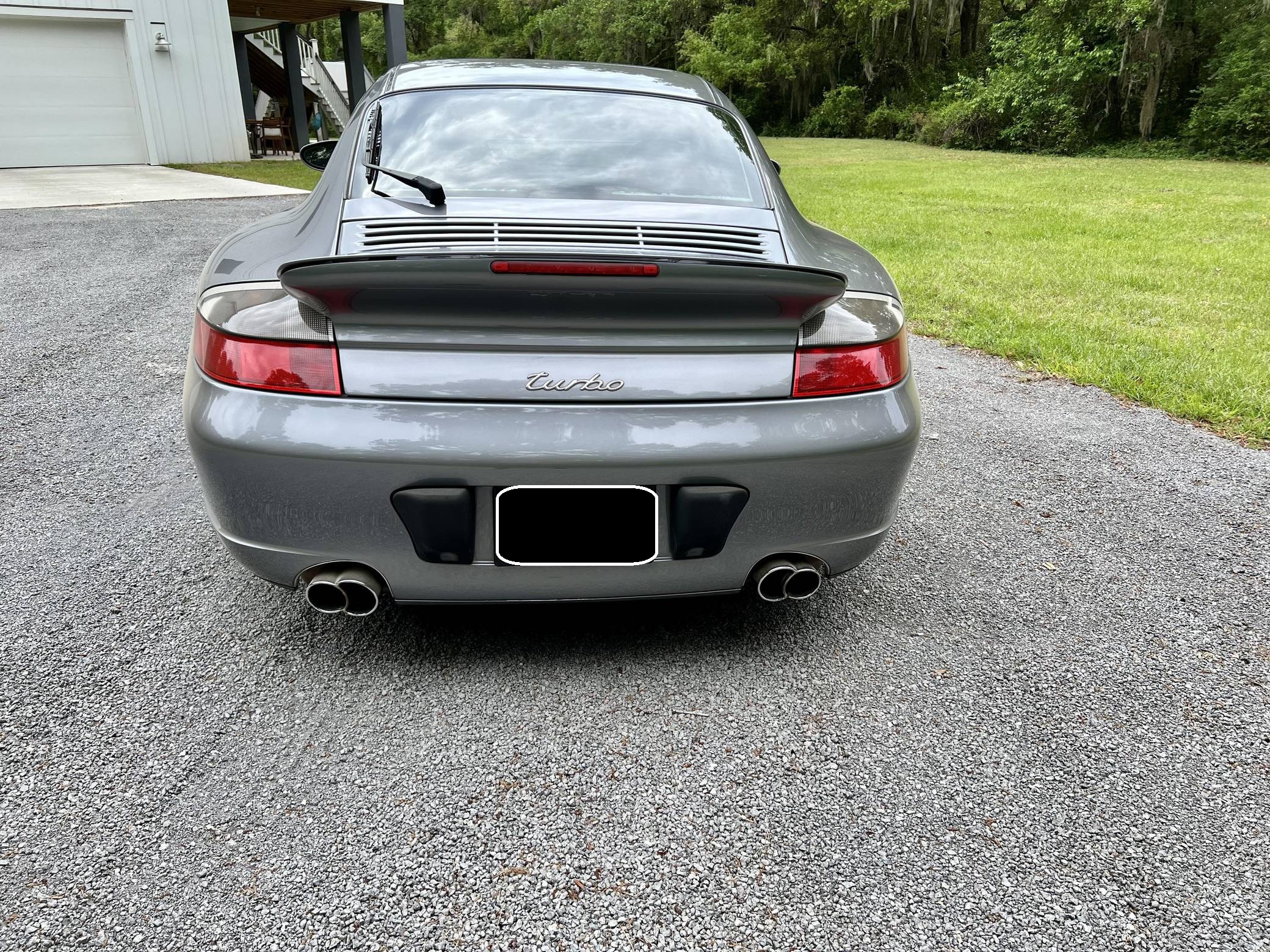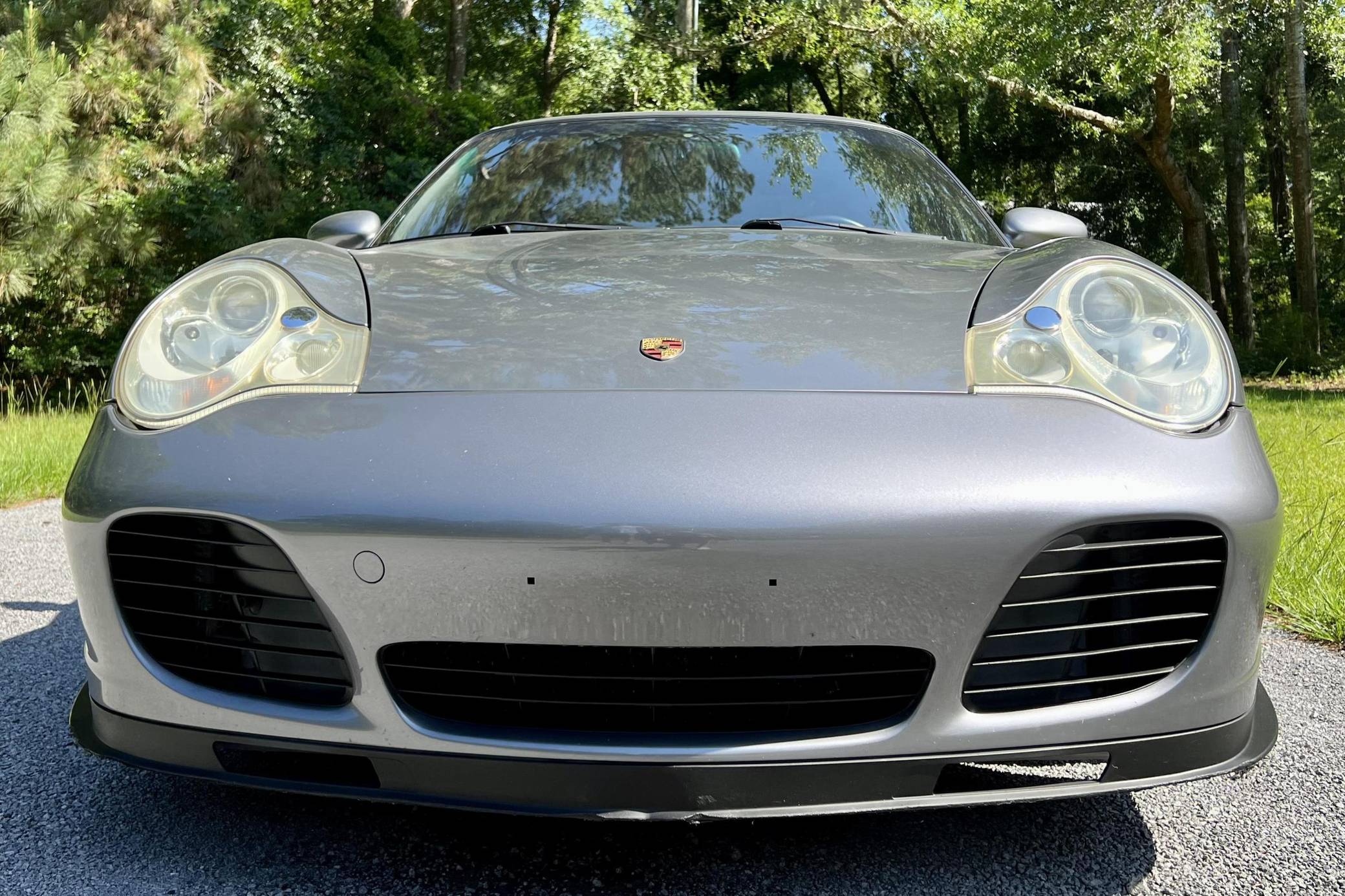 2003 Porsche 911 Turbo coupe, finished in Seal Grey Metallic with a black interior. This 911 Turbo features the desirable 6-speed manual transmission. Factory equipment includes 18-inch Turbo II hollow-spoke alloy wheels, a retractable rear spoiler, bi-xenon headlights, a rear window wiper, a full leather interior, and a Bose sound system. Modifications are limited to clear side marker lights and tinted windows. The fifth-generation 911 was introduced for the 1999 model year, with the long-awaited Turbo variant landing in America for 2001. The "996" was the first 911 to be completely redesigned from its predecessors. While its water-cooled engine and distinctive headlights irked some Porsche purists, the 996 is appreciated by enthusiasts for providing an analog driving experience in a smaller, lighter package than the 911s that followed it. Power comes from a turbocharged 3. 6-liter flat-6 "Mezger" engine, rated at 415 horsepower and 413 lb-ft of torque. Output is sent to all four wheels via a 6-speed manual transmission.