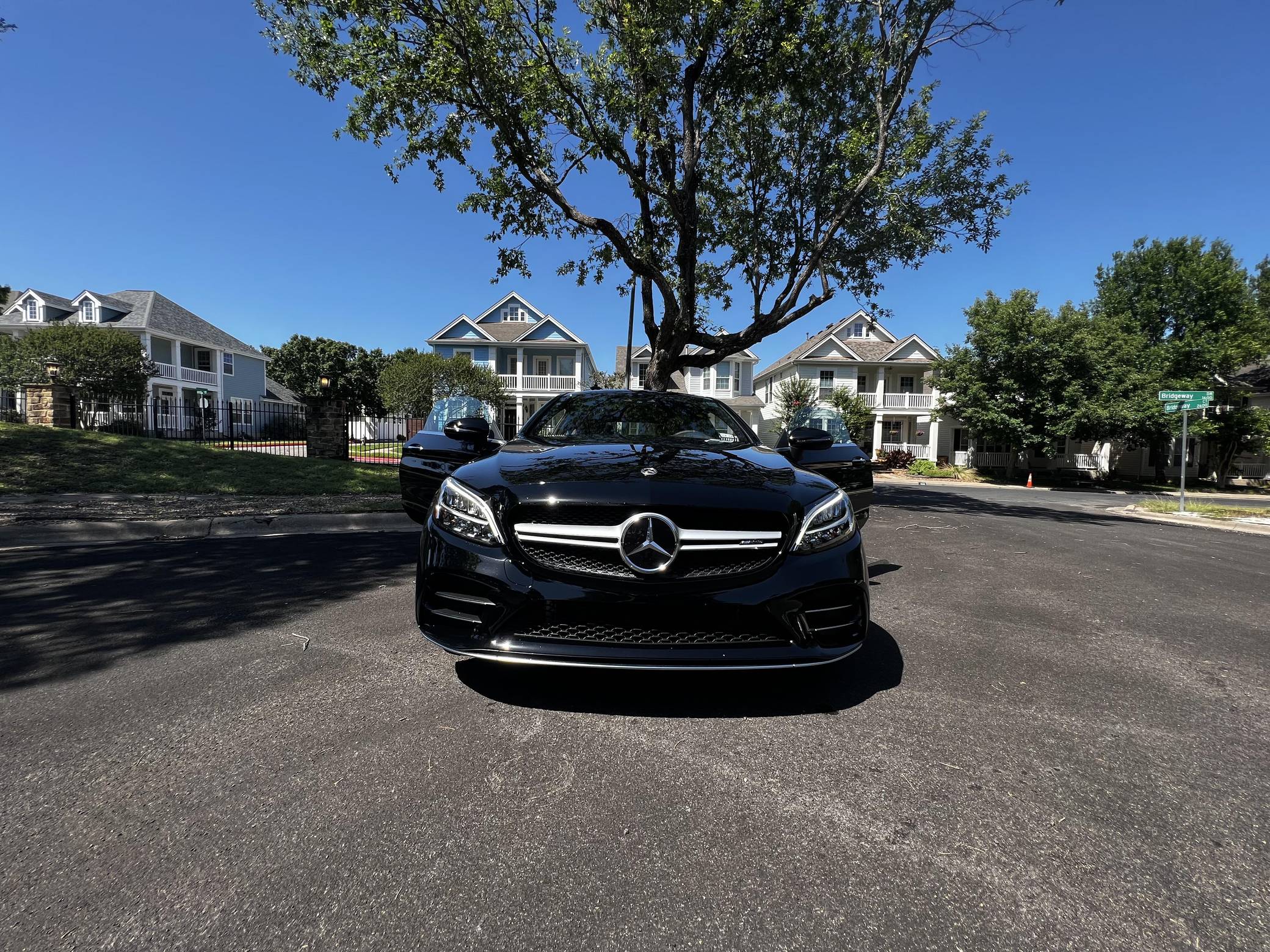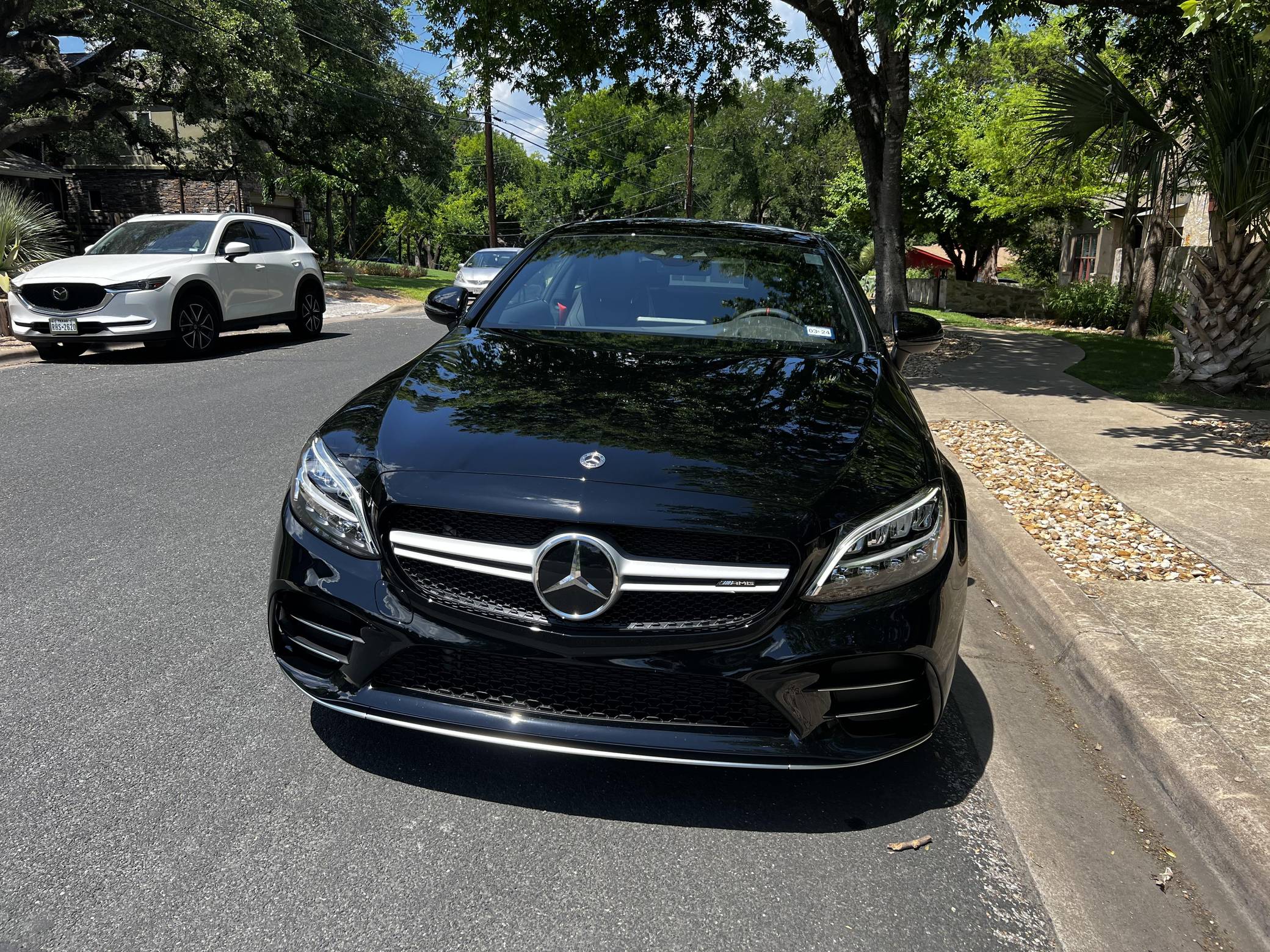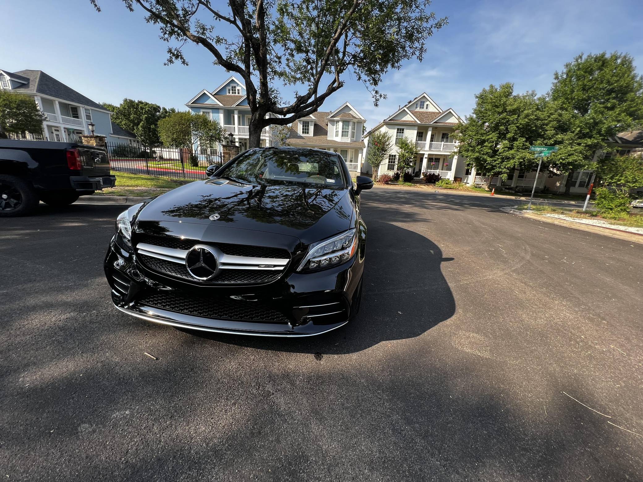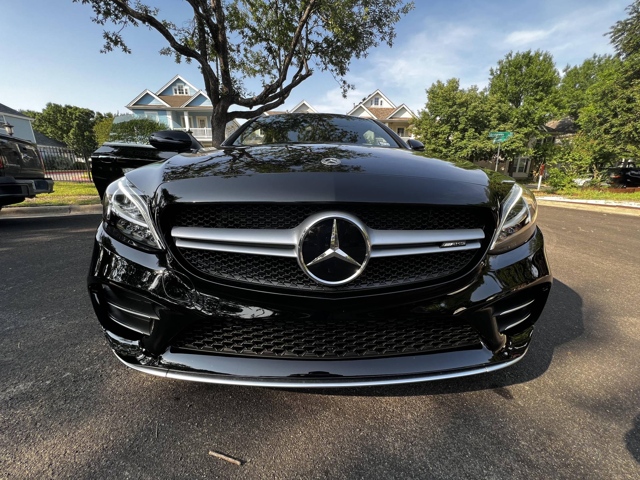 2022 Mercedes-AMG C43 AMG Coupe, finished in black with a black interior. The seller reports no modifications. The "C205" C-Class coupe was launched in 2015, and the AMG variant debuted a year later with a twin-turbocharged engine, adaptive suspension, and a selectable exhaust note. Aimed Squarely at Lexus' RC F, this potent AMG-tuned coupe could make the 0-60 mph dash in just over 4 seconds, according to Car and Driver. Power comes from a twin-turbocharged 3. 0-liter V6, rated at 385 horsepower and 384 lb-ft of torque. It spins all four wheels via a 9-speed automatic transmission and Mercedes-Benz's 4Matic all-wheel-drive system.
