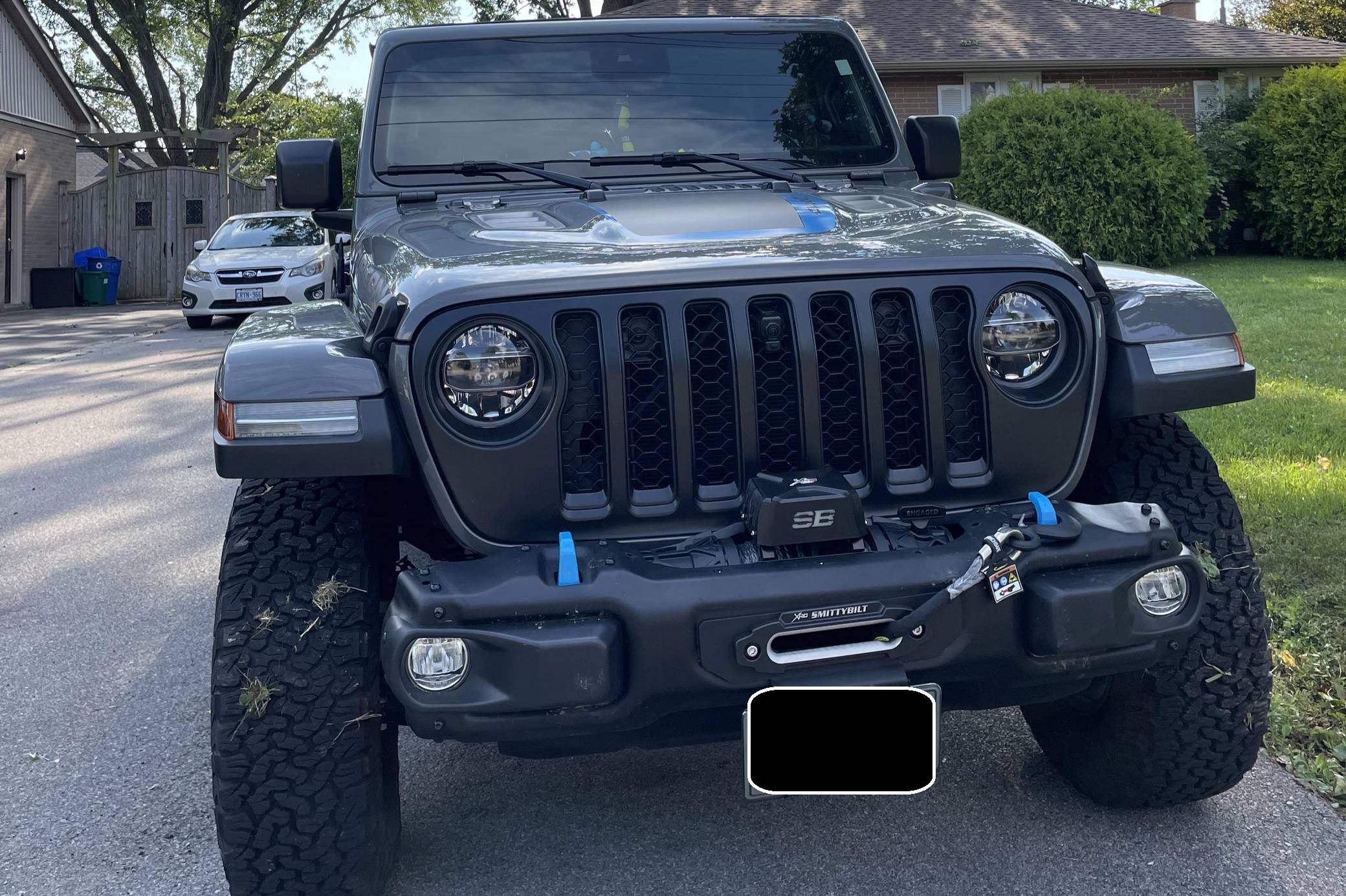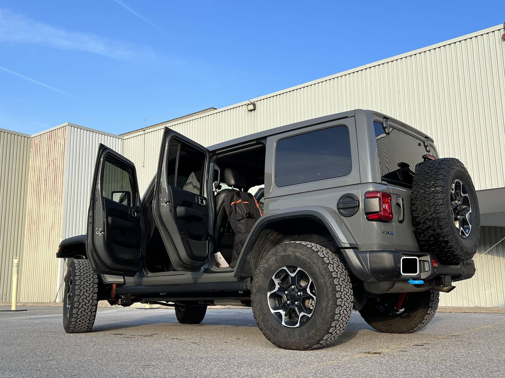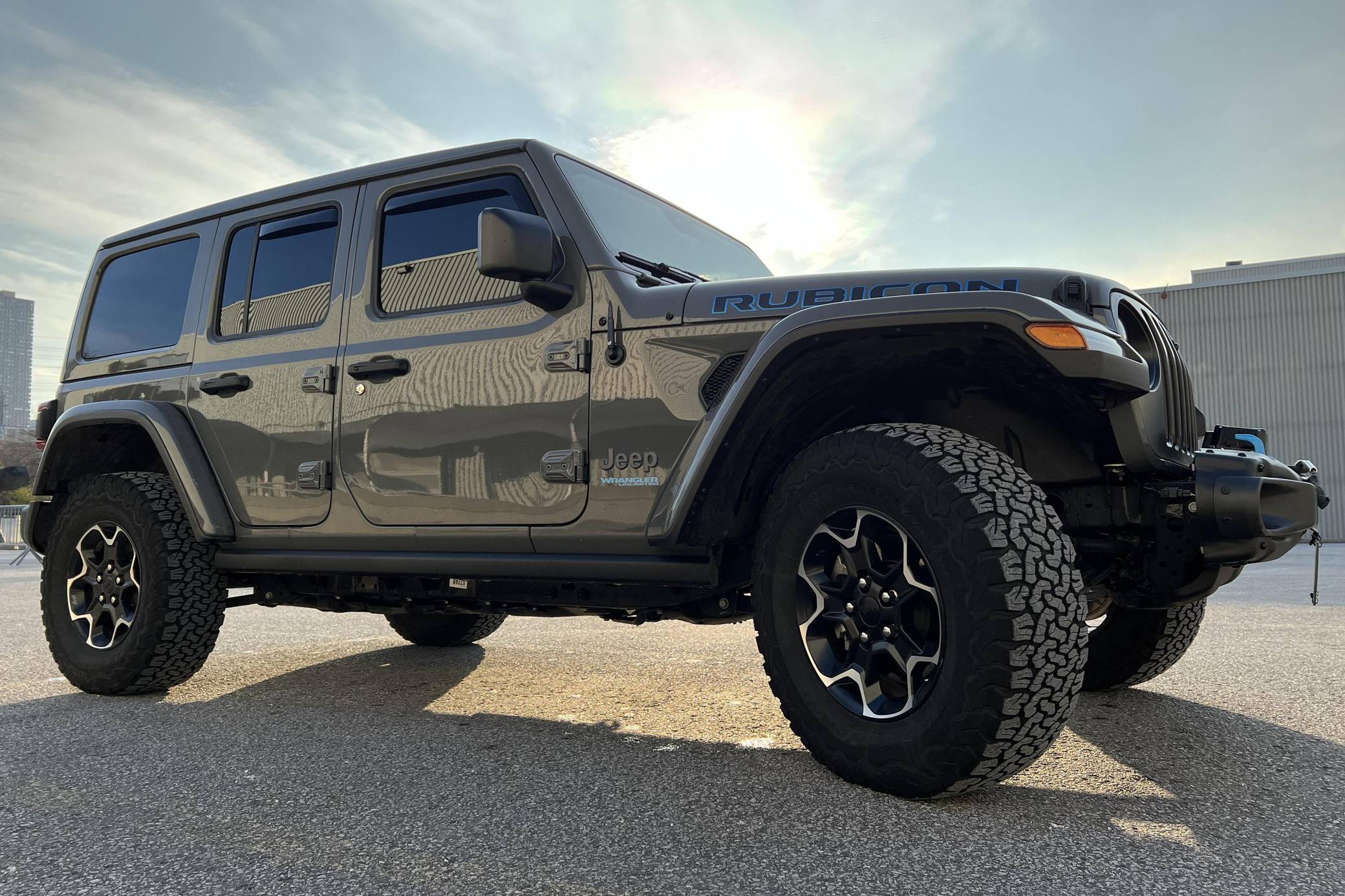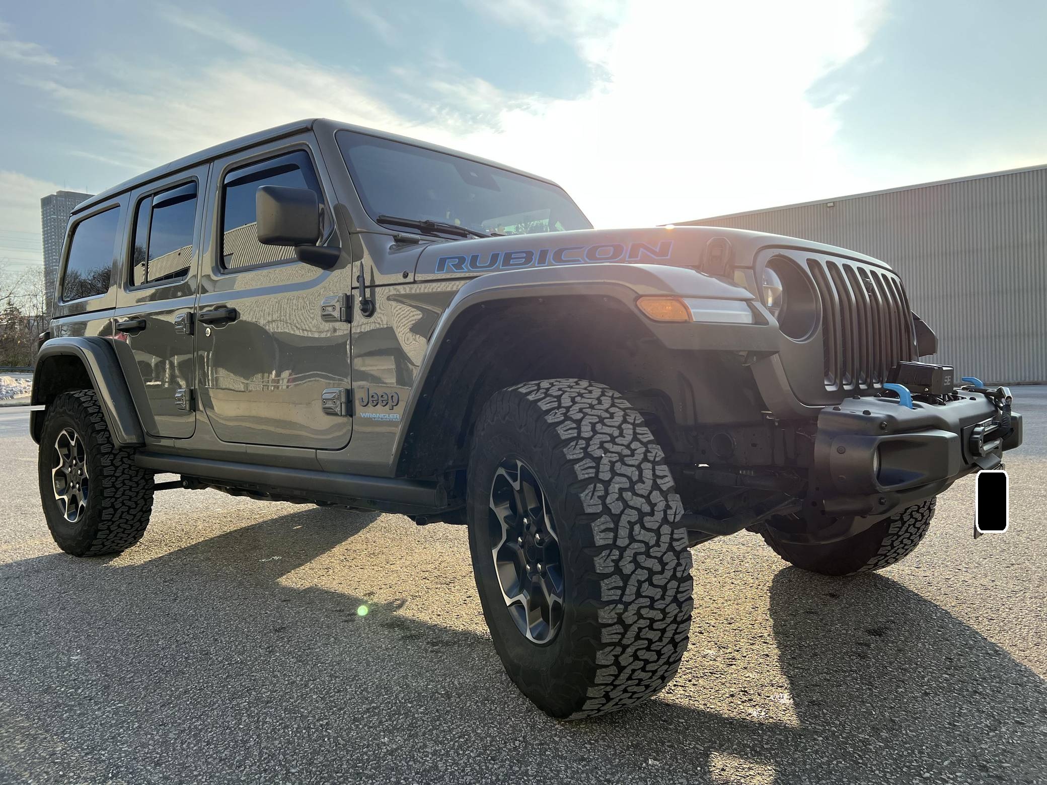 THIS… is a 2021 Jeep Wrangler Unlimited Rubicon 4Xe, finished in Sting-Gray with a black interior. Equipped with a metric instrument cluster, its odometer currently displays around 41,900 kilometers, which represents approximately 26,100 miles. Modifications reported by the seller are limited to a Smittybilt 10,000-lb winch, window air deflectors, and tinted windows. Jeep released the current-generation Wrangler for 2018. Called "JL" internally, the off-roader was at least as capable as its predecessor but it offered a more comfortable ride on the pavement thanks to additional comfort and technology features. 2021 brought two firsts to the line-up: the 4xe, which is the first plug-in hybrid Wrangler, and the 392, which is the first V8-powered Wrangler. Production continues in 2022. Power comes from a 2. 0-liter turbocharged 4-cylinder engine, which works with a pair of electric motors linked to a 17. 3-kilowatt-hour lithium-ion battery pack to develop 375 horsepower and 470 lb-ft of torque. The plug-in hybrid system spins the rear or the four wheels via an 8-speed automatic transmission and a 2-speed transfer case.