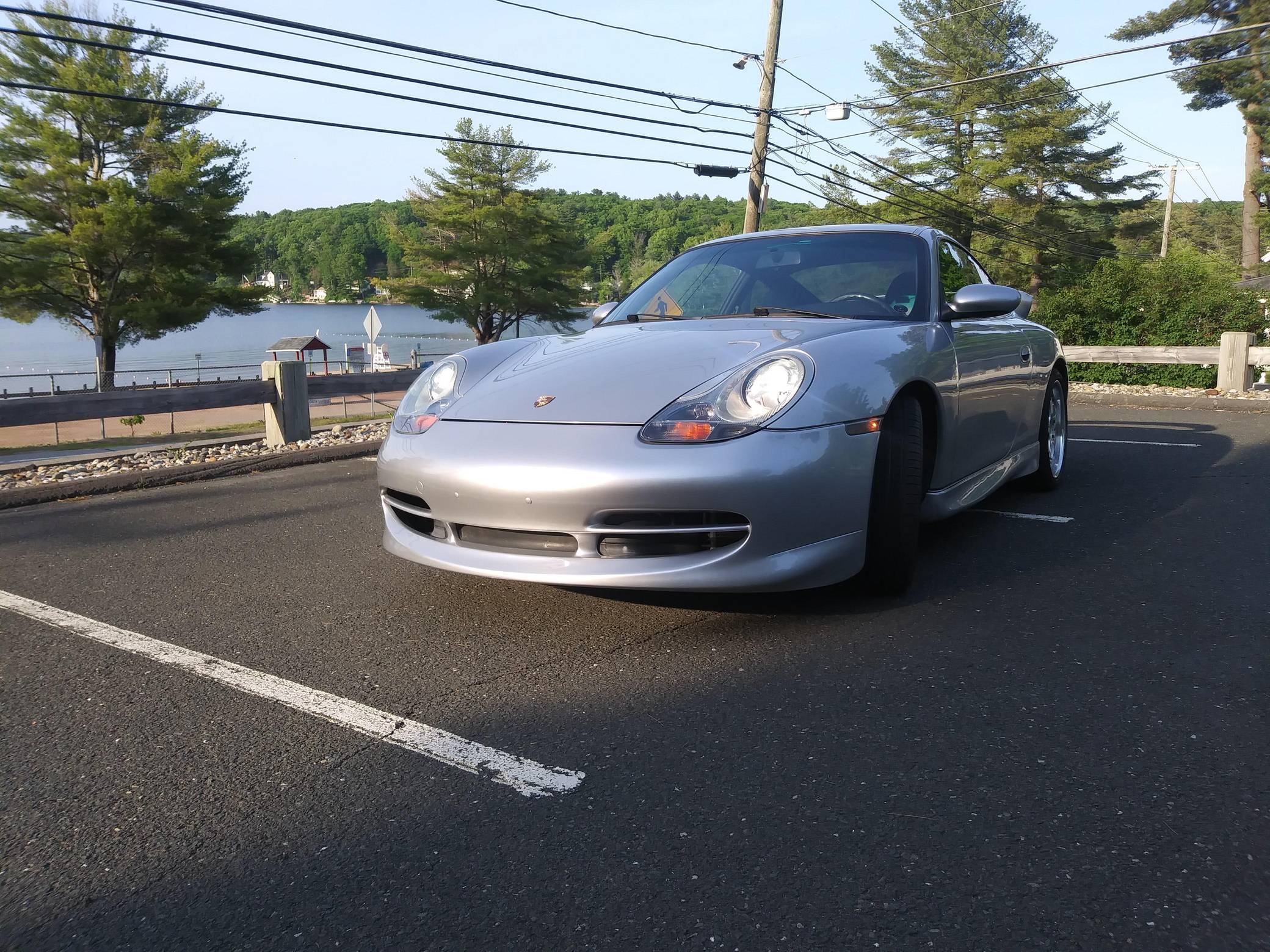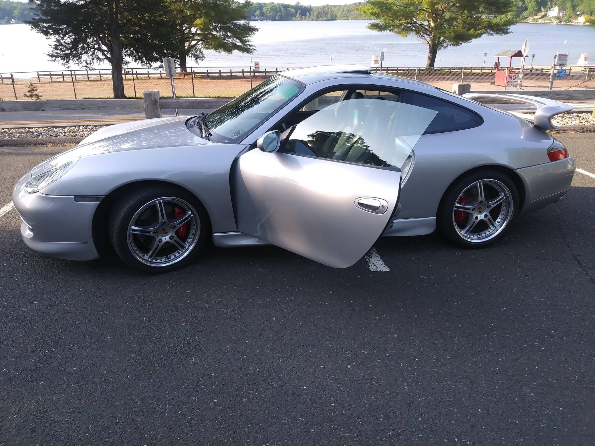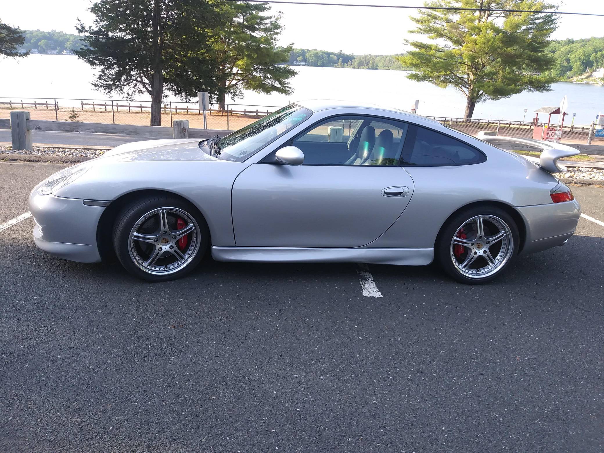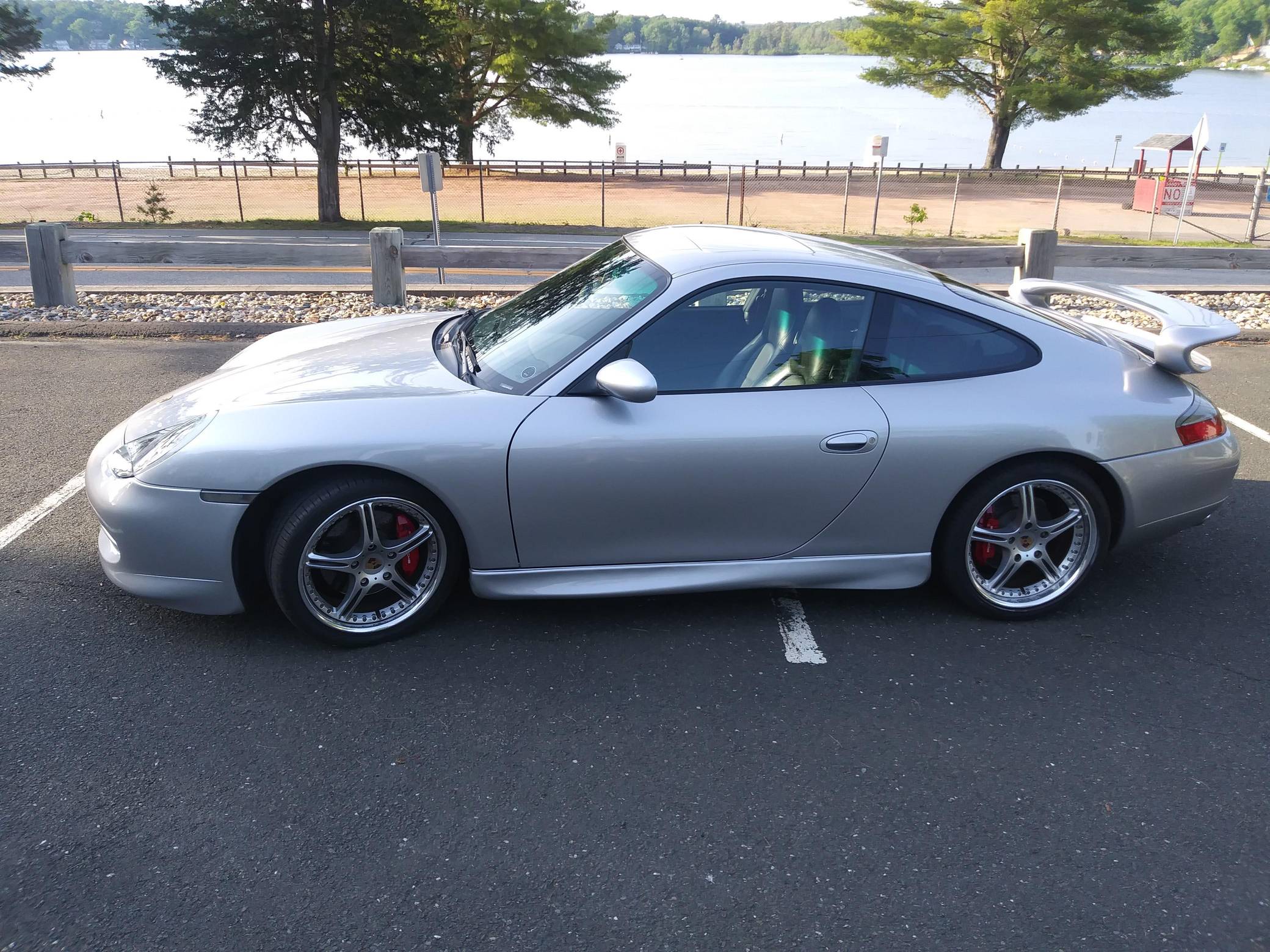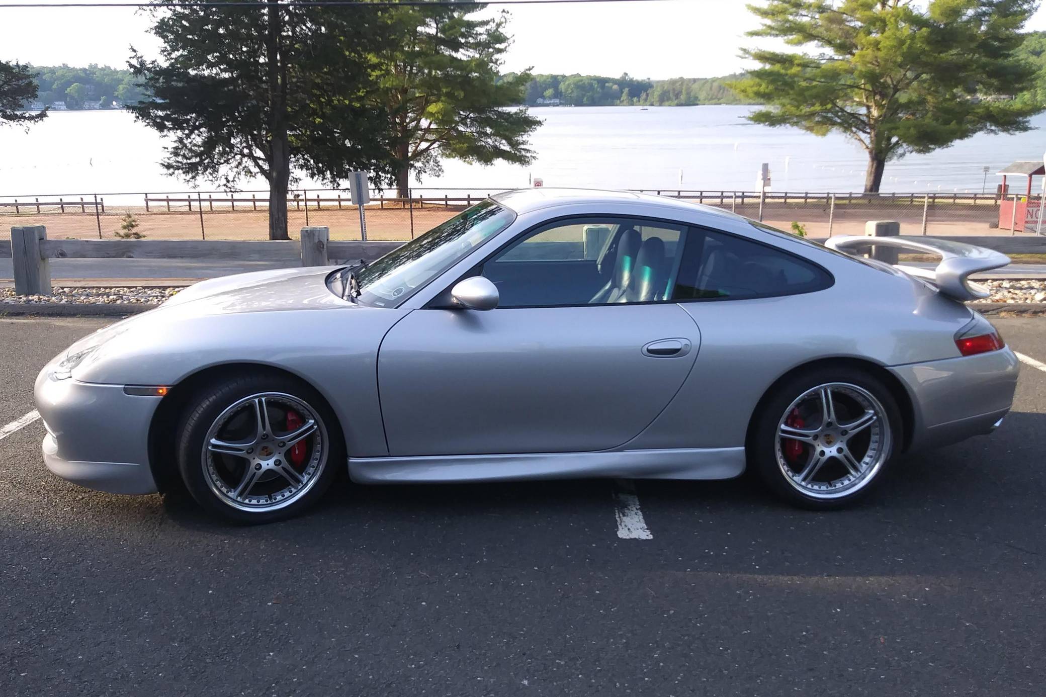 1999 Porsche 911 Carrera, finished in Arctic Silver Metallic with a black interior. This coupe is equipped with the desirable 6-speed manual transmission, and its odometer displays about 56,200 miles. Built in May 1998, this 911 is equipped with the "Aerokit" body kit, a sunroof, leather upholstery, and power-adjustable front seats, among other features. This car's build sheet is pictured in the gallery. Modifications reported by the seller include 18-inch SSR wheels, HID headlights, tinted windows, carbon fiber interior trim, a Sony head unit, and Diamond Audio speakers. More details about the aftermarket parts installed on this 911 are provided below. Porsche introduced the 996-generation 911 for the 1999 model year. New from the ground up, it was the first water-cooled 911 and it stood out from its predecessors with a completely redesigned front end that ditched the round lights. The line-up grew to include coupe, convertible, and Targa models plus numerous variants ranging from the base Carrera to the track-ready GT2. Rear-wheel drive 1999 model year cars, like this one, are the only version of the 996 to come with a cable throttle, as opposed to throttle-by-wire on later cars and all-wheel drive models. Power comes from a 3. 4-liter flat-6, rated at 296 horsepower and 258 lb-ft of torque. It spins the rear wheels via a 6-speed manual transmission.