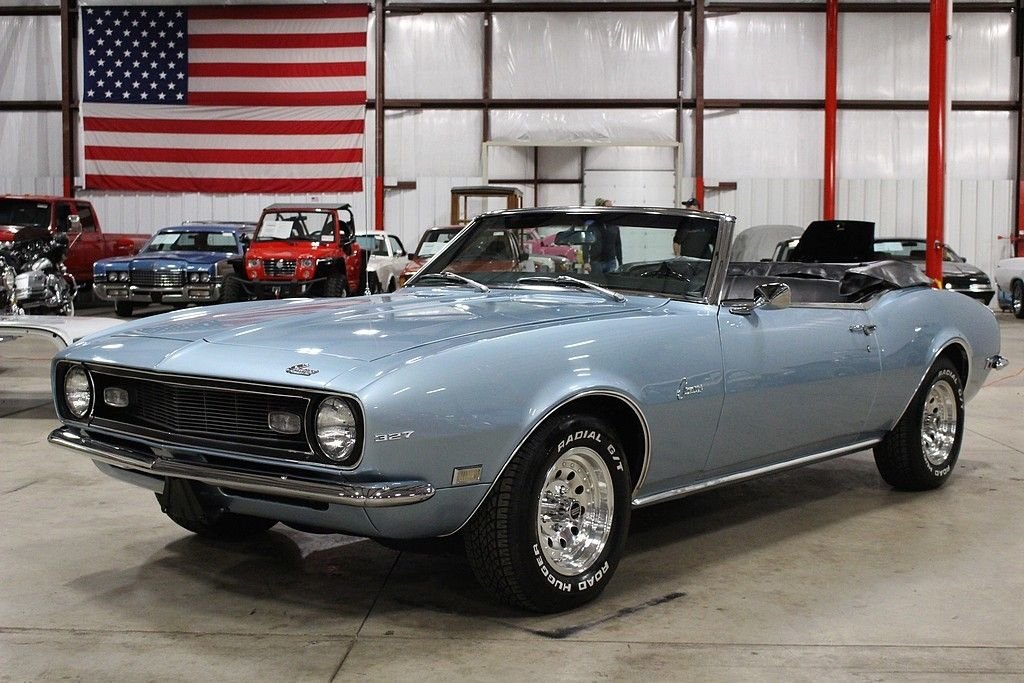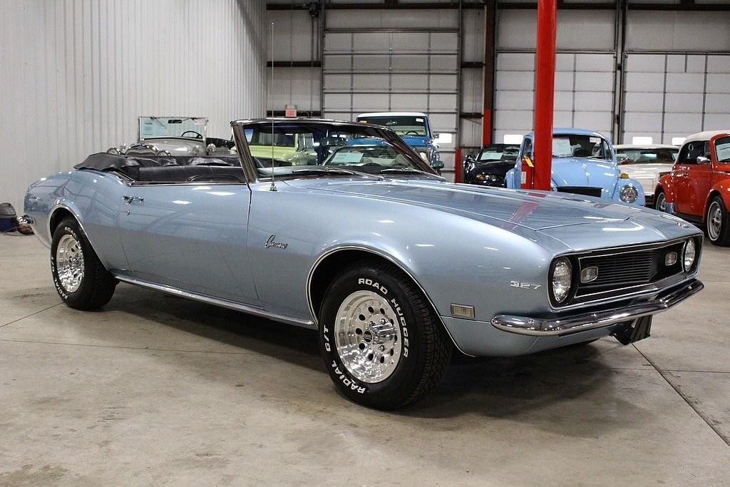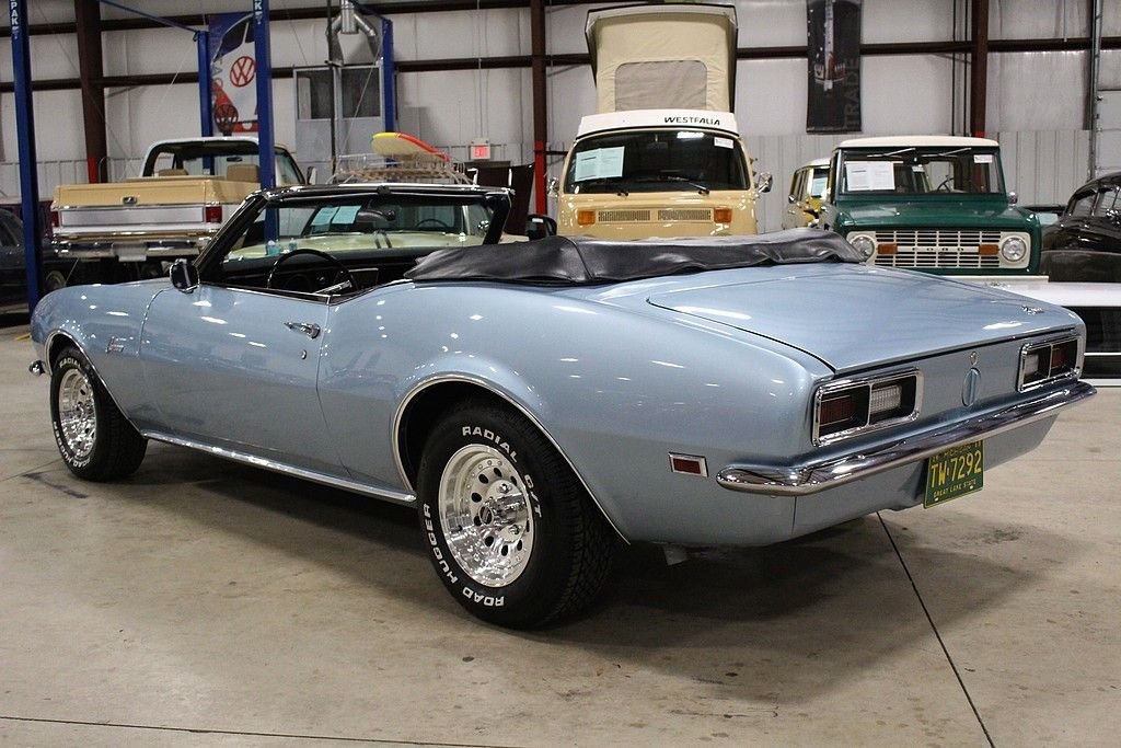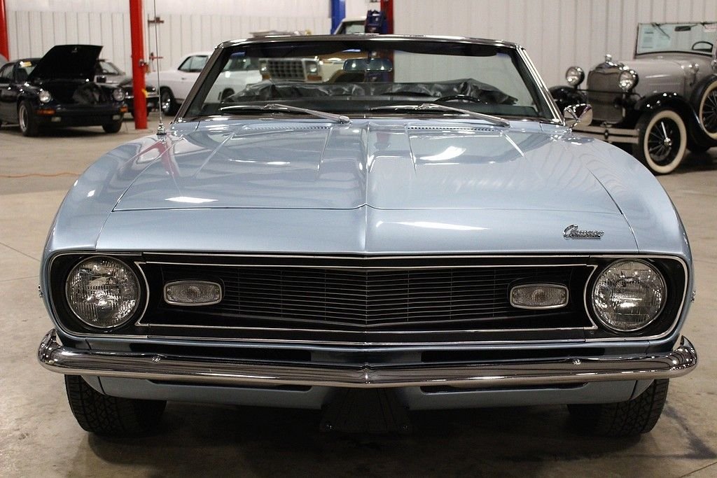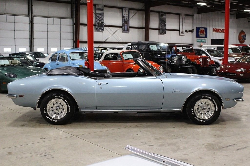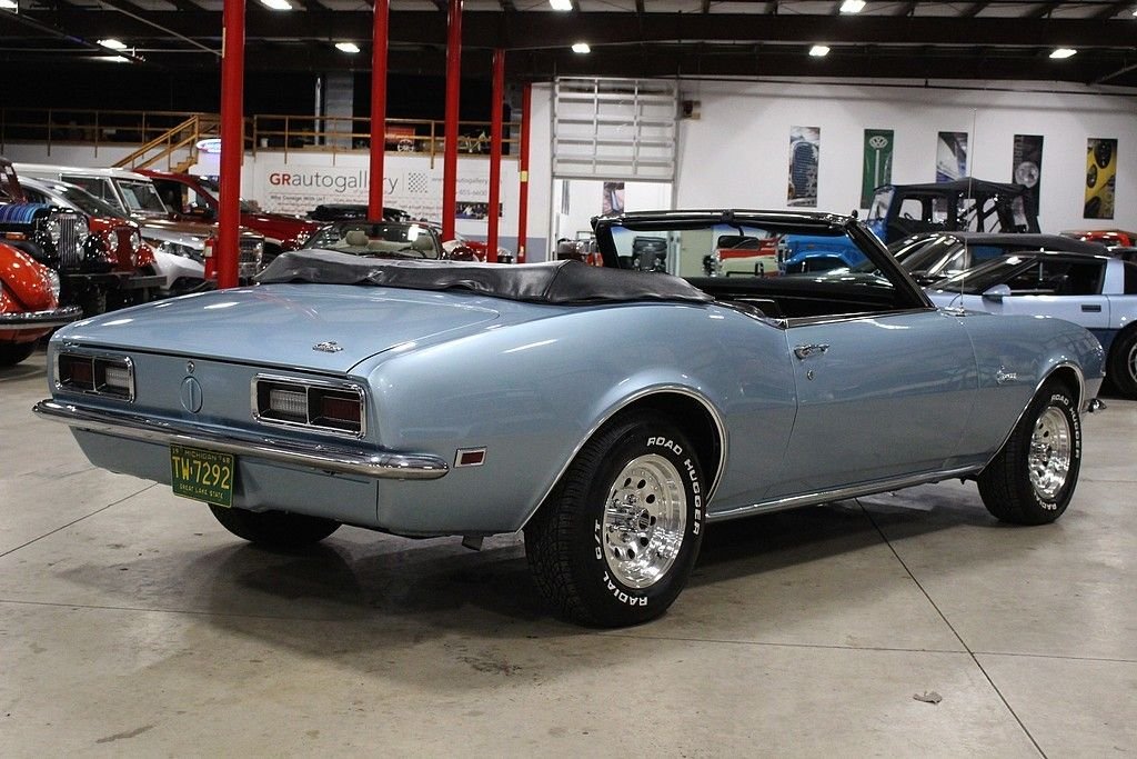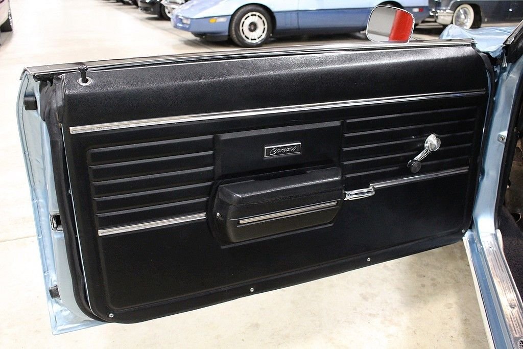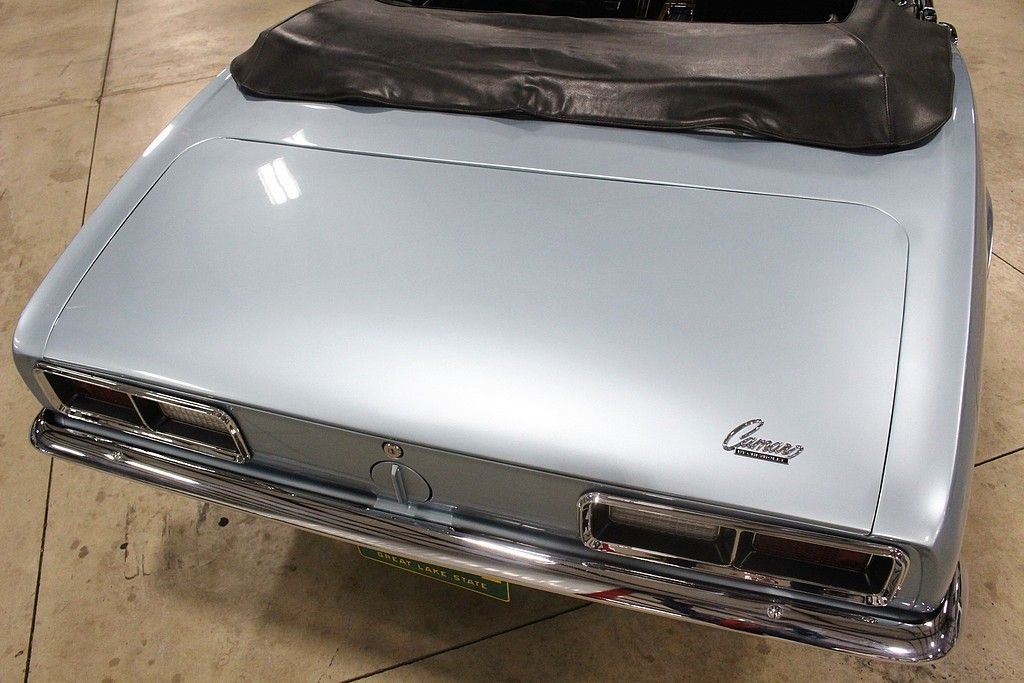 This drop top classic was sold new on July 15, 1968 at the Rampy Chevrolet Inc. dealership in Ann Arbor MI. The buyer traded in a 1965 Mustang towards the Camaro. Included in the sale of this car is the original sales sheet that lays all of this out. Extra accessories that were purchased above the base price include a power glide transmission, power steering, tinted glass, style trim group, center counsel, AM/FM radio and more. This car has been appreciating in value since day one and will continue to do so. The purchase price was a grand total of $3,426.55. This car also has the original broadcast sheet, original sales/dealer brochure, paint code sheet, spare tire, jack and tools, services manuals, owner's manual and restoration manuals. In 2010 the car was completely stripped down to bare metal and received a complete restoration. The car was repainted in the original “Grotto Blue” with a very small amount of metallic flake added. The car received new rubber seals at this point. The car was very solid at this time and did not receive any “patch panels” and remains all factory steel. Brand new chrome bumpers were purchased and installed at this time. The engine is a numbers matching 327 v8 mated to an automatic transmission. The black leather interior remains in excellent condition and looks great. The Camaro rides on like new Road Hugger Radial GT tires mounted on 14 American Racing wheels. This car has all of the proper requirements to be any collectors dream and is a must consider for any enthusiast. This Camaro is “turn key” and ready to go. It runs and handles as it should. Consider this investment piece with confidence.