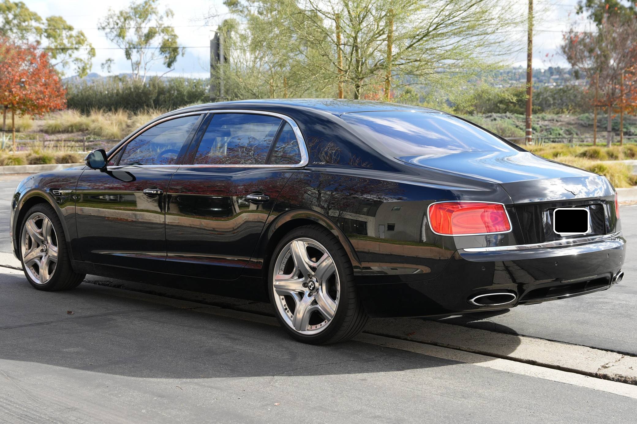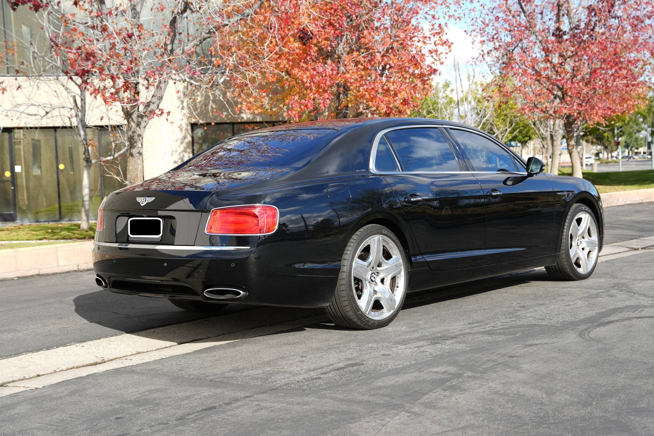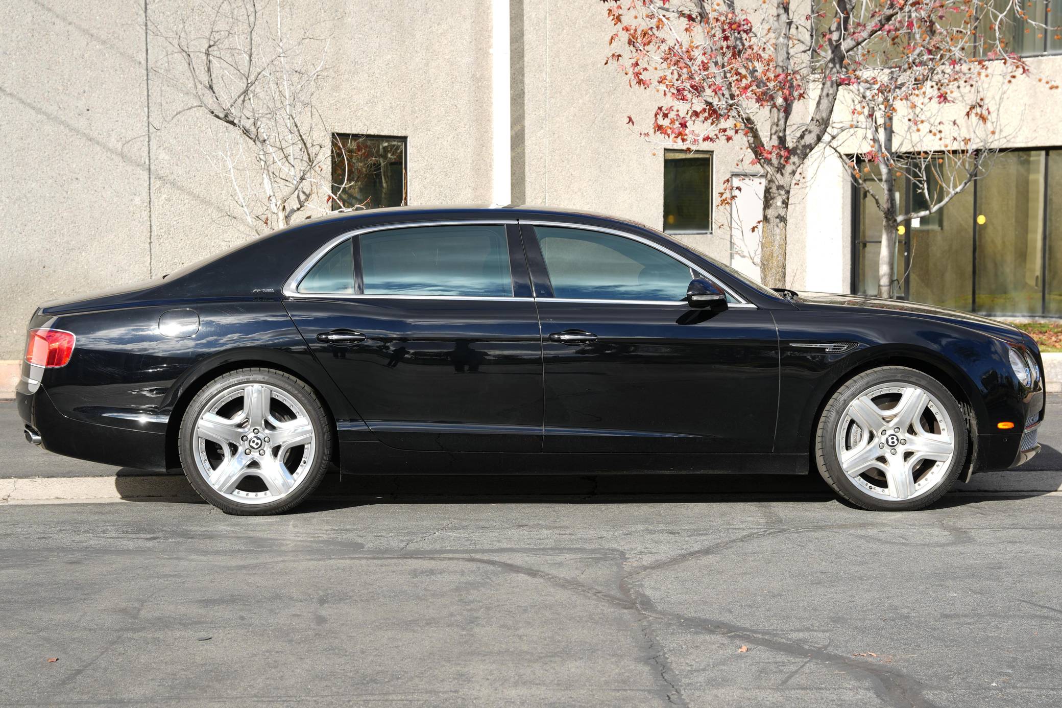 THIS. . . is a 2015 Bentley Flying Spur, finished in black with a black interior. Factory equipment includes the Mulliner Driving Specification, which adds 21-inch 5-spoke 2-piece painted alloy wheels, diamond quilting on the seats and doors, an indented hide headliner, and a knurled gear lever, among other upgrades. Other equipment includes self-leveling air suspension with continuous damping control, bi-xenon headlamps, full LED rear lamps, premium grade hide upholstery, wood veneers, and multi-zone automatic climate control. The seller reports no modifications. Bentley released the second-generation Flying Spur for the 2014 model year. Again related to the Continental, the sedan arrived with a cushier suspension than its predecessor, a more powerful engine, and an evolutionary design. With a $200,500 base price and a dizzying array of bespoke options, the total could escalate about as quickly as the Flying Spur's claimed 4. 3 second 0-to-60 time. Power comes from a 6. 0-liter turbocharged W12, rated at 616 horsepower and 590 lb-ft of torque. Output is sent to all four wheels via an 8-speed automatic transmission.