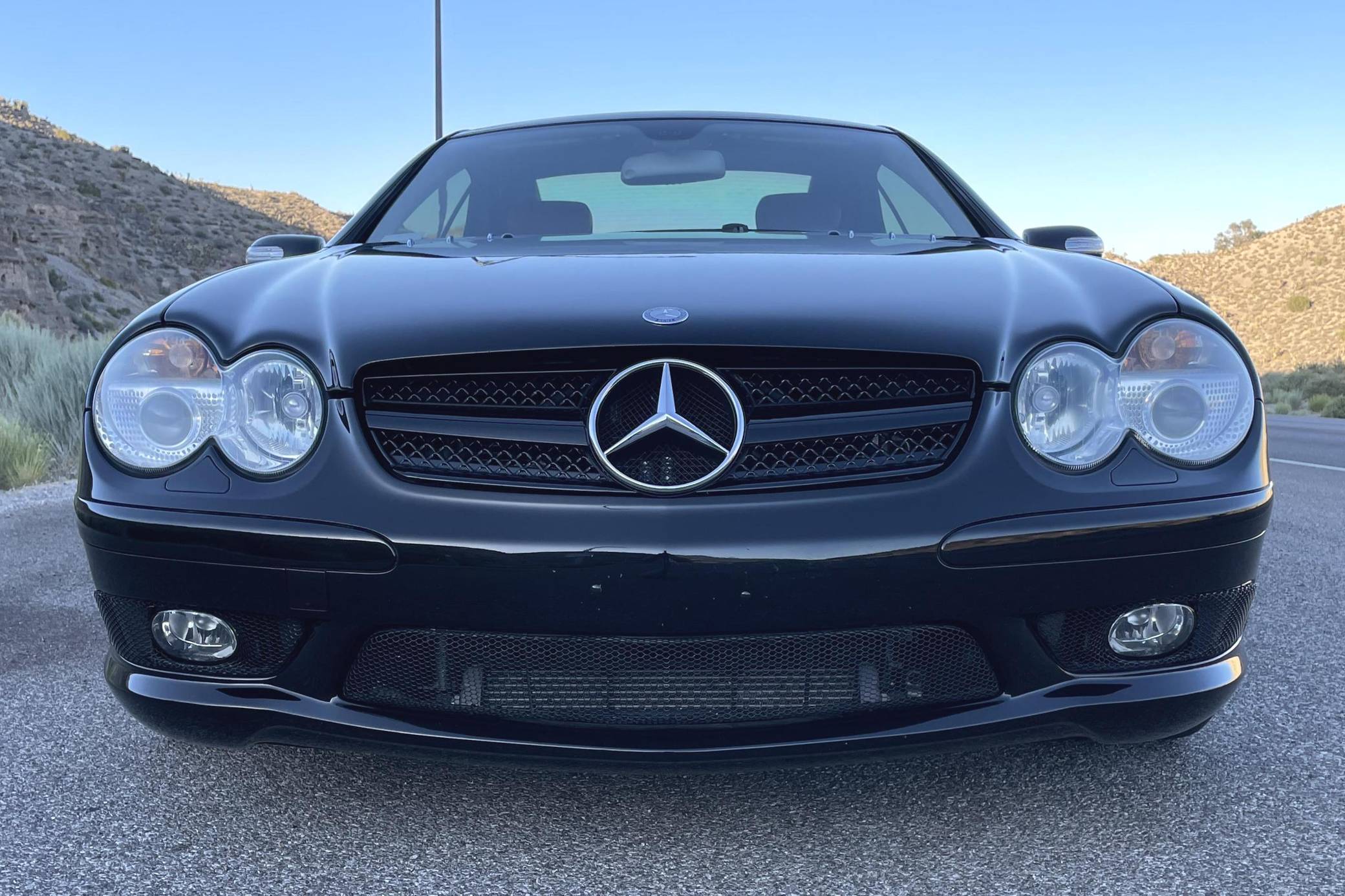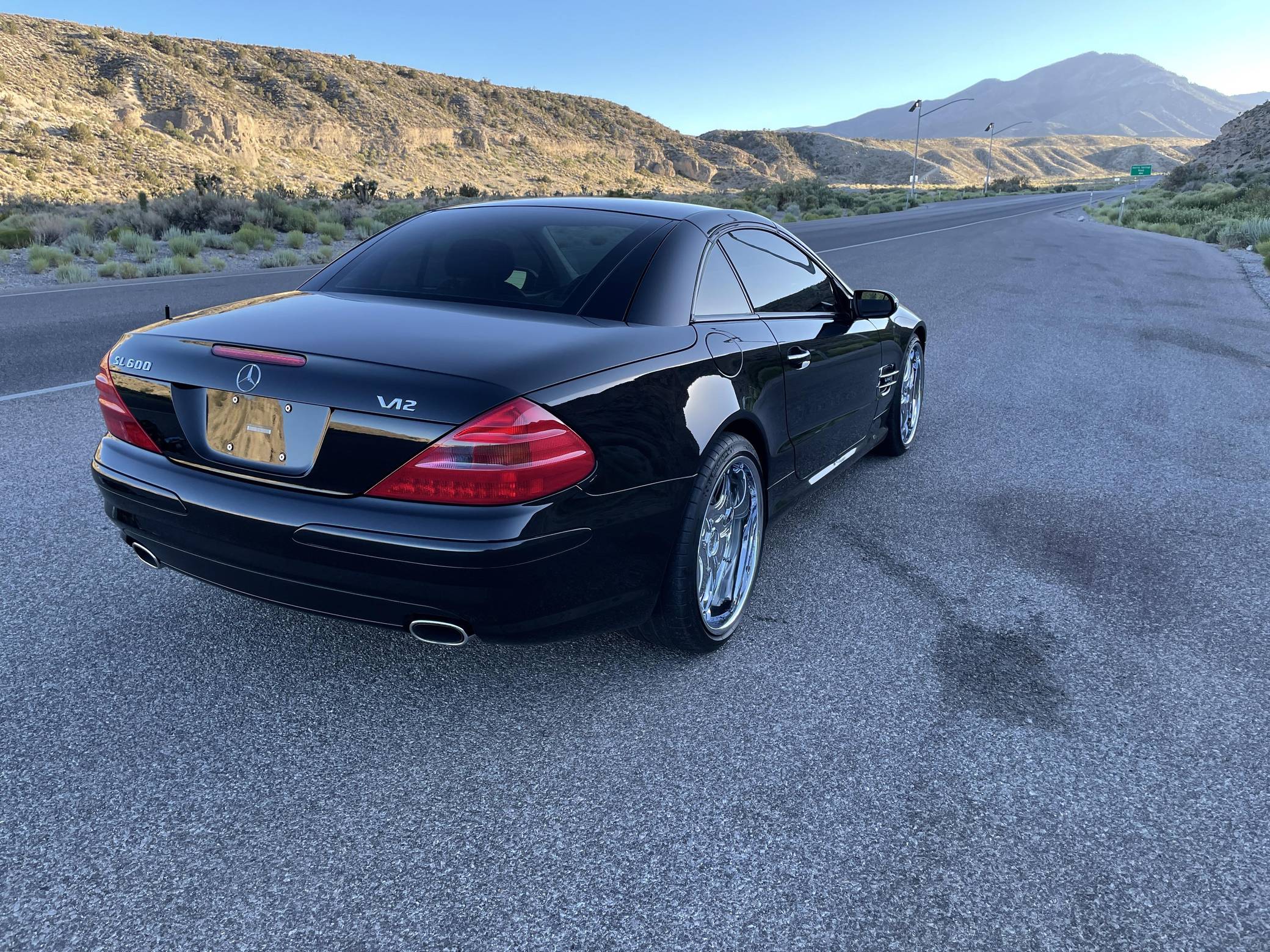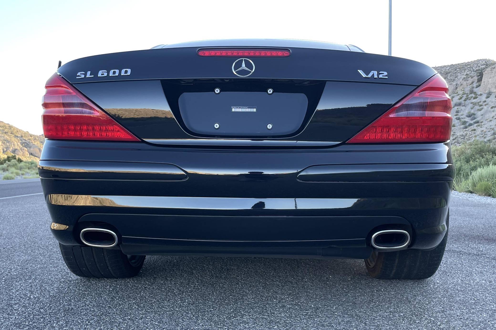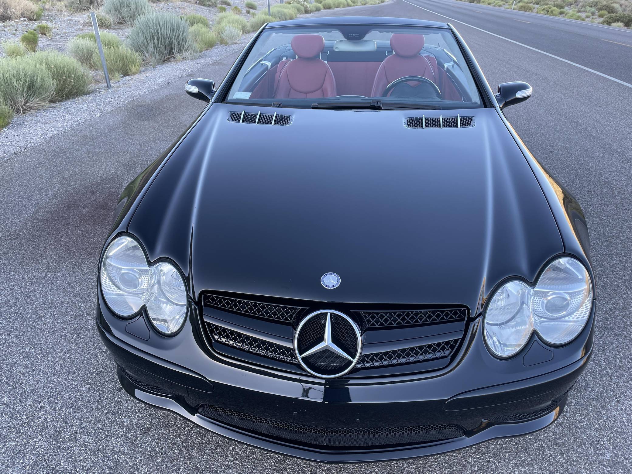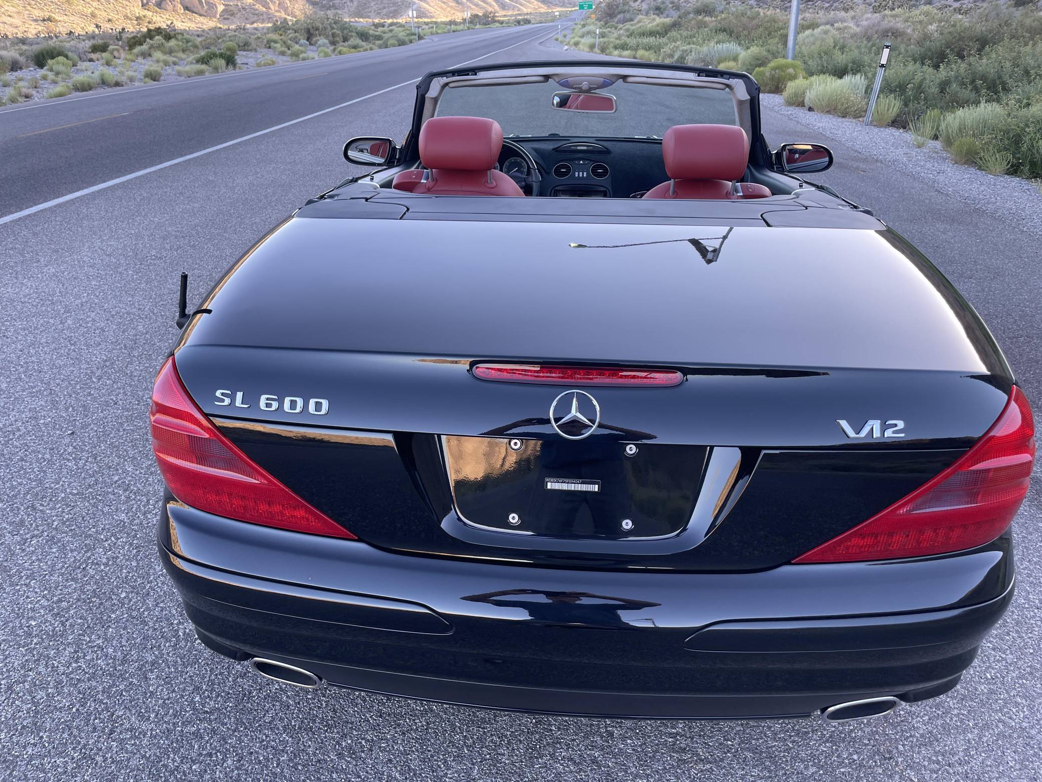 THIS… is a 2005 Mercedes-Benz SL600, finished in black with a Red Berry interior. The odometer on this SL600 currently displays approximately 43,800 miles. Modifications reported by the seller include 20-inch Lowenhart chrome wheels, tinted windows, upgraded transmission programming by BenzNinja, and an aftermarket touchscreen head unit with Apple CarPlay and Android Auto compatibility. Called R230 internally, the first new SL of the 21st century made its debut for the 2003 model year as a replacement for the venerable R129 model. It was appreciably quicker and far more advanced than its predecessor, it ditched the boxy lines for a sleeker and more rounded design, and it came standard with a power-retractable hardtop. Power comes from a 5. 5-liter "M275" twin-turbocharged V12, rated at 493 horsepower and 590 lb-ft of torque. Output is sent to the rear wheels via a 5-speed automatic transmission.