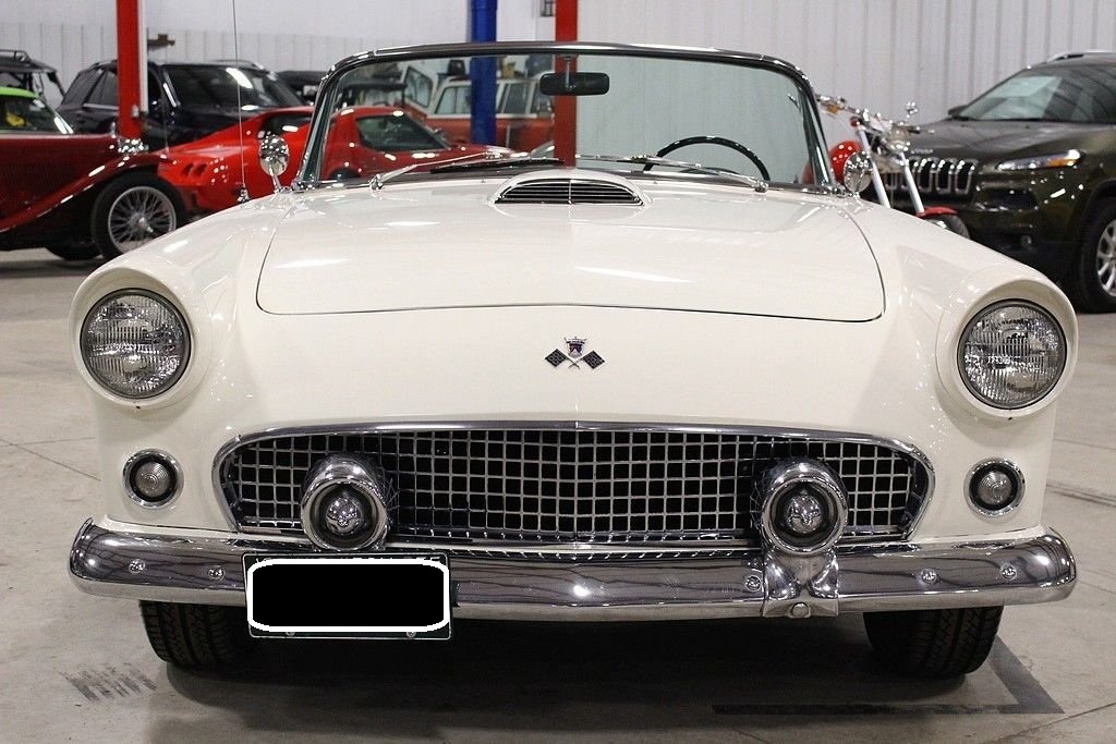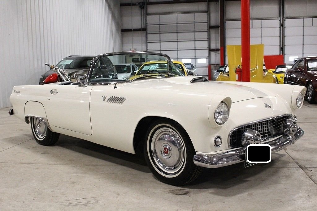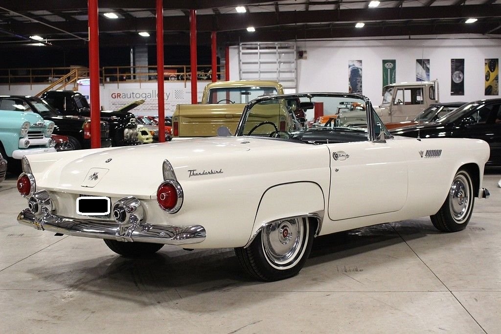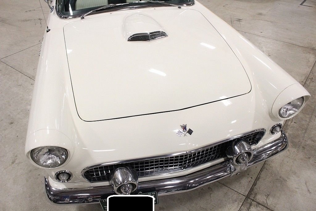 Ford's answer to the very popular Corvette, the Thunderbird had to not only put Ford back on the radar for the people that wanted a roadster but also one that had some power. The first year the T-Bird out sold the smaller corvette almost 23-1 ratio. Ford not only wanted a sporty roadster, but a car that was enjoyable to drive. Success was multiplied with the performance and style that left dealerships begging for more inventory in the mid to late 50's. The 1955 Ford Thunderbird offered here has been the recipient of a no expense spared, complete mechanical and cosmetic restoration completed in 2009. The body and frame was completely stripped to bare metal and detailed and finished appropriately in factory spec Snowshoe White over Black and White interior. The interior was completely redone at that time including seats, carpet, soft-top drop curtain, and lined with sound deadening material. Much of the dash, gauges and dash accessories appear to be preserved and original. The 292 Y block engine was rebuilt and fortified with new Eddlebrock 4 barrel carb, the transmission was completely serviced, the rear end inspected and with new fluids, new fuel tank and sending unit, new proper fuel pump, the suspension was completely serviced with new bushings and new shocks. The brake system includes a new booster, front disc conversion with drums remaining in the rear, the electrical has been properly converted to 12 volt and features a new power window system, new electronic ignition, and new electric windshield wiper motor replacing the original vacuum system. Other highlights include: new premium convertible top, new tires including spare, new / refurbished chrome and trim, new Ididit true tilt steering column and steering wheel, New T-bird retro look radio with dual speakers and usb port, and 4 way power seat. Since completion, the car has been driven just 600 miles and has remained in a private collection until our recent acquisition. First generation Ford Thunderbirds remain an iconic part of American automotive history and as such, remain desirable in all four corners of the globe. The car remains turn-key and ready for immediate enjoyment. Documentation includes a large box of restoration receipts, research, assembly manuals etc.
