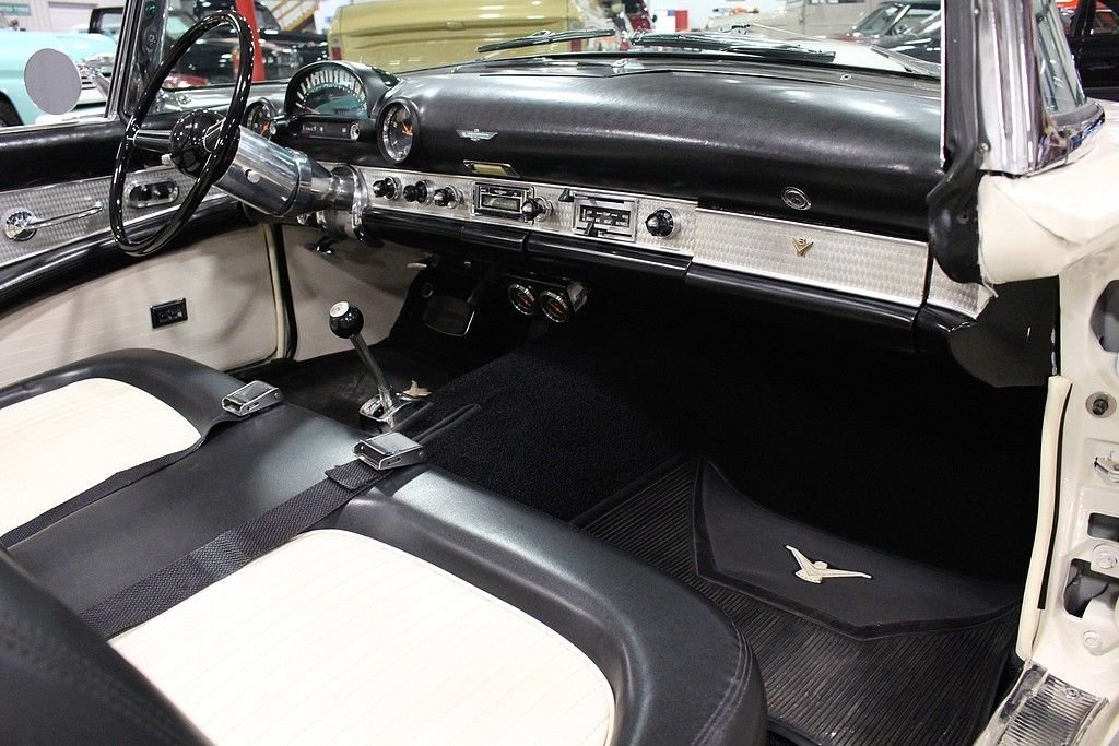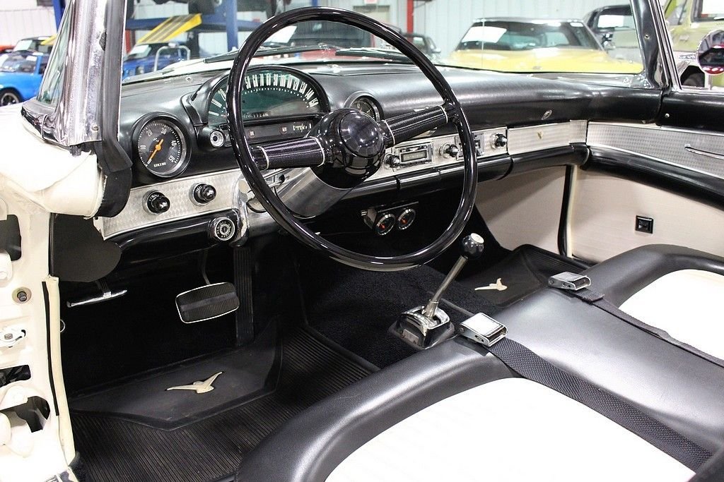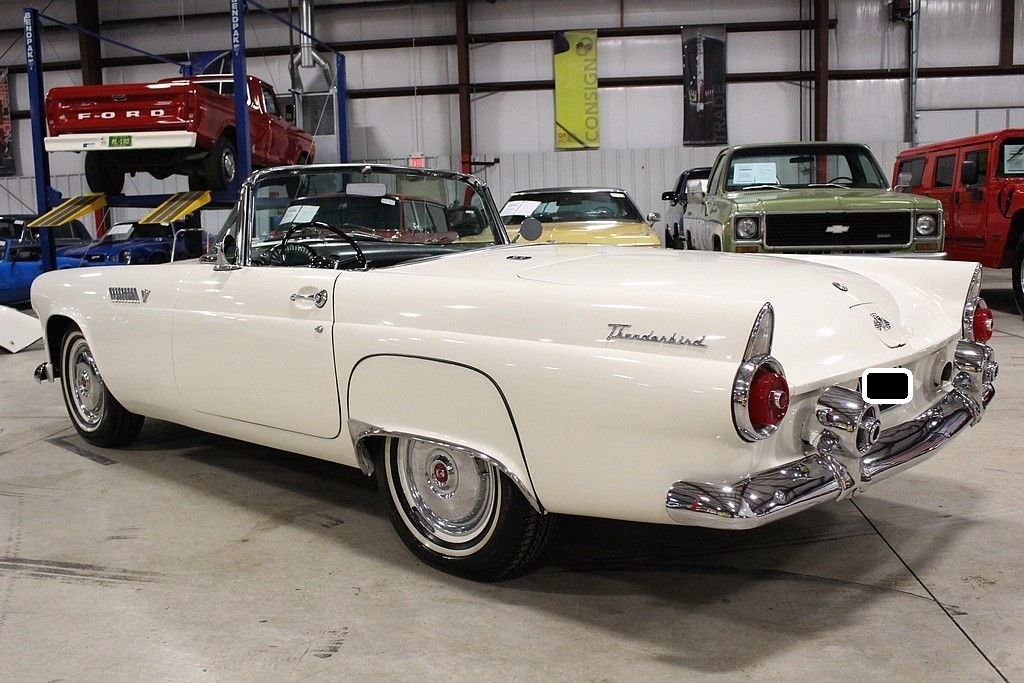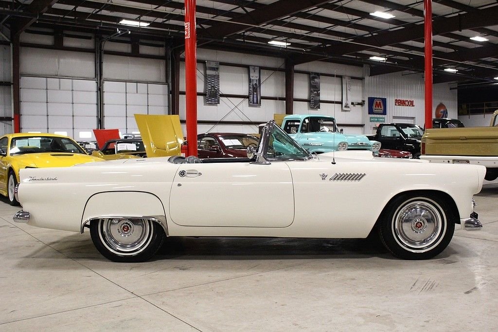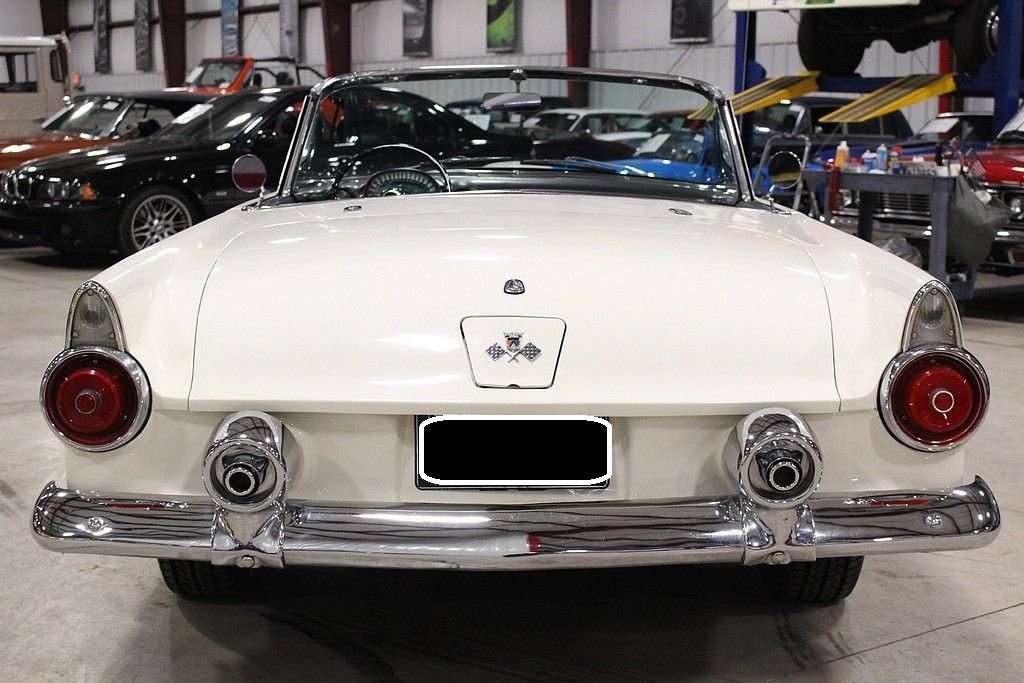 Ford's answer to the very popular Corvette, the Thunderbird had to not only put Ford back on the radar for the people that wanted a roadster but also one that had some power. The first year the T-Bird out sold the smaller corvette almost 23-1 ratio. Ford not only wanted a sporty roadster, but a car that was enjoyable to drive. Success was multiplied with the performance and style that left dealerships begging for more inventory in the mid to late 50's. The 1955 Ford Thunderbird offered here has been the recipient of a no expense spared, complete mechanical and cosmetic restoration completed in 2009. The body and frame was completely stripped to bare metal and detailed and finished appropriately in factory spec Snowshoe White over Black and White interior. The interior was completely redone at that time including seats, carpet, soft-top drop curtain, and lined with sound deadening material. Much of the dash, gauges and dash accessories appear to be preserved and original. The 292 Y block engine was rebuilt and fortified with new Eddlebrock 4 barrel carb, the transmission was completely serviced, the rear end inspected and with new fluids, new fuel tank and sending unit, new proper fuel pump, the suspension was completely serviced with new bushings and new shocks. The brake system includes a new booster, front disc conversion with drums remaining in the rear, the electrical has been properly converted to 12 volt and features a new power window system, new electronic ignition, and new electric windshield wiper motor replacing the original vacuum system. Other highlights include: new premium convertible top, new tires including spare, new / refurbished chrome and trim, new Ididit true tilt steering column and steering wheel, New T-bird retro look radio with dual speakers and usb port, and 4 way power seat. Since completion, the car has been driven just 600 miles and has remained in a private collection until our recent acquisition. First generation Ford Thunderbirds remain an iconic part of American automotive history and as such, remain desirable in all four corners of the globe. The car remains turn-key and ready for immediate enjoyment. Documentation includes a large box of restoration receipts, research, assembly manuals etc.