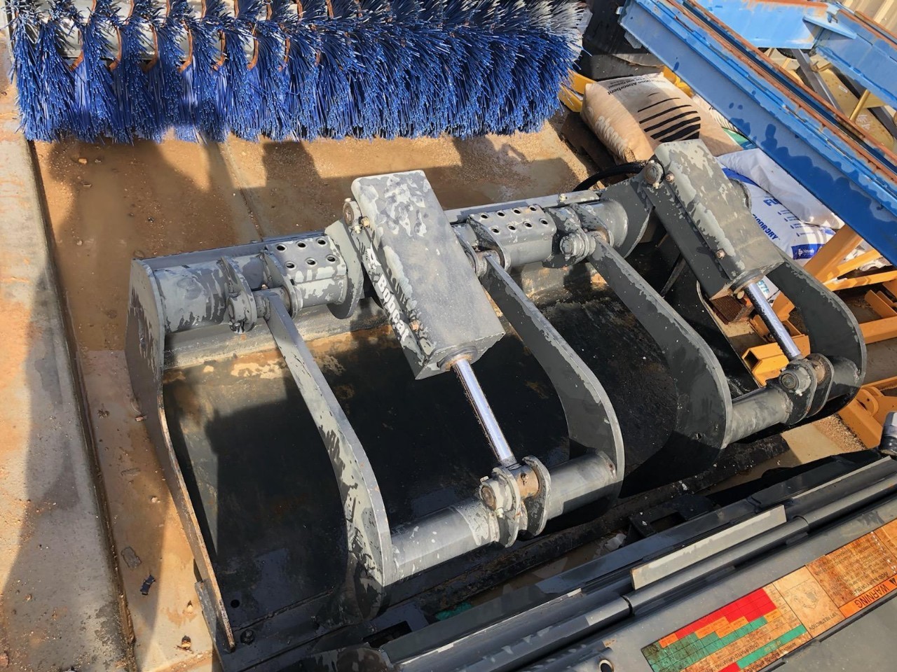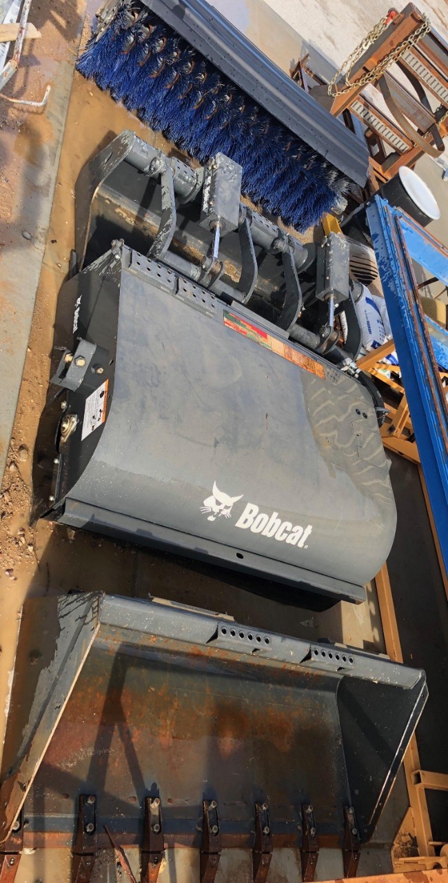 The unit is like a new, enclosed cab with air conditioning, heating, and radio. All tires are in good condition and include a spare tire. All attachments are like new as well with the exception of the auger drive, it was used when I purchased it. Attachments include a smooth bucket, rock tooth bucket, bucket sweeper, standard sweeper, forks, auger (no bits), grappler bucket, and trailer hitch attachment.