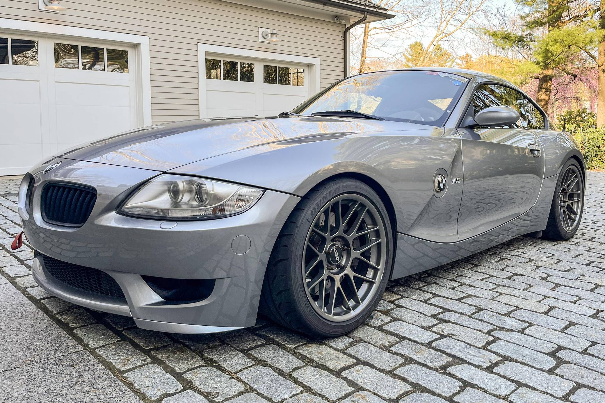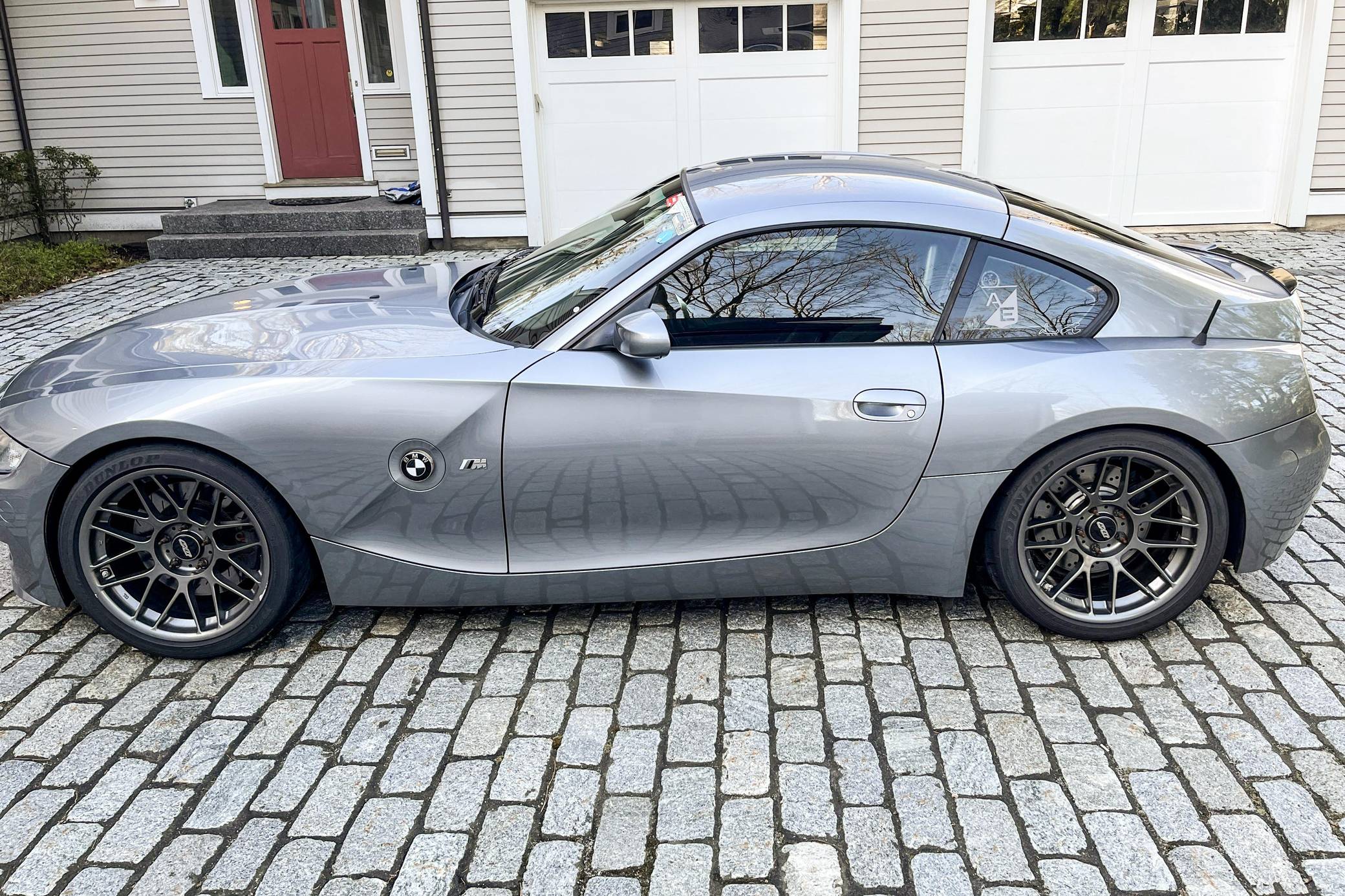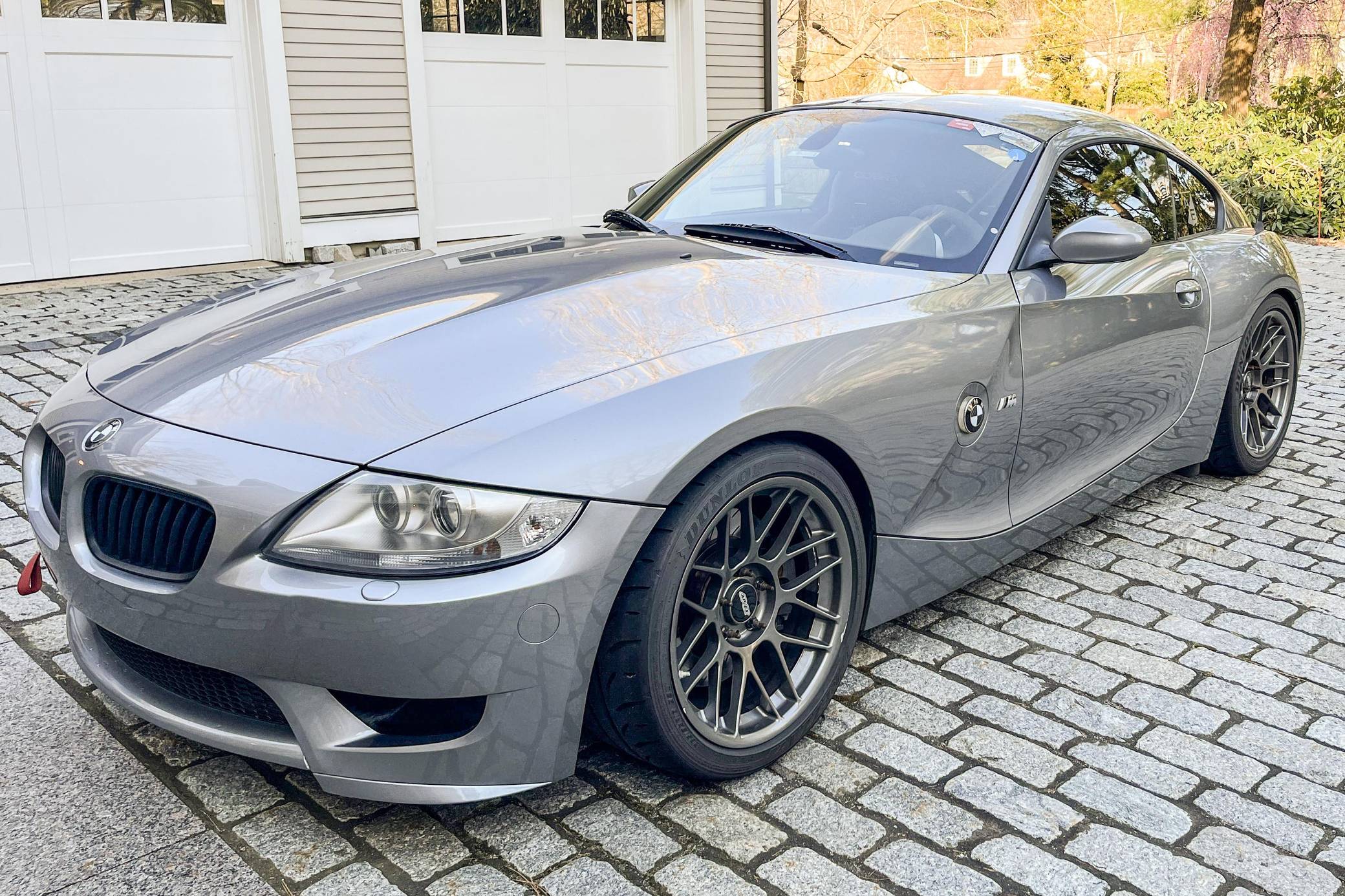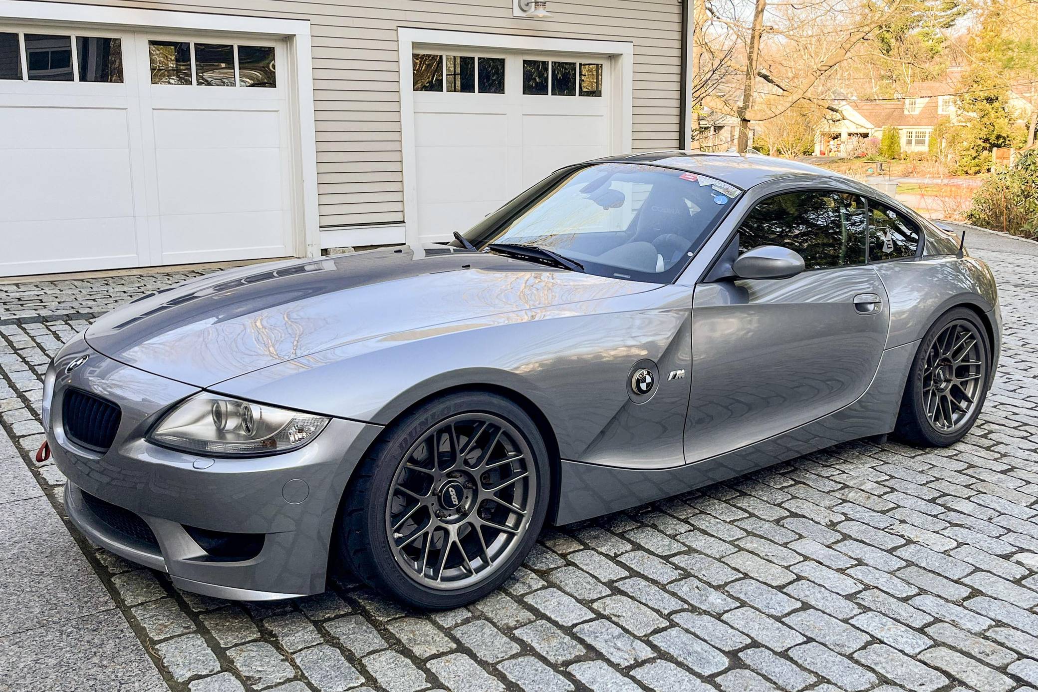 2007 BMW Z4 M Coupe, finished in Silver Grey Metallic with a black interior. According to the build sheet provided in the gallery, factory equipment includes xenon headlights, carbon fiber look leather interior trim, and a BMW Professional Logic7 sound system, among others detailed below. Modifications to this Z4 M are extensive, and the full list is detailed below. include BE rod bearings, SuperSprint cat-back exhaust, aFe intake, Epic engine tune, MCS 1-way racing coilovers, and Cobra racing seats. BMW M released its take on the first-generation Z4 for the 2006 model year. Offered as a coupe (E86) and as a convertible (E85), the M model received a straight-6 engine shared with the M3, a hydraulic power steering system, brakes from the M3 CSL, and a firmer suspension along with other M-specific upgrades. Production ended in 2008. According to the Z4 M Coupe Buyer's Guide, just 1,815 coupe models were sold in North America from 2006 to 2008. Power comes from an "S54" 3. 2-liter inline-6, rated at 330 horsepower and 262 lb-ft of torque in stock form. Due to the modifications performed to this Z4 M, it may produce more power, but a dyno sheet was not provided to confirm. The engine spins the rear wheels via a 6-speed manual transmission.