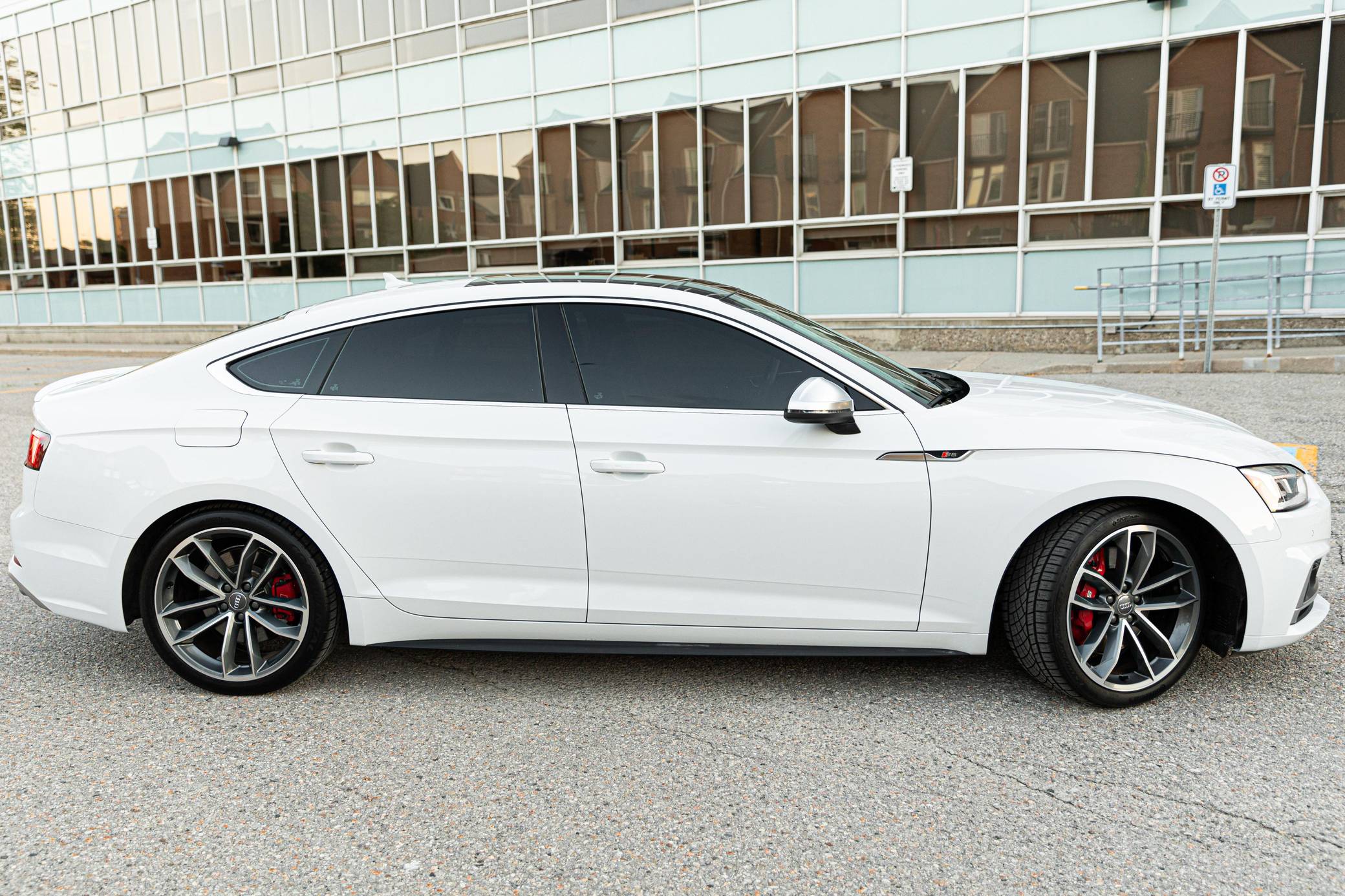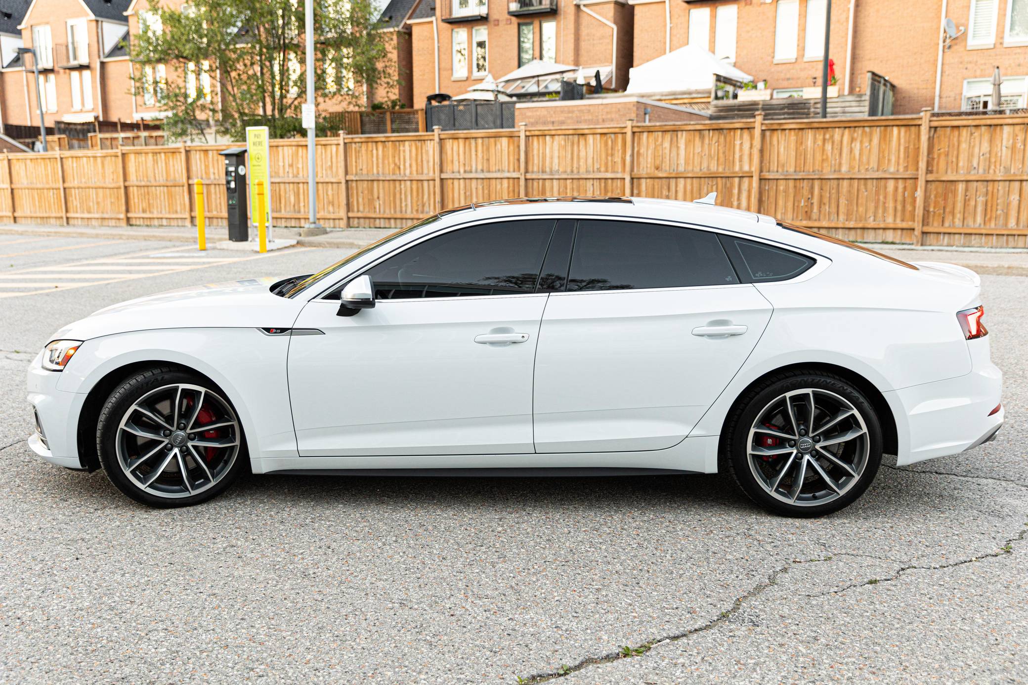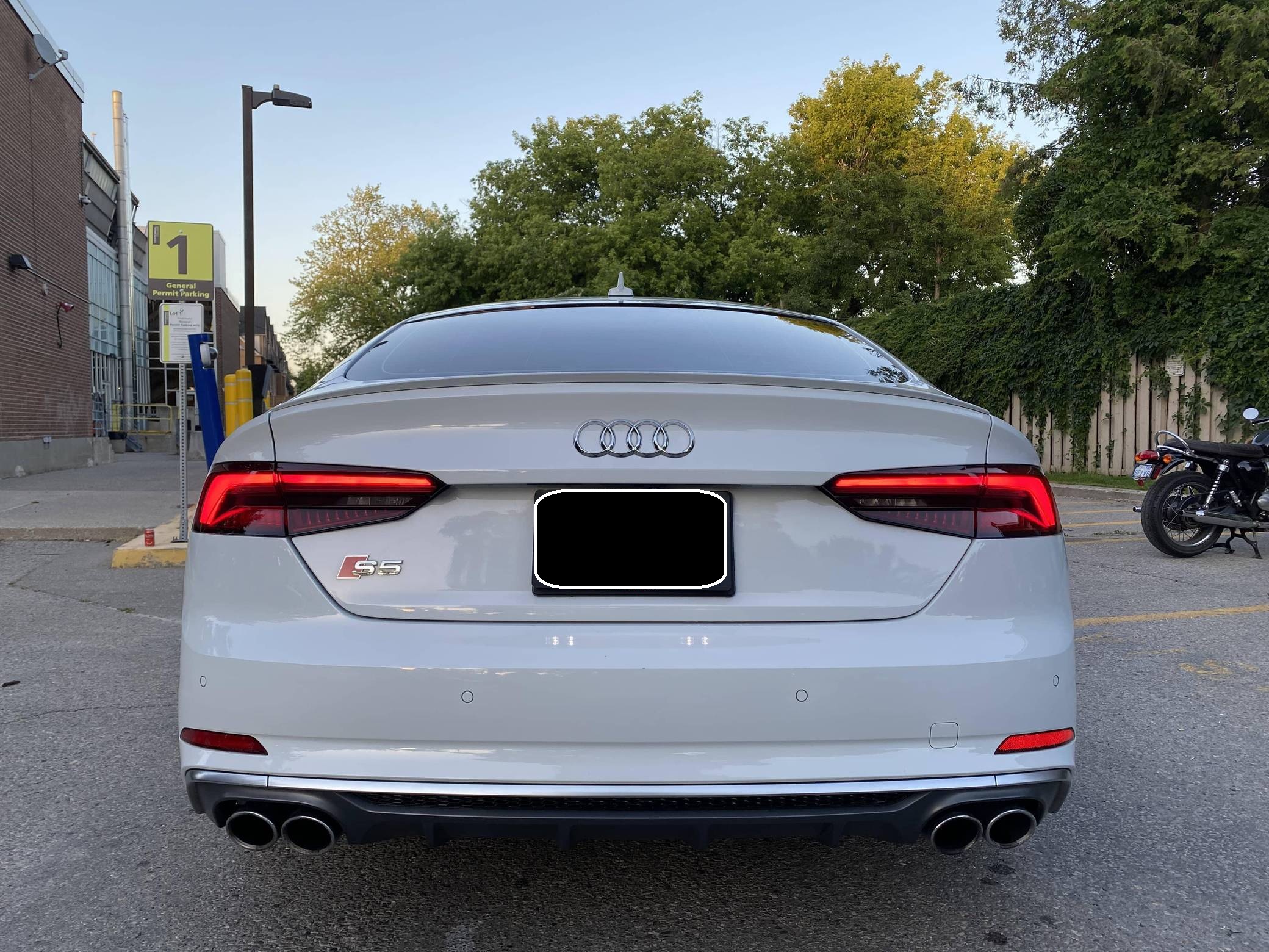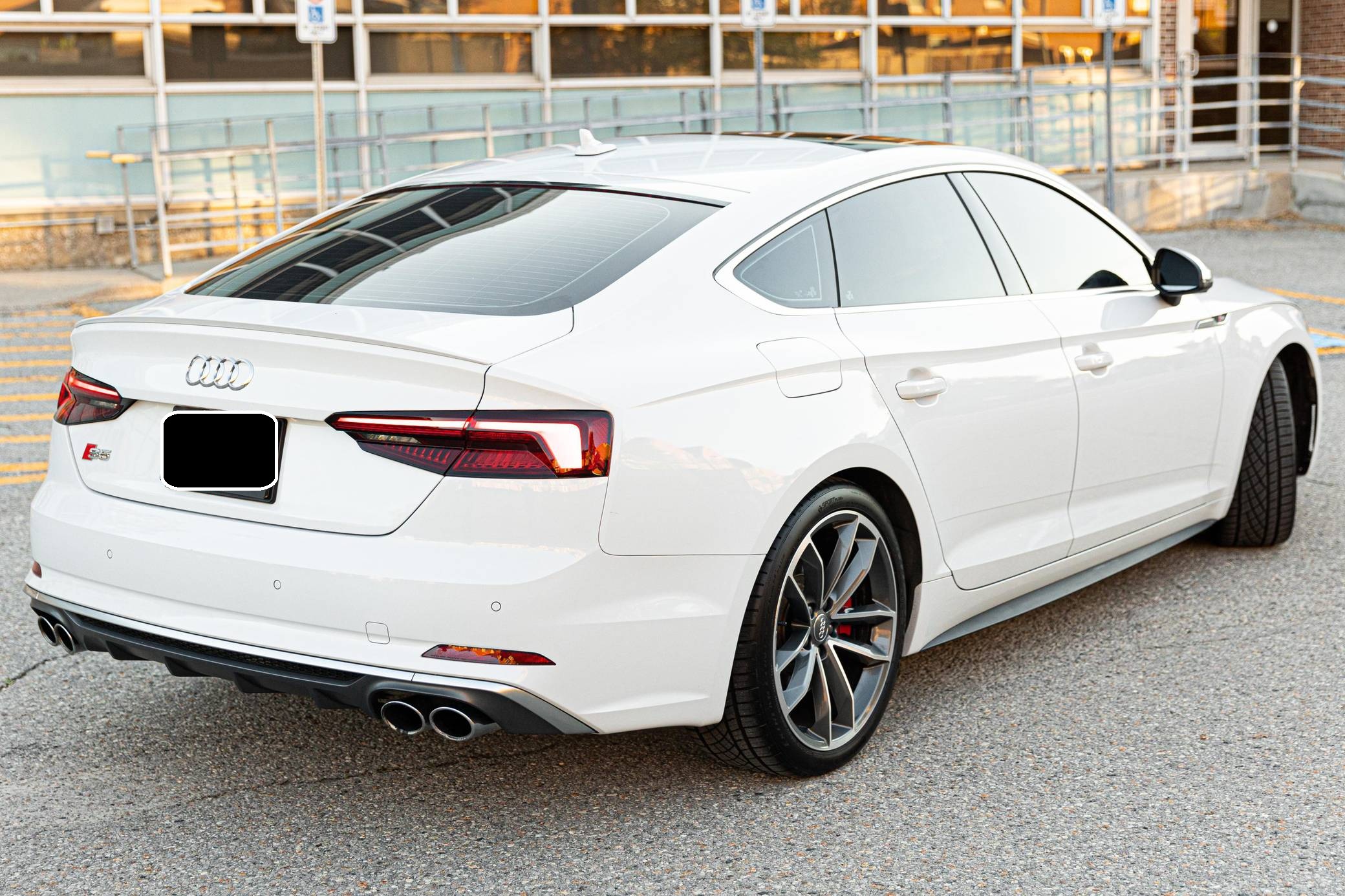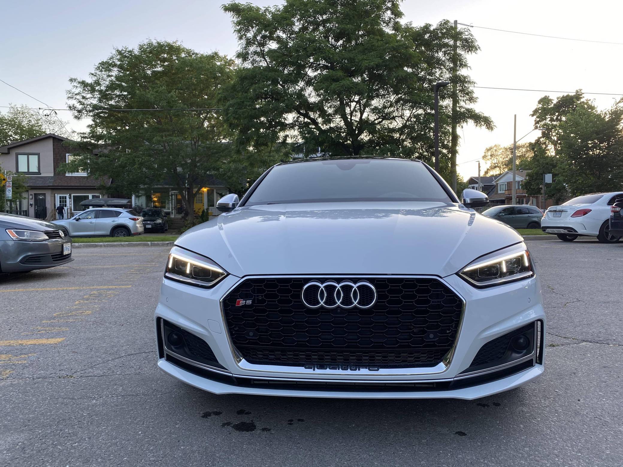 2018 Audi S5 Sportback, finished in Glacier White Metallic with a black interior. This Audi S5 is a Canadian-spec example. The odometer reads in kilometers and displays approximately 49,200 kilometers or roughly 30,600 miles. A build sheet from Audi is provided and indicates that this S5 is a Prestige trim model (Technik, for the Canadian market) that is equipped with the Advanced Driver Assistance Package, 19-inch 5-spoke "Cavo-Design" wheels, sport suspension, a self-locking center differential, Carbon Atlas interior trim, heated front sport seats with a massage function, a Bang & Olufsen sound system, LED headlamps, and more as detailed below. Modifications reported by the seller are limited to a gloss-black honeycomb-style front grille, tinted windows, a Fortin remote-start system, and a VIOFO dash camera. Audi released the Sportback variant of the second-generation S5 for the 2018 model year, and was to the A4 what the A6 was to the A7: it was closely related to its sedan counterpart underneath the sheet metal but it stood out with a swoopy, fastback-like silhouette. The S5 model neatly fills the gap between the base A5 and the full-fat RS5. Power comes from a 3. 0-liter turbocharged "TFSI" V6, rated at 354 horsepower and 369 lb-ft of torque. Output is sent to all four wheels via an 8-speed automatic transmission and Audi's Quattro permanent all-wheel-drive system.