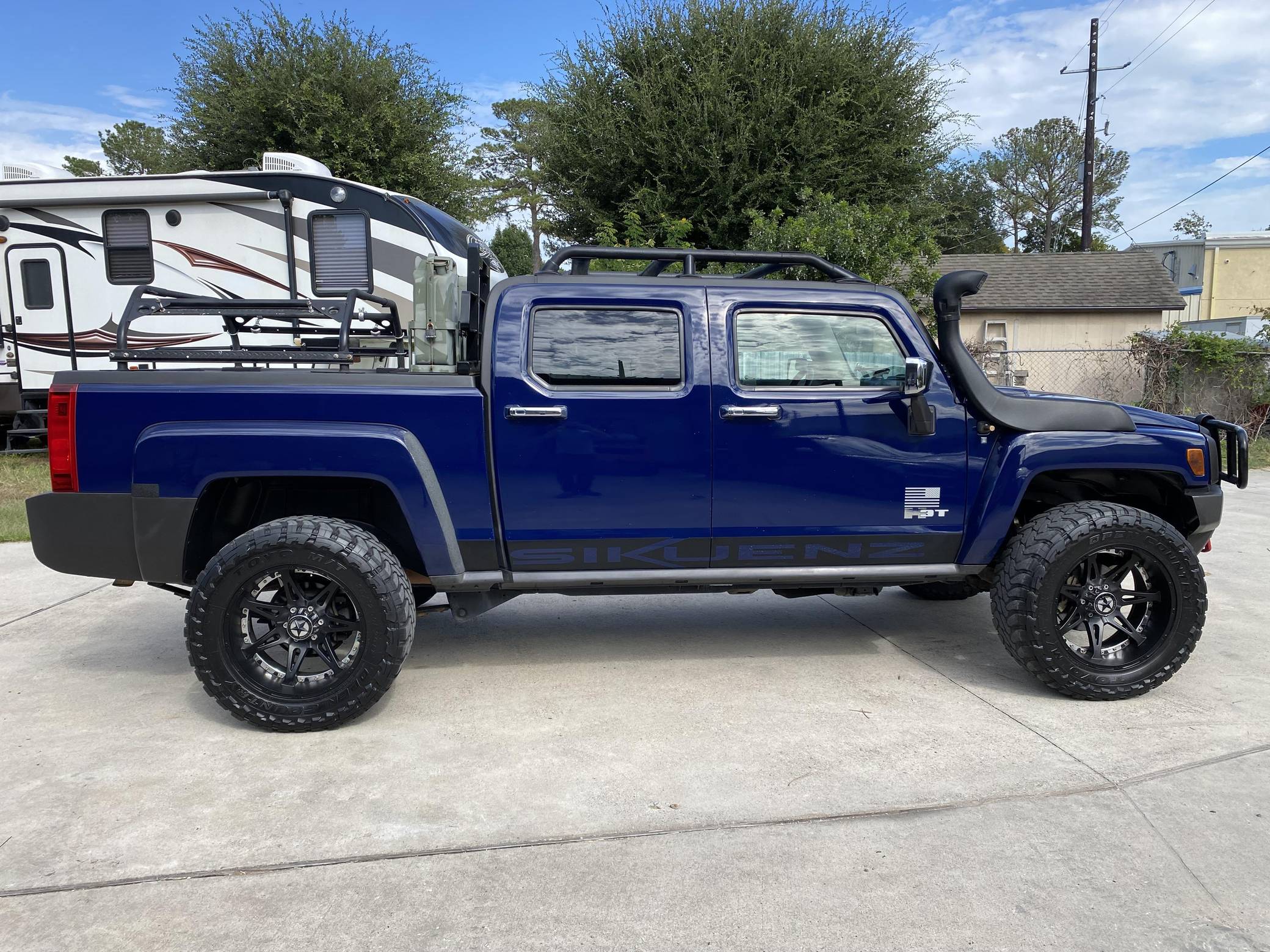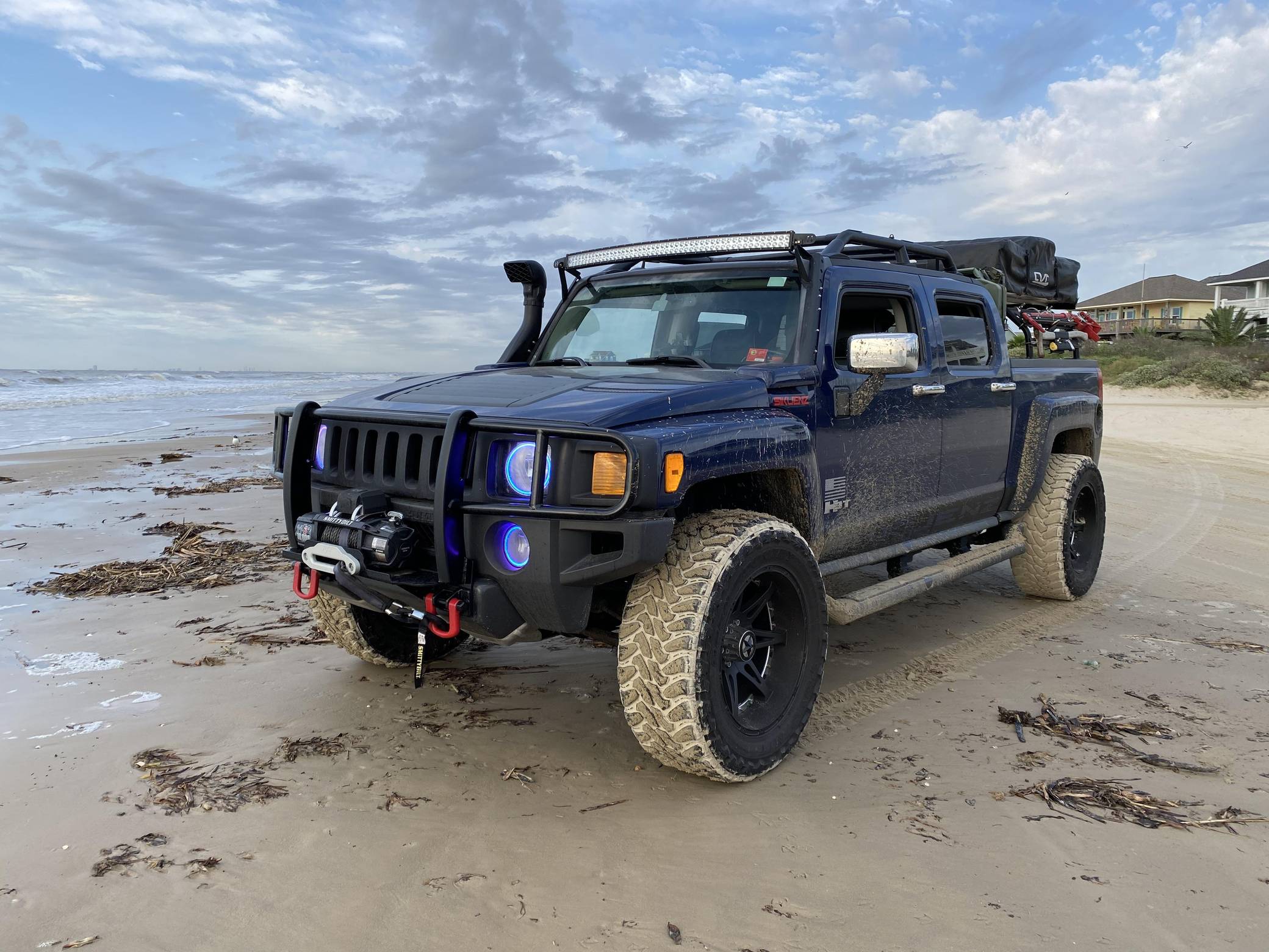 THIS… is a 2009 Hummer H3T Alpha, finished in All Terrain Blue with an Ebony interior. An RPO code list is provided in the photo gallery, and a partial list of notable equipment includes chrome exterior trim, Alpha-specific badges, leather upholstery, power-adjustable and heated front seats, and more as detailed below. Modifications reported by the seller include 20-inch Lonestar Offroad 711 "Warrior" wheels, Bilstein suspension, a Smittybilt X20 10,000-lb winch, a custom roof rack and overland bed rack, ORACLE Lighting exterior lighting, and more as detailed below. Launched in 2009, the H3T is derived from the H3 SUV, with 22. 3 inches added to the wheelbase and a 5-foot composite cargo bed. Most were equipped with an inline-5 engine, but the Alpha version was powered by a much larger V8 engine. The Alpha also received a higher-quality interior and other niceties to further justify the $8,565 increase in cost over the base H3. Power comes from a 5. 3-liter V8, rated at 300 horsepower and 320 lb-ft of torque. Output is sent to all 4 wheels via a 4-speed automatic transmission and a 2-speed transfer case.