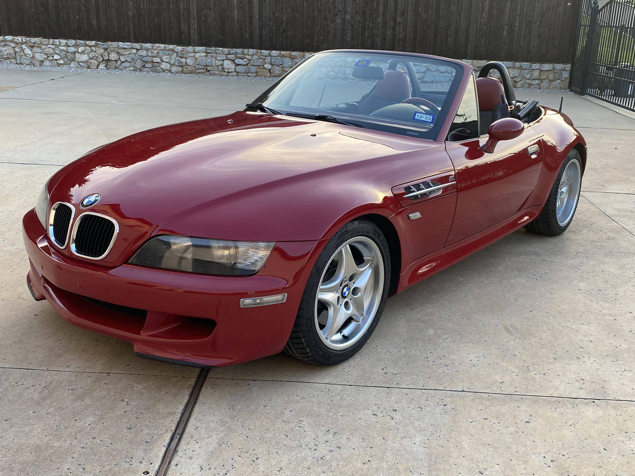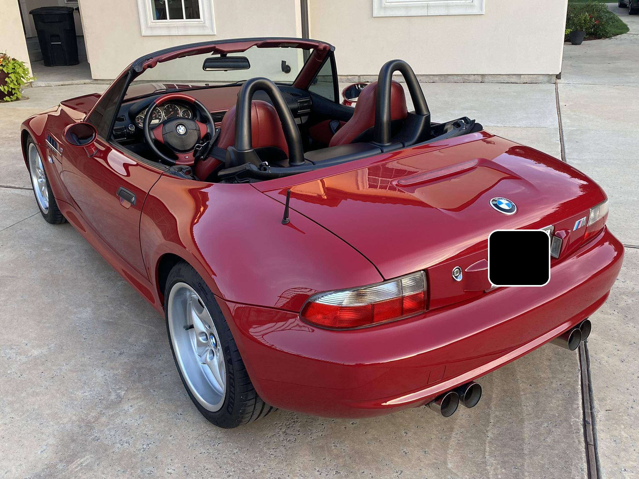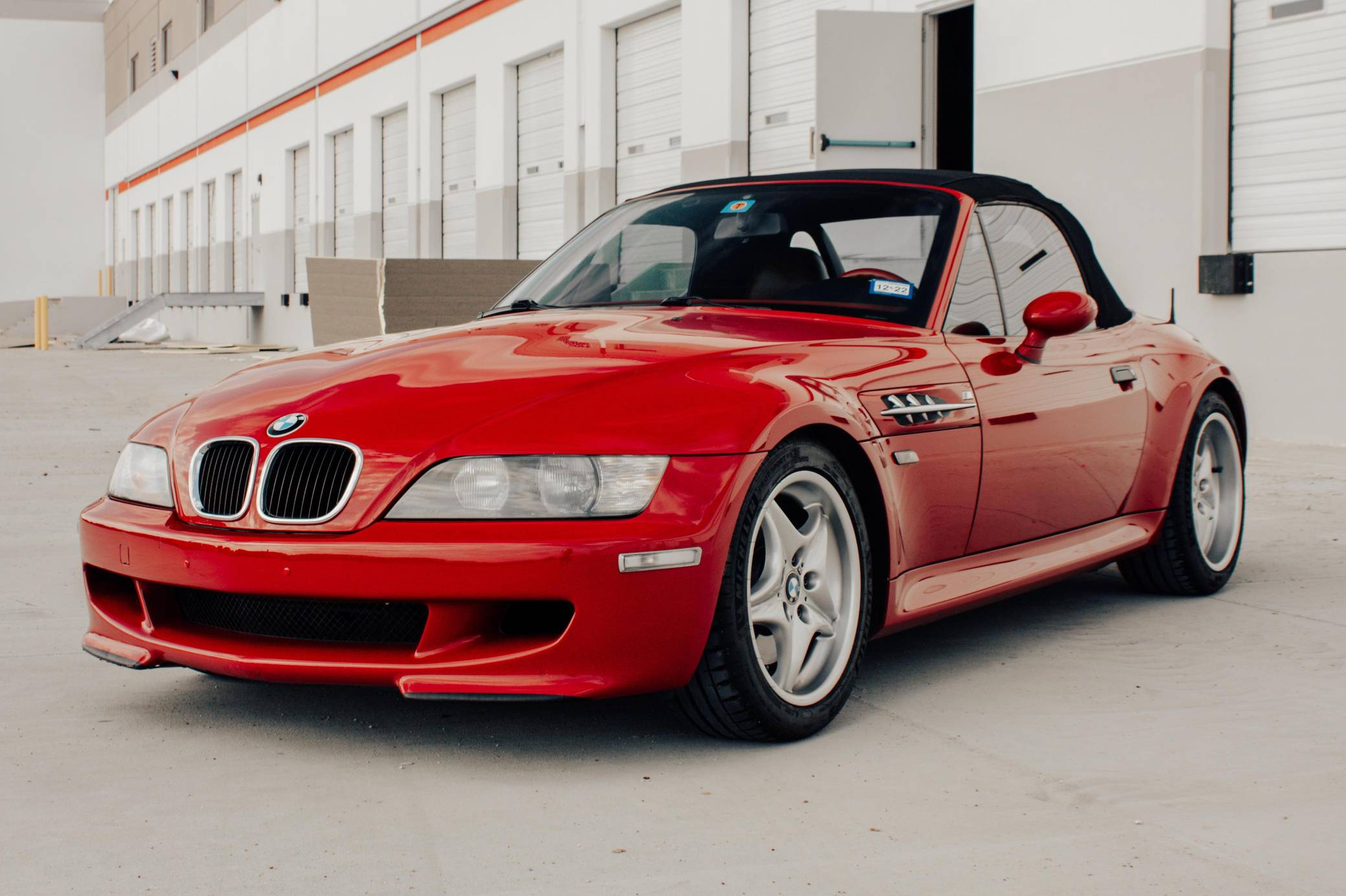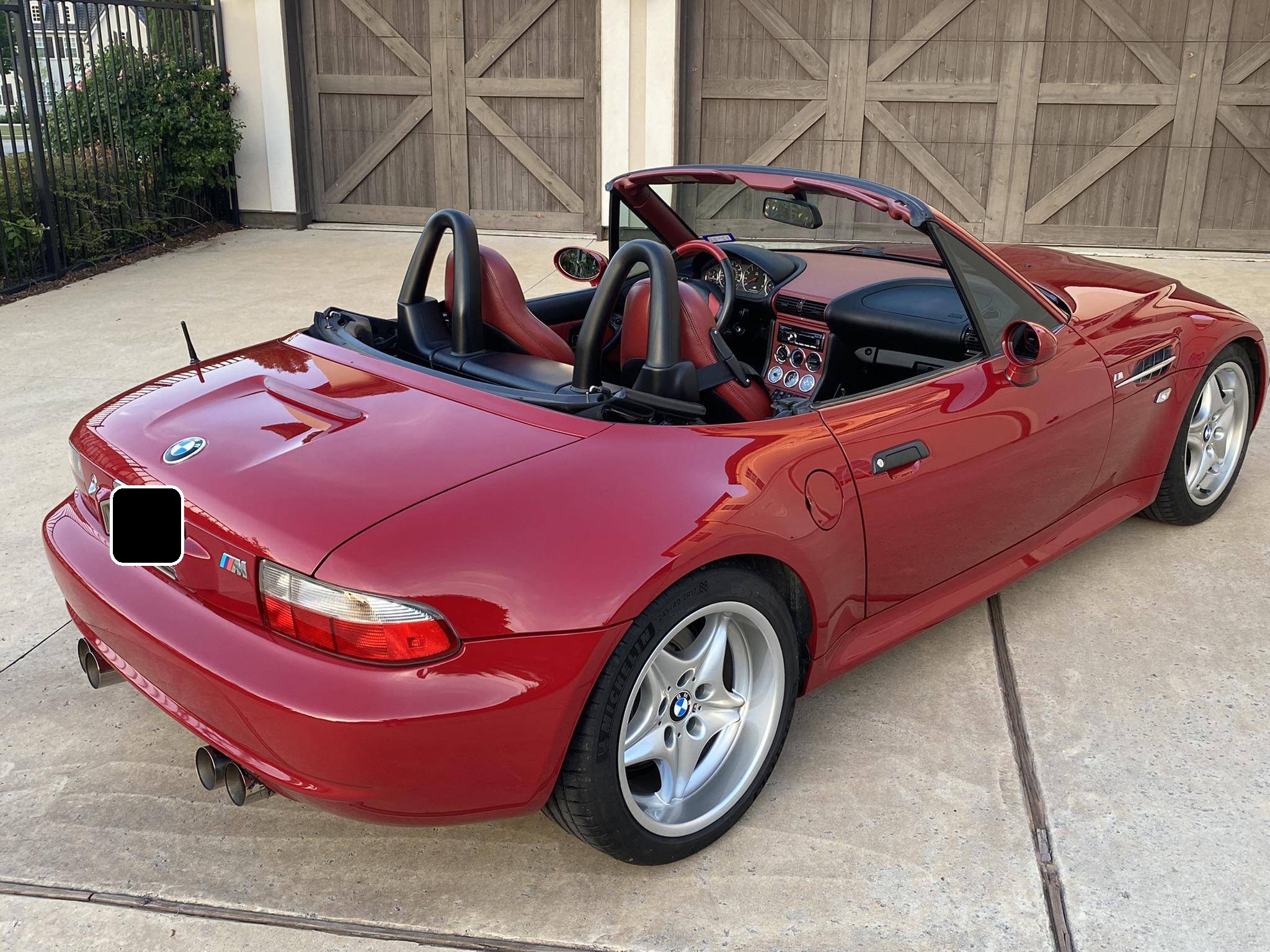 1999 BMW Z3 M Roadster, finished in Imola Red with a black soft top and an Imola Red and black two-tone interior. This Z3 M features the desirable 5-speed manual transmission. According to the build sheet provided in the gallery, factory equipment includes 17-inch Style 40 wheels, a limited-slip differential, a power-retractable soft top, leather upholstery, air conditioning, cruise control, and a Harman/Kardon sound system. Modifications reported by the seller include Ground Control coilovers, an Eisenmann exhaust, and a reinforced rear subframe. Photos detailing the subframe reinforcement are shown in the gallery. Based on the Z3, the M Roadster made its debut in 1998 with a more powerful engine shared with the E36 M3, a sportier suspension system, and wider wheel arches, among other changes. It was immediately hailed as one of the best driver's cars on the market. Power comes from an "S52" 3. 2-liter straight-6, rated at 240 horsepower and 236 lb-ft of torque. Output is sent to the rear wheels via a 5-speed manual transmission.