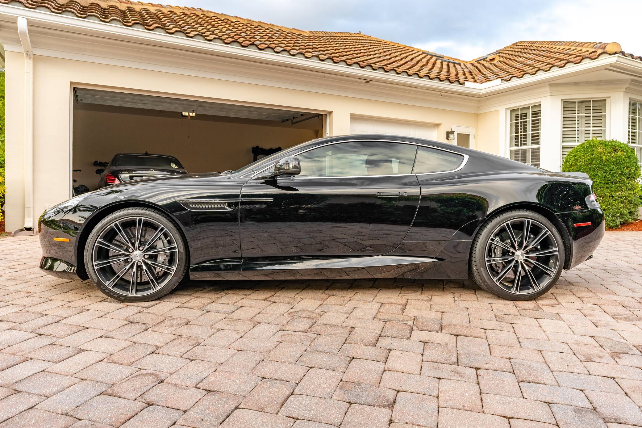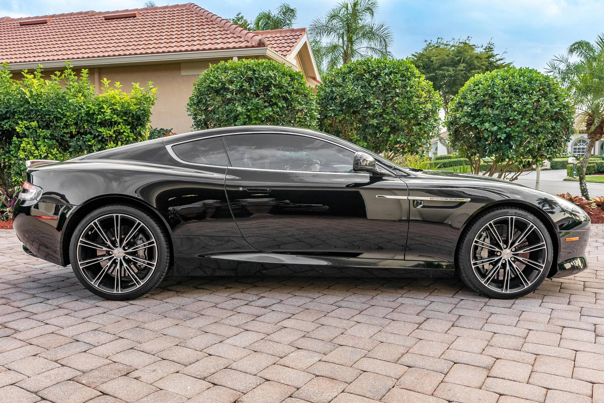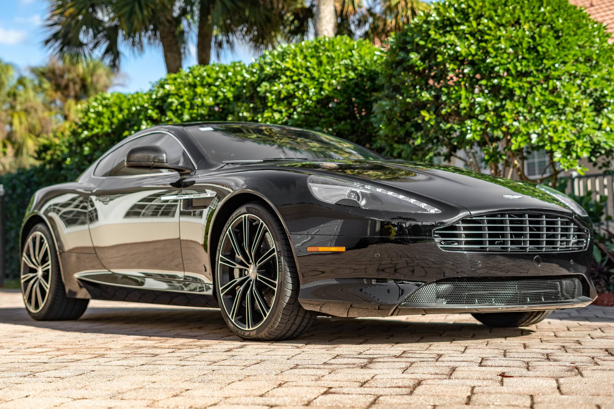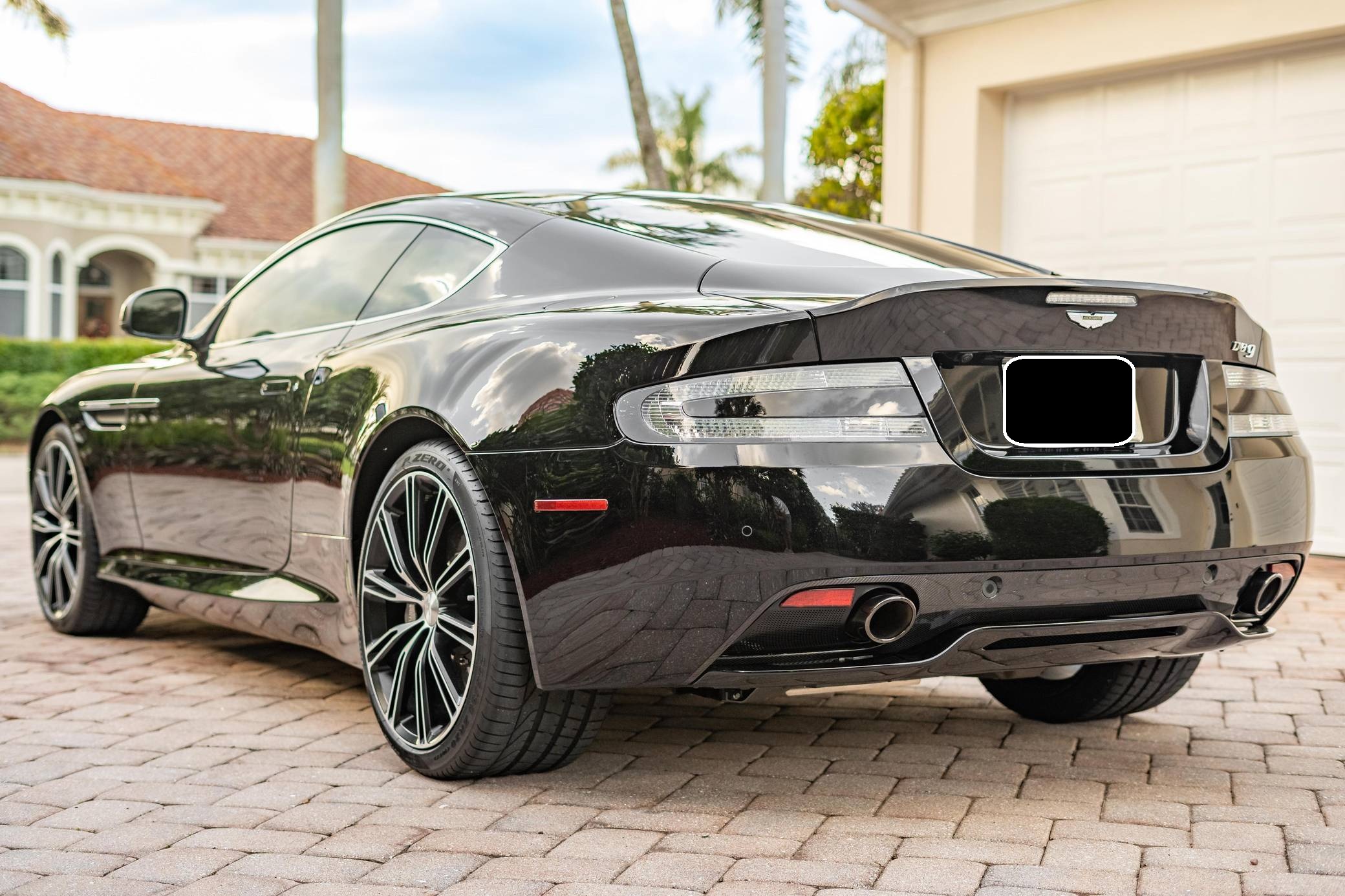 2014 Aston Martin DB9 Coupe, finished in Jet Black with an All Pure Black interior with white contrast stitching. The odometer on this Aston Martin currently displays about 8,000 miles. Equipment includes 20-inch alloy wheels, the Exterior Carbon Package, Carbon Interior Package, carbon ceramic brakes, a 3-stage Adaptive Damping System, Bridge of Weir leather upholstery, a 700W premium audio system, heated front seats, a navigation system, front and rear parking sensors, and more as detailed below. The seller reports no modifications. Designed by Ian Callum and Henrik Fisker, the DB9 made its debut for 2005 to replace the DB7. It was built on a new aluminum-intensive platform and it inaugurated a thoroughly revised version of the firm's 5. 9-liter V12. While it remained a 2+2 grand tourer, the DB9 handled markedly better than its predecessor thanks in part to a 50/50 weight distribution achieved by moving the V12 back in the engine bay and fitting a rear-mounted transaxle. Production ended in 2016 when it was replaced by the DB11. Power comes from a 5. 9-liter V12, rated at 510 horsepower and 457 lb-ft of torque. Output is sent to the rear wheels via a 6-speed automatic transmission.