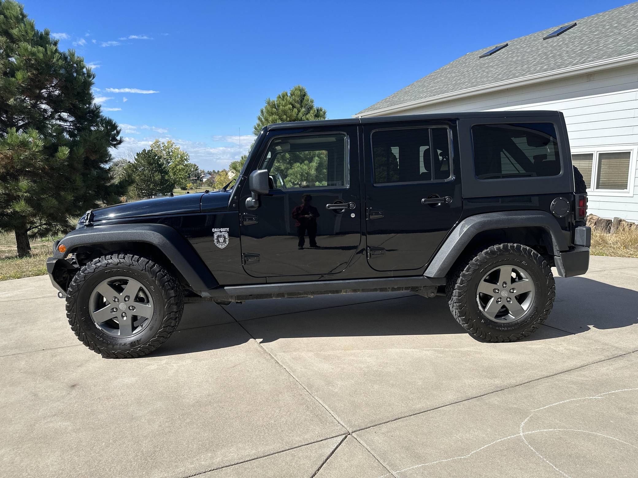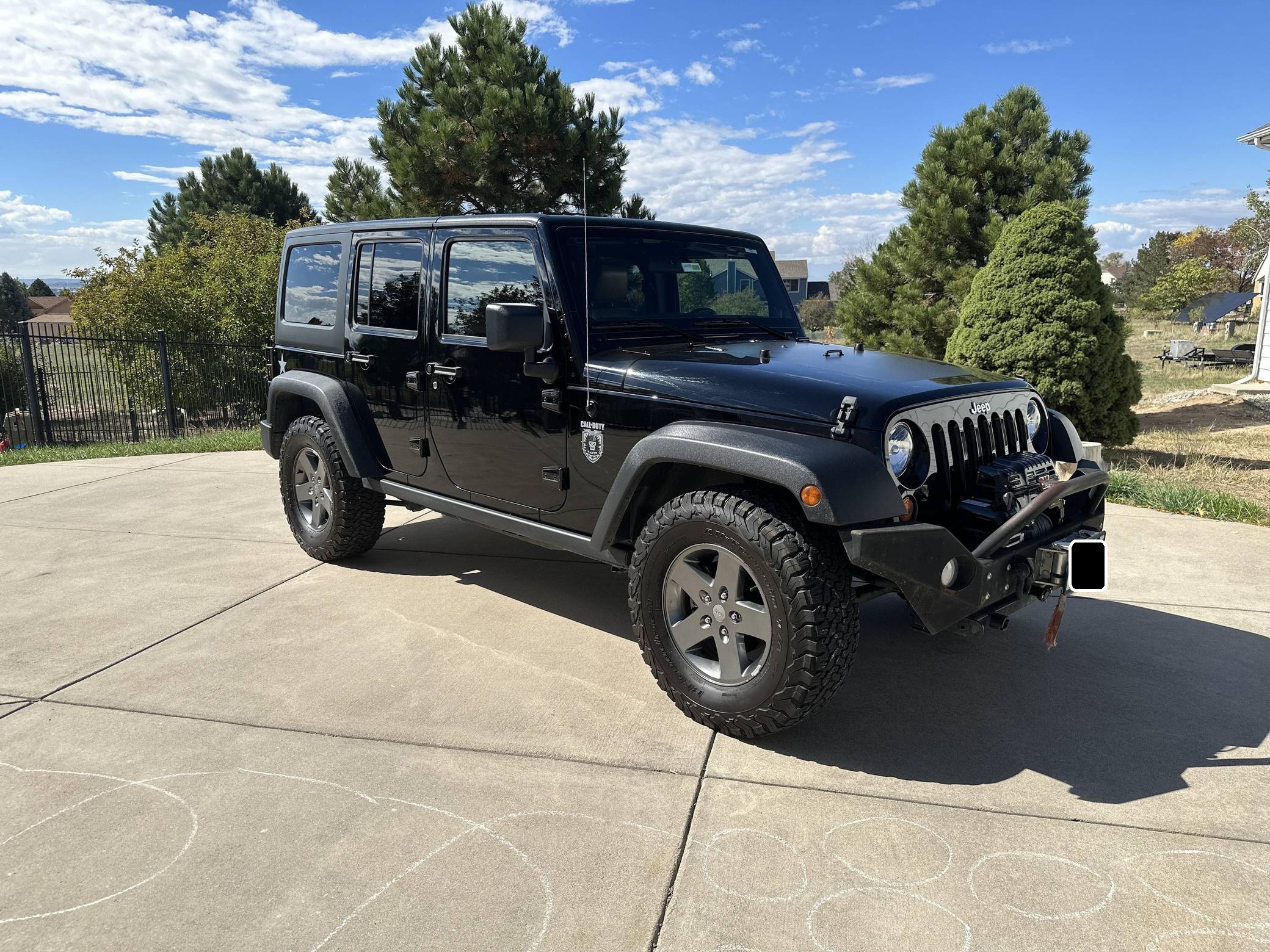 THIS. . . is a 2011 Jeep Wrangler Rubicon Unlimited Black Ops 4x4, finished in black with a black hardtop and Saddle Brown and black interior. The odometer currently displays approximately 31,700 miles. Factory equipment includes the Call of Duty: Black Ops Edition package, the Trailer Tow Group, the Customer Preferred Package 24R, Tru-Lok electronic locking front and rear differentials, a 3-piece removable Freedom Top, heated front seats, and a 6. 5-inch touchscreen Media Center. Modifications reported by the seller include a steel front bumper, a WARN PowerPlant 9. 5 9,500-pound winch with air compressor, and a Blue Ox RV tow bar base plate with wiring harness. Introduced for the 2007 model year, the "JK" was the third-generation Wrangler. The sought-after range-topping Rubicon variant was the off-road model of the lineup that came standard with front and rear Dana 44 axles with electric lockers, a Rock-Trac 4WD system with 4:1 transfer case, and an electronic releasing sway bar, among other features. Power comes from a 3. 8-liter V6, rated at 202 horsepower and 237 lb-ft of torque. Output is sent to all four wheels via a 4-speed automatic transmission and a two-speed “Rock-Trac” transfer case.