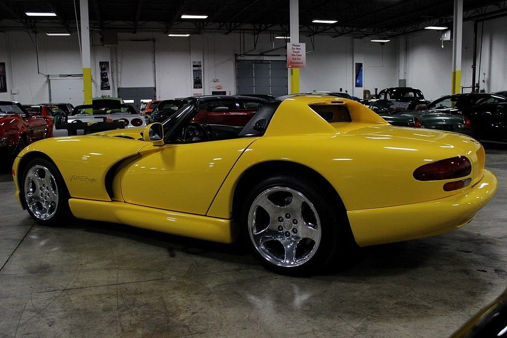This Viper is finished in yellow over a black leather interior and is in very good condition. The Viper was initially conceived in late 1988 at Chrysler's Advanced Design Studios. Chrysler President, Bob Lutz, suggested to Tom Gale at Chrysler Design that the company should consider producing a modern Cobra and a clay model soon came. The Viper appeared as a concept at the North American International Auto Show in Detroit in February 1989. Public reaction was so enthusiastic that chief engineer Roy Sjoberg was directed to develop it as a standard production vehicle. Development began in March 1989 when Chrysler asked then subsidiary Lamborghini to cast a prototype aluminum block based on Dodge's V10 truck engine for sports car use. Official approval from Chrysler Chairman Lee Iacocca came in May 1990. One year later, Carroll Shelby piloted a pre-production car as the pace vehicle in the Indianapolis 500 race. In November 1991, the car was released to reviewers with first retail shipments beginning in January 1992. The Gen 2 Viper was built between 1996-2002 and all though it still retained the massive 8.0L 488ci V10 engine under the hood, it now produced 450hp and 490lb.ft. of torque still mated to a 6-speed manual. The Gen 2 was also 60lbs. lighter, 25% stiffer, and received a thoroughly redesigned suspension which increased the lateral grip to 1.01g. These modifications also increase acceleration and made it capable of achieving 0-60mph in 4 seconds and blazing through the ¼ mile in 12.2 seconds at 119mph onto a top speed of 185mph. These second generation Vipers are still known for their raw power and but more so for their increased convenience such as having power windows, exterior door handles, and an easily attachable hardtop. The current owner has cared for it since 2012 when it was purchased in Maryland from the original owner. It comes with the original books, manuals, and keys. With just over 23,000 original miles, this snake has plenty of street cruising ahead of it and is a great investment with high potential for appreciation in the future.