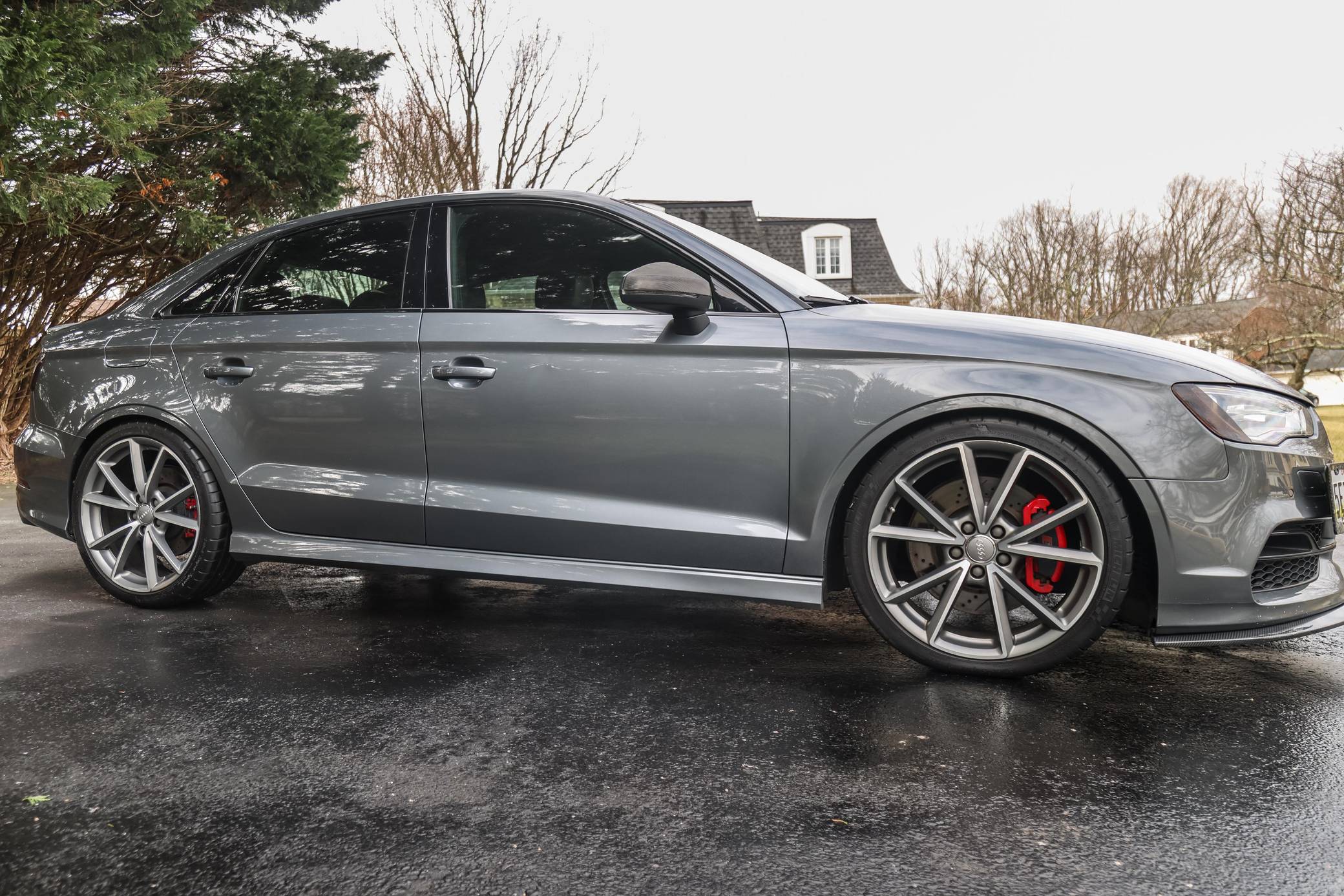 THIS. . . is a 2016 Audi S3, finished in Monsoon Gray Metallic with a black interior. According to the build sheet provided in the gallery, factory equipment includes the Technology and Black Optic Performance packages, a power sunroof, leather upholstery, power-adjustable and heated front seats, dual-zone automatic climate control, Audi side assist, and a Bang & Olufsen sound system. Modifications reported by the seller include an APR exhaust system, an Integrated Engineering carbon fiber intake system, a carbon fiber front lip splitter, a carbon fiber rear diffuser, and an aftermarket carbon fiber and Alcantara steering wheel. Audi positioned the first-generation A3 Sedan at the bottom of its American range for the 2015 model year, and it simultaneously released the S3 as a sportier alternative. Built on the versatile MQB platform, both models offered the luxury, sharp styling, and performance that Audi is known for in a package that was smaller and more affordable than the A4. Power comes from a 2. 0-liter turbocharged 4-cylinder engine, rated at 292 horsepower and 280 lb-ft of torque in stock form. Due to the modifications performed to this S3, it may produce more power, but a dyno sheet was not provided to confirm. Output is sent to all four wheels via a 6-speed dual-clutch automatic transmission and Audi's Quattro permanent all-wheel-drive system.