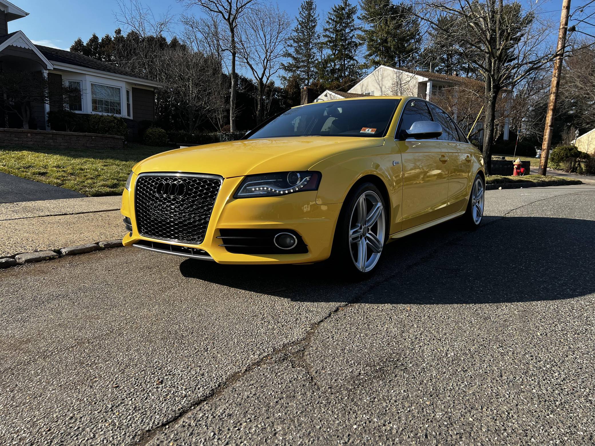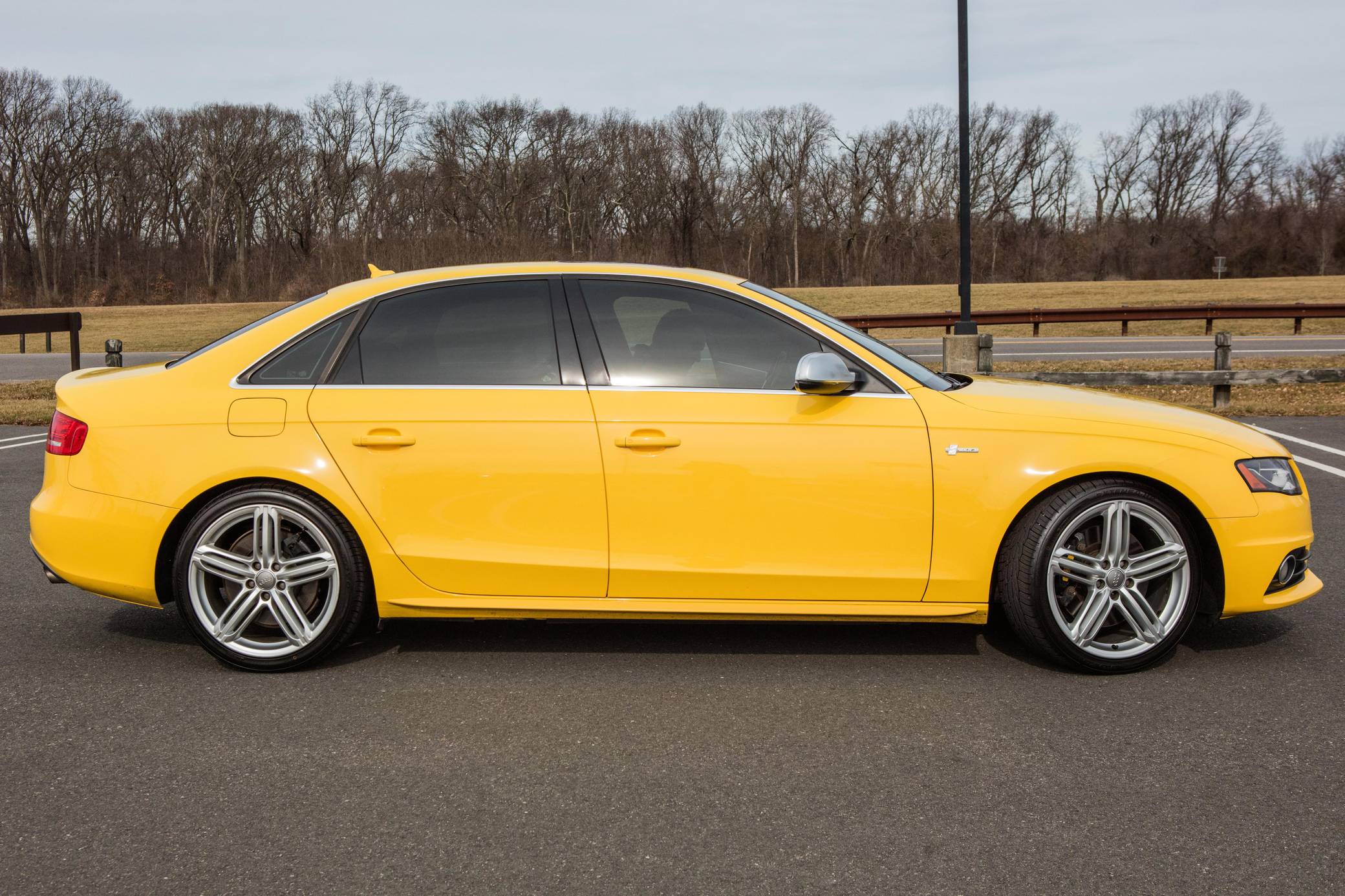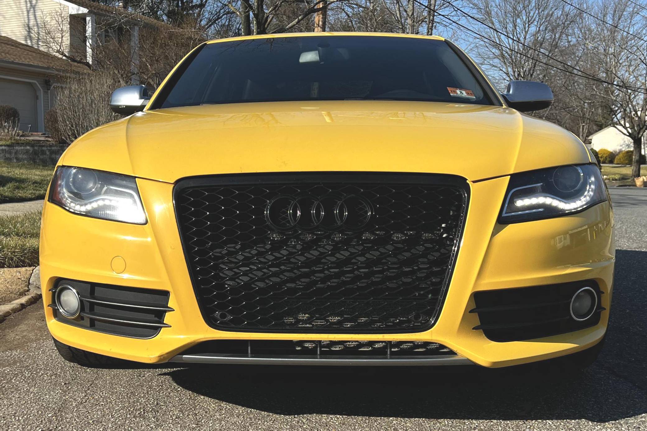 THIS… is a 2010 Audi S4, finished in Imola Yellow with a black interior. This S4 features the desirable 6-speed manual transmission. It also confirms that this is a 2-owner car. According to the build sheet provided in the gallery, factory equipment includes the Light Package, 19-inch wheels, sport suspension, leather and Alcantara upholstery, power-adjustable, heated front sport seats, a 3-zone automatic climate control, and more as listed below. Modifications reported by the seller include an APR cold air intake, a Stasis ECU flash tune, an RS4 front grille front door projector lights, paint protective film on the front end, and tinted windows. Called "B8" internally, the fourth-generation Audi A4 arrived for 2009, and the quicker S4 made its debut for 2010. While it surfed the downsizing wave by swapping its predecessor's V8 for a V6, it offered enthusiasts more torque and quicker acceleration. Engineers gave the Quattro system a rear bias for better handling, and the S4 reflected Audi's upmarket push by offering luxury and tech in spades. Power comes from a "TFSI" 3. 0-liter supercharged V6, rated at 333 horsepower and 325 lb-ft of torque in stock form. Due to the modifications performed to this S4, it may produce more power, but a dyno sheet was not provided to confirm. Output is sent to all four wheels via a 6-speed manual transmission and Audi's Quattro permanent all-wheel drive system.
