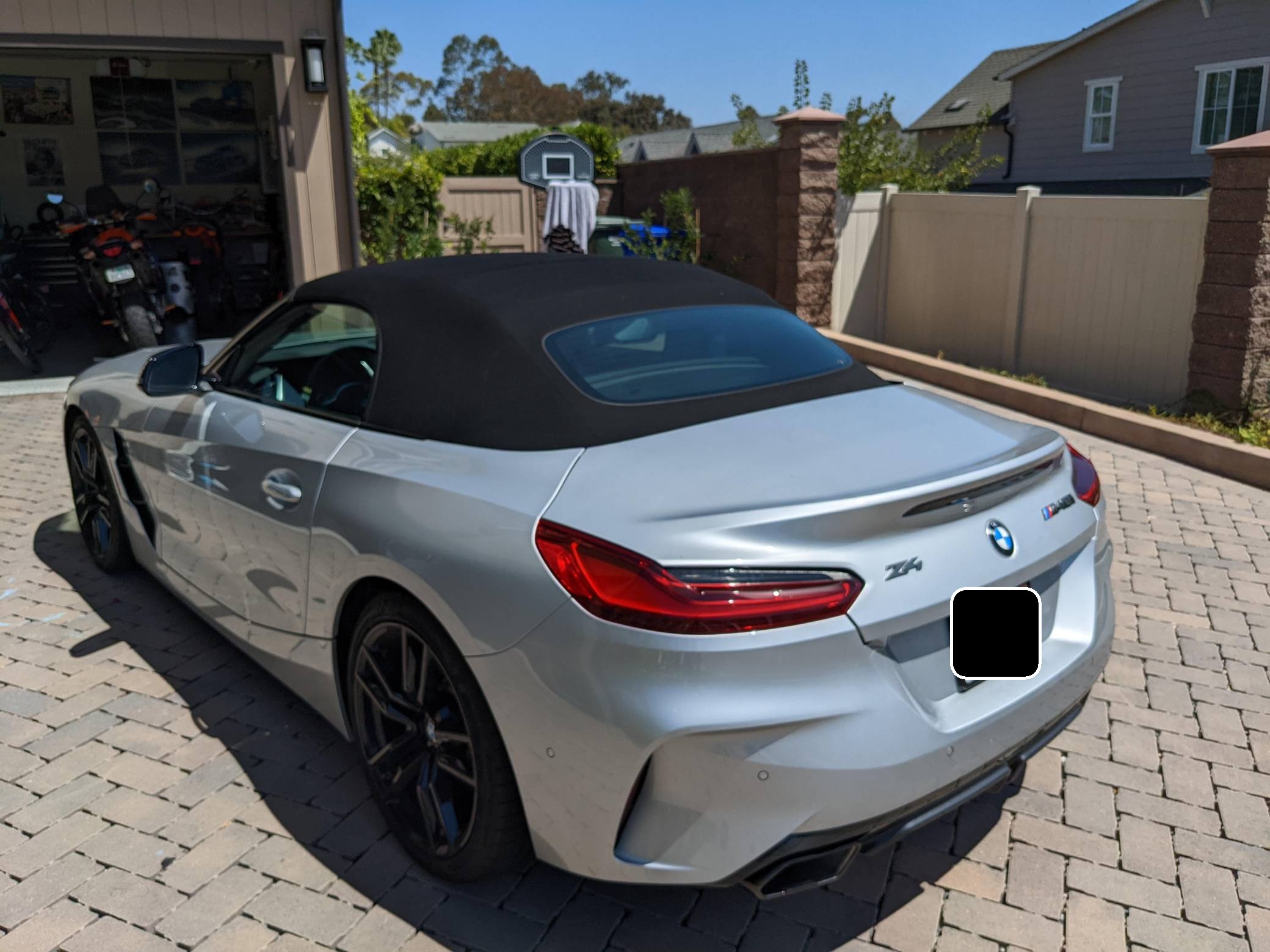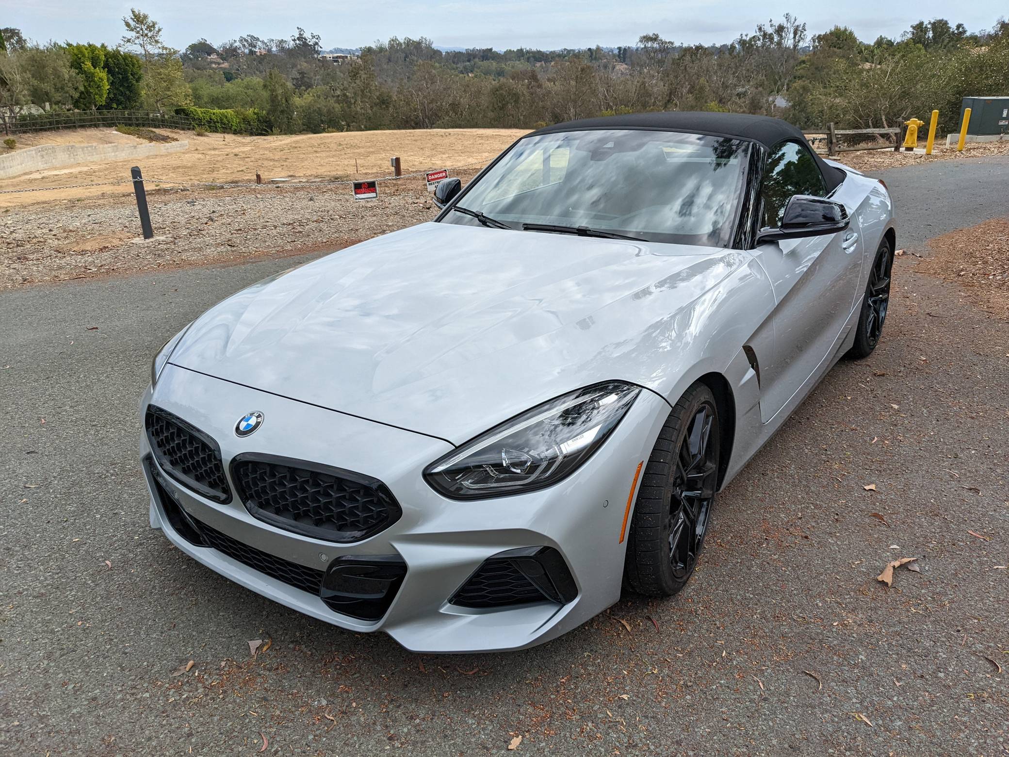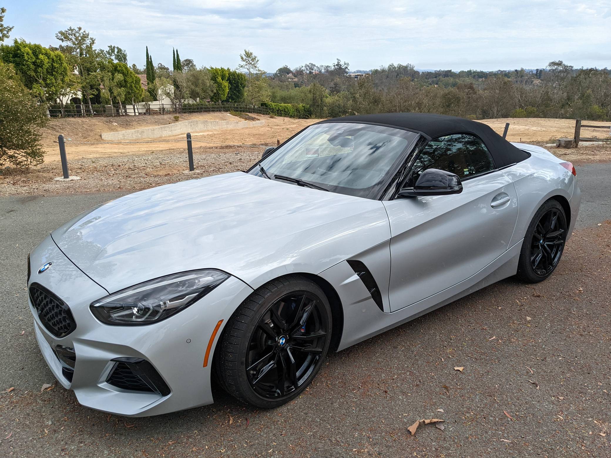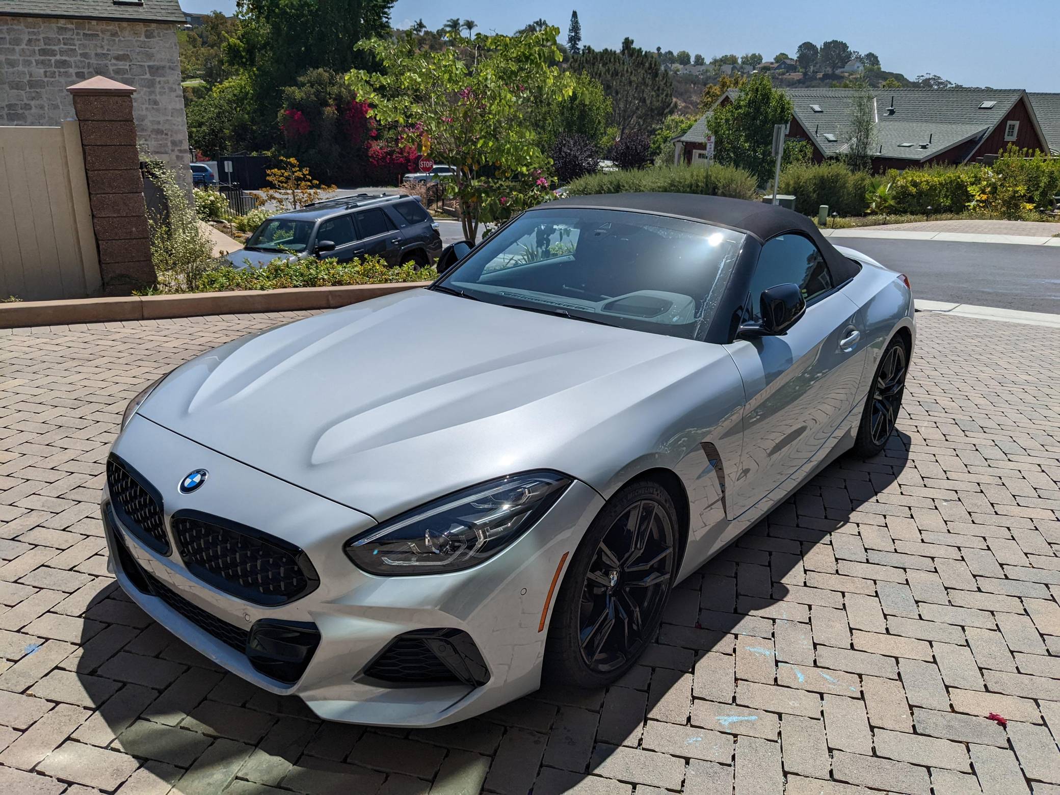 THIS… is a 2021 BMW Z4 M40i, finished in Glacier Silver Metallic with a Cognac interior. This BMW's odometer currently displays about 4,500 miles. A partial list of notable equipment includes Driving Assistance, Shadowline, and Executive Packages, 19-inch Style 799M wheels, M Sport differential, adaptive M suspension, Vernasca leather upholstery, heated and power-adjustable M sport front seats, heated steering wheel, dual-zone automatic climate control, Park Assist, and a navigation system. The seller reports no modifications. Called "G29" internally, the third-generation Z4 made its debut for 2018 as a soft top convertible to replace the hardtop-only E89-generation Z4. The G29 Z4 also offered enthusiasts a more sculpted exterior design, a nicer interior, and an available turbocharged straight-6 engine. Built in Austria, the G29-generation Z4 is built alongside the Toyota Supra. Power comes from a 3. 0-liter turbocharged straight-6, rated at 382 horsepower and 369 lb-ft of torque. Called "B58" internally, it spins the rear wheels via an 8-speed automatic transmission.