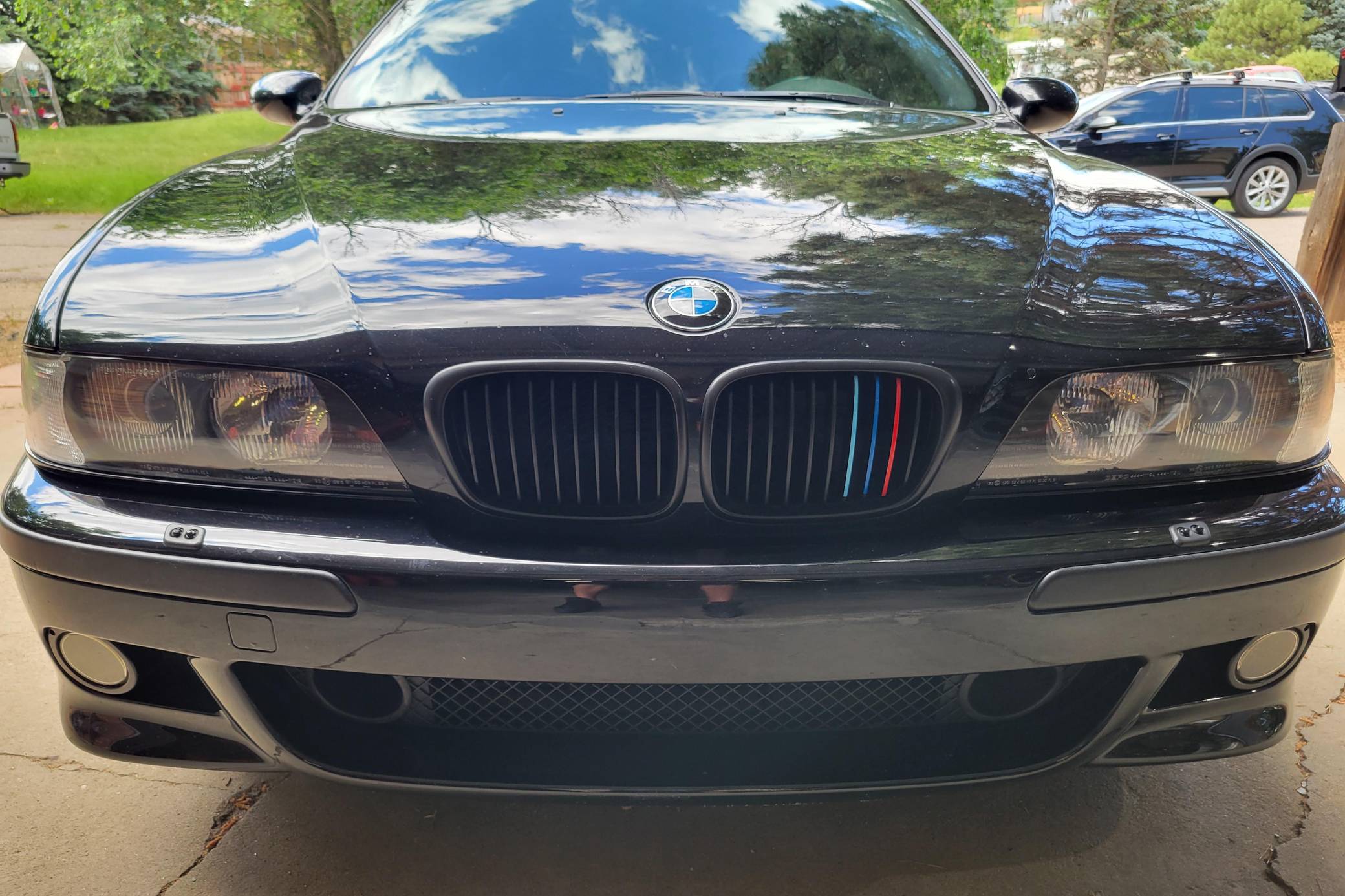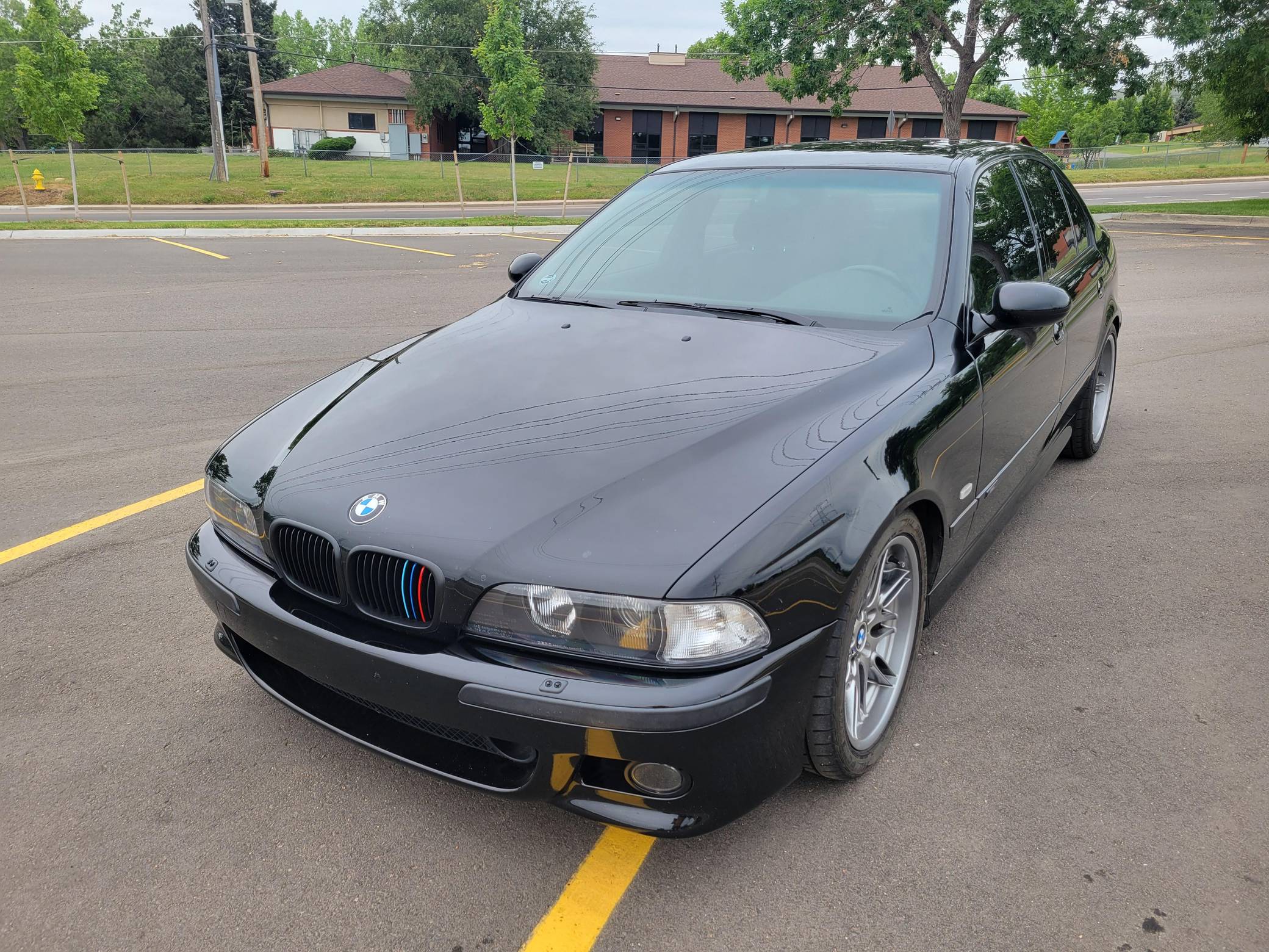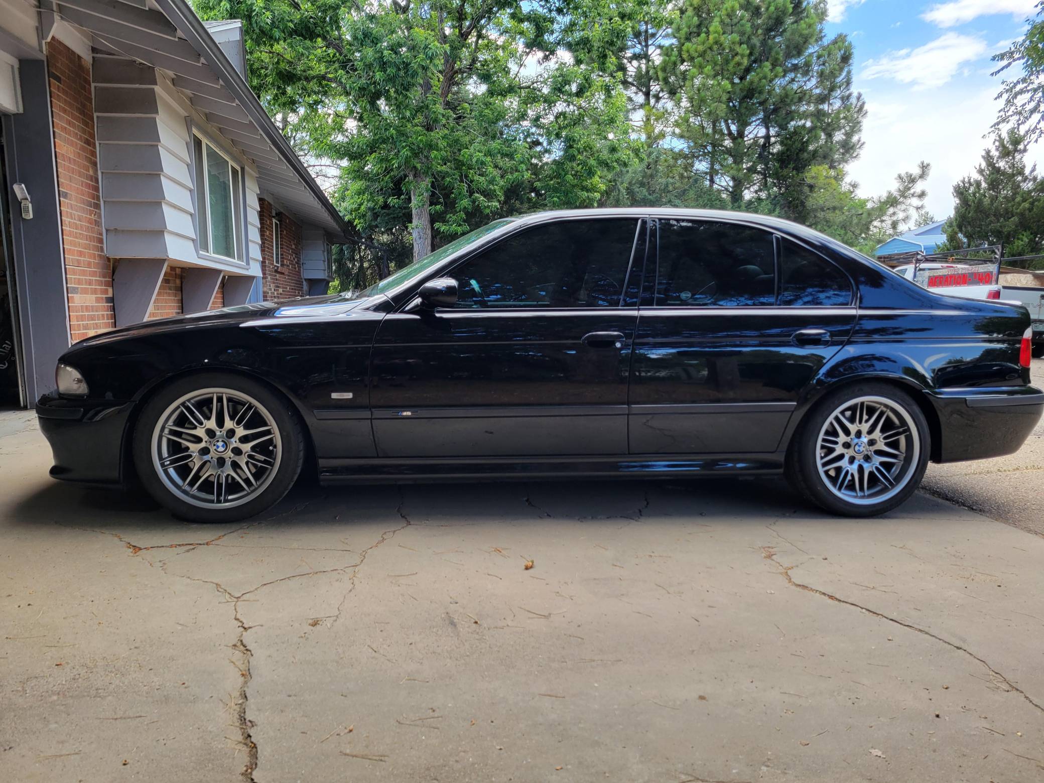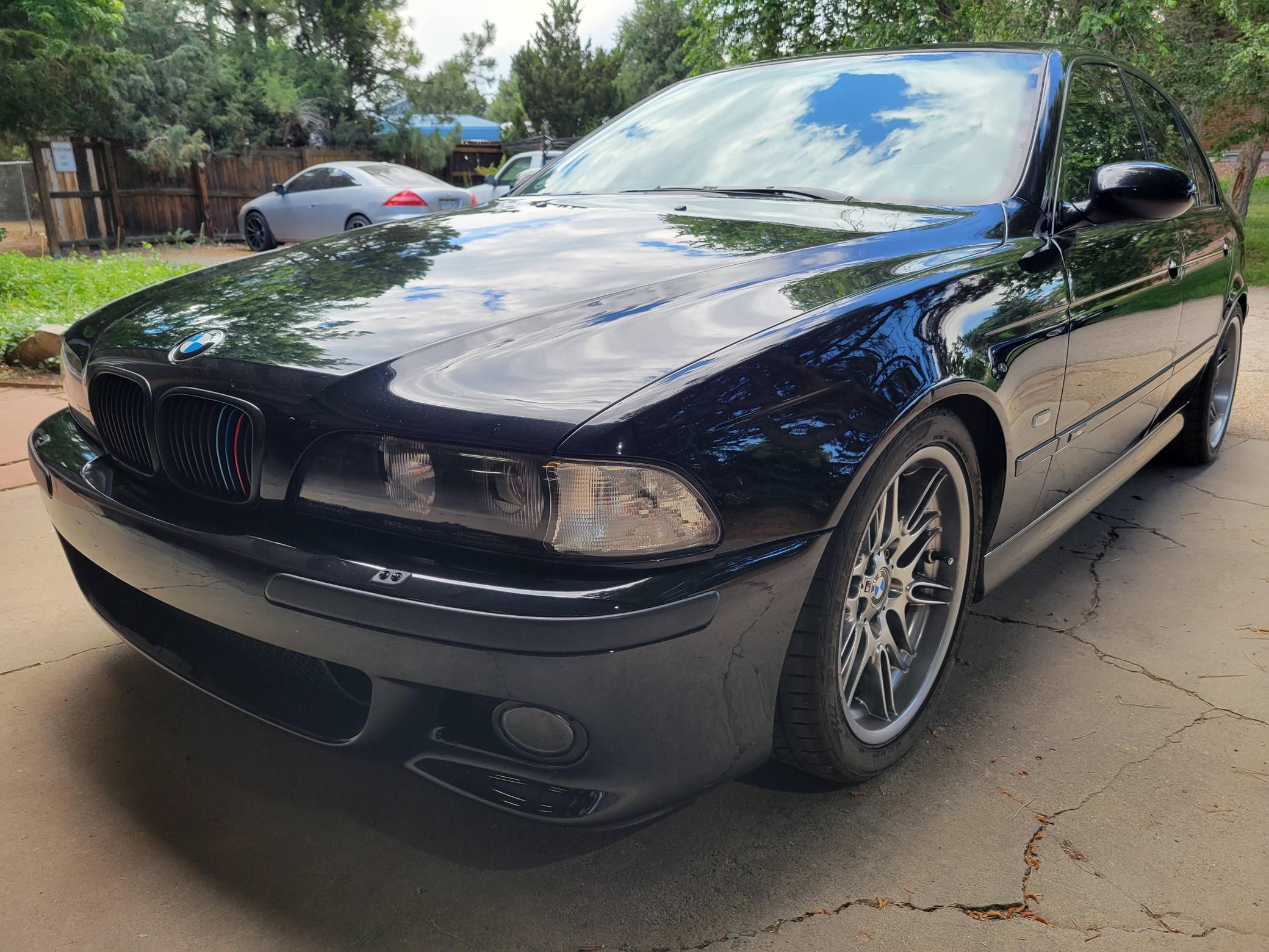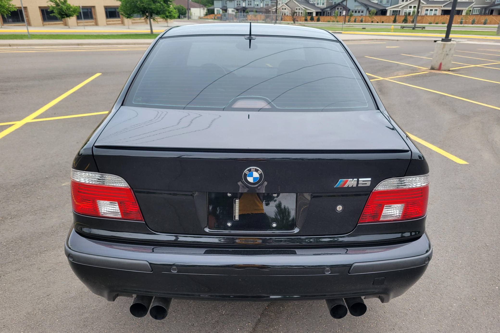 2000 BMW M5, finished in Jet Black with a black interior. This M5 is a Canadian-spec model that was originally purchased in British Columbia, Canada. According to the build sheet provided in the gallery, factory equipment includes 18-inch Style 65 wheels, headlight washers, a power sunroof, heated and power-adjustable front seats with memory, rear sunshades, Park Distance Control (PDC), and a 6-disc CD changer. Modifications reported by the seller include a Dinan exhaust and carbon fiber cold air intake, a gray-faced instrument cluster, and black kidney grilles. Heralded by brand enthusiasts as the best of its breed, the "E39"-generation M5 arrived in America for the 2000 model year. It was the first of several M-developed cars powered by a V8 engine, and it was exclusively available with a 6-speed manual transmission. Car & Driver crowned it "the most desirable sedan in the world" in 2000. Power comes from an "S62" 4. 9-liter V8, rated at 394 horsepower and 369 lb-ft of torque. Output is sent to the rear wheels via a 6-speed manual transmission.