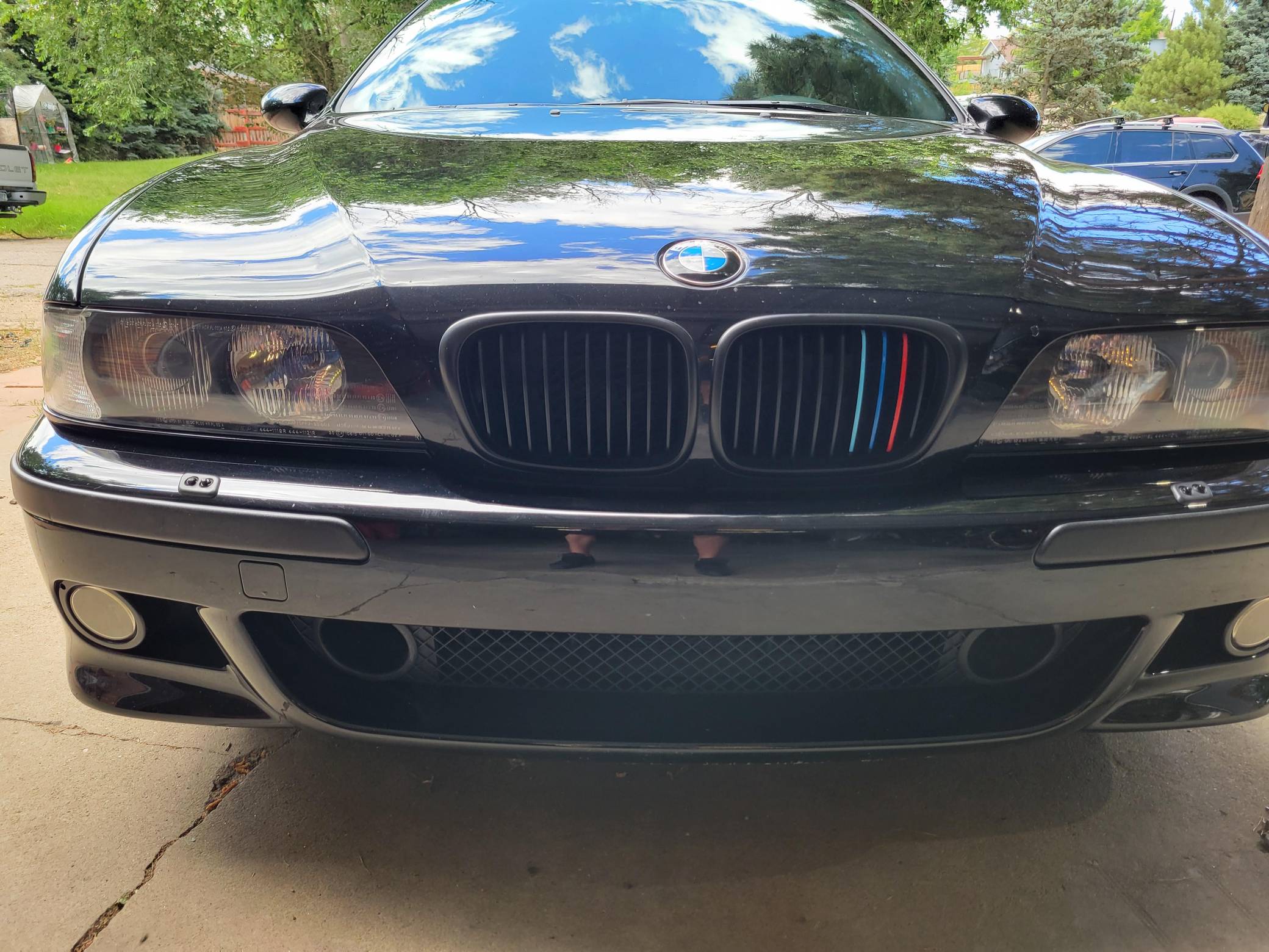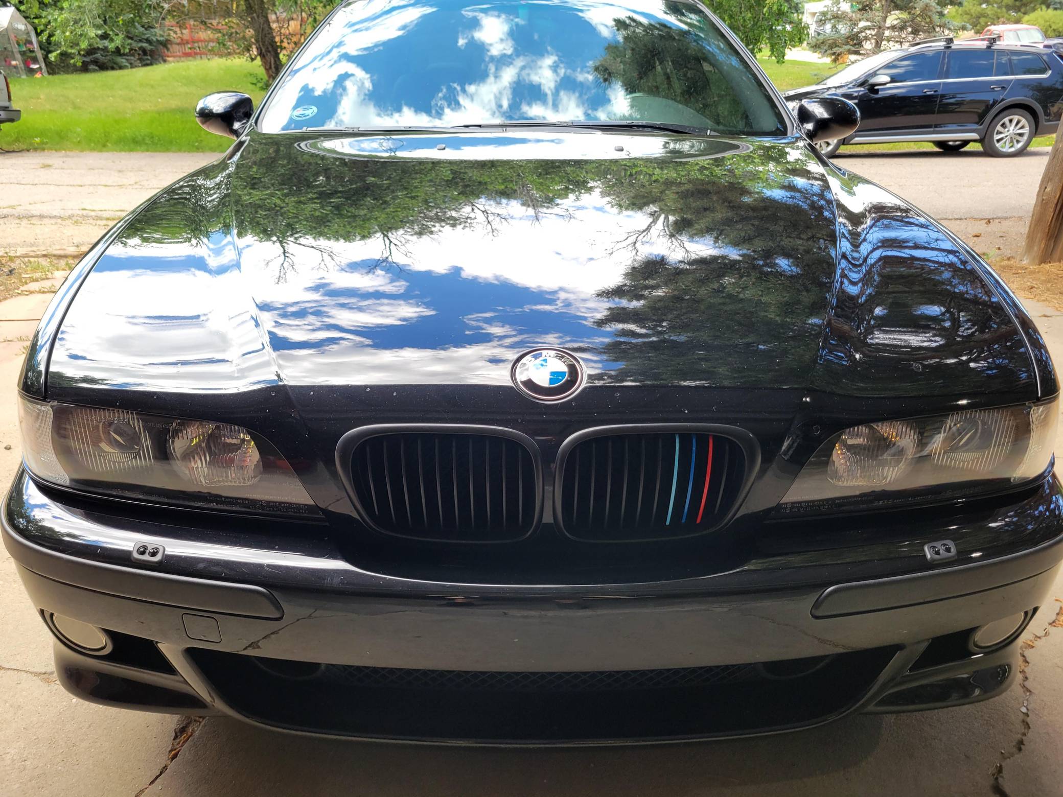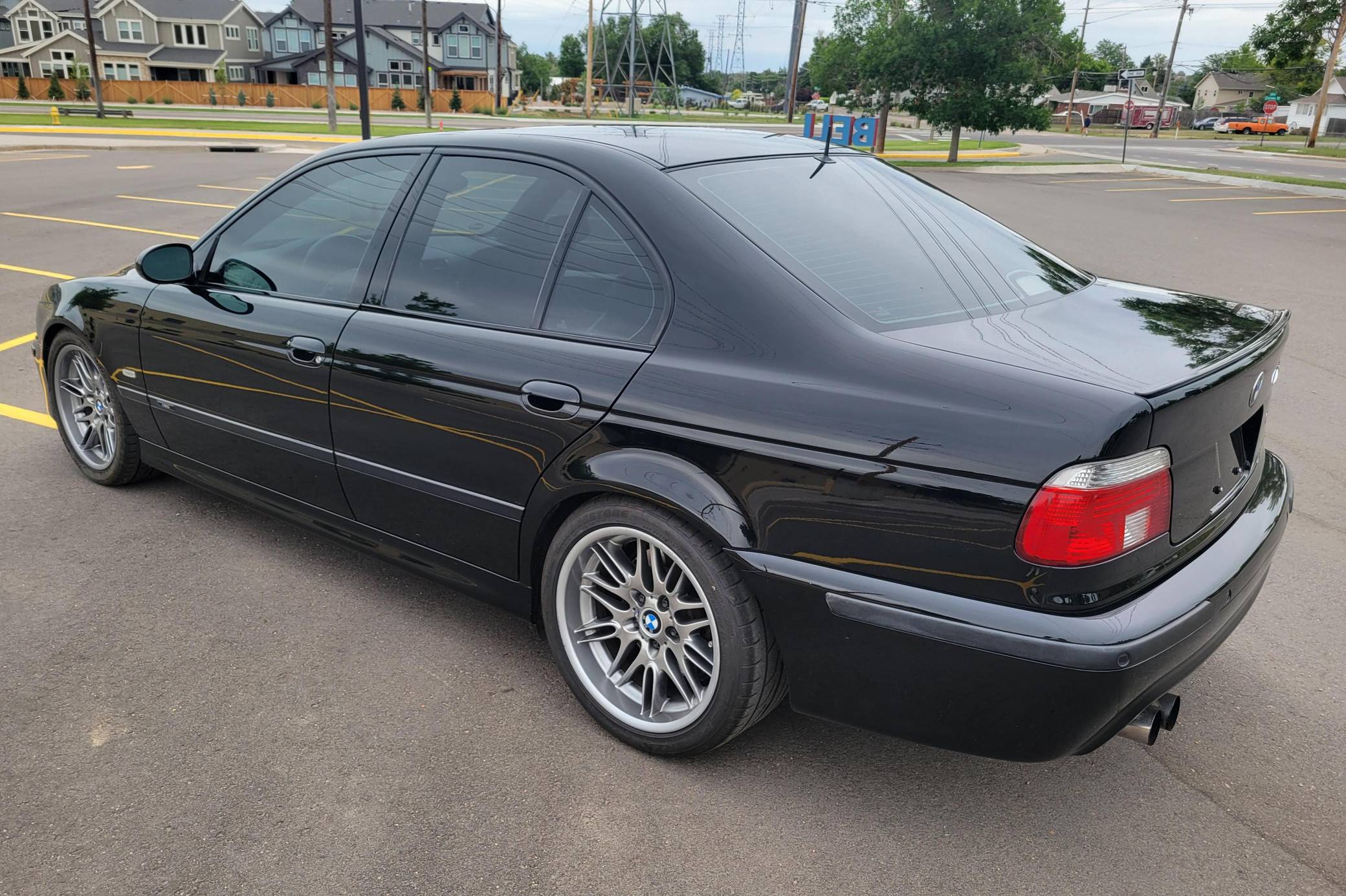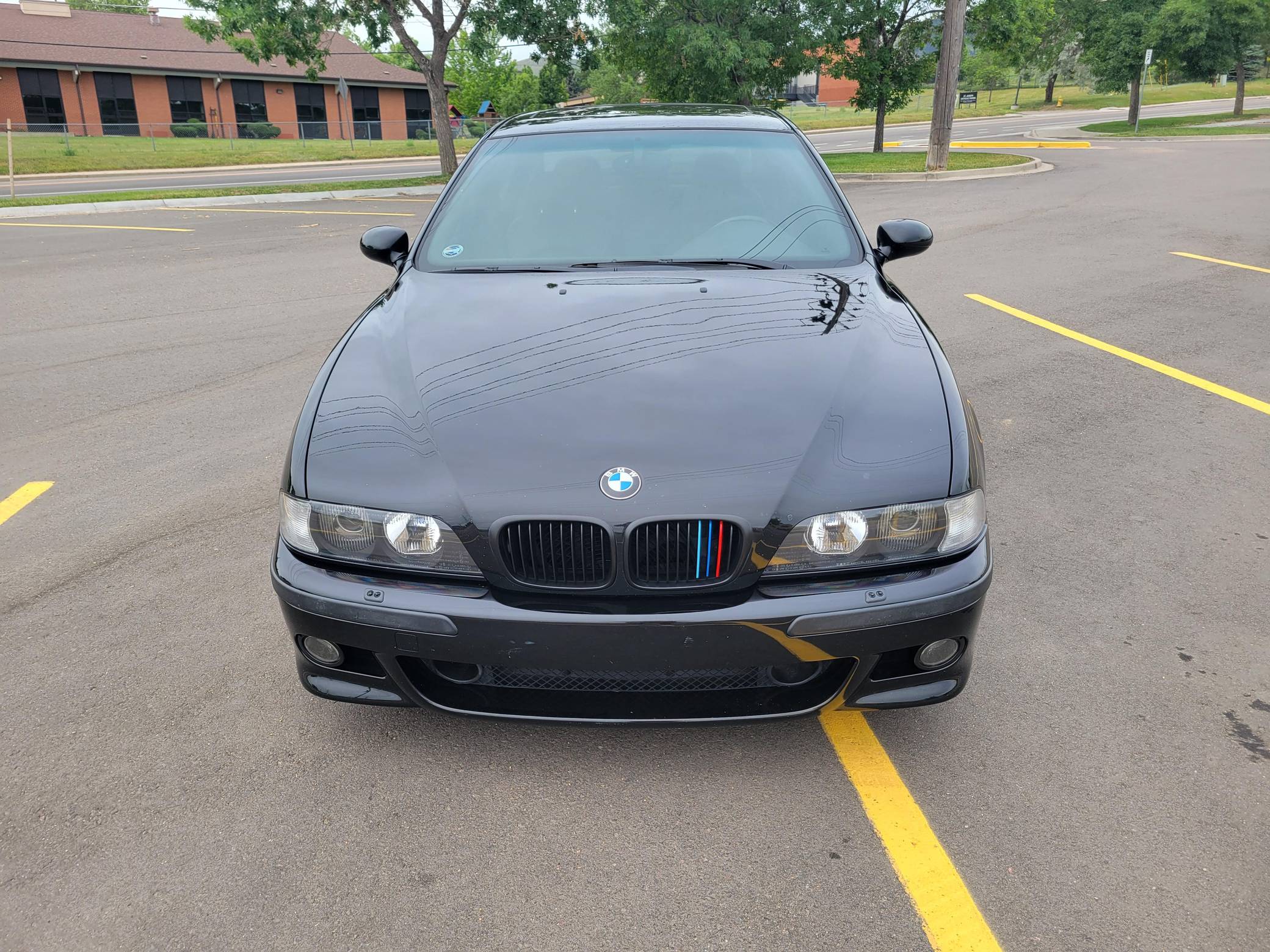2000 BMW M5, finished in Jet Black with a black interior. This M5 is a Canadian-spec model that was originally purchased in British Columbia, Canada. According to the build sheet provided in the gallery, factory equipment includes 18-inch Style 65 wheels, headlight washers, a power sunroof, heated and power-adjustable front seats with memory, rear sunshades, Park Distance Control (PDC), and a 6-disc CD changer. Modifications reported by the seller include a Dinan exhaust and carbon fiber cold air intake, a gray-faced instrument cluster, and black kidney grilles. Heralded by brand enthusiasts as the best of its breed, the "E39"-generation M5 arrived in America for the 2000 model year. It was the first of several M-developed cars powered by a V8 engine, and it was exclusively available with a 6-speed manual transmission. Car & Driver crowned it "the most desirable sedan in the world" in 2000. Power comes from an "S62" 4. 9-liter V8, rated at 394 horsepower and 369 lb-ft of torque. Output is sent to the rear wheels via a 6-speed manual transmission.
