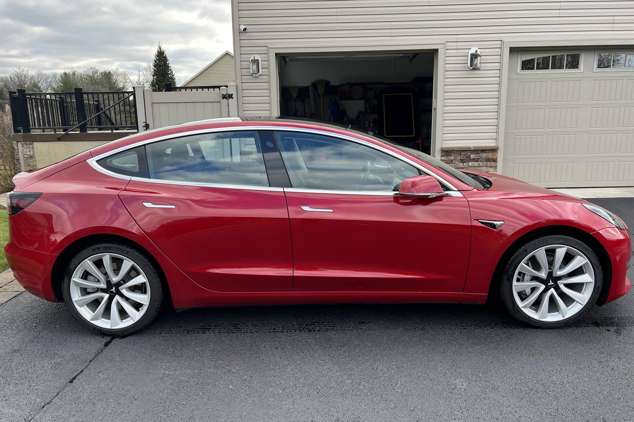THIS. . . is a 2018 Tesla Model 3 Long Range AWD, finished in Red Multi-Coat with a black interior. Factory equipment includes the All-Black Premium Interior Package, 19-inch alloy wheels, a panoramic roof panel, a 15-inch touch screen, Full Self-Driving Capability, and mobile network connectivity. The seller reports no modifications. At launch, the Model 3 was presented as a premium EV with a usable driving range and respectable performance, all at a reasonably attainable price. It was Tesla's entry-level car. It's still available today, and it has gone through several evolutions (including many software updates) since its introduction. Power comes from a pair of electric motors that draw electricity from a 75-kilowatt-hour lithium-ion battery pack to zap the four wheels with 346 horsepower and 389 lb-ft of torque, according to third-party estimates. This Model 3's maximum driving range was rated at 310 miles in 2018 by the EPA.