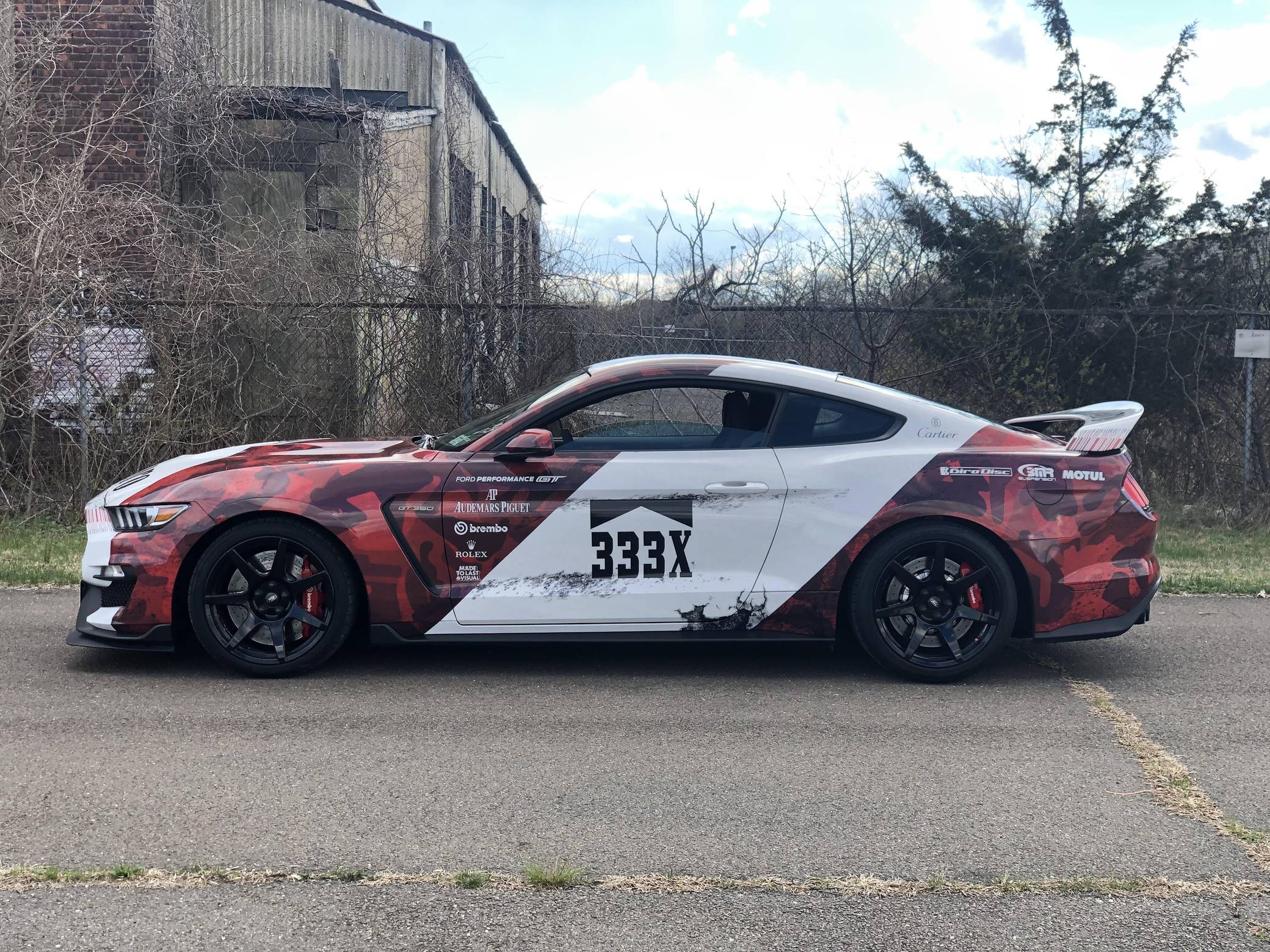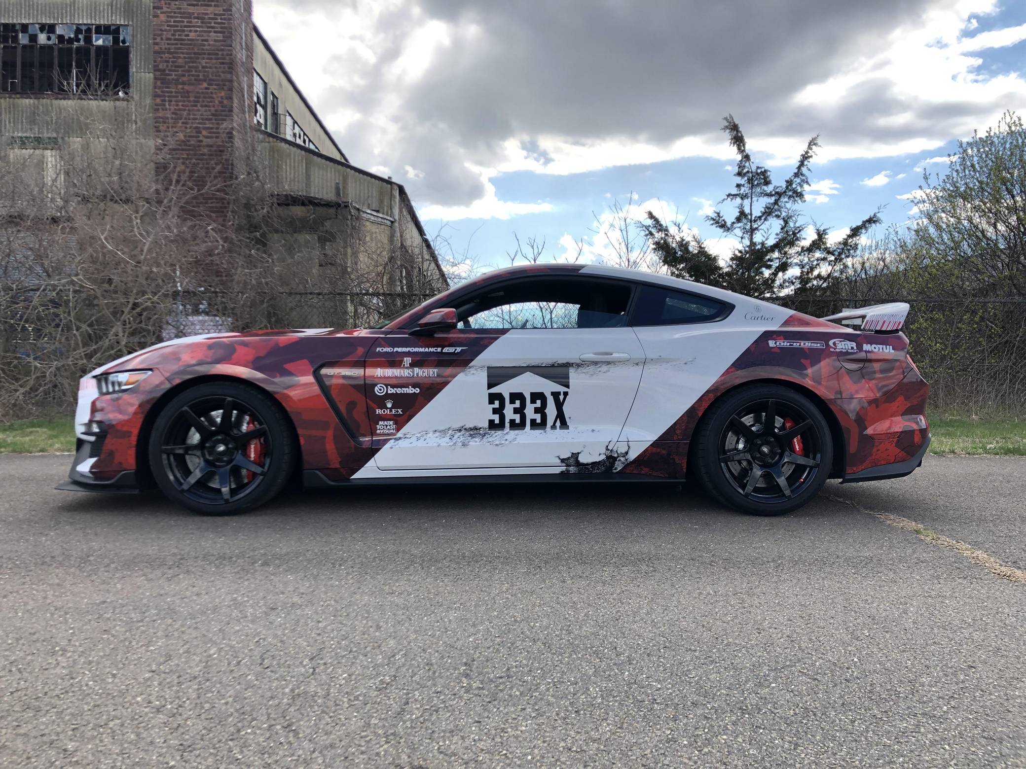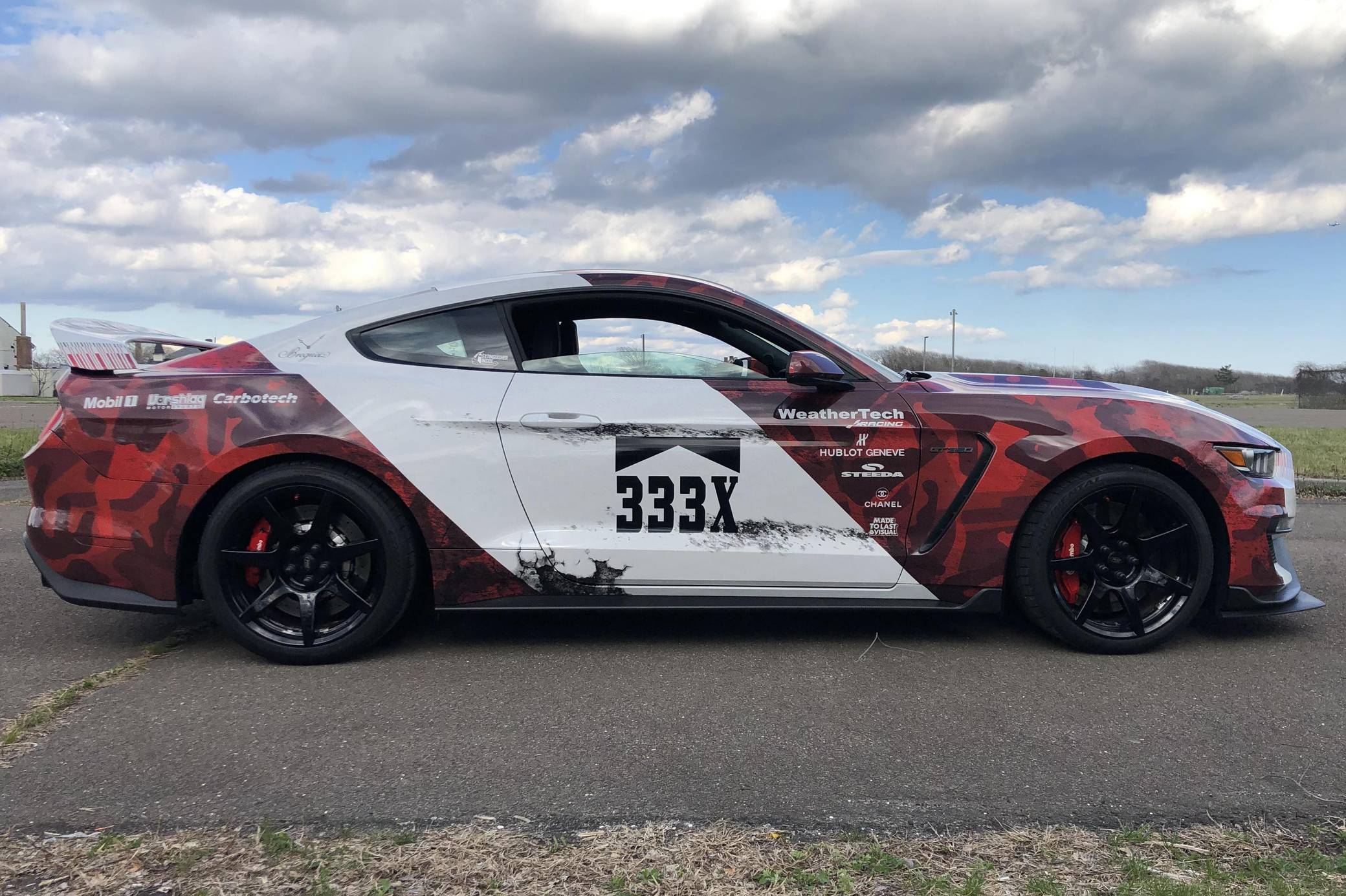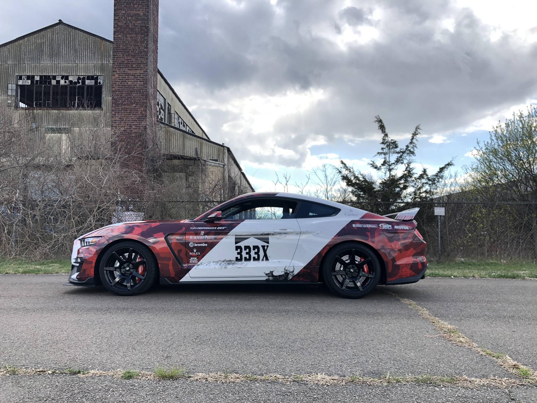 2018 Ford Mustang Shelby GT350R, finished in Shadow Black with a vinyl exterior wrap and an Ebony interior. A partial list of notable equipment includes Equipment Group 920A, the R-Electronics Package, a Torsen rear differential, Magneride adjustable dampers, Brembo brakes, Recaro sport seats, an Alcantara steering wheel, and more as detailed below. The seller reports modifying this Mustang to enhance its performance on the track. Some of these modifications include a Steeda linear clutch spring, a BMR subframe brace, an MGW short-shifter, Ford Performance lowering springs, Vorshlag front camber plates and billet aluminum end links, a Brey-Krause harness bar, Schroth 4-point ASM harnesses, and a vinyl wrap inspired by liveries from past Ferrari F1 cars. The Shelby GT350R variant of the "S550" Ford Mustang is a track-focused performance car benchmarked against competitors like the Chevrolet Camaro Z/28 and the Porsche 911 GT3. Compared to the standard GT350, it has improved grip, less weight, a more aggressive aerodynamic body kit, and it's the first mass-produced road car to come stock with carbon fiber wheels, resulting in a highly competent muscle car for the track. Power for the Shelby GT350R comes from a flat-plane-crank "Voodoo" 5. 2-liter V8 engine, rated at 526 horsepower and 429 lb-ft of torque. Output is sent to the rear wheels via a 6-speed manual transmission.