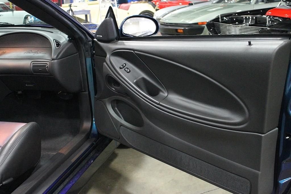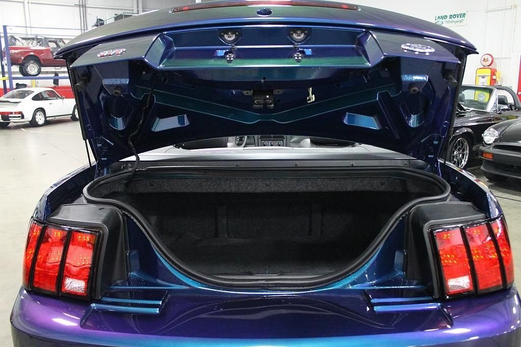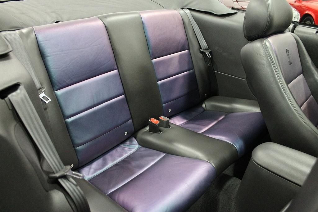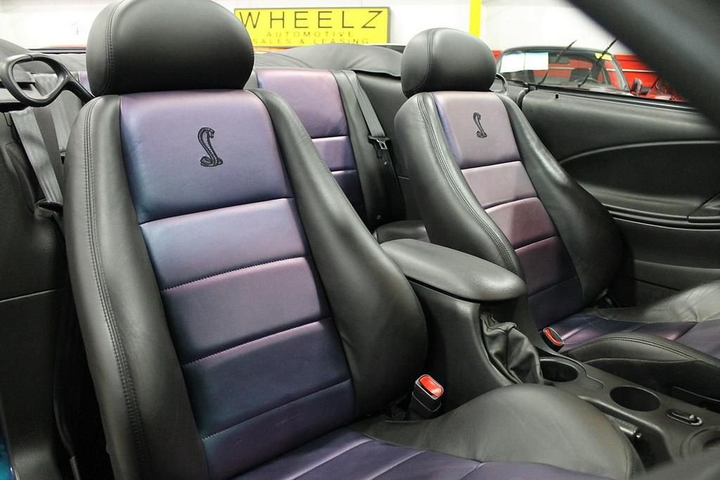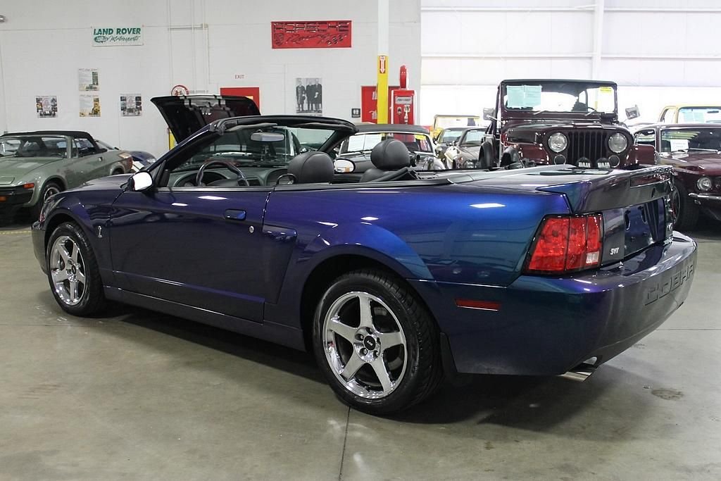 The redesigned Cobra for 2003 was fords most powerful modern mustang produced to date. Codenamed “Terminator” by the SVT development crew, the 2003 / 2004 SVT featured a host of improvements, most notable, a supercharged 4.6 liter DOHC V8 producing 390hp. Other improvements to the drive-train implemented to apply those horses included and aluminum fly wheel connected to a Tremec T-56 6-speed transmission, 3.55:1 rear axle ratio and stronger 31 spline half-shafts with improved upper and lower control arms. Together these modifications launched the SVT Cobra from 0 to 60 in just 4.5 seconds and quarter mile times as low as 12.4 seconds in stock form. As a special for 2004, SVT re-introduced the Mystic Cobra paint scheme from 1996 in new fashion. We are pleased to present this 2004 Ford Mustang Limited Edition SVT Cobra Convertible. Just out of a private collection, this one owner, low mile SVT Cobra convertible is #754 of 1896 units built for 2004 and has traveled only 9832 miles since new. It was purchased new at Don Woodhams, Inc. in South Haven Michigan and delivered with the Mystichrome Paint, a 3650.00 option on top of the lofty retail price of over 39 000.00. The paint however, is worth the price. This unique color manufactured by BASF changes from bright, metallic topaz transitioning to cobalt blue, then to royal purple and finally to deep Onyx Black. All depending the angle and lighting the car is viewed. Only 495 convertibles came with this paint scheme. The well-appointed interior is Black Leather with Mystichrome seat inserts. Today, this garage kept, enthusiast owned SVT presents itself is outstanding original condition. Driven sparingly, it is apparent that this one owner was purchased with collectability in mind and retains all the original documentation when purchased new including: original window sticker, original bill of sale, original MSO , original application for Title, original factory bumper quality lable, original factory key cards, factory road test mileage statement, selling dealer key tags, dealer delivery check list, Ford SVT welcome pack, SVT Certificate, Team Ford Racing Membership Card, and the still unopened SVT Owners Association Welcome kit. This 2004 Mustang SVT Cobra Convertible is an opportunity to acquire a car that represents the resurgence of American Horsepower. Its limited production and desirability make it an instant modern collectible. A low mile, documented example such as this will always have high demand and is an automotive investment that is a complete blast to drive.