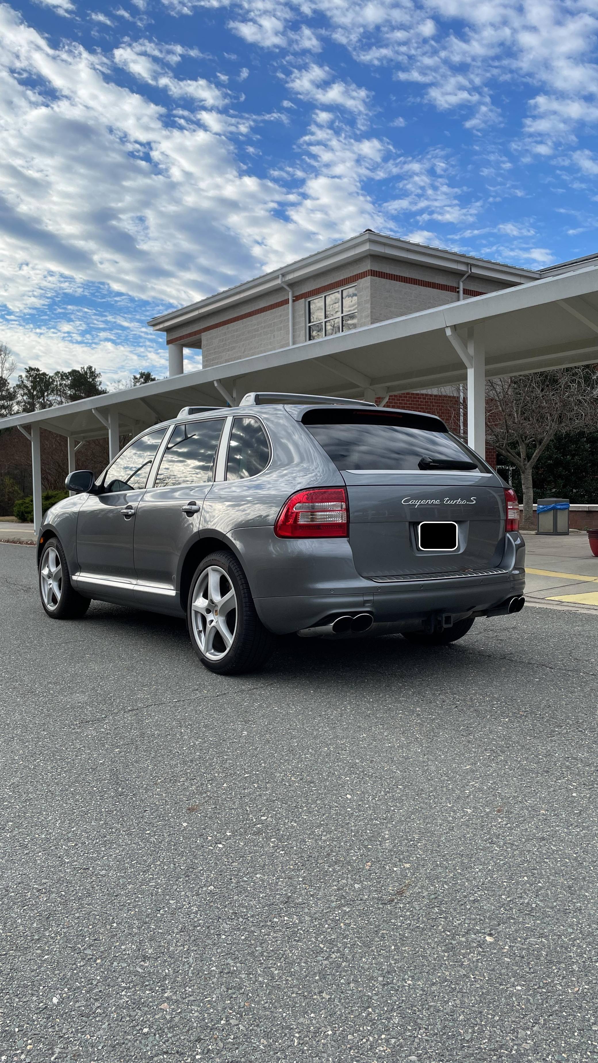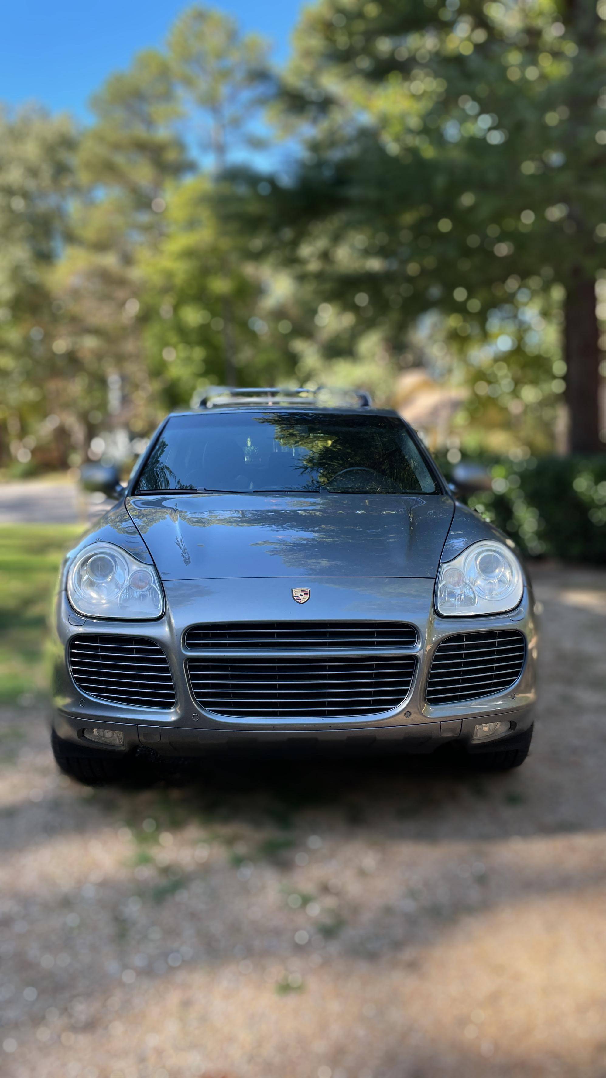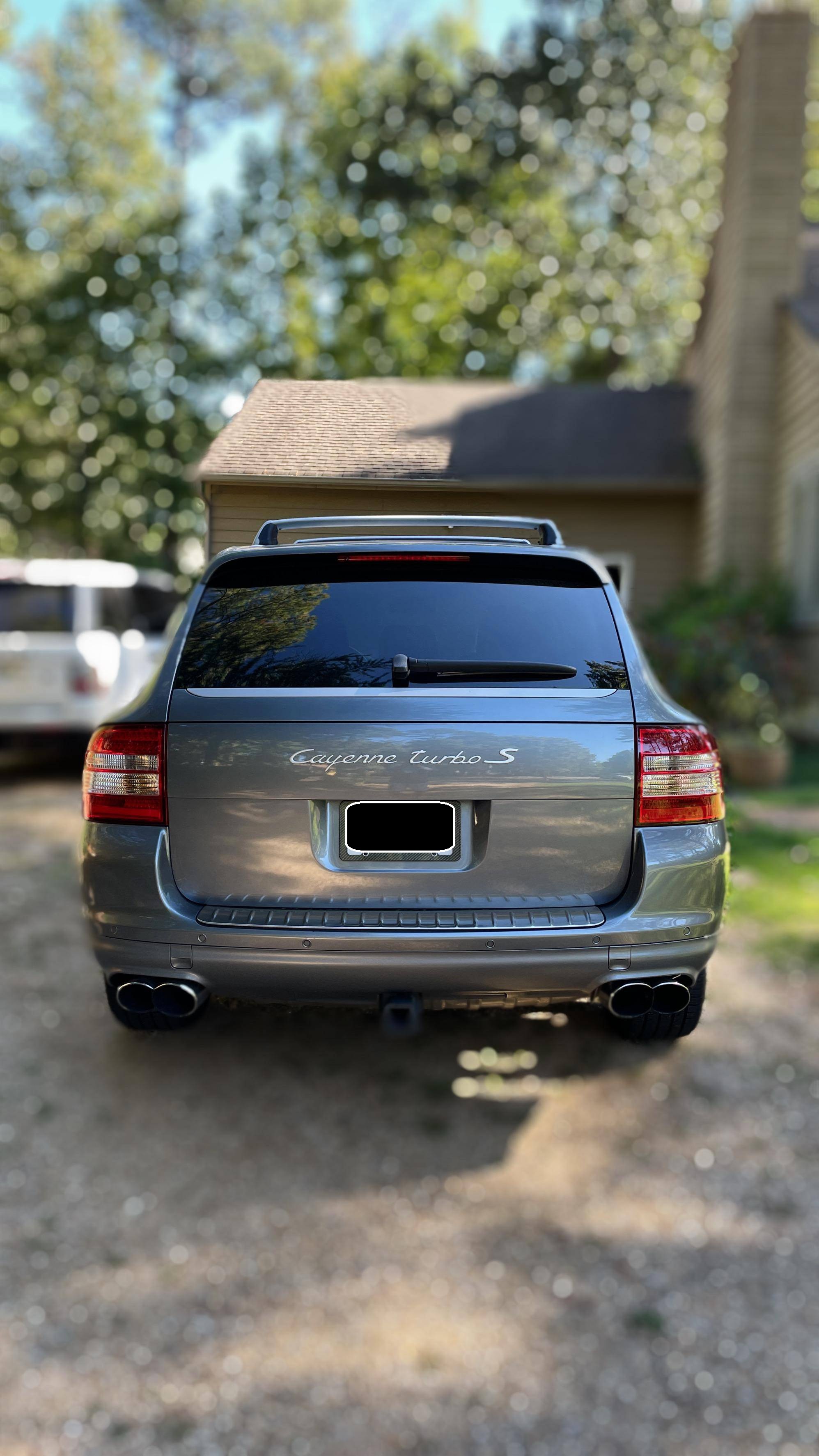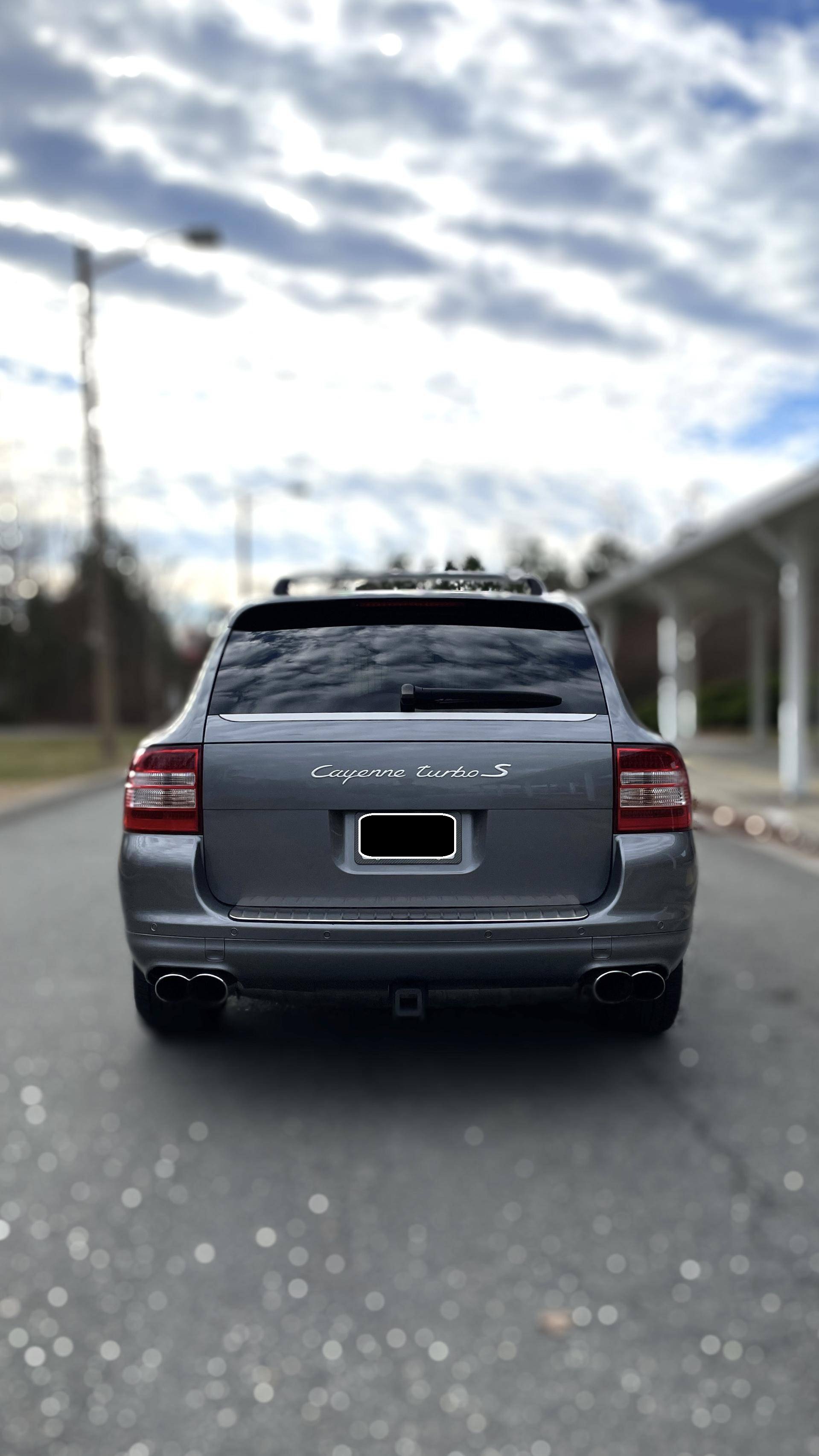 2006 Porsche Cayenne Turbo S, finished in Titanium Metallic with a black interior. Factory equipment on this Cayenne includes 20-inch wheels, Porsche Active Suspension Management (PASM), fog lights, roof rack crossbars, a sunroof, trailer hitch, leather upholstery, power-adjustable front seats, heated front and rear seats, a navigation system, and a Bose audio system, among others listed below. The sole modification reported by the seller is a set of aftermarket tail lights, though the factory taillights are included in the sale. Called "955" internally, the first-generation Cayenne made its American debut for the 2003 model year. It was a hugely controversial model at launch, but it quickly won over skeptics with its unusual blend of on-road performance and off-road prowess. It retired as the best-selling member of the Porsche range in 2010, and its replacement arrived shortly after. Power comes from a 4. 5-liter twin-turbocharged V8, rated at 520 horsepower and 530 lb-ft of torque. Output is sent to all four wheels through a 6-speed automatic transmission.