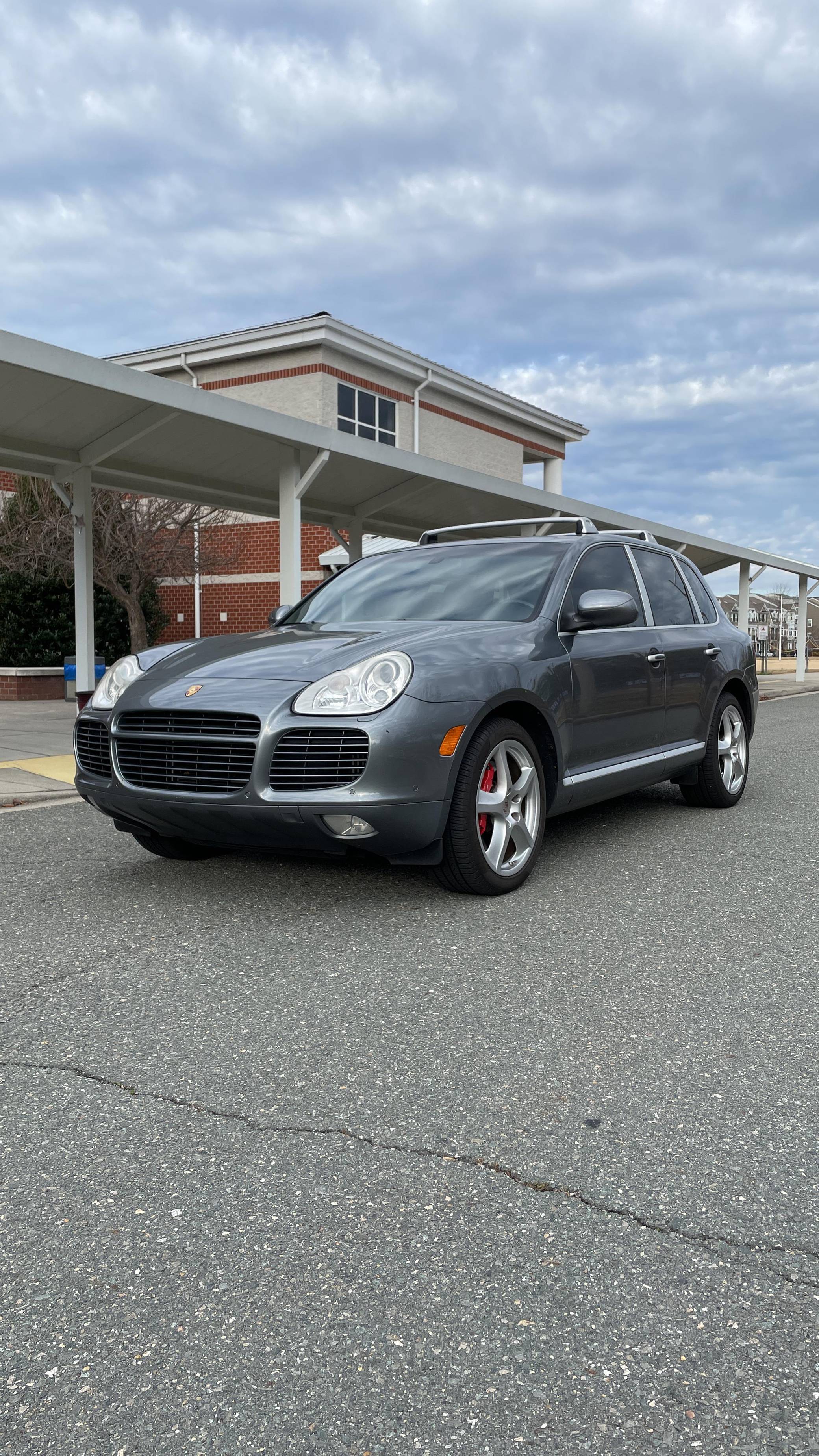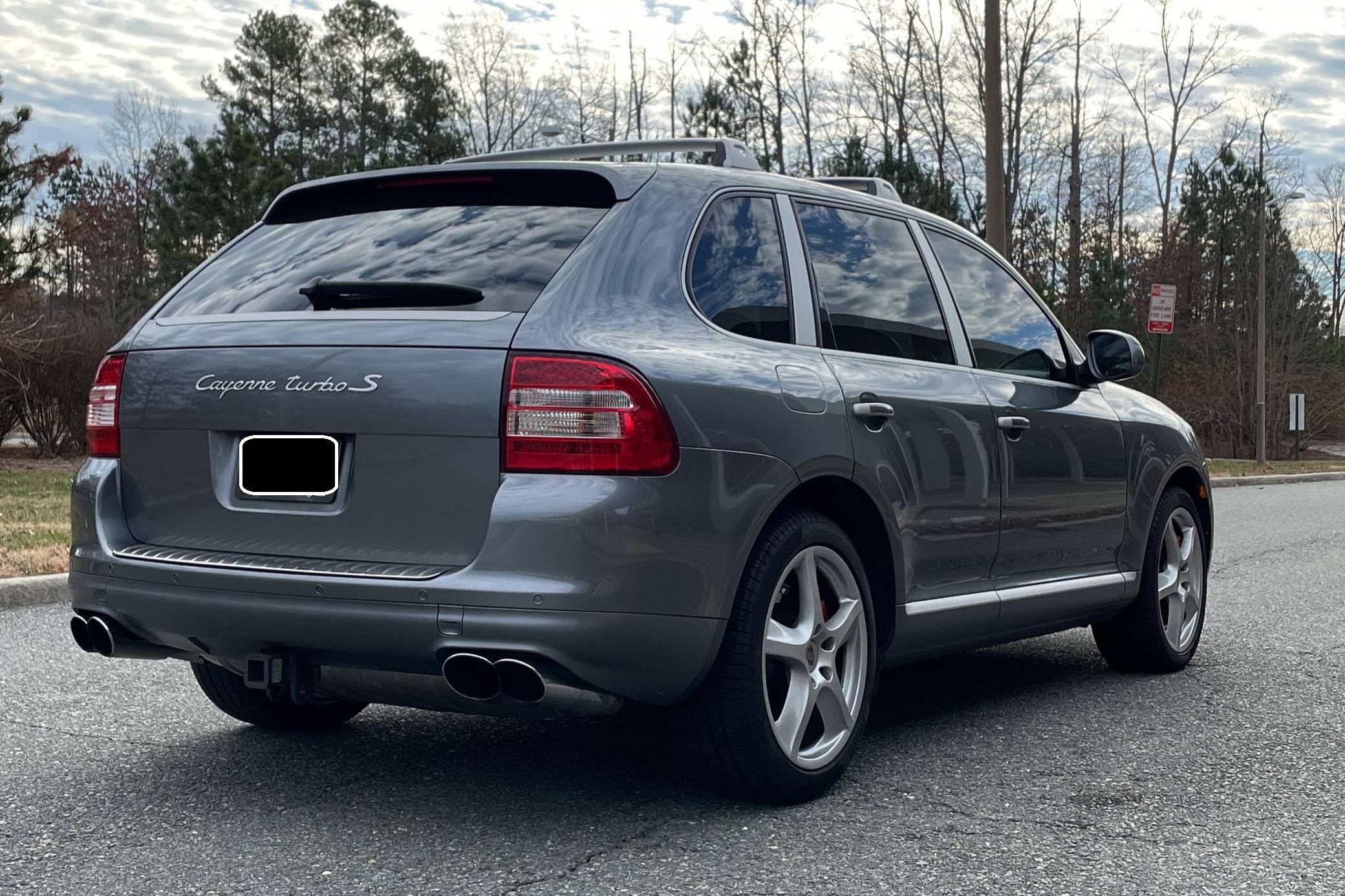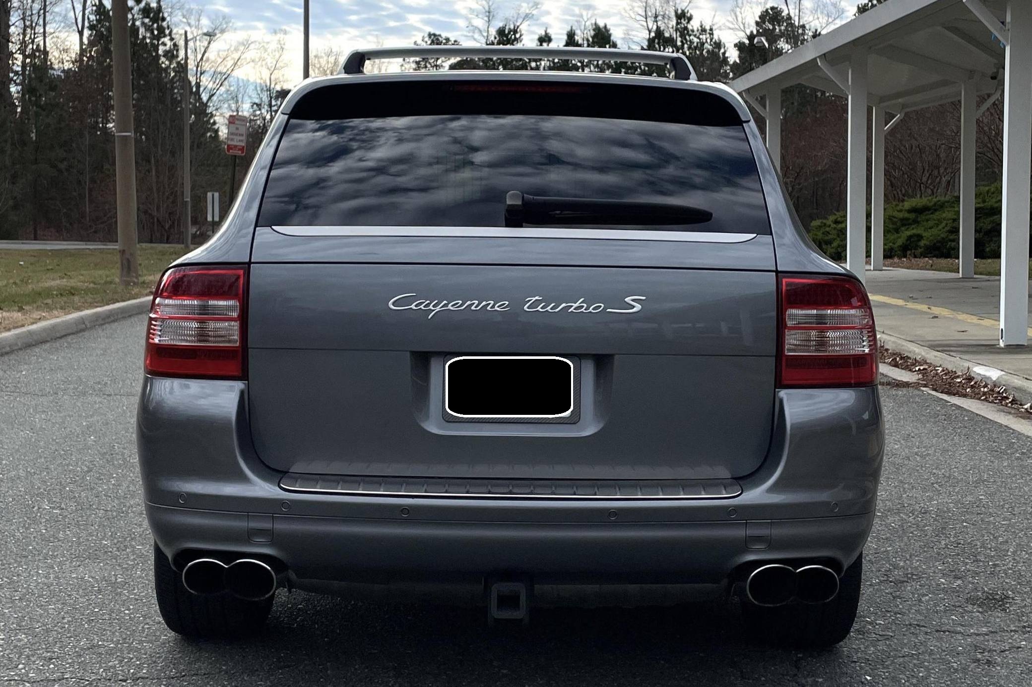 2006 Porsche Cayenne Turbo S, finished in Titanium Metallic with a black interior. Factory equipment on this Cayenne includes 20-inch wheels, Porsche Active Suspension Management (PASM), fog lights, roof rack crossbars, a sunroof, trailer hitch, leather upholstery, power-adjustable front seats, heated front and rear seats, a navigation system, and a Bose audio system, among others listed below. The sole modification reported by the seller is a set of aftermarket tail lights, though the factory taillights are included in the sale. Called "955" internally, the first-generation Cayenne made its American debut for the 2003 model year. It was a hugely controversial model at launch, but it quickly won over skeptics with its unusual blend of on-road performance and off-road prowess. It retired as the best-selling member of the Porsche range in 2010, and its replacement arrived shortly after. Power comes from a 4. 5-liter twin-turbocharged V8, rated at 520 horsepower and 530 lb-ft of torque. Output is sent to all four wheels through a 6-speed automatic transmission.
