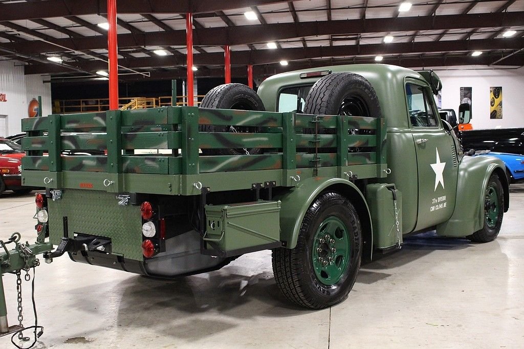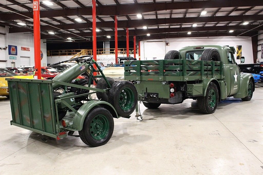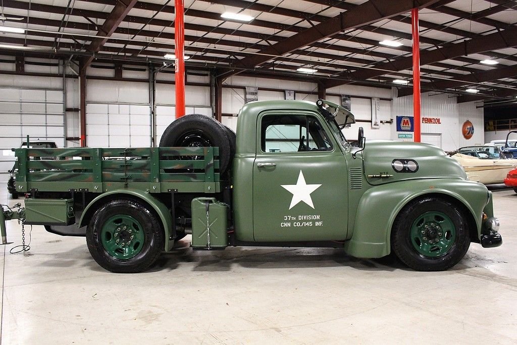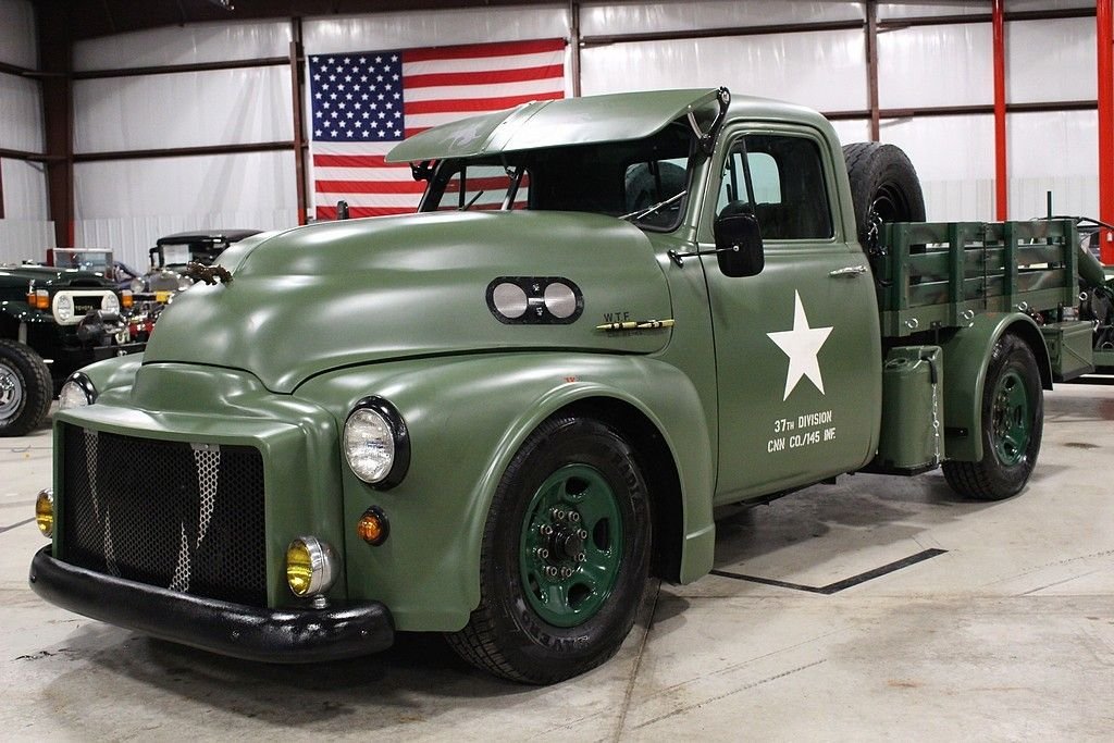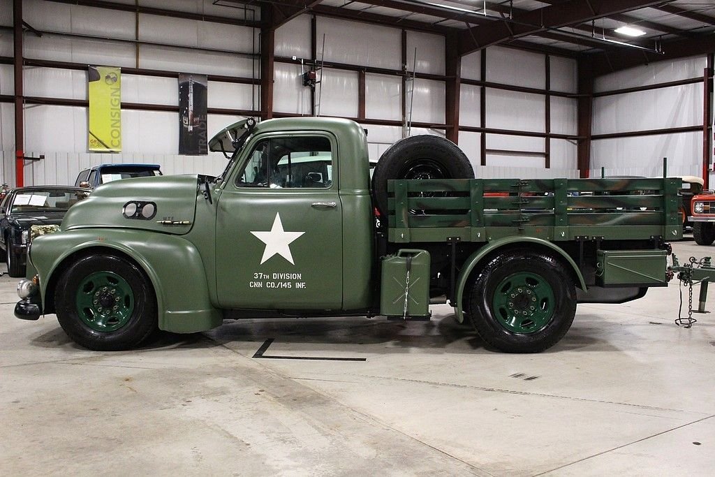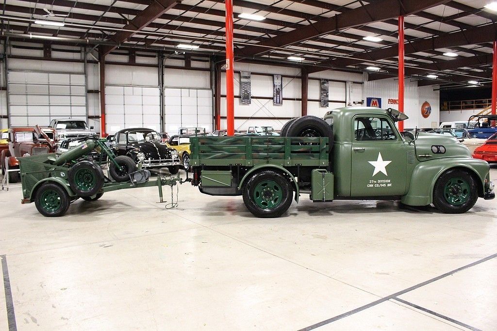 This 13 month build project was done with some very impressive thoughts and engineering. Built to honor the WW II 112th Medical Division that the father of the builder was assigned to during the Pacific theater. The truck started out a s 1997 ¾ ton pickup and was stripped of its sheet metal and mated to a 1953 GMC pickup cab and hood. The rear bed then was custom made to meet the look they desired and also to accommodate the scooter with special mounts. The 8 lug wheel setup gives a great look and mean look. Two extra spares are mounted on the bed. The paint is less than 3 months old and was finished with the flat army green and custom camo paint job on the wooden bed of trailer and rails. Extra gas cans and ammo boxes are mounted and strapped on to complete the look. A few extra dummy rounds of .50 caliber bullets complete the look with proper decals and the dual port holes on side and sun visor for front windshield. Custom grill give the mean look and the fangs could easily be removed or painted over. The new gas tank is located under the bed and the tow package is set to trailer the bike around or whatever else you may want to hook up. The brand new 350 Vortec V8 engine has less than 500 miles logged on it and vehicle runs and drives almost like a new vehicle. Great exhaust note that adds to the whole package. Interior is finished in gun metal grey and custom cut out steering wheel gives the truck a tank like feel. 3 cup holders that were custom made and will handle any beverage you like and ammo box center console has plenty of room to store your needs. Leather seats are in great shape and out of a modern Tahoe. The whole vehicle is in great shape and reflects the recent custom work. No signs of rust or issues and suspension is all new. The scooter is a calibration of many things, but the story is that the 100lb test bomb was an authentic from the field and is strapped and mounted onto a Baja scooter frame. The bike runs and fires right up with a pull of the rip cord and is decaled up and custom mounted to the trailer. Trailer is the same build quality of the bike and truck and has a convenient drop tail gate with winch. As mentioned, this is something you most likely will not see again and the total build job was stated as well over $55k in parts, material and labor. It is always cheaper to buy a project done then starting from scratch. This combo represents a ton of value and one that should be considered for any avid collector, military aficionado or the person that likes to have the coolest vehicle in the 4th of July parade.