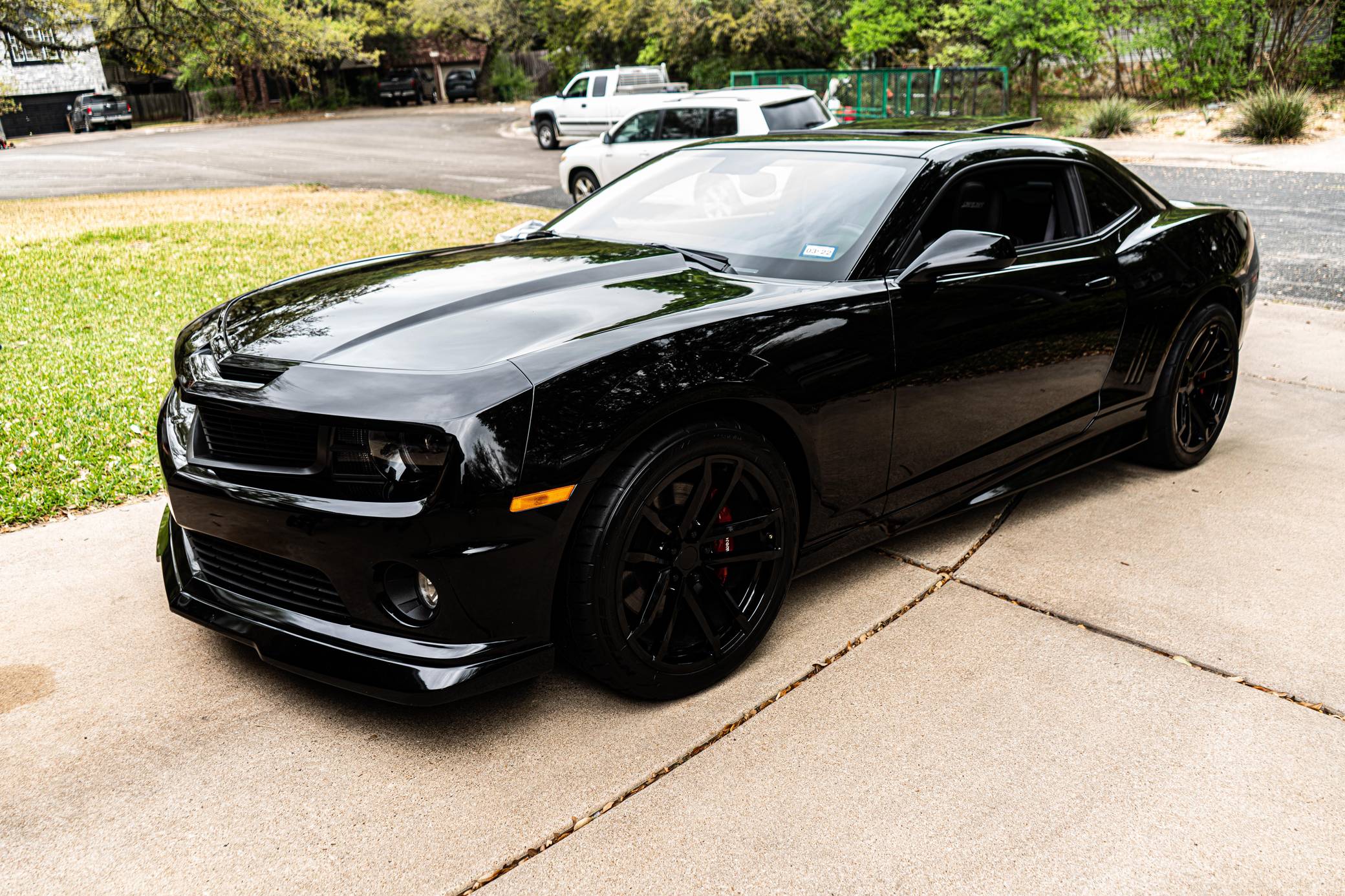 2010 Chevrolet Camaro SS, finished in black with a black interior. This Camaro features the desirable 6-speed manual transmission, and its odometer currently indicates approximately 26,700 miles. Factory equipment includes the RS Package (HID headlights with halo ring, RS-specific taillights, body-colored roof-ditch molding), the Ground Effects Package, Brembo brakes, a rear spoiler, a power sunroof, leather upholstery, heated front sport seats, auxiliary gauges, a Boston Acoustics sound system, Bluetooth connectivity, and more as detailed below. Modifications reported by the seller include JBA Speed Shop high-flow catalytic converters, a Flowmaster cat-back exhaust, a Roto-fab cold air intake, Spohn Performance front and rear end links, 20-inch replica Camaro ZL1 wheels, tinted windows, and more as detailed below. Chevrolet brought the Camaro nameplate back after a long hiatus for 2010. Previewed by a concept in 2006, the fifth-generation model wore a heritage-laced exterior design that borrowed some styling cues from the original car and it received an independent rear suspension system. It remained a pony car at heart, its main rival was the Ford Mustang, but it was also aimed at Japanese coupes like the Nissan 370Z. Power comes from a 6. 2-liter "LS3" V8, rated at 426 horsepower and 420 lb-ft of torque in stock form. According to the dyno sheet shown in the photo gallery, this Camaro produces 416 horsepower and 410 lb-ft of torque at the wheels. Output is sent to the rear wheels via a 6-speed manual transmission.