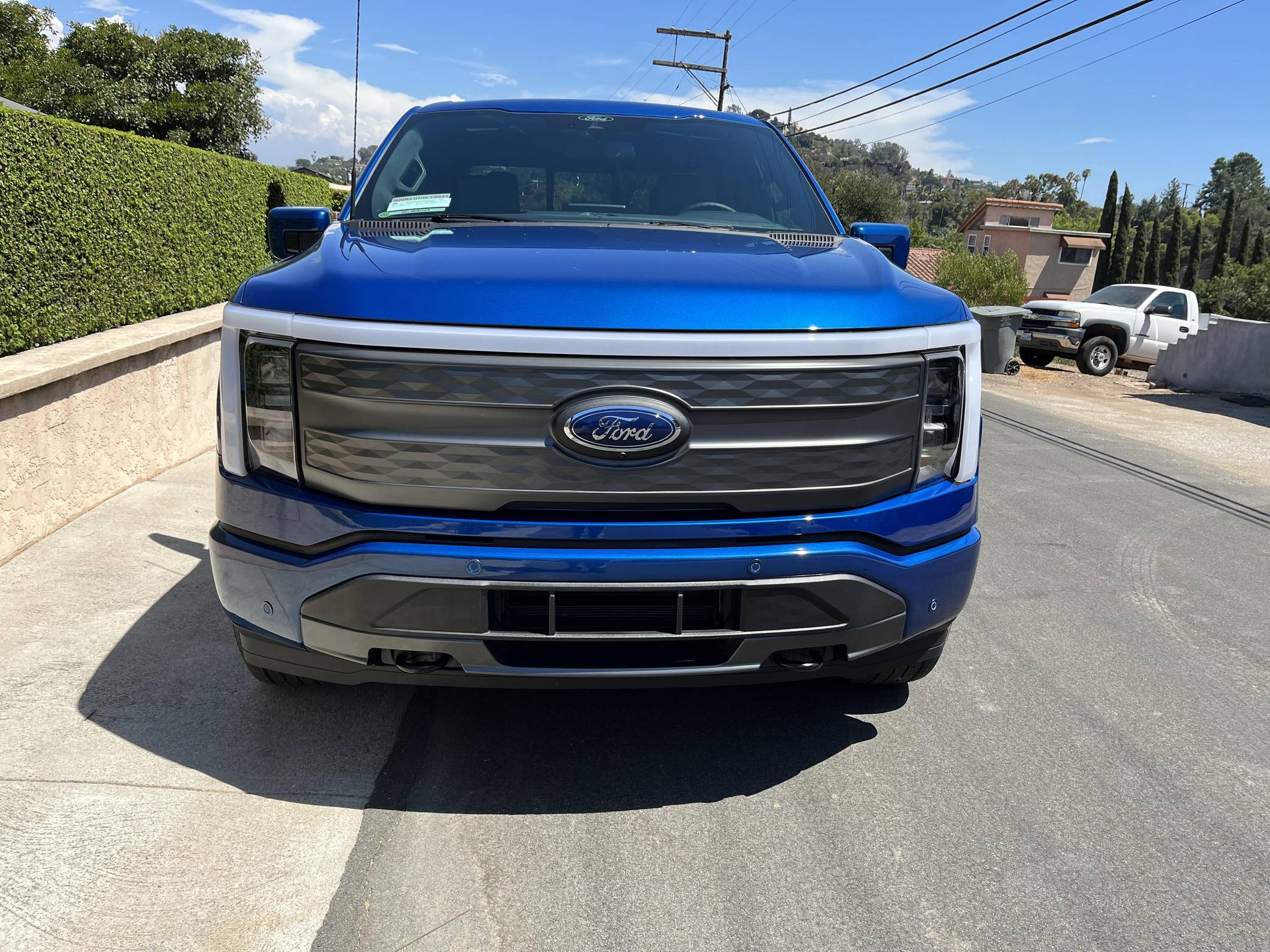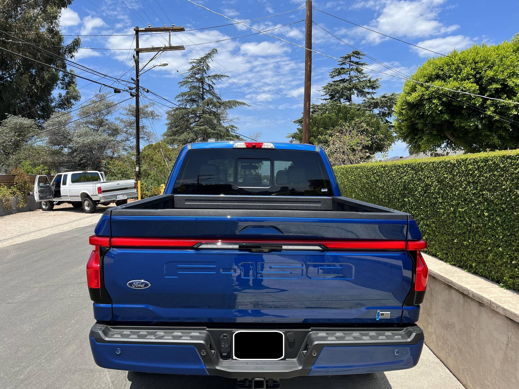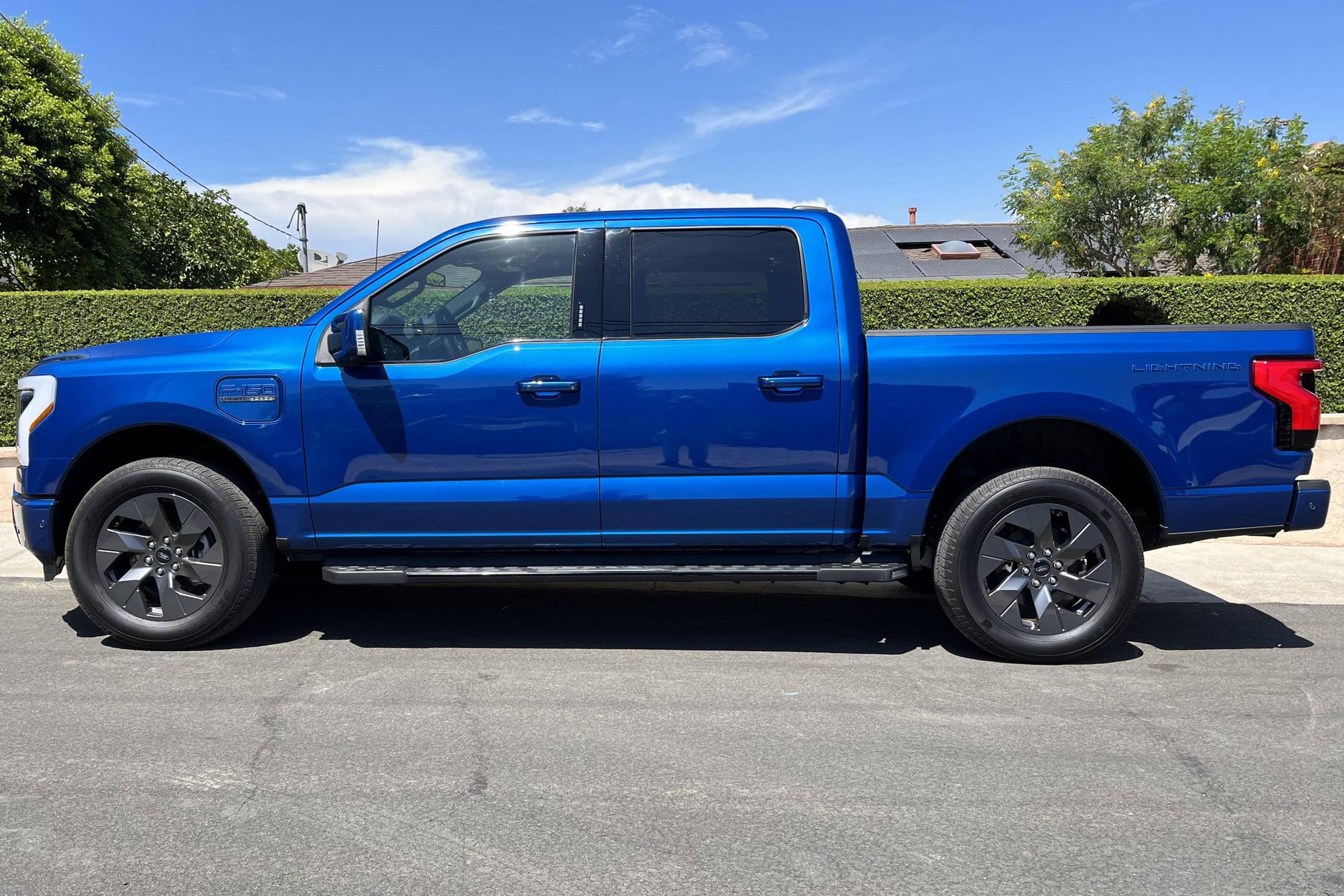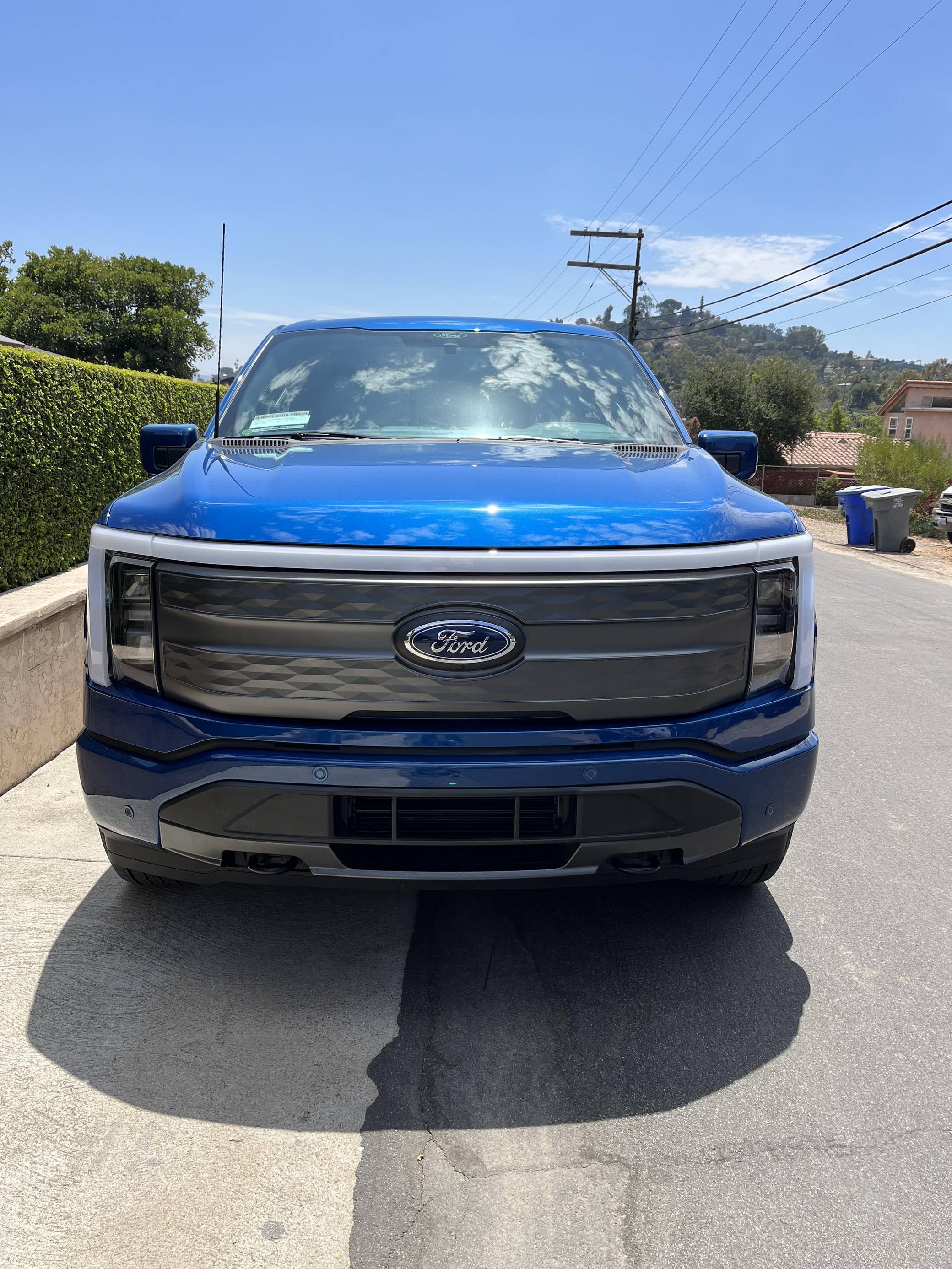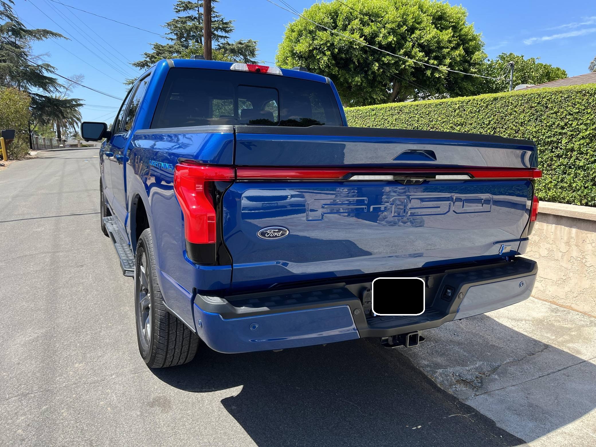 2022 Ford F-150 Lightning Lariat, finished in Atlast Blue Metallic with a black interior. The odometer on this F-150 Lightning currently displays 700 miles. Factory equipment includes 20-inch wheels, LED headlights, a power-operated tailgate with an integrated assist step, leather upholstery, heated, ventilated, and power-adjustable front seats, a heated steering wheel, power-adjustable pedals, a 15. 5-inch touchscreen for the SYNC4 infotainment system, and an 8-speaker B&O sound system. The seller reports no modifications. Formerly used on a high-performance variant of the F-150, the Lightning nameplate was revived for the 2022 model year by Ford's first series-produced electric truck. Every member of the line-up offers dual electric motors for through-the-road all-wheel drive, but buyers have two battery packs to choose from and driving range varies accordingly. Power comes from a pair of electric motors (one per axle), which draw electricity from a 131-kilowatt-hour lithium-ion battery pack to zap all four wheels with 580 horsepower and 775 lb-ft of torque. The Lightning earned a maximum driving range of 320 miles from the EPA.