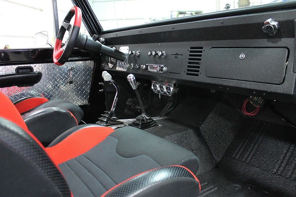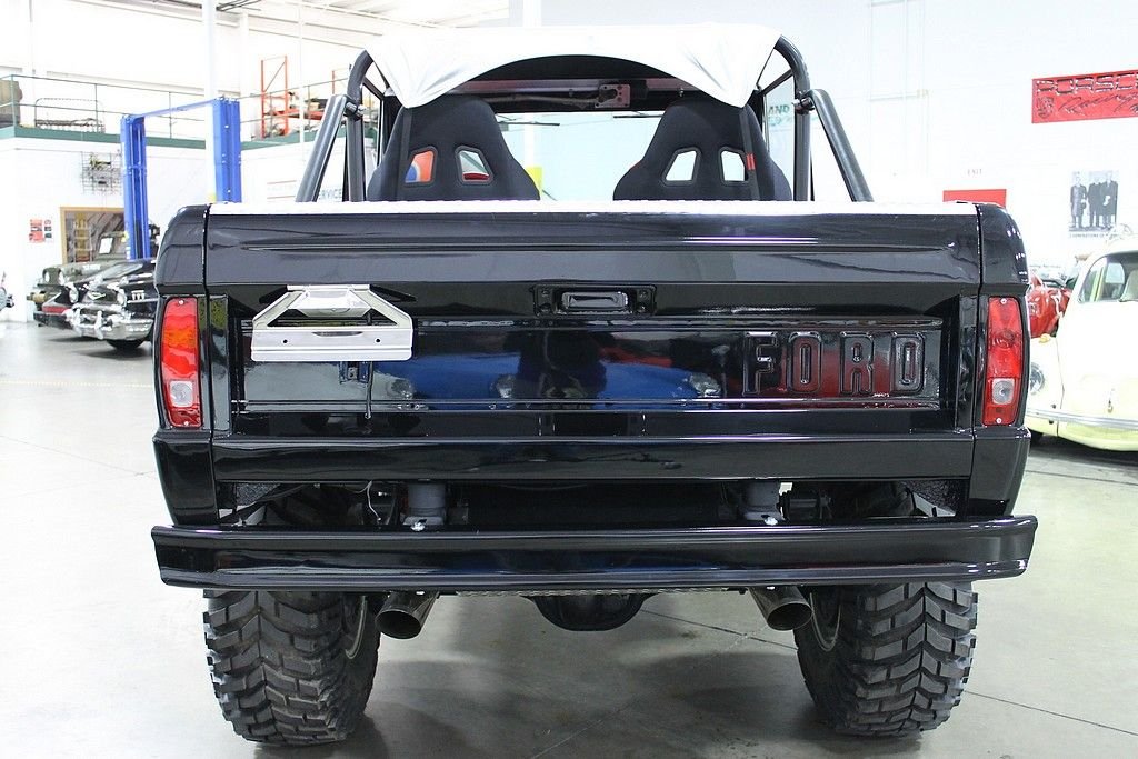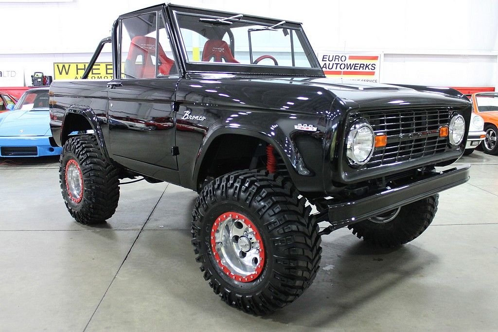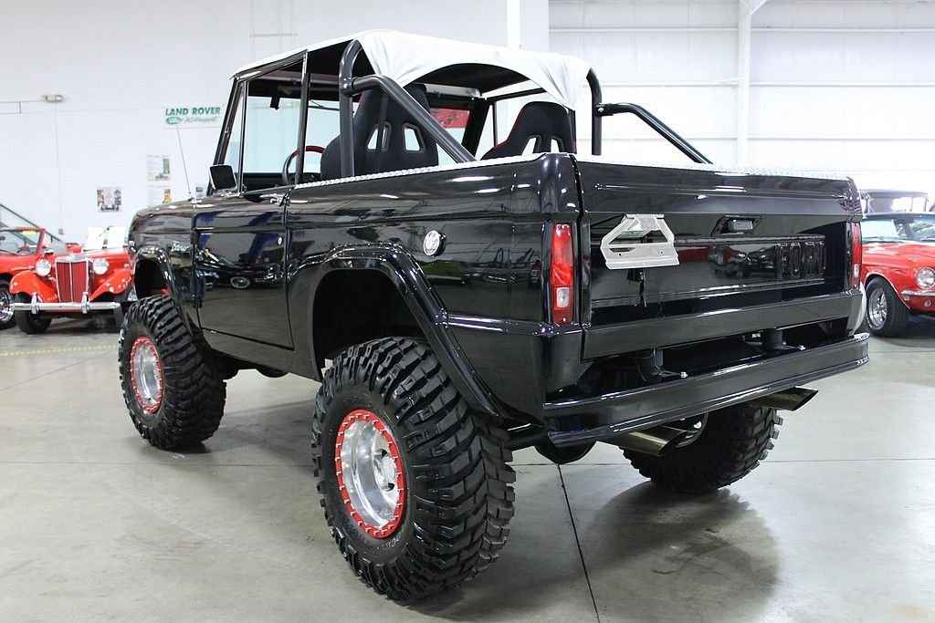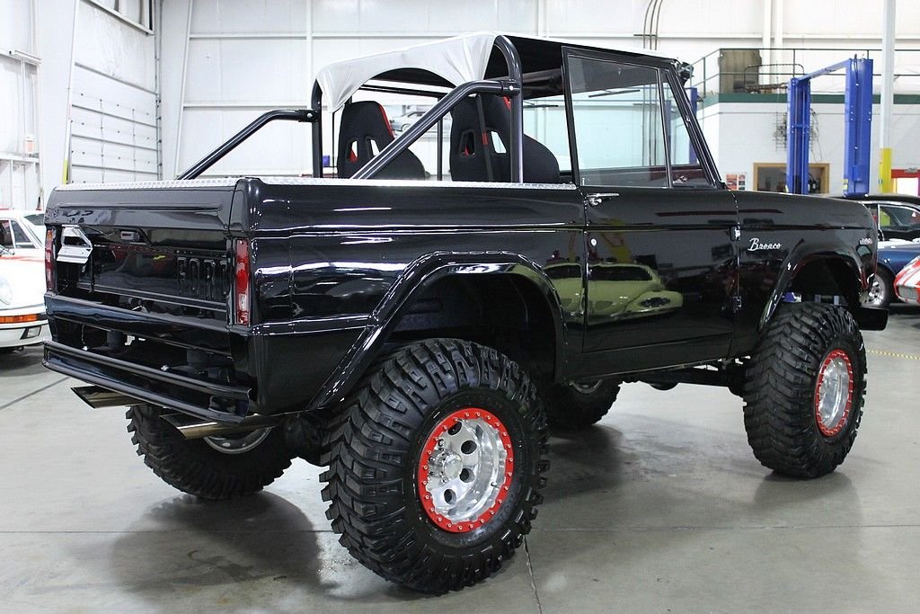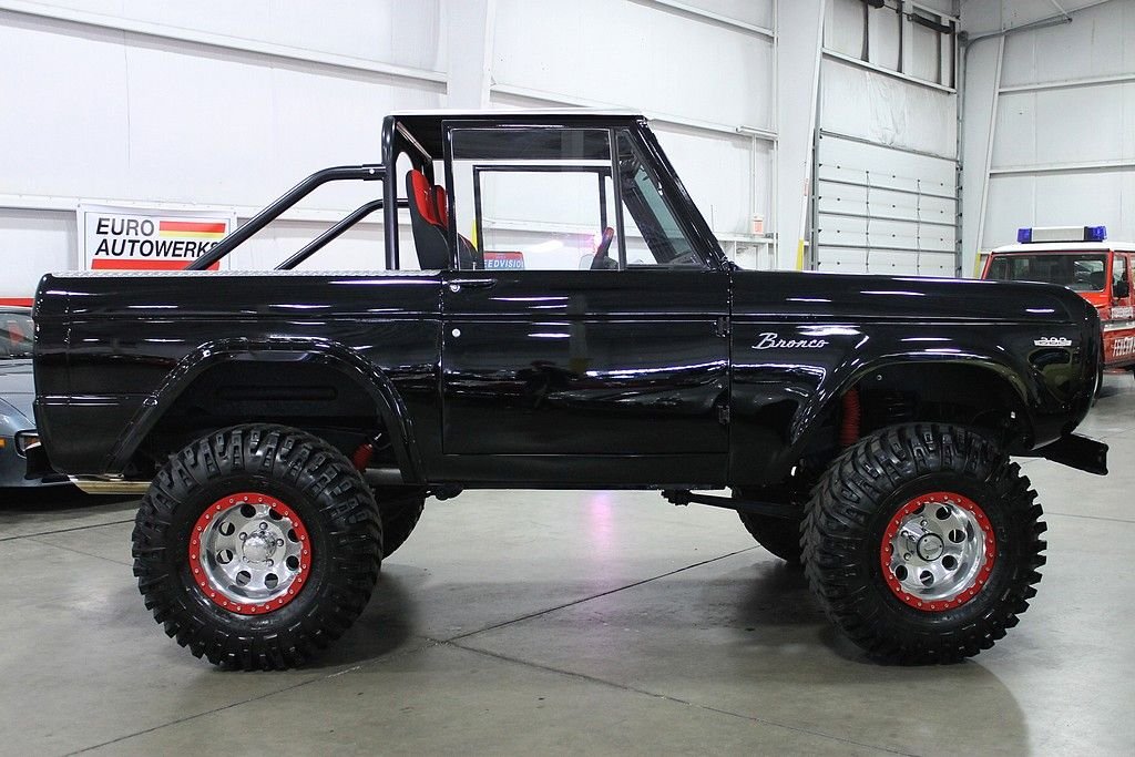 Just in time for summer, the 1966 Ford Bronco 4 x 4 presented here possesses all the performance and eyeball for summertime dune / baja riding, cruising or just plain fun. This Bronco is powered by a 289 V8 hooked up to a 3 speed transmission and applied via Fords bullet proof 4 Wheel Drive System. Custom features include 3 inch lift, Hurst shifter, roll bar, bikini top, Dual exhaust, Otto R racing seats, Grand GT steering wheel, gauges and diamond plate accents. This truck is dressed in flawless black paint accented by aluminum diamond plate and custom aluminum wheels with beefy Mickey Thomson 35 x 13.5 – 15 Baja Claw's. Be the big man on the block with this black beauty.