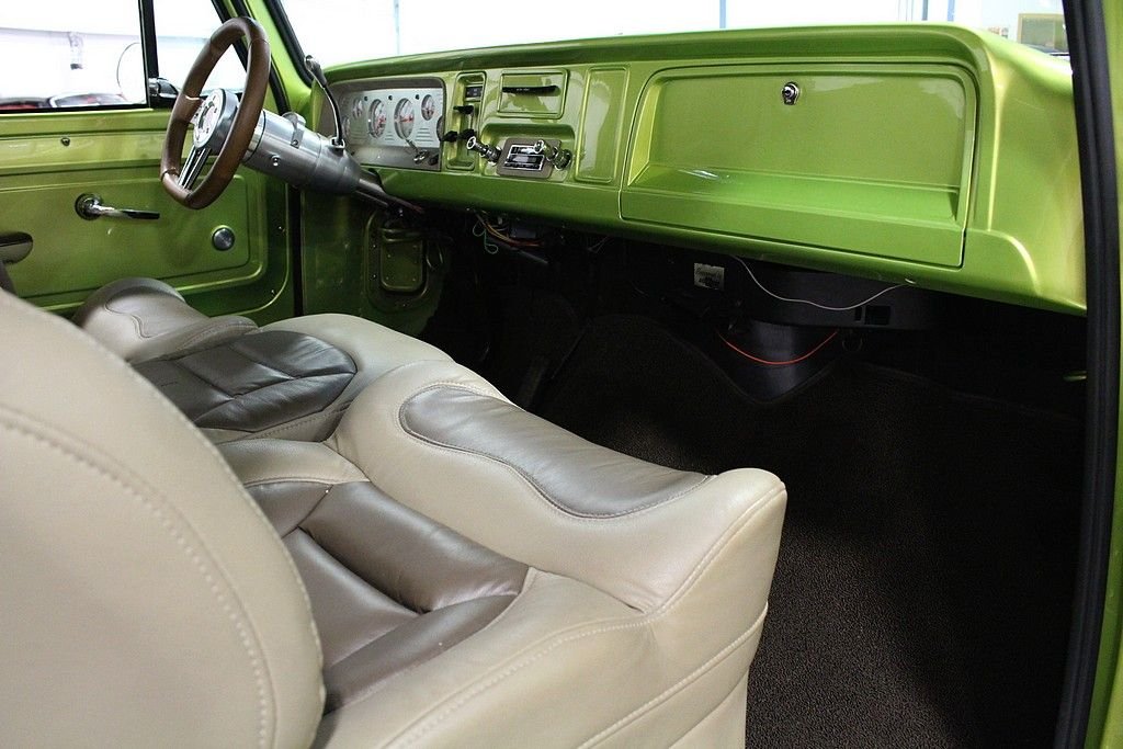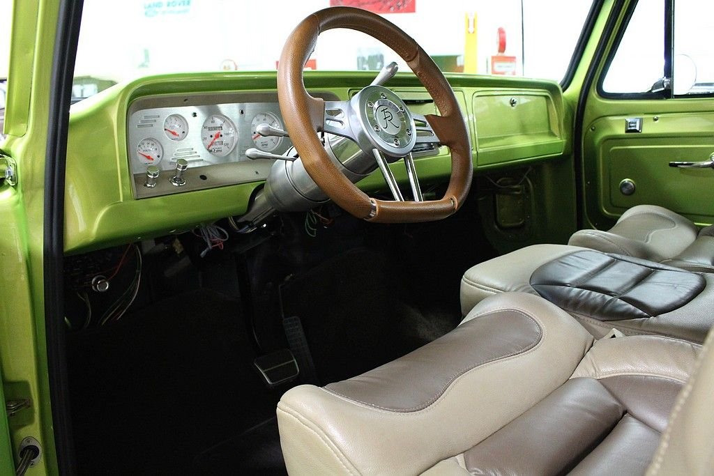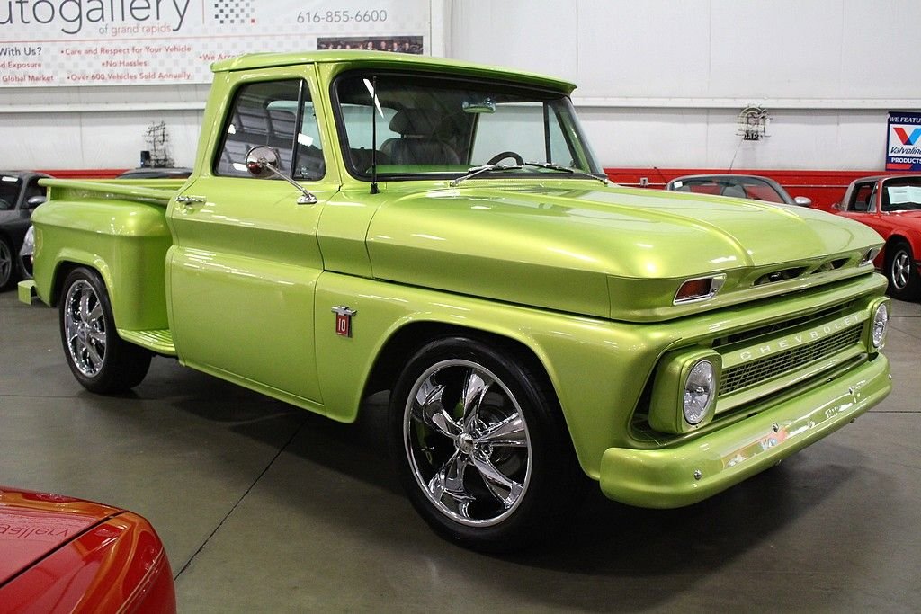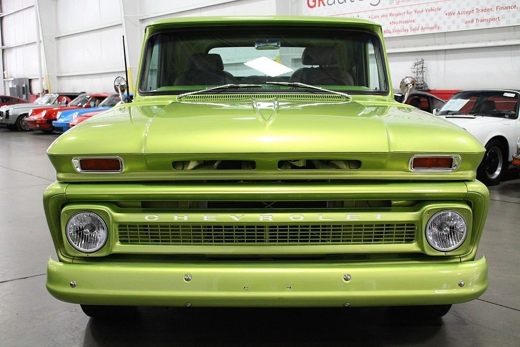 The first generation of C/K series pickups introduced a new body style of light pick-up truck that featured many firsts. Most important of these were a drop-center ladder frame, allowing the cab to sit lower, and independent front suspension, giving an almost car-like ride in a truck. Gone were the days of the truck just being a bench seat and a flat-bed for the farm. These trucks provided the driveability the market was looking for and sales took off. In the collector world, these trucks keep growing in popularity as finding bodies still intact is becoming more and more difficult. This '64 C10 Stepside is a restomod in excellent condition that was just finished in 2014. It's a southern body that contributed to the build with almost all the original sheet metal. It's powered by a crate 350ci V8 engine paired with a 2-speed powerglide automatic transmission. It features power windows, power brakes, front disc brakes, power steering, bucket leather seats with a folding center console w cup holders, Edelbrock carburetor & intake, Dana 44 rear end, oak wood lined bed, 20” Foose wheels, stainless steel exhaust, Autometer gauges, and much more! This is a fresh build with really low miles ready to go to the next owner for a great deal since you would have to spend a lot more to build it!