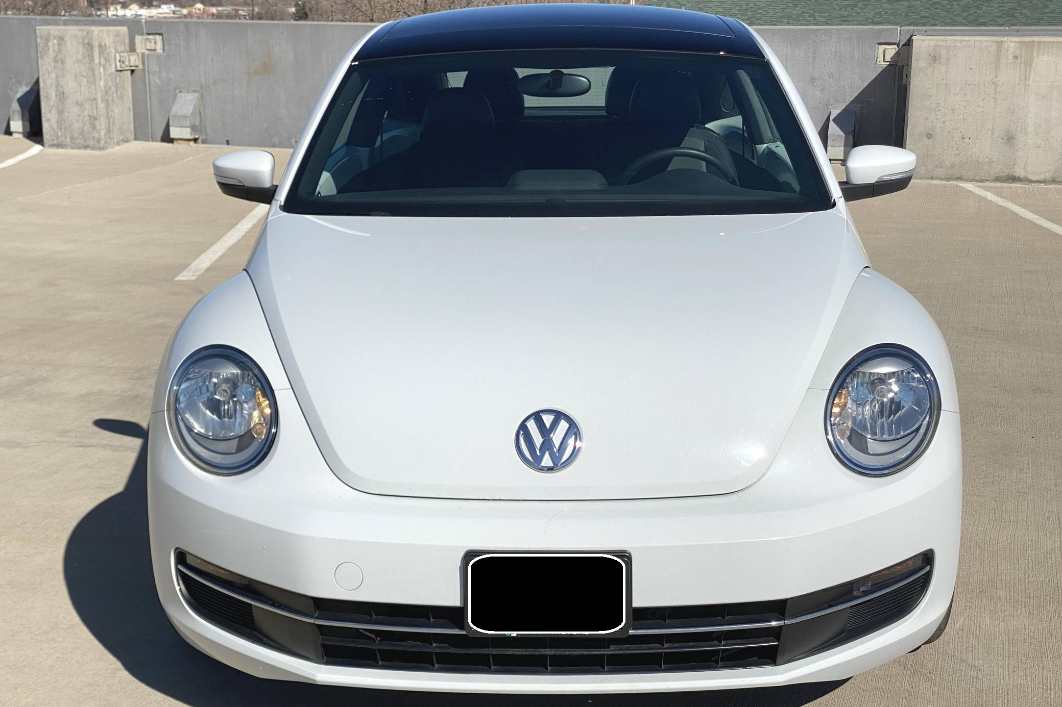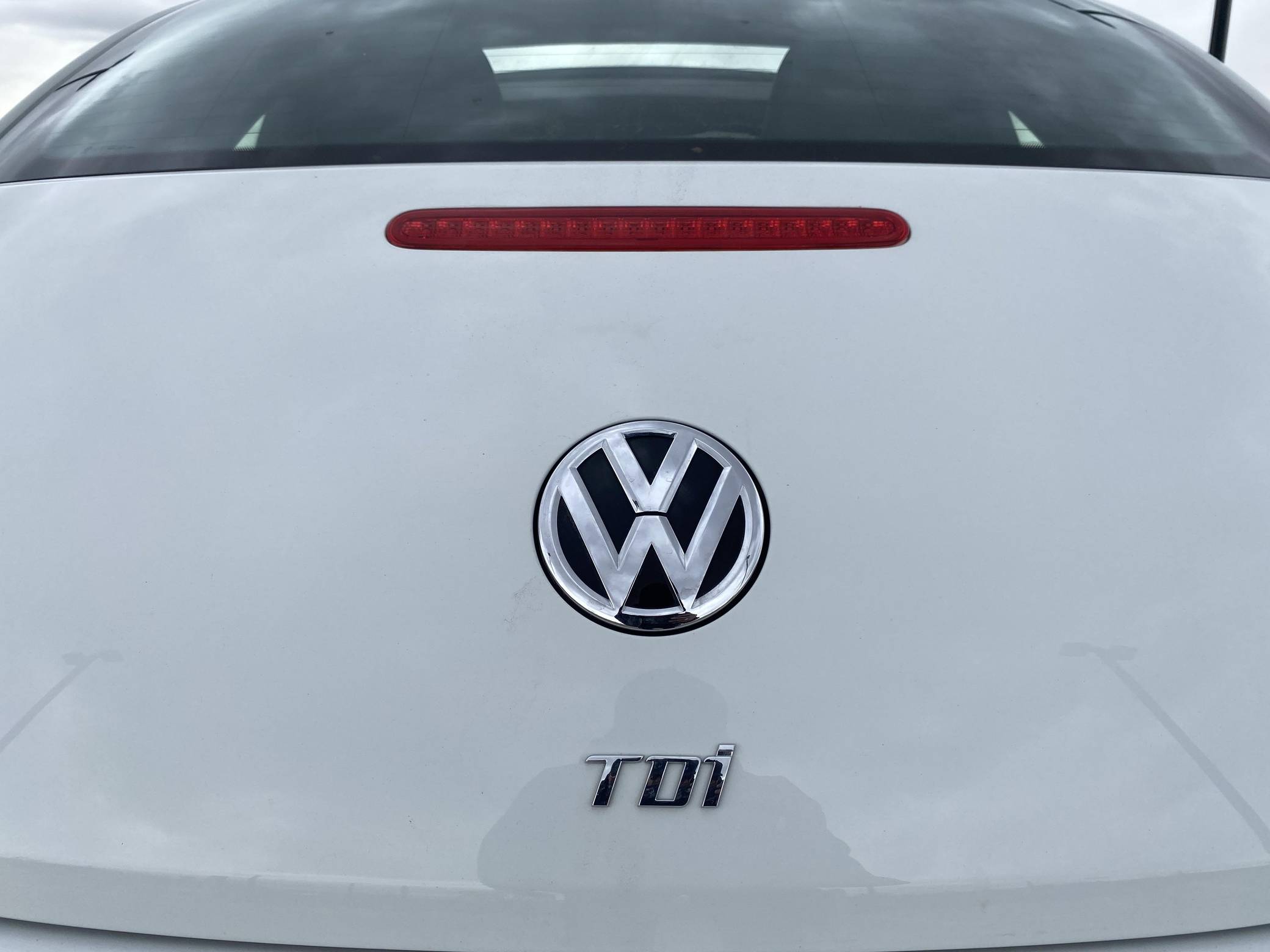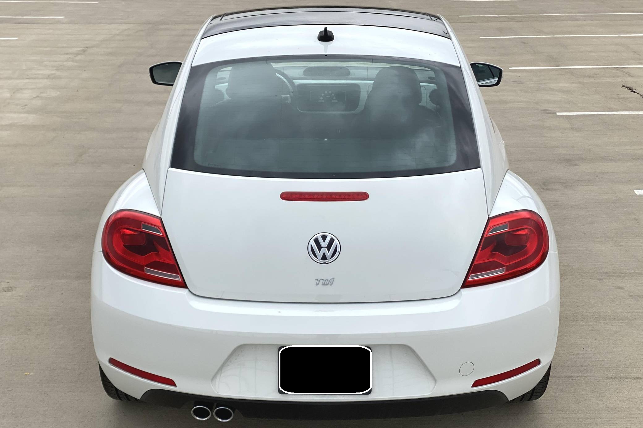 THIS… is a 2015 Volkswagen Beetle TDI, finished in Pure White with a Titan Black interior. The odometer on this Beetle TDI currently displays 131 miles. A build sheet is provided in the photo gallery, and a partial list of notable equipment includes 17-inch alloy wheels, 4-wheel disc brakes, a power sunroof, a leather-wrapped steering wheel, V-Tex leatherette upholstery, heated front seats, dual gloveboxes, a sound system with a Fender Bassman subwoofer, a navigation system, and more as detailed below. The seller reports no modifications. Volkswagen's Beetle was launched on the "A5" platform for the 2012 model year as a direct replacement for the New Beetle, itself a modern re-envisioning of Volkswagen's iconic Type 1 Beetle. The A5 Beetle gained a lower and more aggressive profile while retaining the New Beetle's retro styling cues, an efficient front-wheel-drive platform shared with the Golf, and variety of gas and diesel engines. It spawned numerous special editions until production ended in 2019. Power comes from a 2. 0-liter turbodiesel inline-4, rated at 150 horsepower and 236 lb-ft of torque. The engine spins the front wheels via a 6-speed "DSG" dual-clutch automatic transmission.