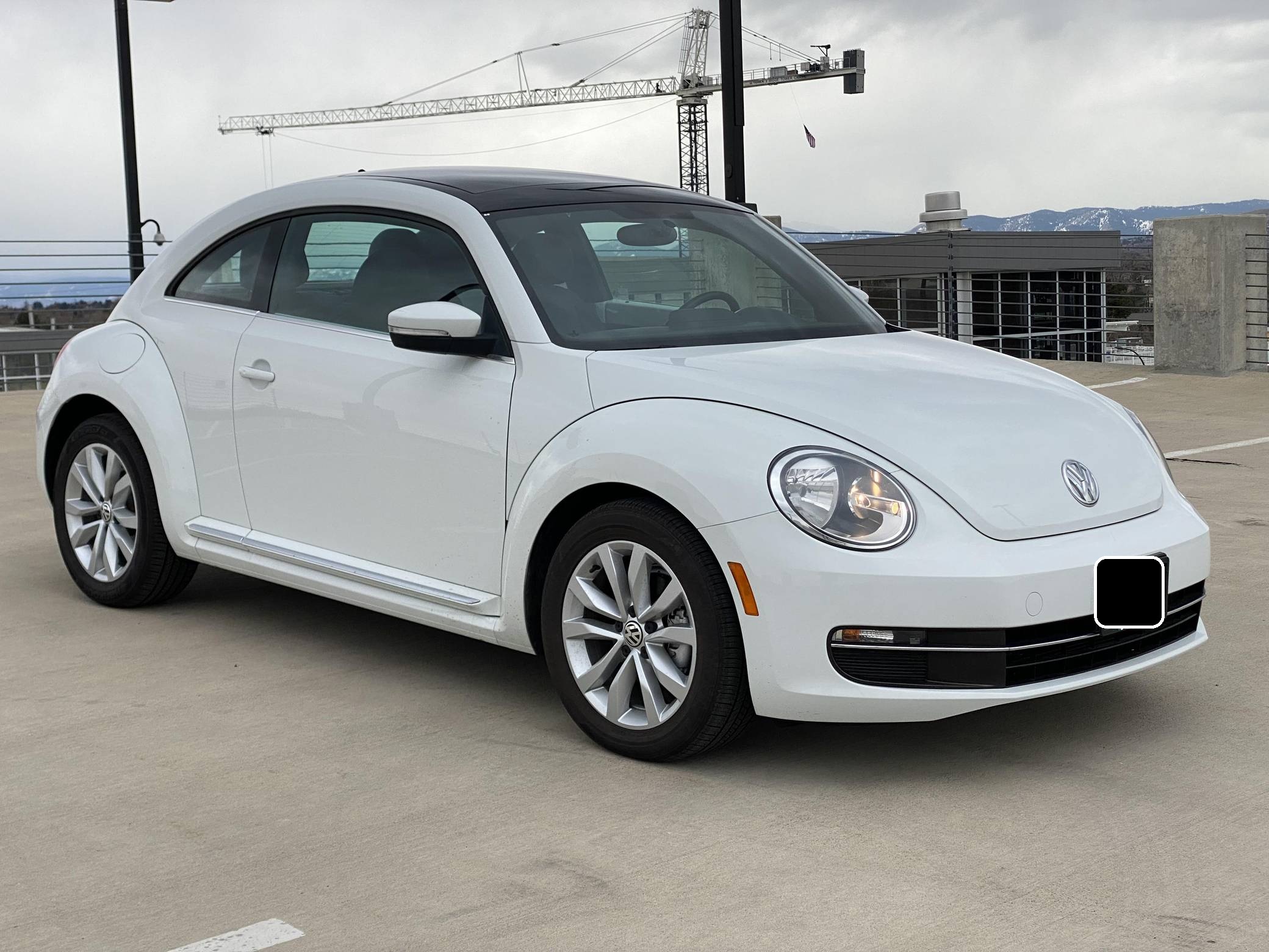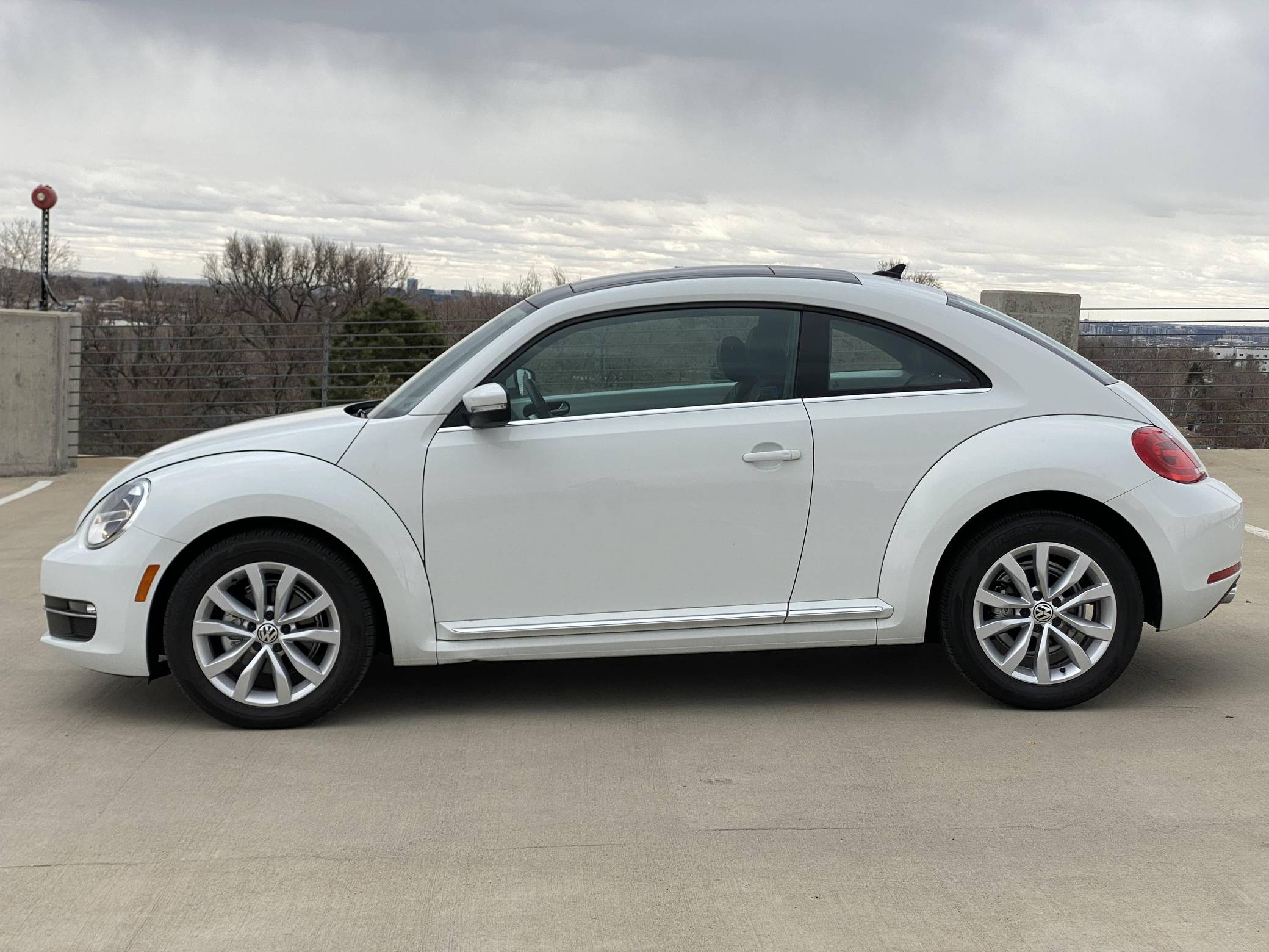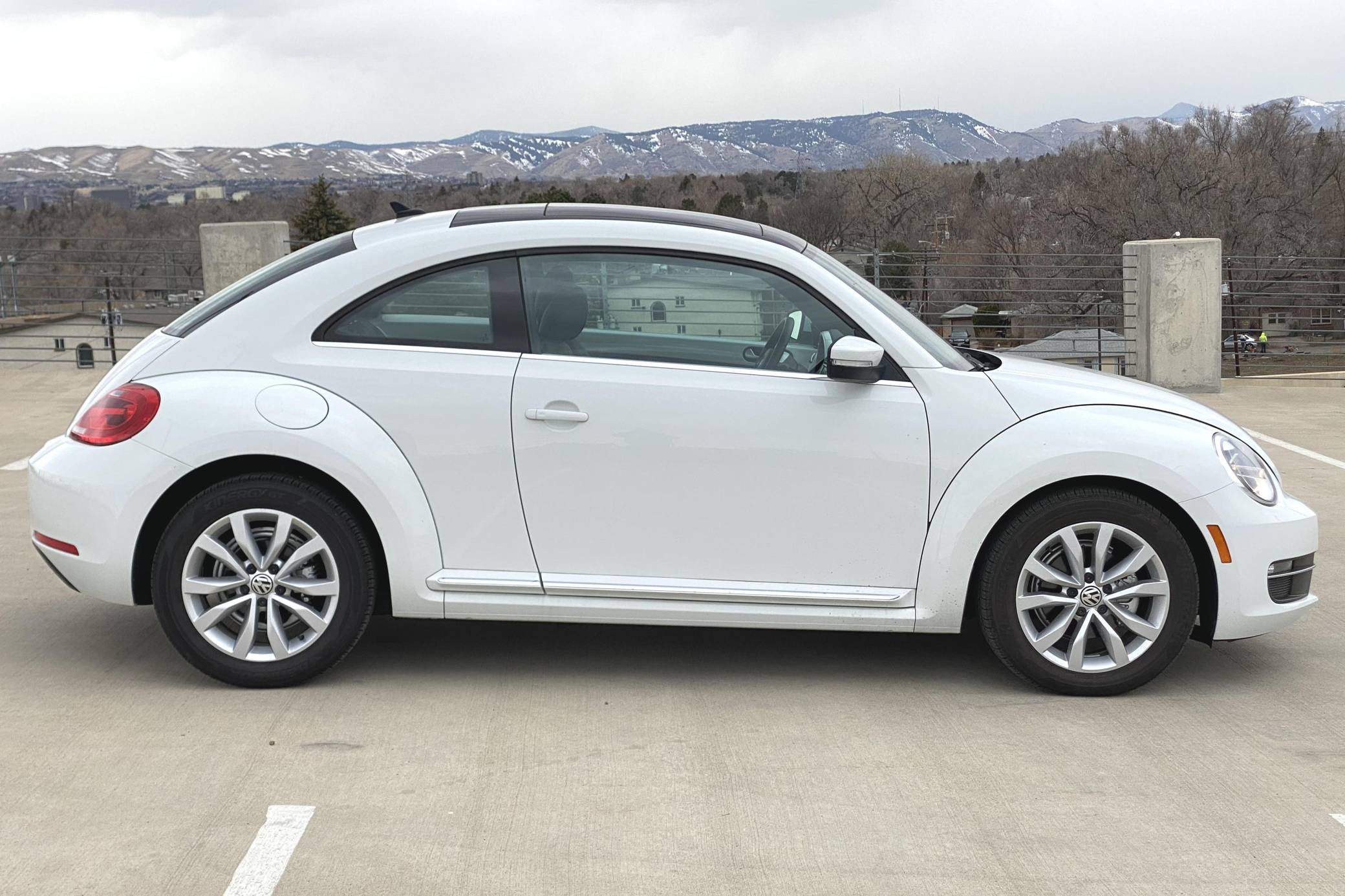 THIS… is a 2015 Volkswagen Beetle TDI, finished in Pure White with a Titan Black interior. The odometer on this Beetle TDI currently displays 131 miles. A build sheet is provided in the photo gallery, and a partial list of notable equipment includes 17-inch alloy wheels, 4-wheel disc brakes, a power sunroof, a leather-wrapped steering wheel, V-Tex leatherette upholstery, heated front seats, dual gloveboxes, a sound system with a Fender Bassman subwoofer, a navigation system, and more as detailed below. The seller reports no modifications. Volkswagen's Beetle was launched on the "A5" platform for the 2012 model year as a direct replacement for the New Beetle, itself a modern re-envisioning of Volkswagen's iconic Type 1 Beetle. The A5 Beetle gained a lower and more aggressive profile while retaining the New Beetle's retro styling cues, an efficient front-wheel-drive platform shared with the Golf, and variety of gas and diesel engines. It spawned numerous special editions until production ended in 2019. Power comes from a 2. 0-liter turbodiesel inline-4, rated at 150 horsepower and 236 lb-ft of torque. The engine spins the front wheels via a 6-speed "DSG" dual-clutch automatic transmission.