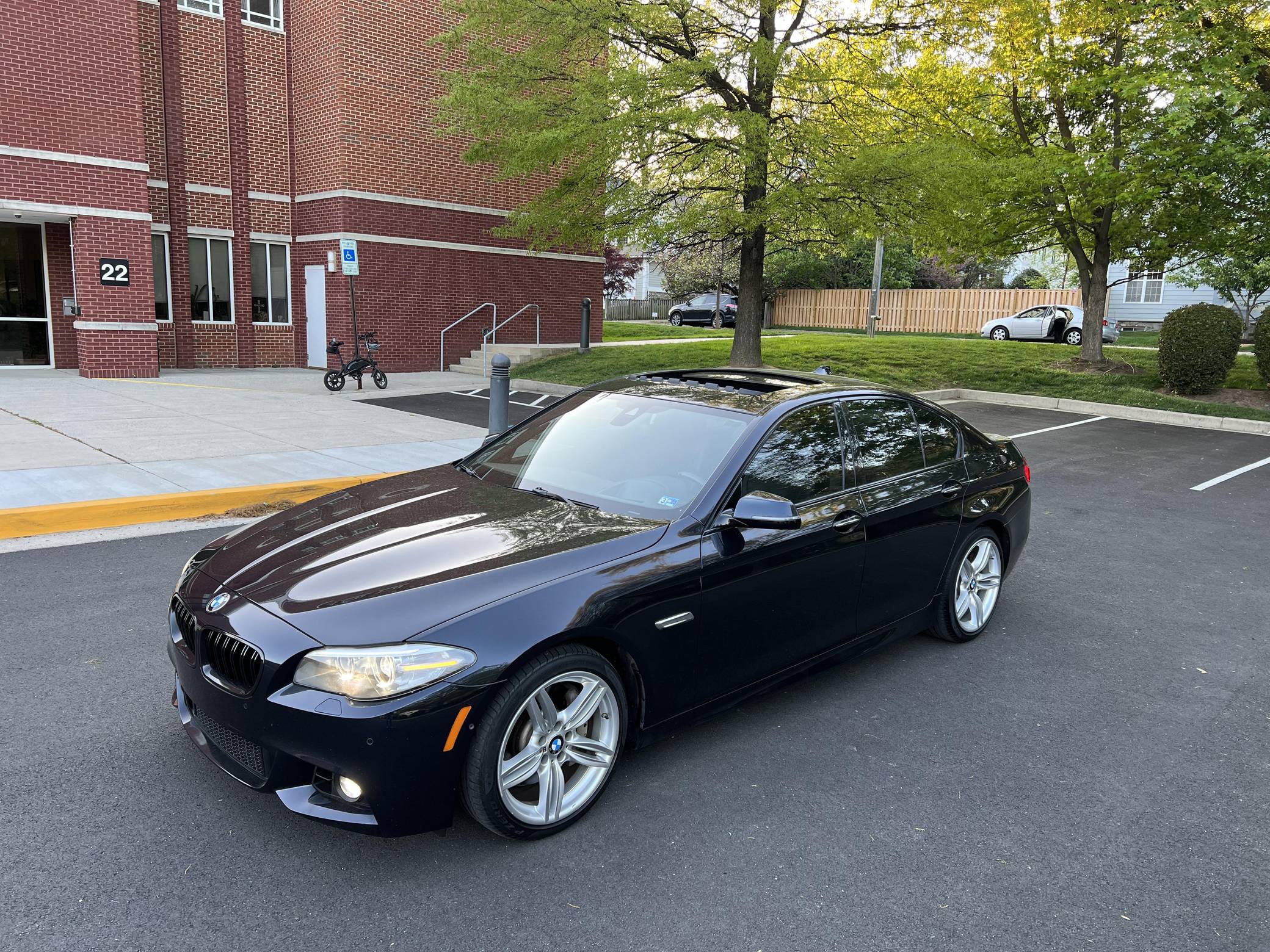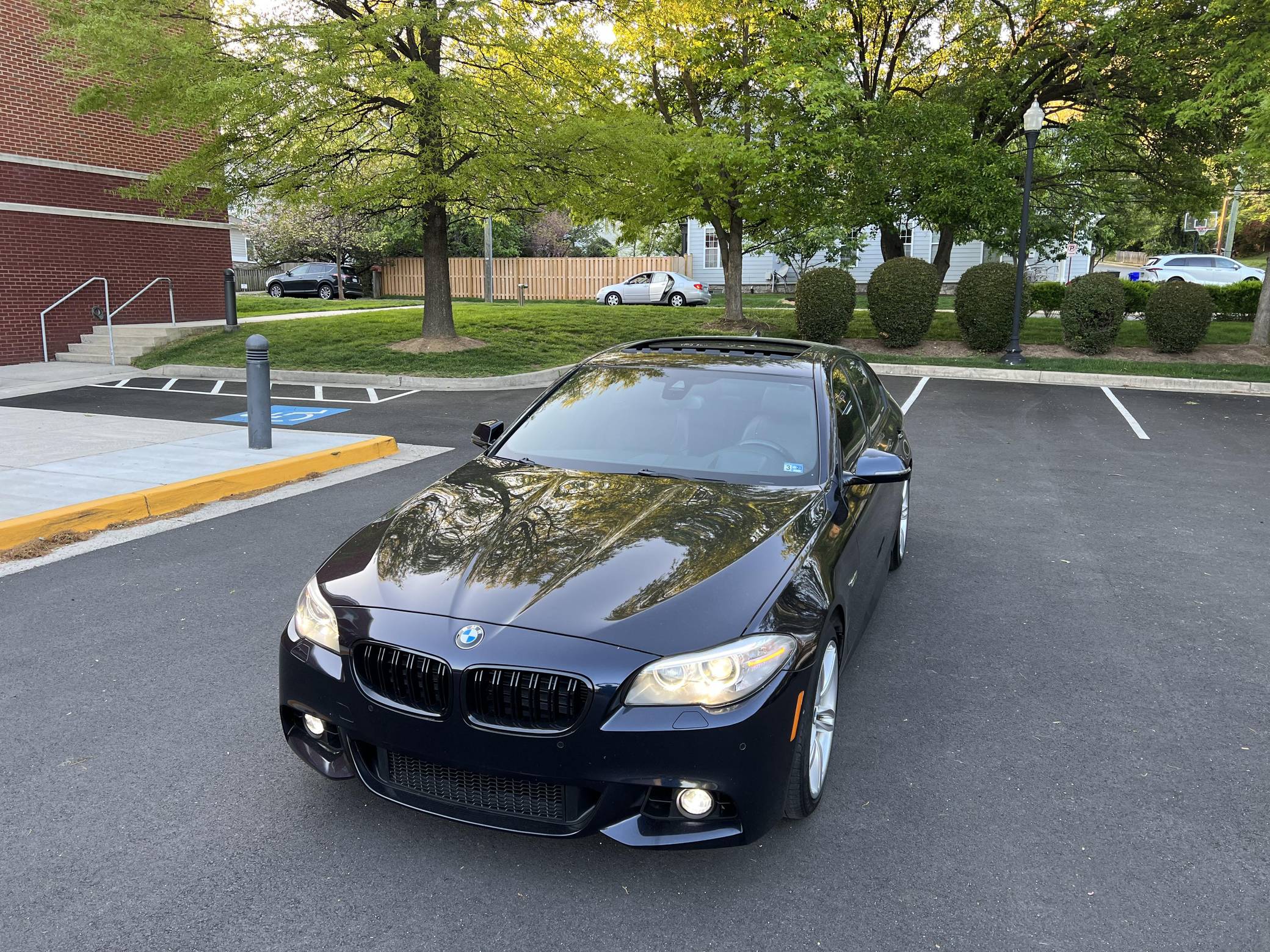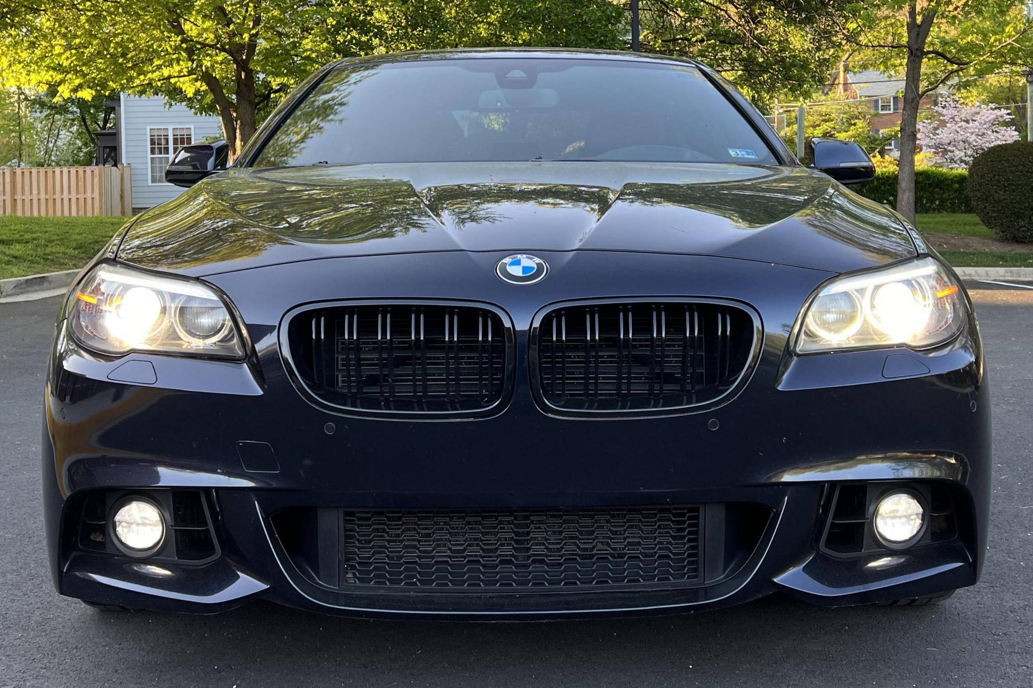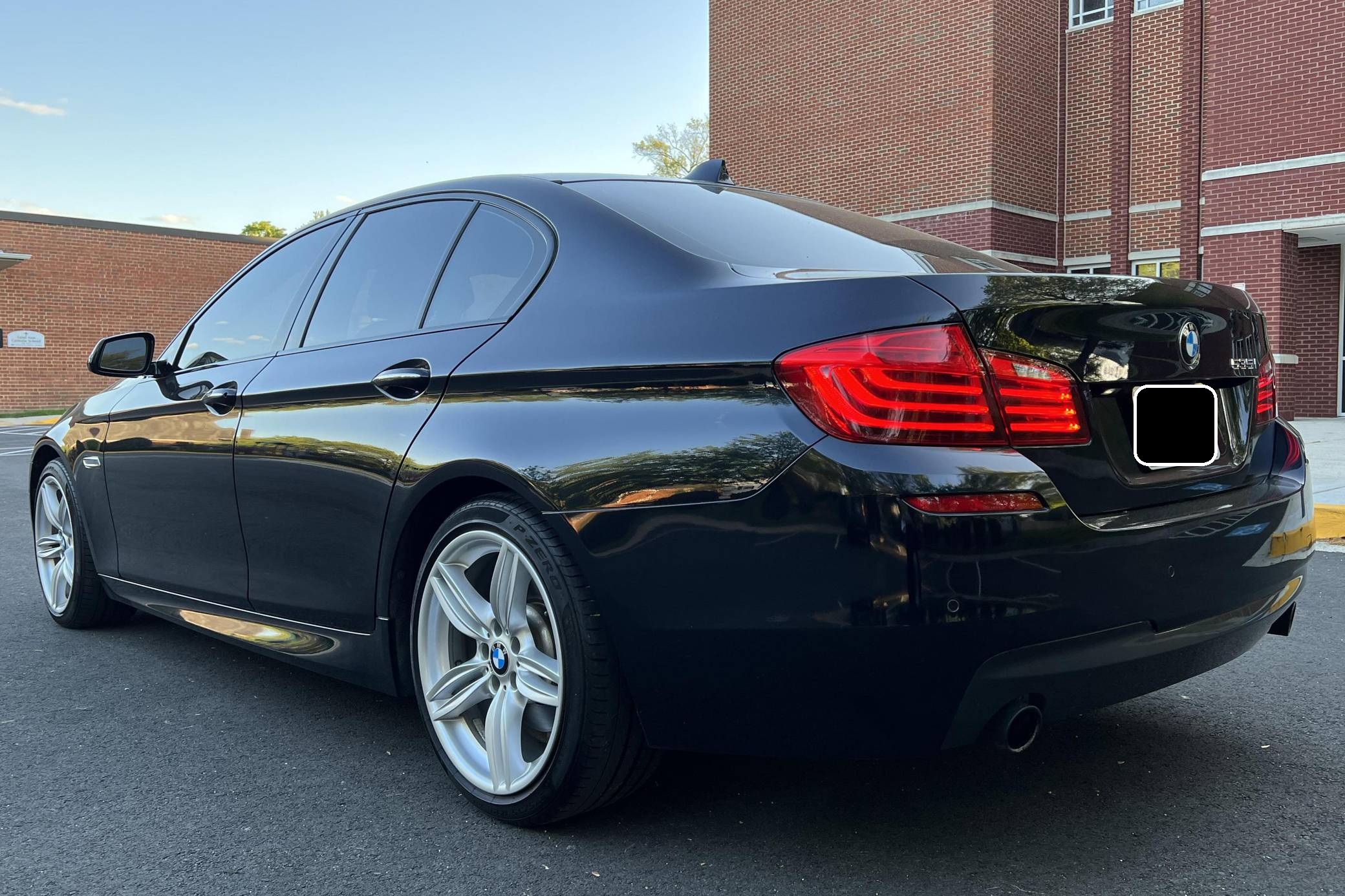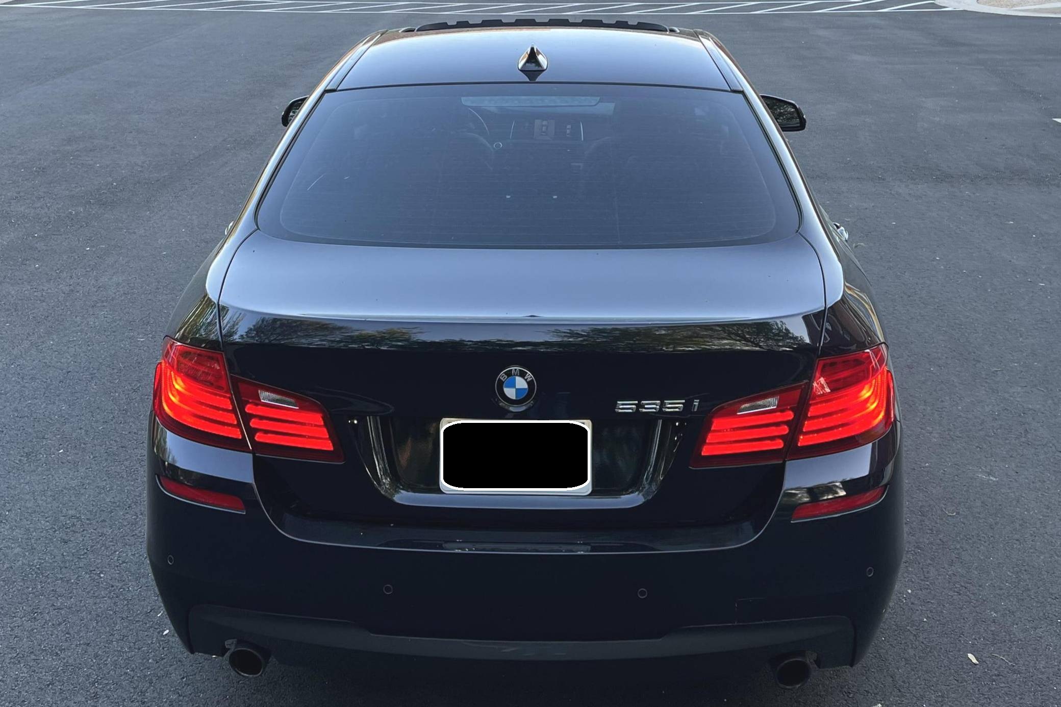 2015 BMW 535i sedan, finished in Carbon Black Metallic with a Mocha interior. A build sheet is shown in the gallery, and a partial list of notable equipment includes the M Sport Package, Premium Package, Driver Assistance Package, Luxury Seating Package, heated front seats, and a Harman Kardon sound system. Modifications are limited to black kidney grilles and tinted windows. BMW released the F10-generation 5 Series for the 2011 model year. It wore a less extroverted design than its predecessor, and engineers overhauled nearly every part of the chassis to ensure it remained the driver's choice in the segment in the face of growing competition. Power comes from a 3. 0-liter turbocharged inline-6 engine, rated at 300 horsepower and 300 lb-ft of torque. Power is sent to the rear wheels via an 8-speed automatic transmission.