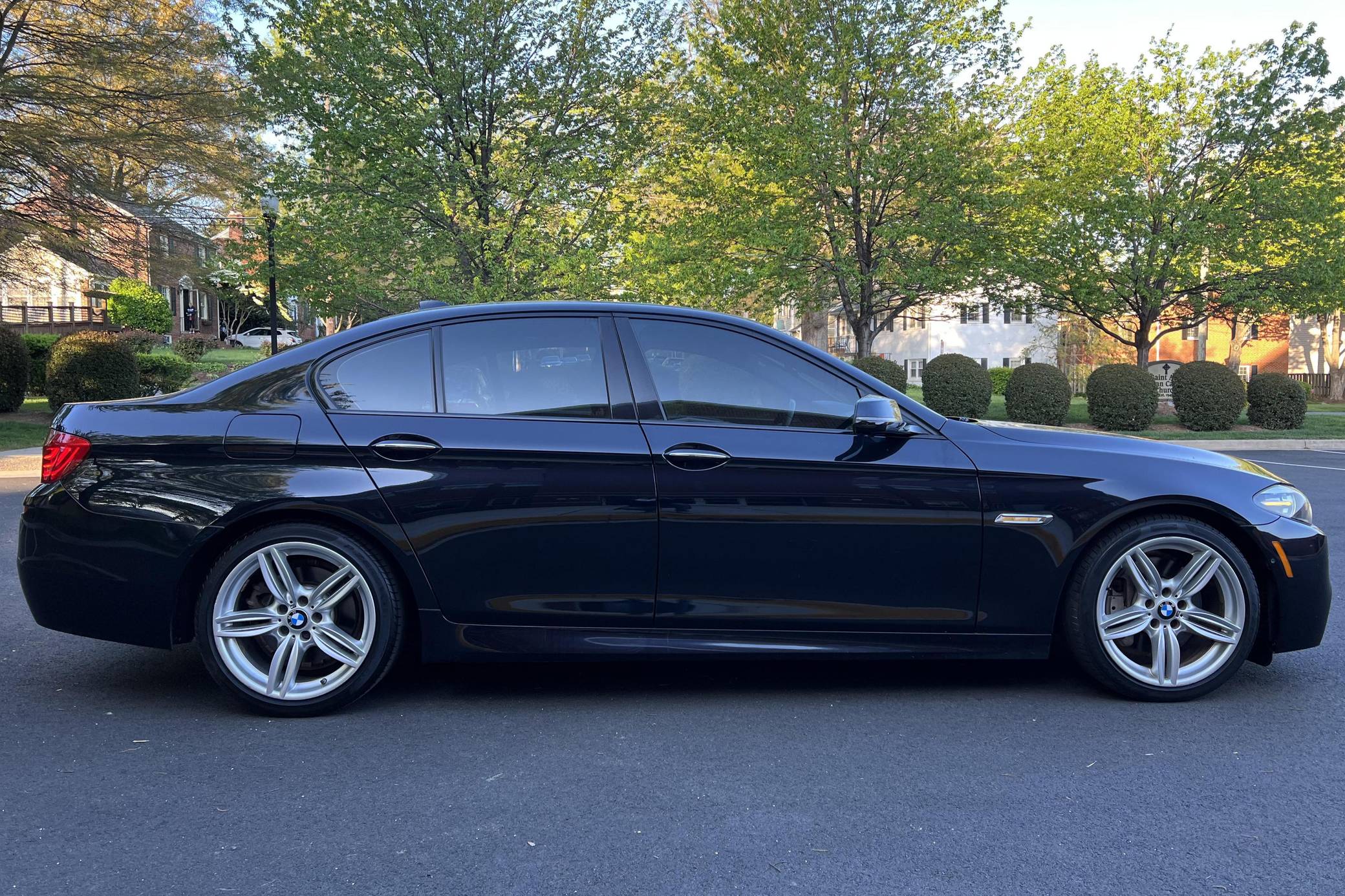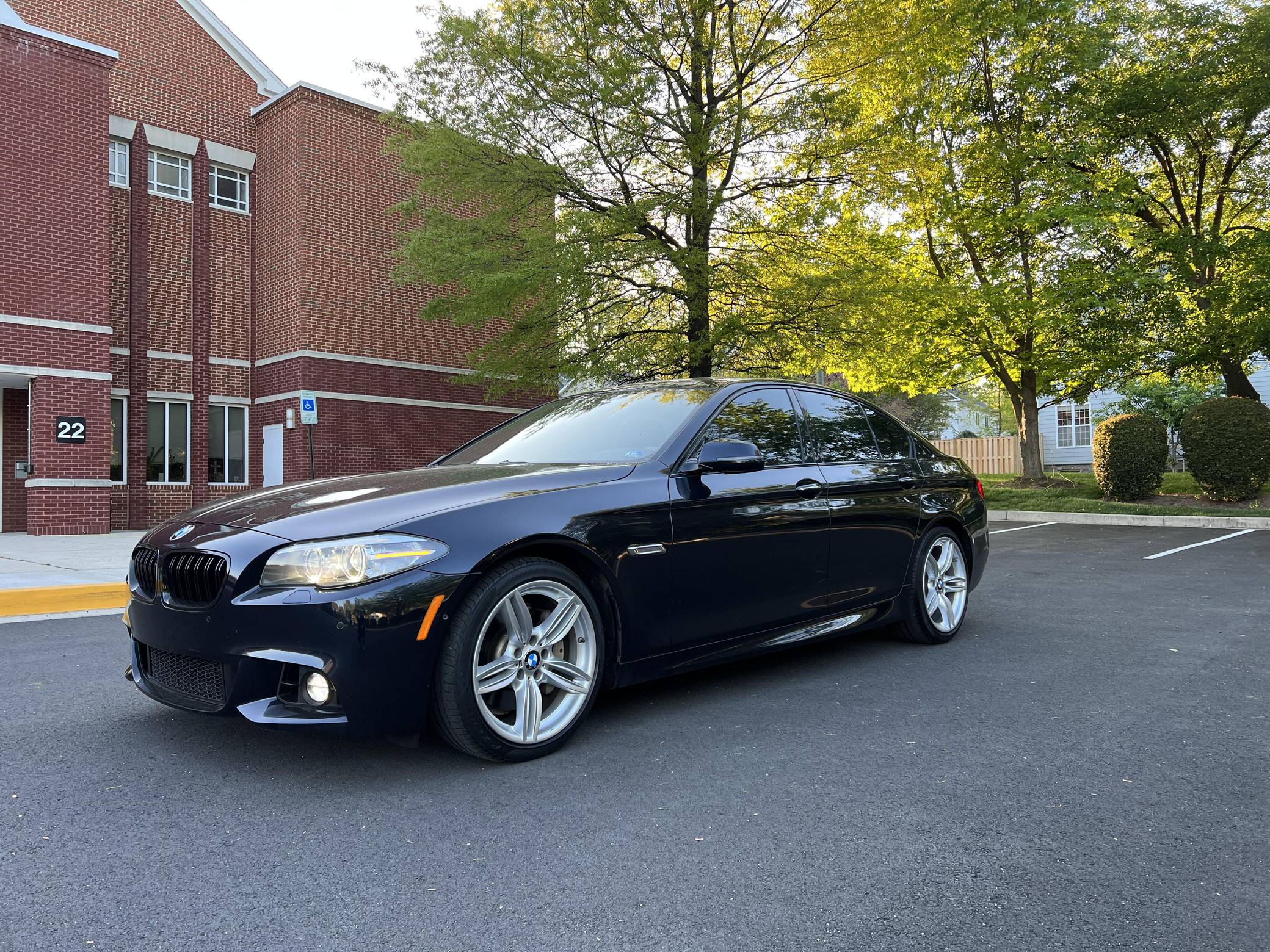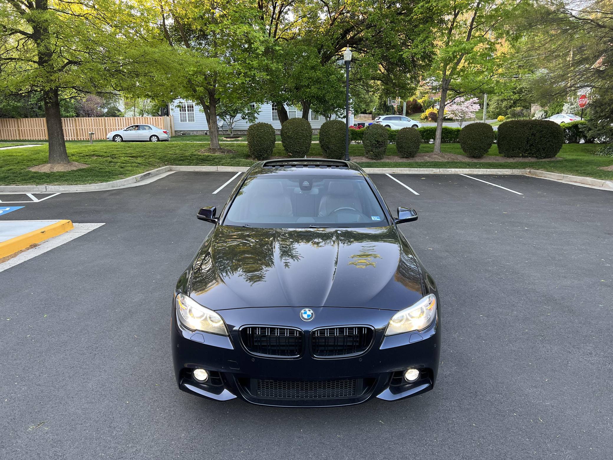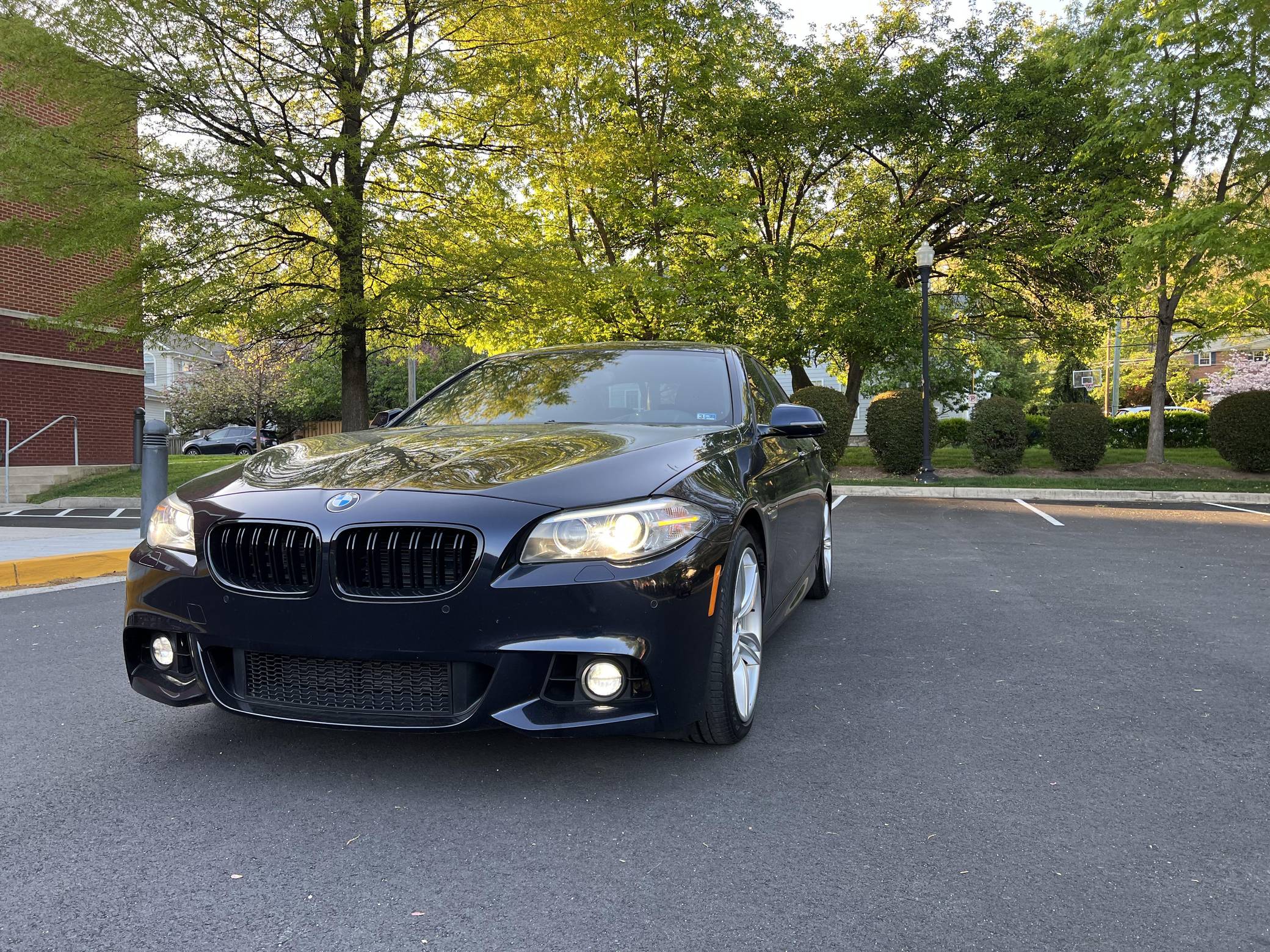 2015 BMW 535i sedan, finished in Carbon Black Metallic with a Mocha interior. A build sheet is shown in the gallery, and a partial list of notable equipment includes the M Sport Package, Premium Package, Driver Assistance Package, Luxury Seating Package, heated front seats, and a Harman Kardon sound system. Modifications are limited to black kidney grilles and tinted windows. BMW released the F10-generation 5 Series for the 2011 model year. It wore a less extroverted design than its predecessor, and engineers overhauled nearly every part of the chassis to ensure it remained the driver's choice in the segment in the face of growing competition. Power comes from a 3. 0-liter turbocharged inline-6 engine, rated at 300 horsepower and 300 lb-ft of torque. Power is sent to the rear wheels via an 8-speed automatic transmission.