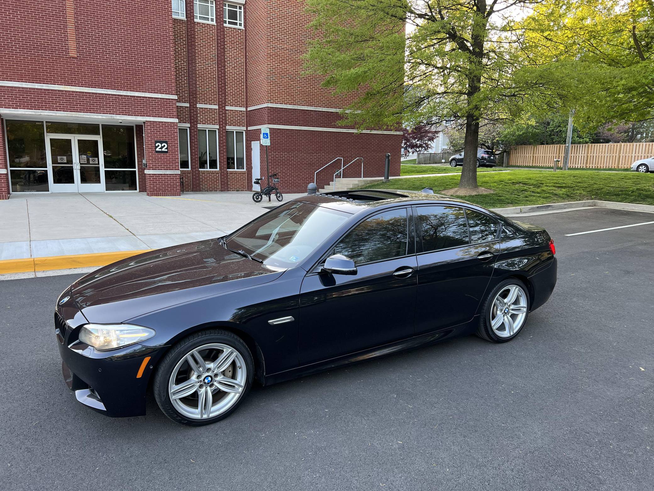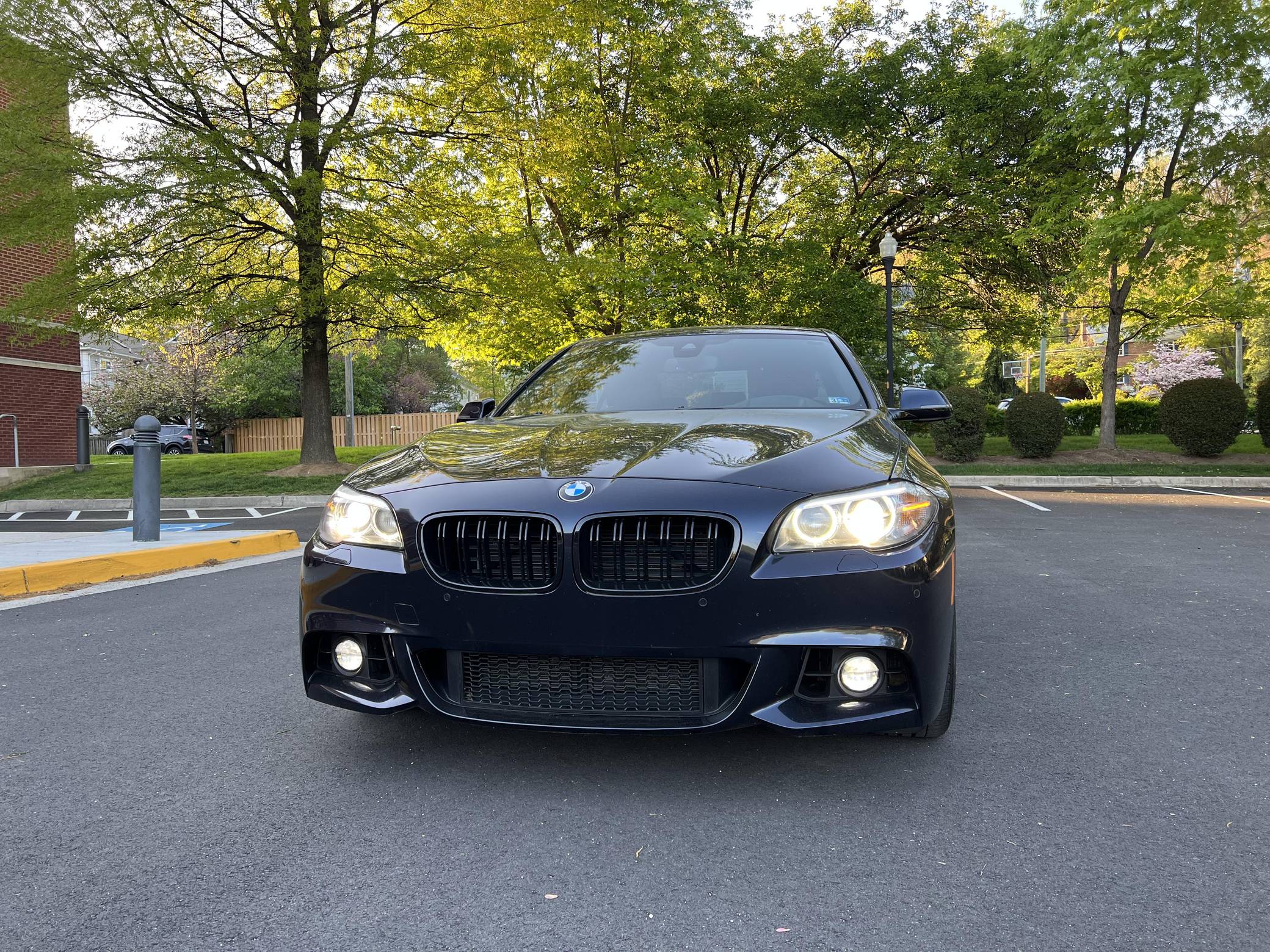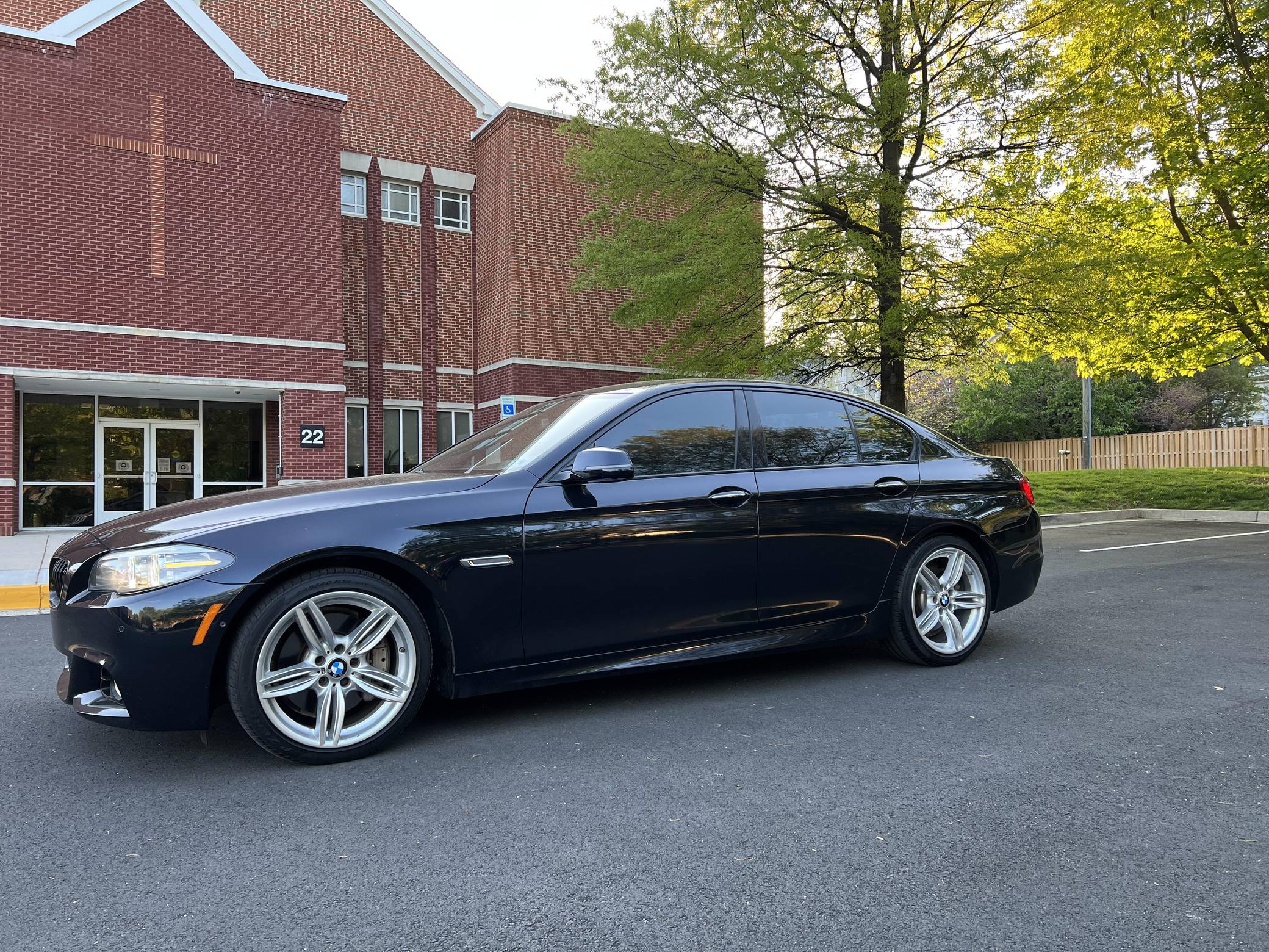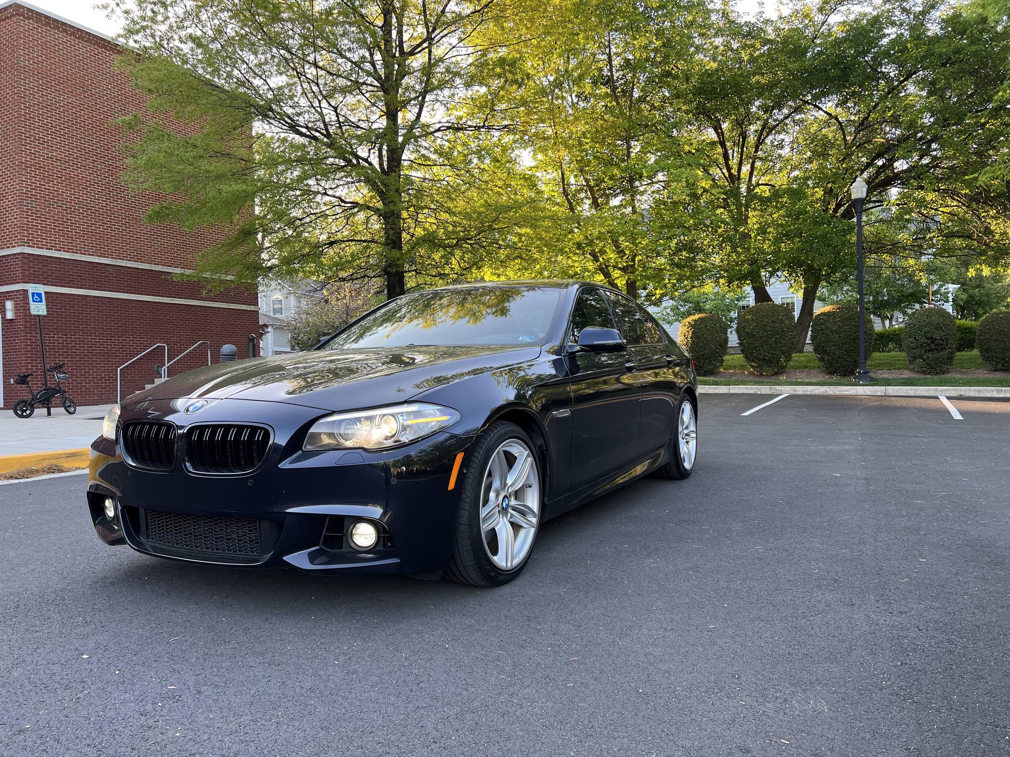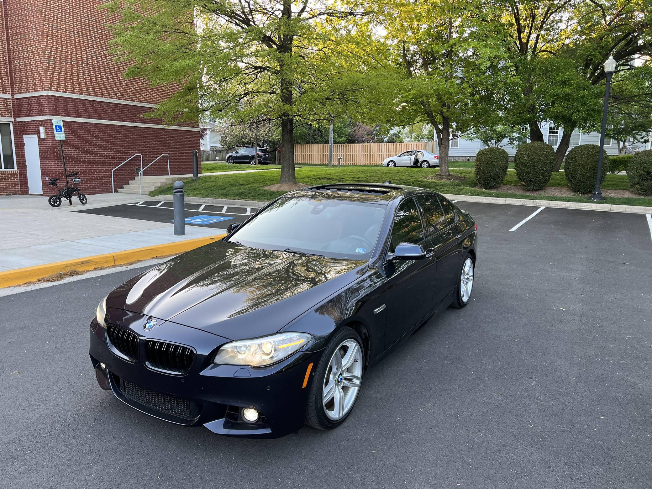 2015 BMW 535i sedan, finished in Carbon Black Metallic with a Mocha interior. A build sheet is shown in the gallery, and a partial list of notable equipment includes the M Sport Package, Premium Package, Driver Assistance Package, Luxury Seating Package, heated front seats, and a Harman Kardon sound system. Modifications are limited to black kidney grilles and tinted windows. BMW released the F10-generation 5 Series for the 2011 model year. It wore a less extroverted design than its predecessor, and engineers overhauled nearly every part of the chassis to ensure it remained the driver's choice in the segment in the face of growing competition. Power comes from a 3. 0-liter turbocharged inline-6 engine, rated at 300 horsepower and 300 lb-ft of torque. Power is sent to the rear wheels via an 8-speed automatic transmission.