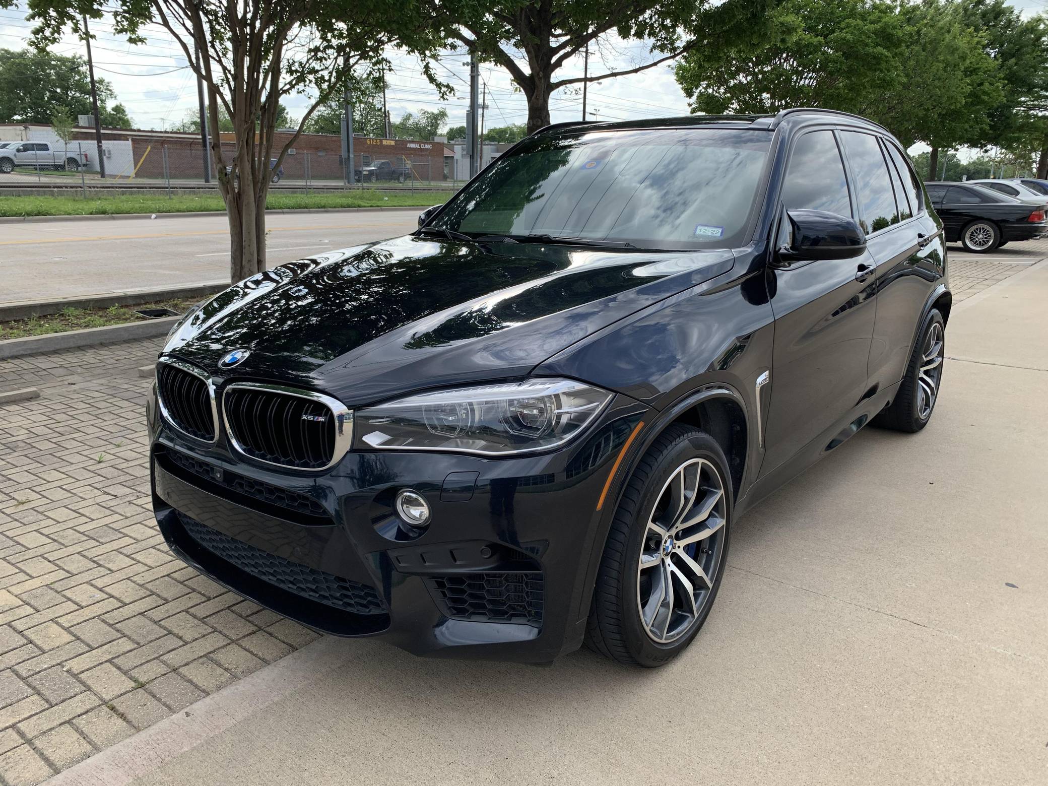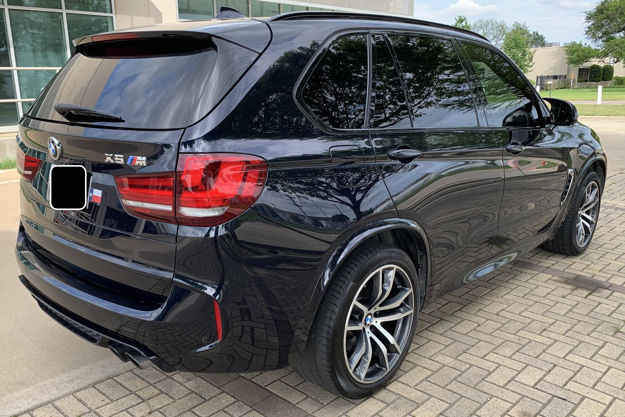 THIS. . . is a 2017 BMW X5 M, finished in Carbon Black with an Aragon Brown interior. According to the build sheet provided in the gallery, factory equipment includes the Executive Package, 20-inch Style 611M alloy wheels, fog lights, a panoramic roof, Merino leather upholstery, Comfort Access keyless entry, heated and power-adjustable front seats, and a Bang & Olufsen sound system, among others listed below. Modifications reported by the seller include a Dinan cold air intake, a CarBahn Autoworks ECU tune, and ceramic window tint. Called "F85" internally, BMW's second-generation X5 M rode on an updated version of its predecessor's underpinnings, but it was slightly larger inside and out. Of course, it retained the unique split tailgate that provides a small bench seat. Inside, the technological leap included a digital instrument cluster and a widescreen display with BMW's latest iDrive infotainment software. The twin-turbocharged "S63" V8 saw an increase in horsepower over its predecessor, and was paired with an all new 8-speed automatic transmission that BMW claimed could propel it to 60 mph in the low 4-second range. Power comes from an "S63" 4. 4-liter, twin-turbocharged V8, rated at 567 horsepower and 553 lb-ft of torque. Due to the modifications performed to this X5 M, it may produce more power, but a dyno sheet was not provided to confirm. Output is sent to all four wheels through an 8-speed automatic transmission and M-tuned xDrive all-wheel drive system.
