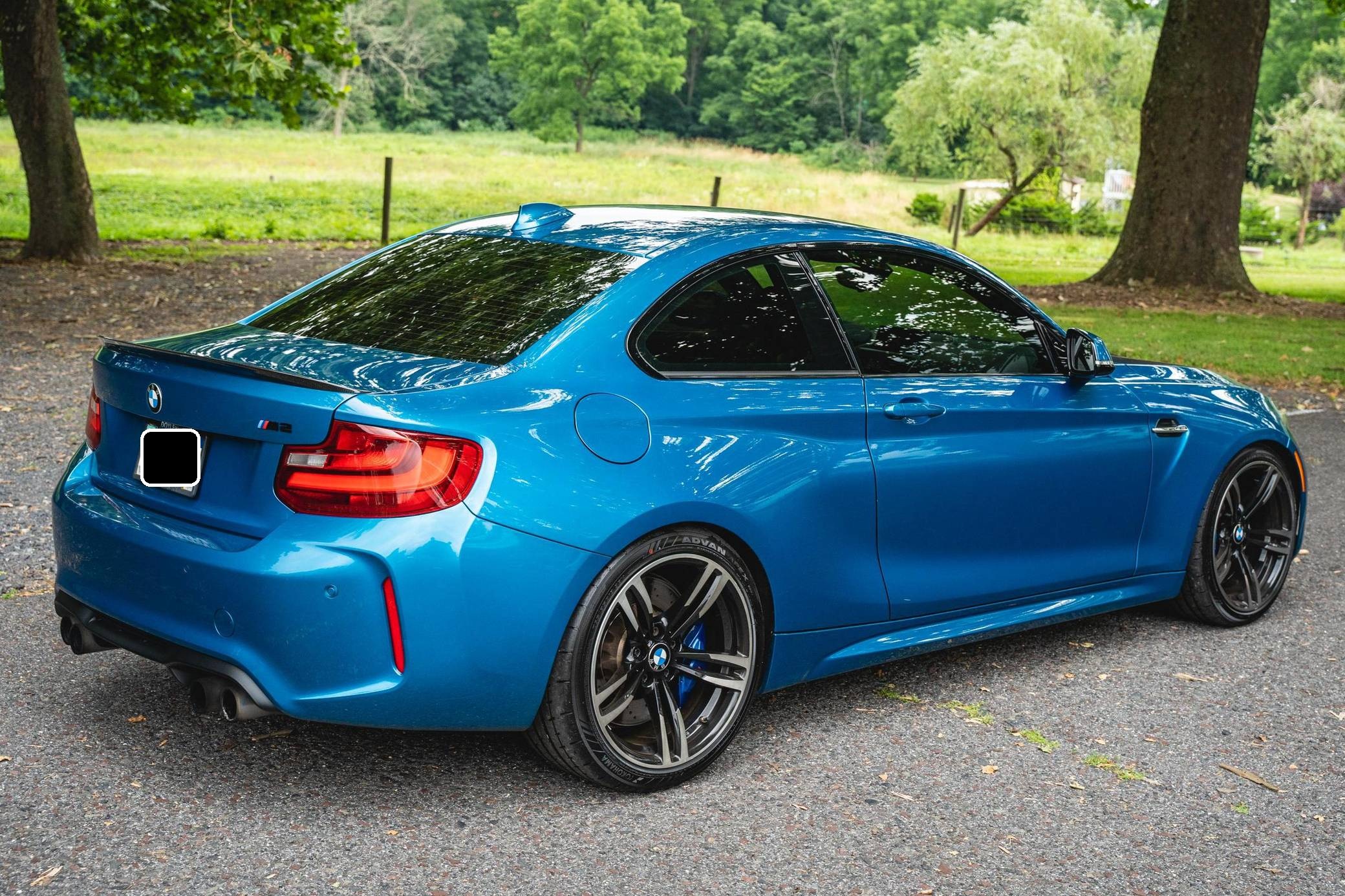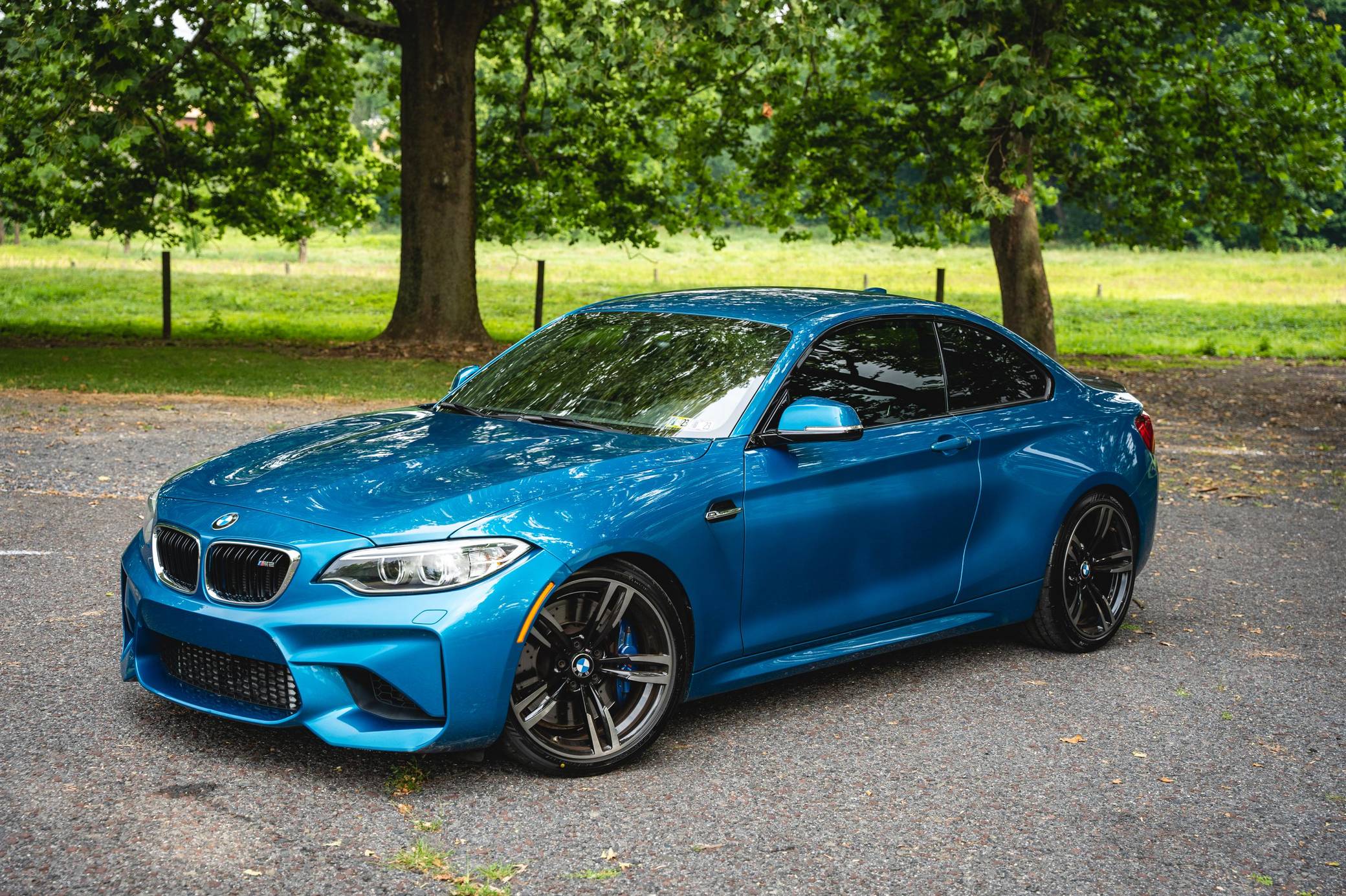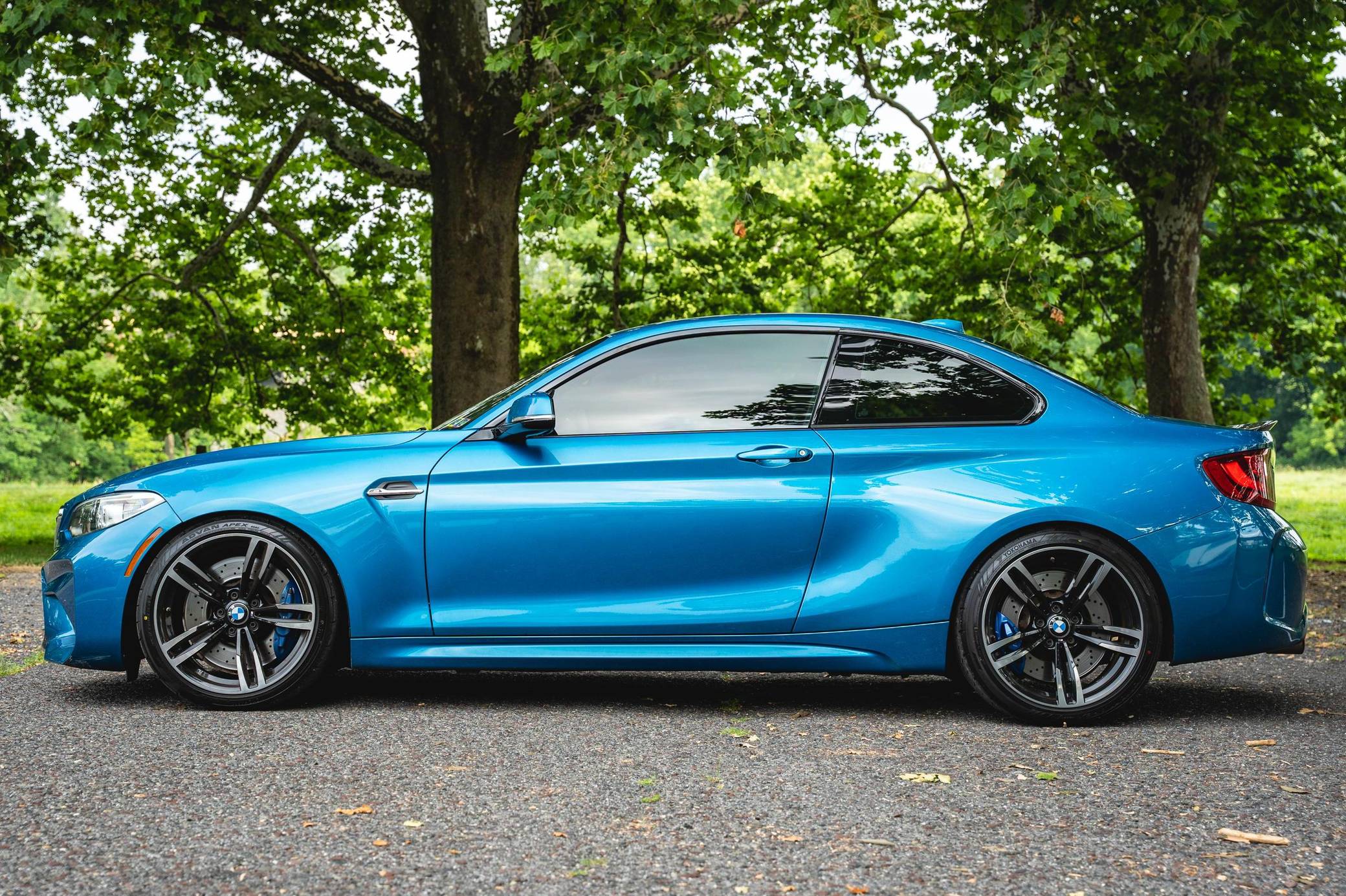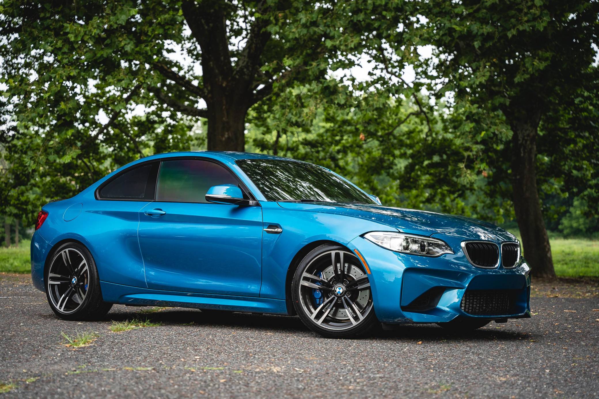 2016 BMW M2, finished in Long Beach Blue Metallic with a black interior. This M2 is equipped with the desirable 6-speed manual transmission. The full list of modifications reported by the seller is detailed below. include Dinan Stage 2 performance engine software, a Dinan "Big Turbo" kit, a Dinan upgraded fuel pump, and Bilstein B16 PSS10 coilovers. BMW introduced the F87 M2 for the 2016 model year as a high-performance evolution of the "F22"-generation 2 Series. Developed to replace the vaunted 1 Series M Coupe, it was celebrated as one of BMW M's greatest modern hits. It stood out from the 2 Series thanks to a more powerful engine, a revised chassis, M-specific suspension with aluminum components, and a more muscular-looking exterior design. Power comes from a turbocharged "N55" 3. 0-liter straight-6 engine, rated at 365 horsepower and 343 lb-ft of torque in stock form. According to a dyno sheet pictured in the gallery, the modifications increase those figures to 391 and 410 respectively, at the wheels. Output is sent to the rear wheels via a 6-speed manual transmission.
