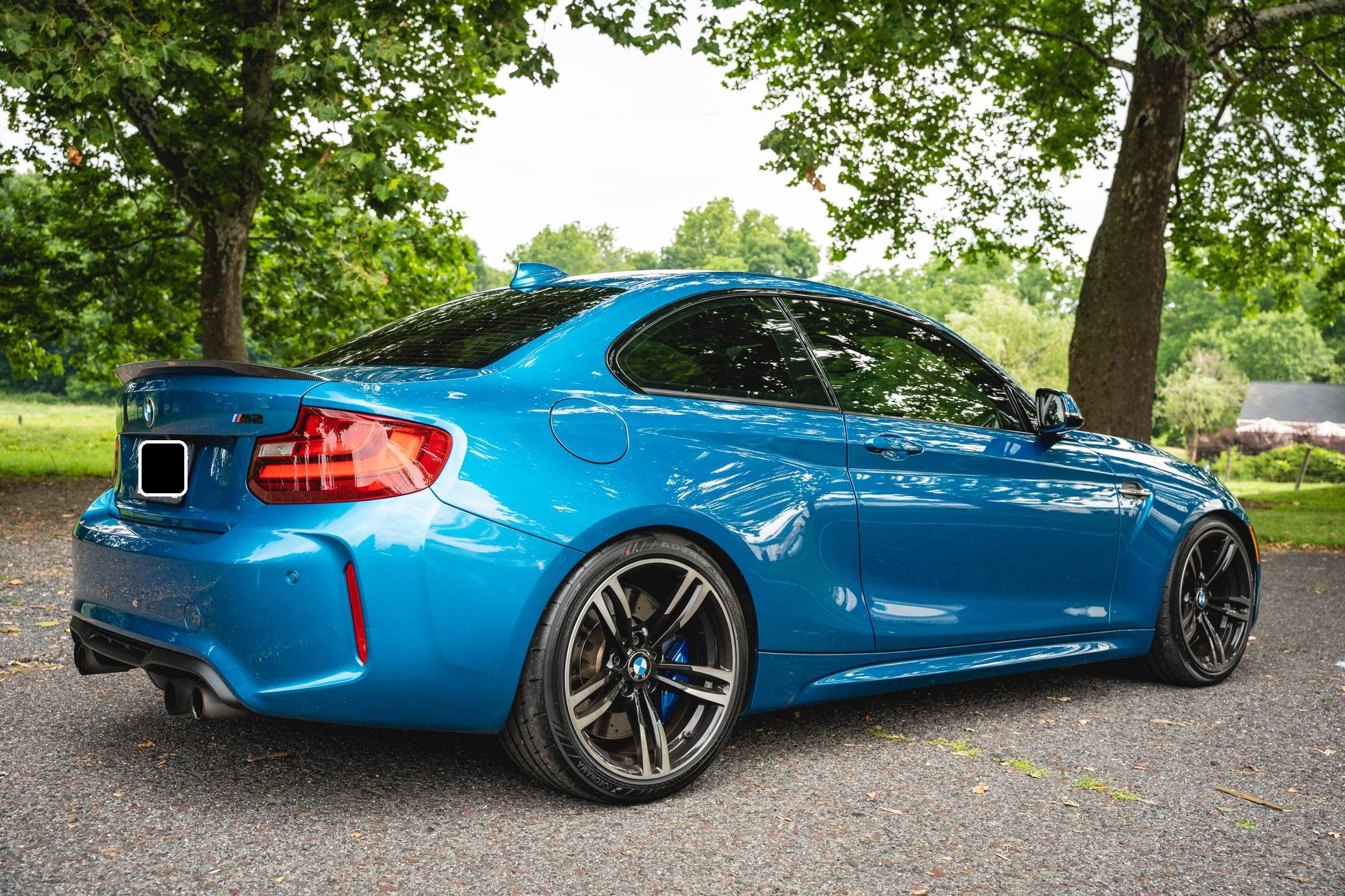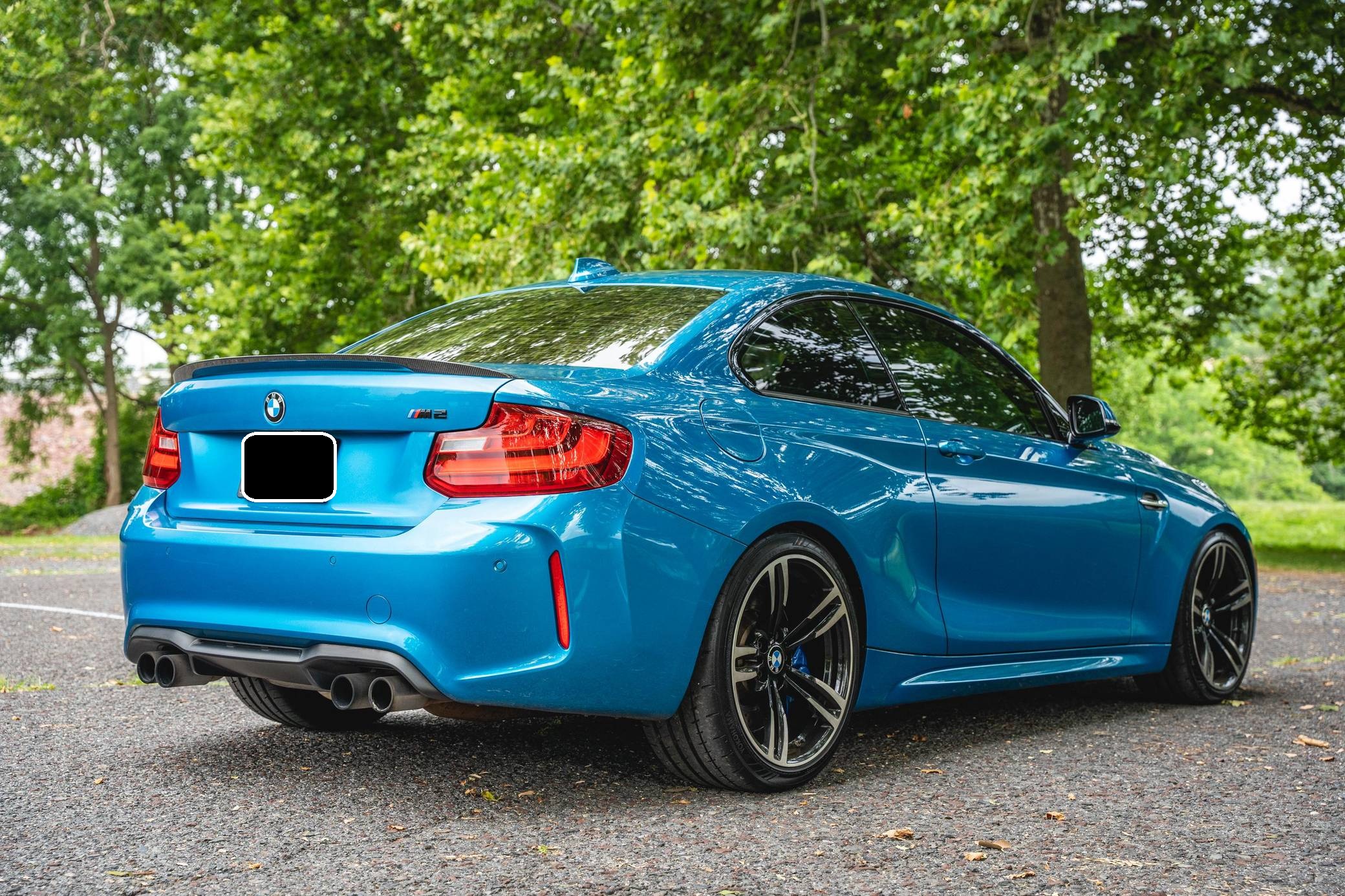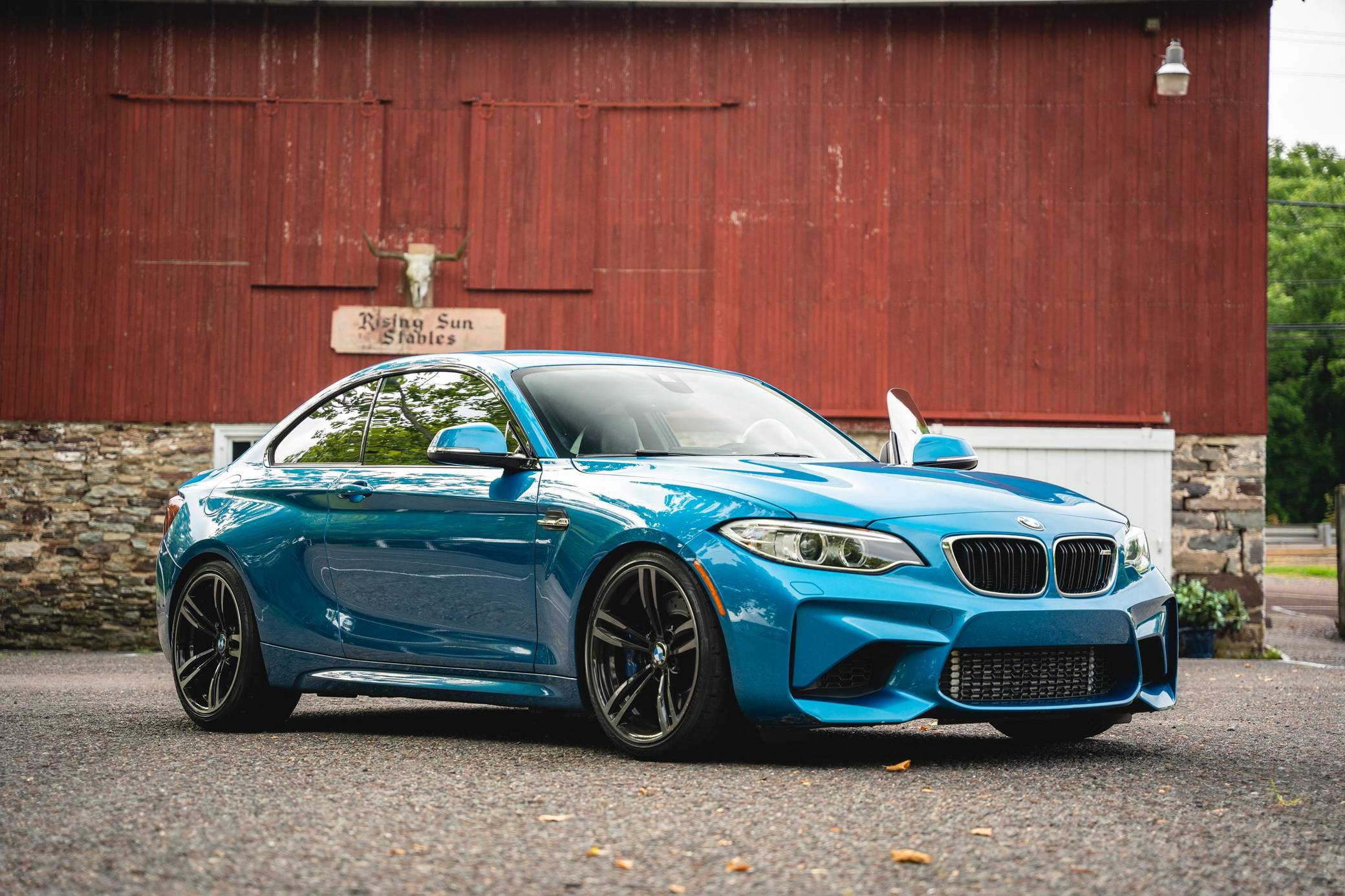 2016 BMW M2, finished in Long Beach Blue Metallic with a black interior. This M2 is equipped with the desirable 6-speed manual transmission. The full list of modifications reported by the seller is detailed below. include Dinan Stage 2 performance engine software, a Dinan "Big Turbo" kit, a Dinan upgraded fuel pump, and Bilstein B16 PSS10 coilovers. BMW introduced the F87 M2 for the 2016 model year as a high-performance evolution of the "F22"-generation 2 Series. Developed to replace the vaunted 1 Series M Coupe, it was celebrated as one of BMW M's greatest modern hits. It stood out from the 2 Series thanks to a more powerful engine, a revised chassis, M-specific suspension with aluminum components, and a more muscular-looking exterior design. Power comes from a turbocharged "N55" 3. 0-liter straight-6 engine, rated at 365 horsepower and 343 lb-ft of torque in stock form. According to a dyno sheet pictured in the gallery, the modifications increase those figures to 391 and 410 respectively, at the wheels. Output is sent to the rear wheels via a 6-speed manual transmission.