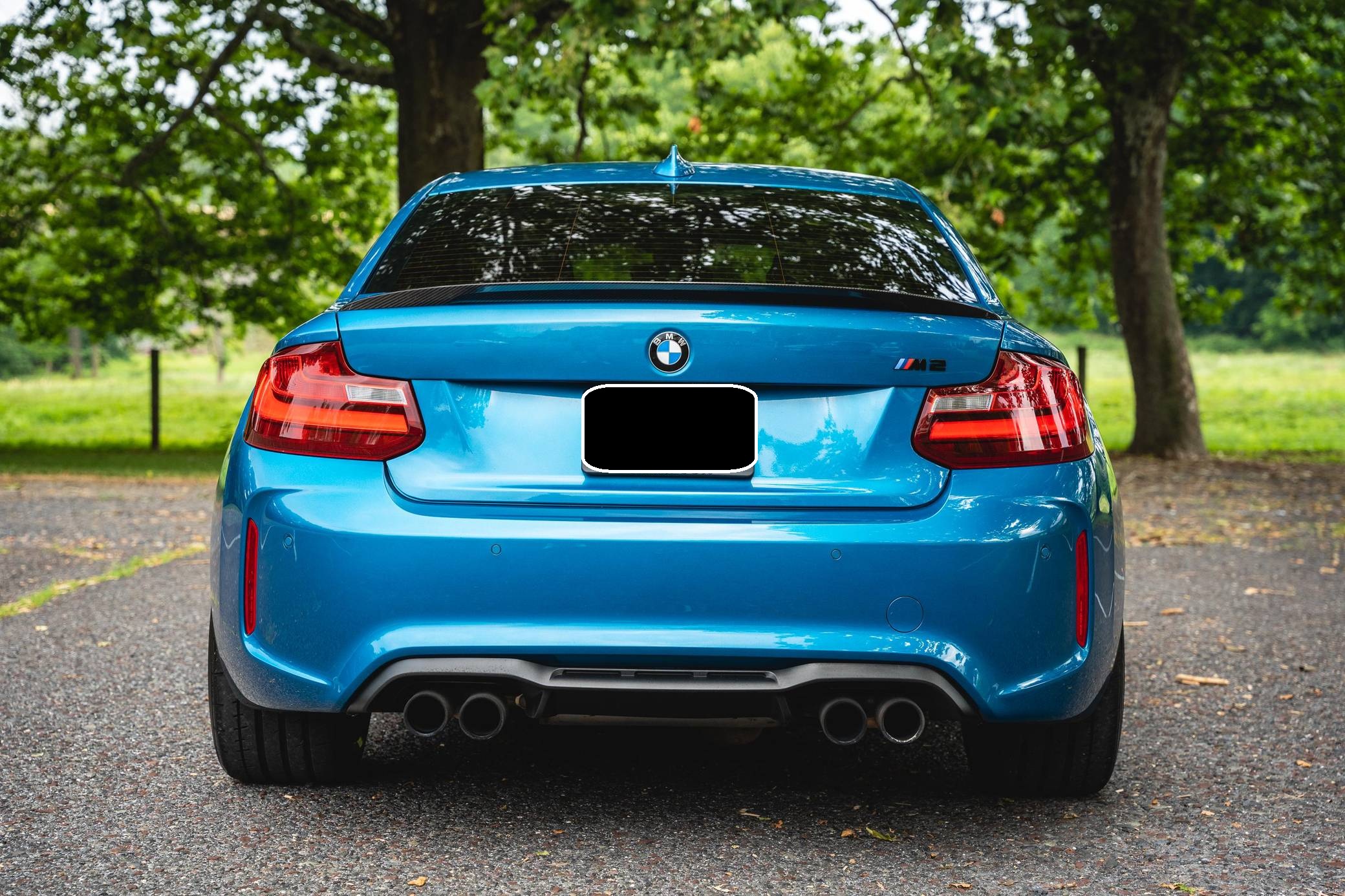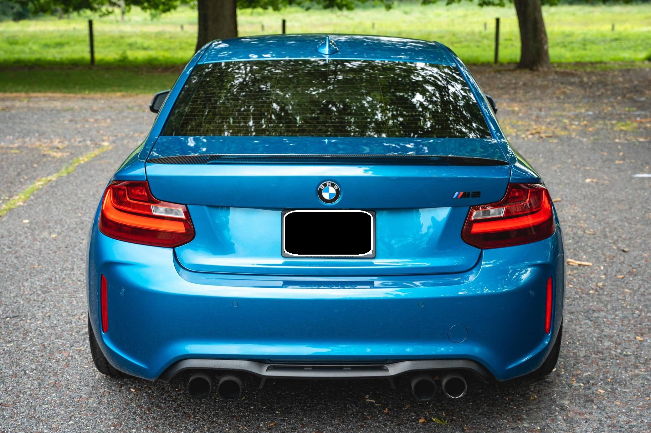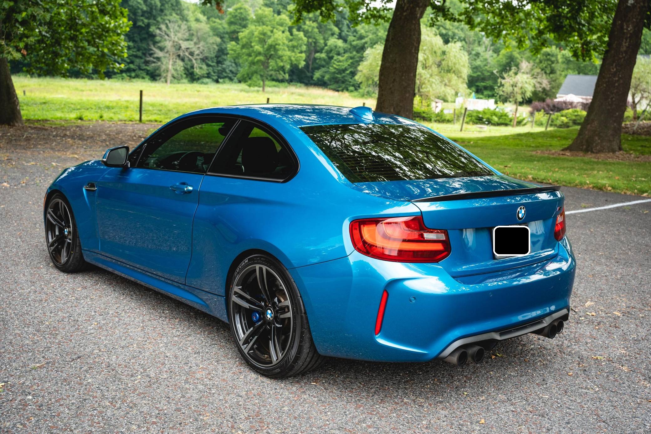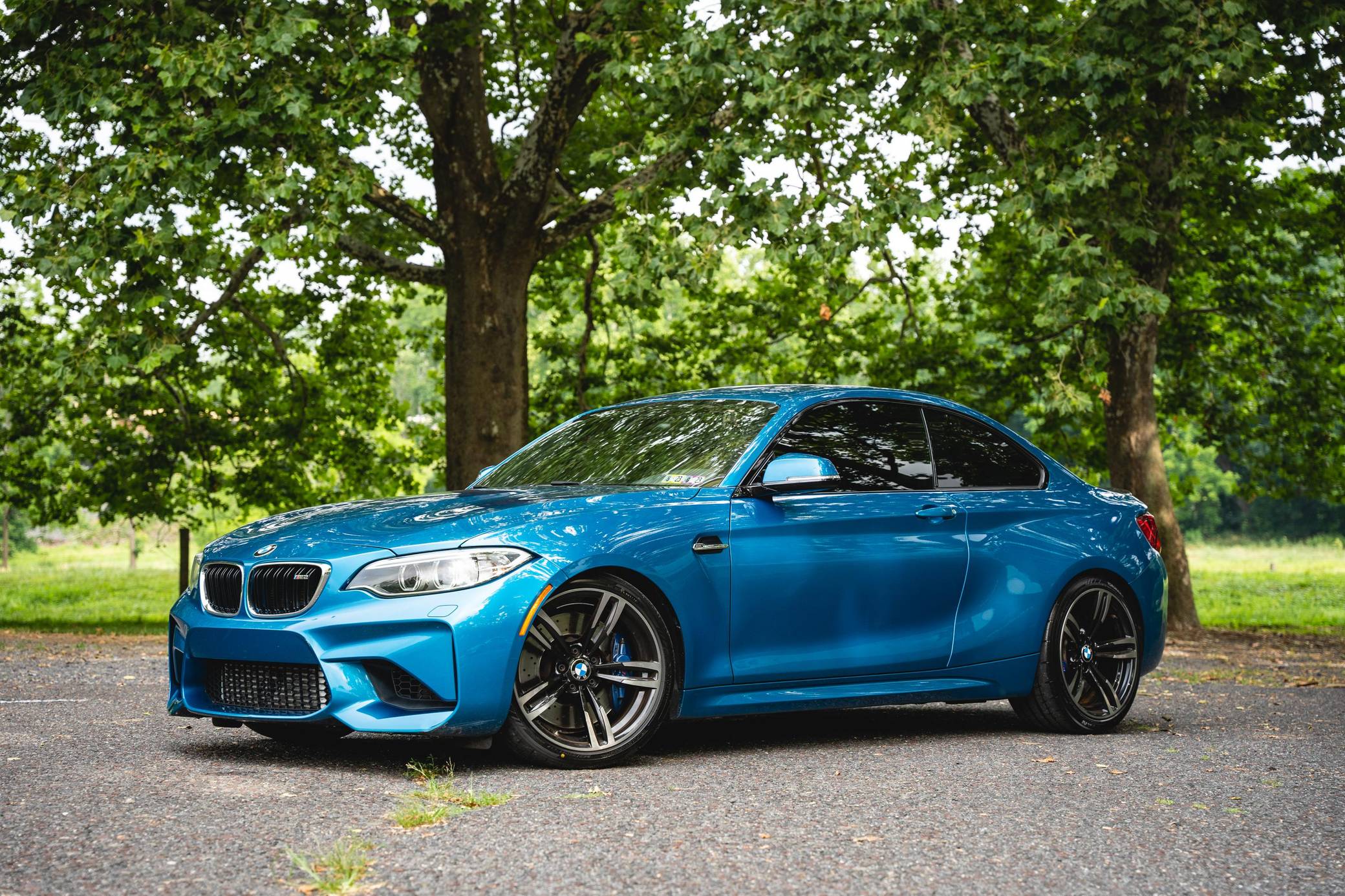 2016 BMW M2, finished in Long Beach Blue Metallic with a black interior. This M2 is equipped with the desirable 6-speed manual transmission. The full list of modifications reported by the seller is detailed below. include Dinan Stage 2 performance engine software, a Dinan "Big Turbo" kit, a Dinan upgraded fuel pump, and Bilstein B16 PSS10 coilovers. BMW introduced the F87 M2 for the 2016 model year as a high-performance evolution of the "F22"-generation 2 Series. Developed to replace the vaunted 1 Series M Coupe, it was celebrated as one of BMW M's greatest modern hits. It stood out from the 2 Series thanks to a more powerful engine, a revised chassis, M-specific suspension with aluminum components, and a more muscular-looking exterior design. Power comes from a turbocharged "N55" 3. 0-liter straight-6 engine, rated at 365 horsepower and 343 lb-ft of torque in stock form. According to a dyno sheet pictured in the gallery, the modifications increase those figures to 391 and 410 respectively, at the wheels. Output is sent to the rear wheels via a 6-speed manual transmission.