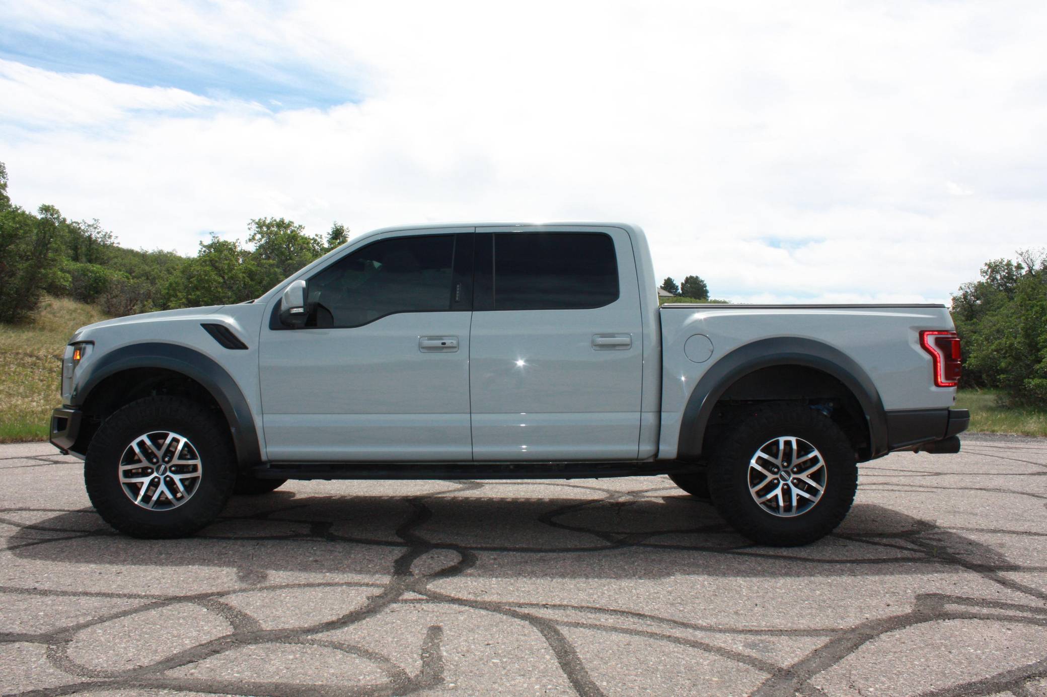 2017 Ford F-150 Raptor, finished in Avalanche with a black interior. Factory equipment includes Fox shocks, leather upholstery, heated and cooled front seats, pro trailer backup assist, remote start, navigation, and a Sony premium audio system. Additional equipment is detailed below. Modifications made to this Raptor include an Air Lift air suspension system and a tonneau bed cover. Designed to speed across the desert, Baja racing-style, the second-generation F-150 made its debut for the 2017 model year with an impressive list of off-road hardware and more horsepower from a downsized, twin-turbocharged V6 engine. It weighed about 500 pounds less than its predecessor thanks in part to the widespread use of aluminum. Power comes from an "EcoBoost" 3. 5-liter turbocharged V6, rated at 450 horsepower and 510 lb-ft of torque. Output is sent to the rear or all four wheels via a 10-speed automatic transmission.