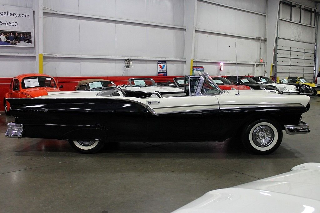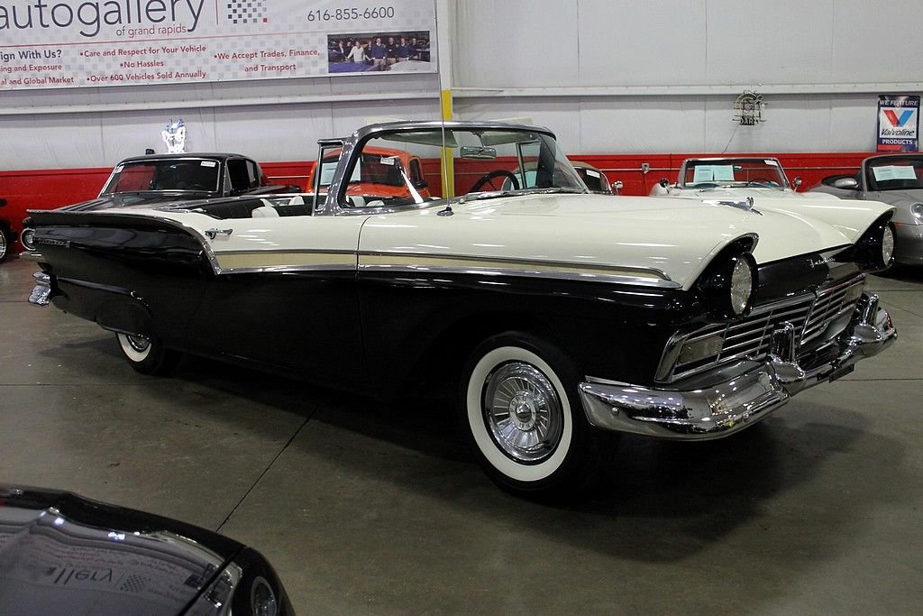 One of the coolest classics ever made looks like a classic mid 50's poodle skirt cruiser, but it's more than that. This is the first mass produced retractable hardtop convertible ever made. It takes the top, folds just a part of the front of the roof, and retracts the piece under the lid of the trunk. It uses three roof drive motors driving four lift jacks, four door-lock motors, ten solenoids, four locking mechanisms, and 610ft of wiring. While having the top down renders the trunk almost completely useless, the top mechanics are actually surprisingly reliable considering how much is at work. This is one of those great classics that truly stand out from the rest. This is a '57 Ford Fairlane with a working retractable convertible hardtop in excellent condition. It's restored to near stock specifications and is a great surviving classic. It's powered by the 292ci Thunderbird V8 paired with an automatic transmission. It has original wheels, original dash, and the original steering wheel giving it the great true classic feel for shows. This car has recently been serviced and it runs and drives great. Few cars garner more attention than these rarely found Skyliner's.