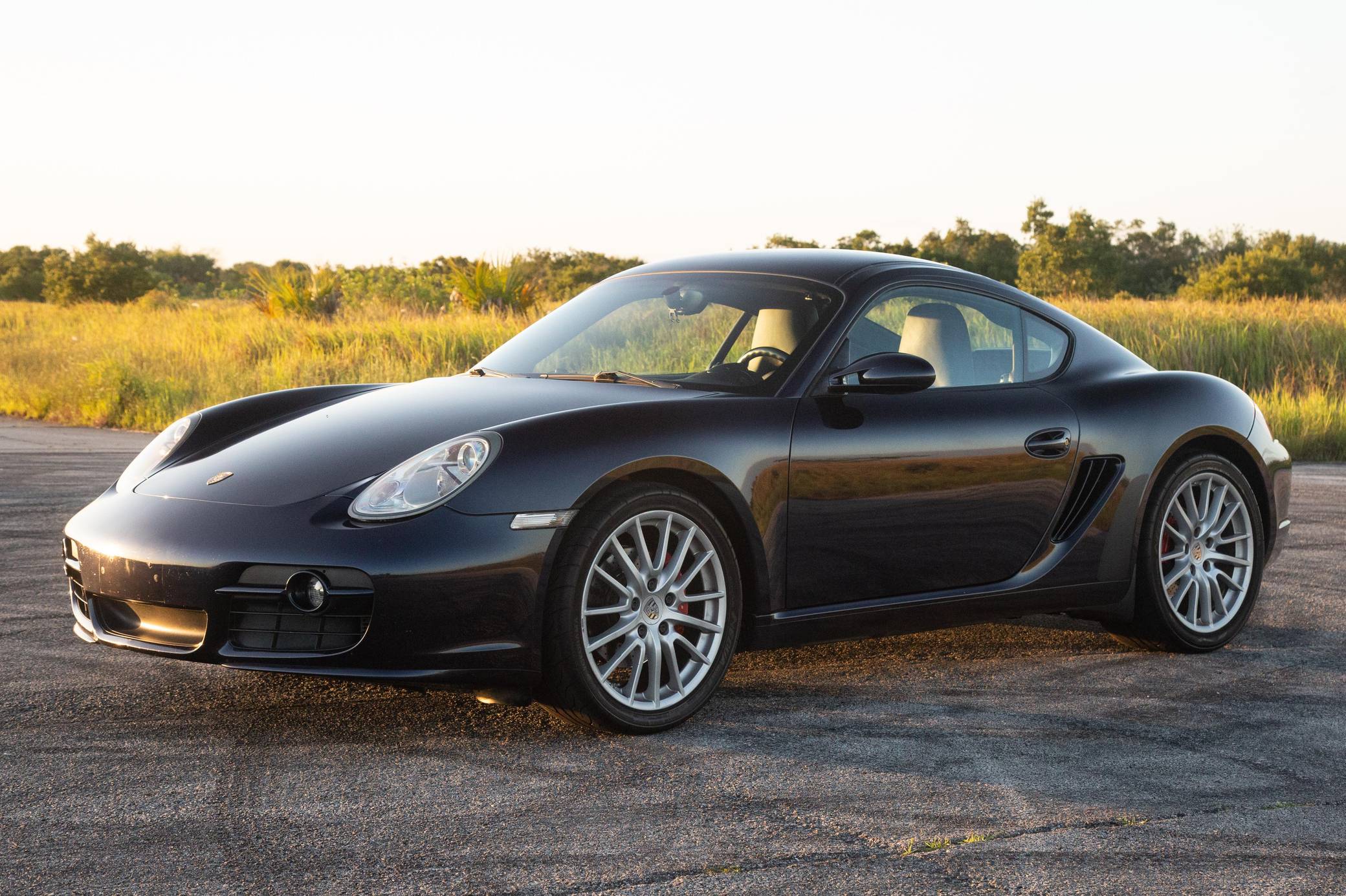 THIS… is a 2007 Porsche Cayman S, finished in Midnight Blue Metallic with a Sea Blue interior. This Cayman S features the desirable 6-speed manual transmission. According to the Monroney Label provided in the gallery, this Cayman S has an original MSRP of $65,445. Factory equipment includes 19-inch Sport Design wheels, leather upholstery, auto-dimming mirrors, rain-sensing windshield wipers, and a speed-dependent rear spoiler. Modifications include a Circuit Werks catless exhaust system, a GT3 front sway bar, stainless steel brake lines, and Focal speakers. A full list of modifications is detailed below. Porsche introduced the Cayman for 2006 and immediately threw the automaker's entire hierarchy into question. Taking the Boxster's compact mid-engine layout and adding a fixed roof to the chassis made the "987" Cayman the most balanced Porsche available, and engineers were forced to keep engine output low enough to not threaten the 911 Carrera's dominance. Power comes from a 3. 4-liter flat-6 engine, rated at 295 horsepower and 251 lb-ft of torque. Output is sent to the rear wheels via a 6-speed manual transmission.
