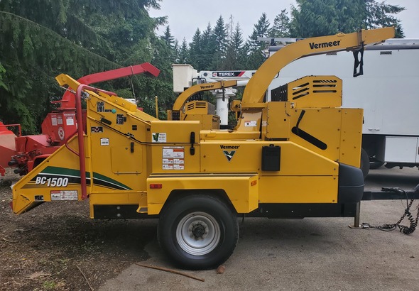 2016 Vermeer BC1500XL Wood Chipper, Capacity 15in self-feeding drum. After having the machine for only one and a half years an oil hose broke. The oil all drained out while the chipper was running, due to this the engine failing Vermeer stood behind their factory warranty and put a brand new engine in it at Cummins, 130HP Cummins turbo diesel. The current engine and computer board have only 444 hours on it. Everything else works great and this machine is ready to work.