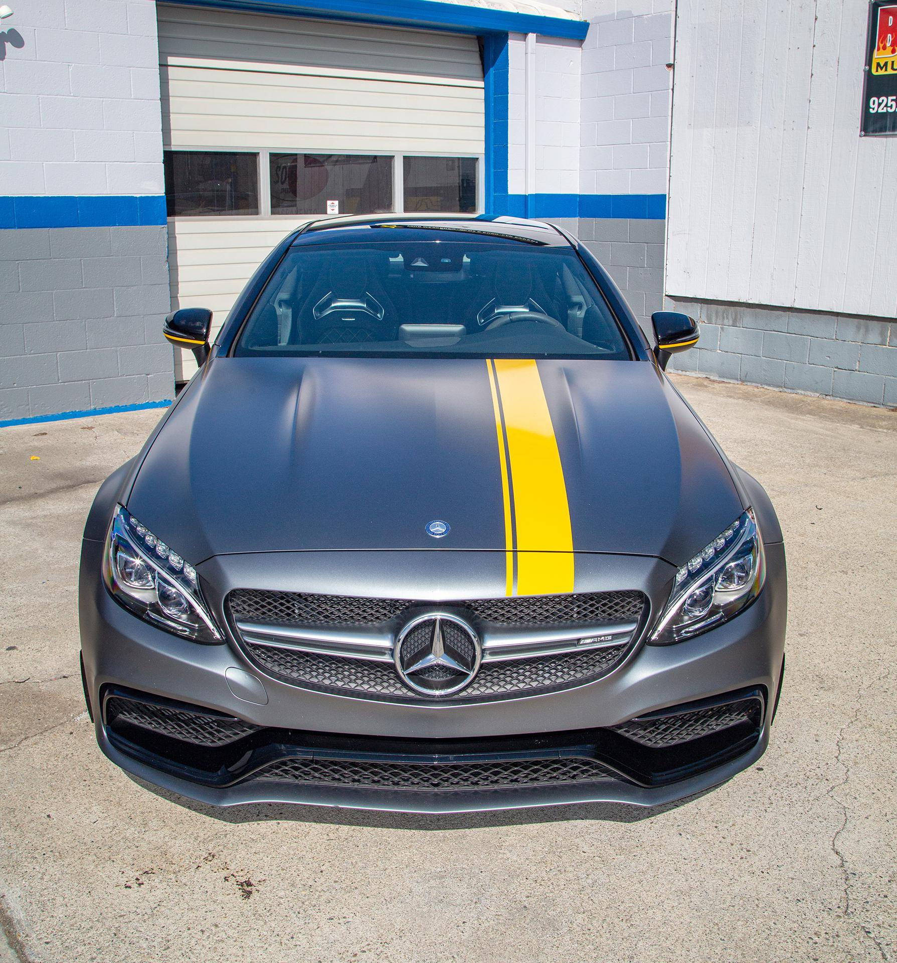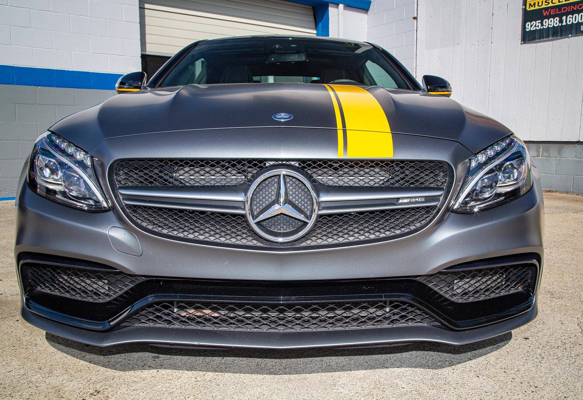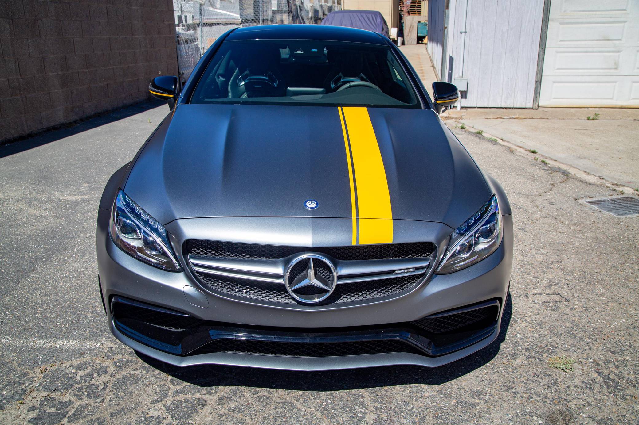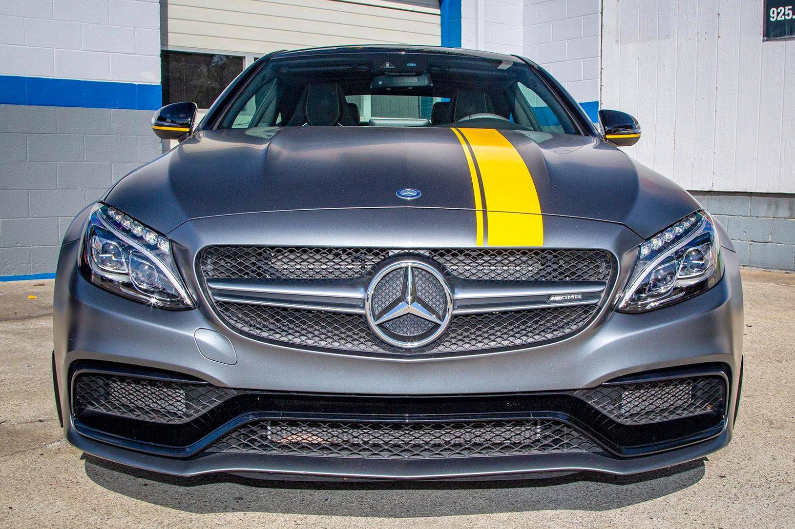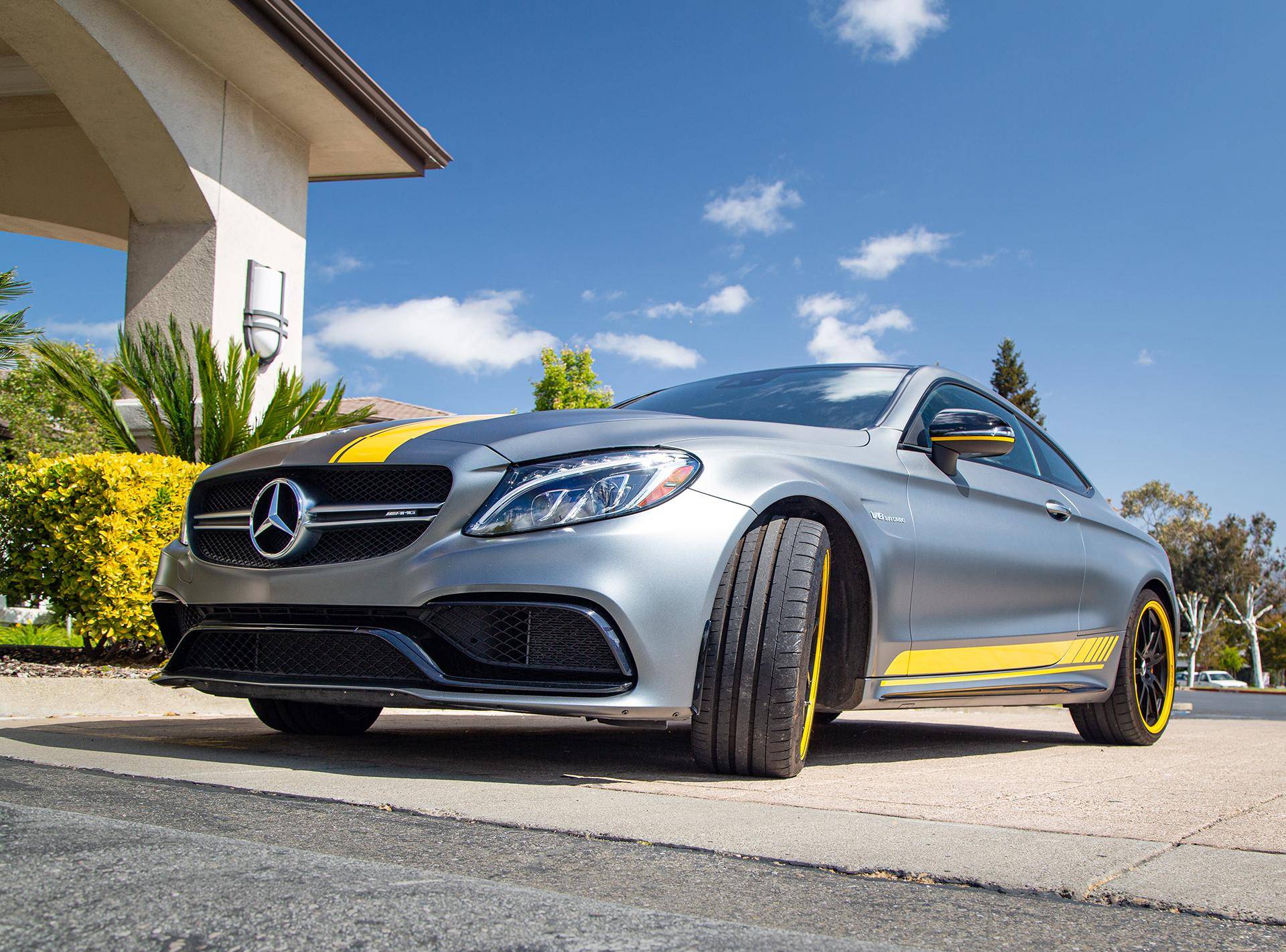 2017 Mercedes-AMG C63 S Coupe, finished in Designo Selenite Grey Magno with a black interior. This coupe's odometer displays about 25,500 miles. It's equipped with the Edition 1 package, dynamic engine mounts, LED exterior lighting, a panoramic sunroof, matte carbon fiber interior trim, AMG performance front sport seats, and a Burmester surround sound system. Mercedes-AMG introduced the "W205"-based C63 for the 2015 model year, shortly after it morphed into a sub-brand within Mercedes-Benz. Offered as a sedan and as a coupe, the C63 surfed the downsizing wave sweeping across the industry by trading displacement for forced induction, yet it was quicker and sharper to drive than its predecessor. Production ended in 2021, and Mercedes-AMG has confirmed that it won't build another V8-powered C63. Power comes from a 4. 0-liter twin-turbocharged V8, rated at 503 horsepower and 516 lb-ft of torque. The engine spins the rear wheels via a 7-speed automatic transmission.