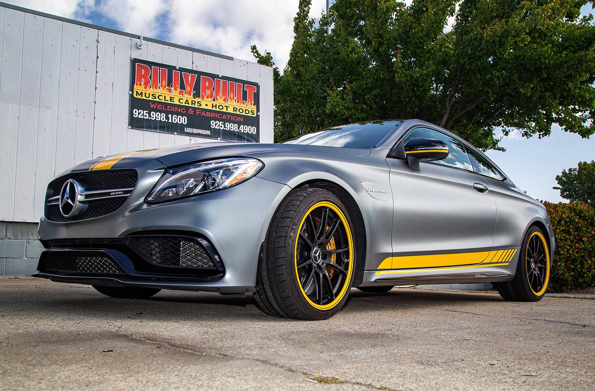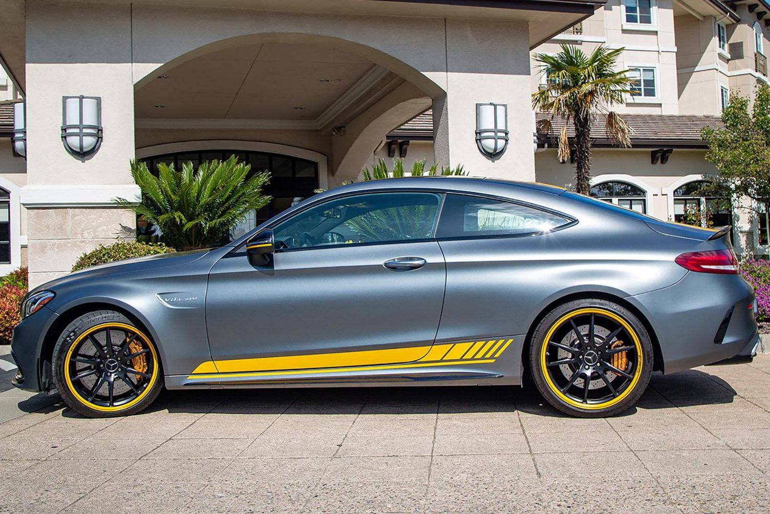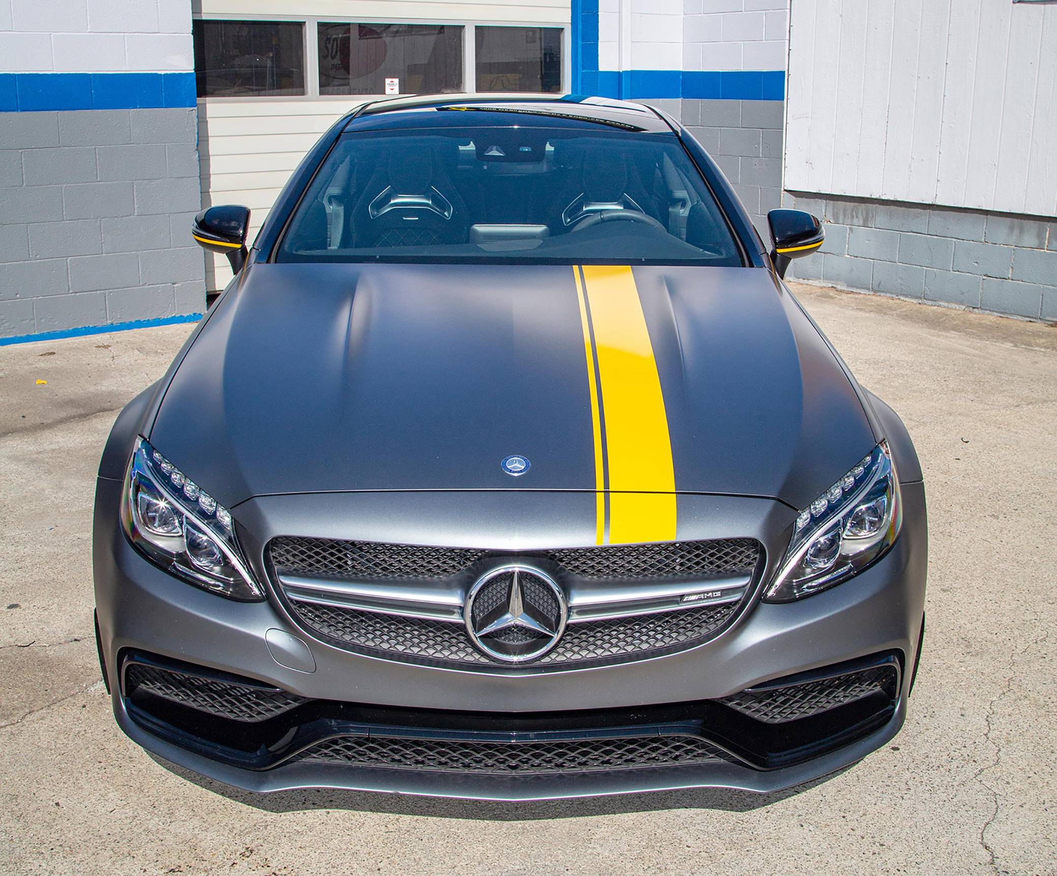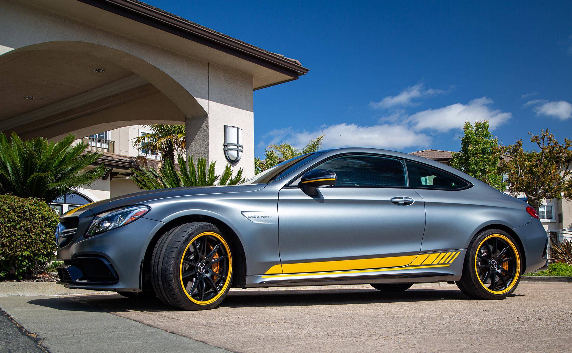 2017 Mercedes-AMG C63 S Coupe, finished in Designo Selenite Grey Magno with a black interior. This coupe's odometer displays about 25,500 miles. It's equipped with the Edition 1 package, dynamic engine mounts, LED exterior lighting, a panoramic sunroof, matte carbon fiber interior trim, AMG performance front sport seats, and a Burmester surround sound system. Mercedes-AMG introduced the "W205"-based C63 for the 2015 model year, shortly after it morphed into a sub-brand within Mercedes-Benz. Offered as a sedan and as a coupe, the C63 surfed the downsizing wave sweeping across the industry by trading displacement for forced induction, yet it was quicker and sharper to drive than its predecessor. Production ended in 2021, and Mercedes-AMG has confirmed that it won't build another V8-powered C63. Power comes from a 4. 0-liter twin-turbocharged V8, rated at 503 horsepower and 516 lb-ft of torque. The engine spins the rear wheels via a 7-speed automatic transmission.