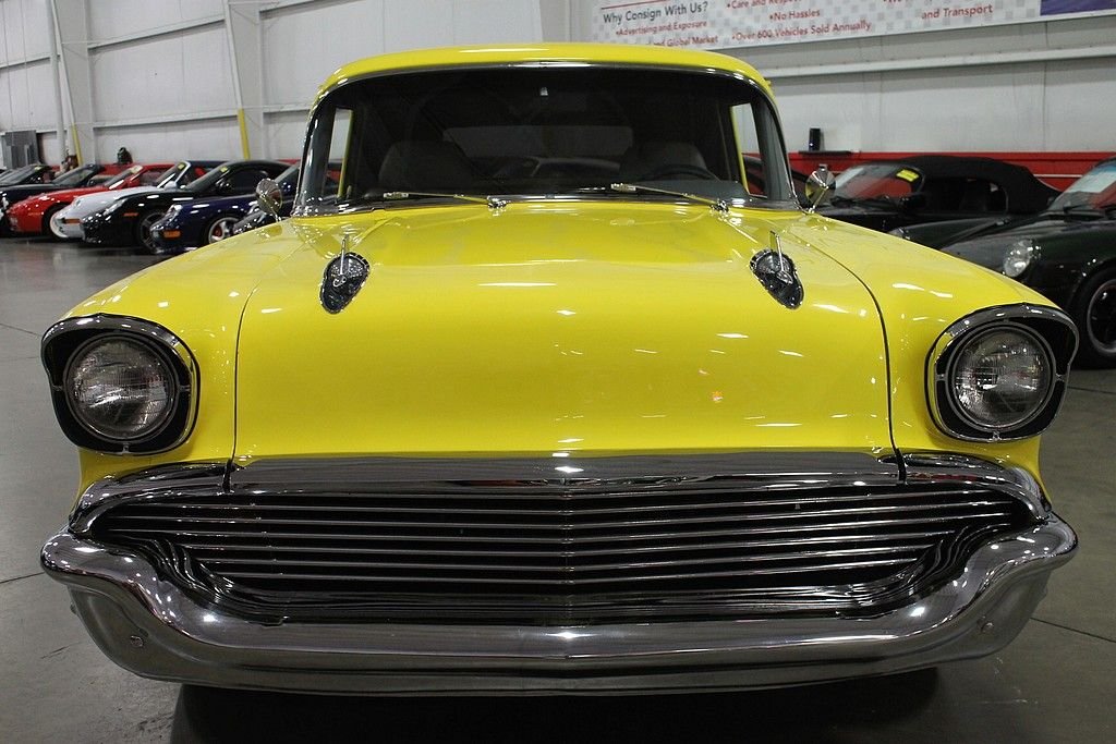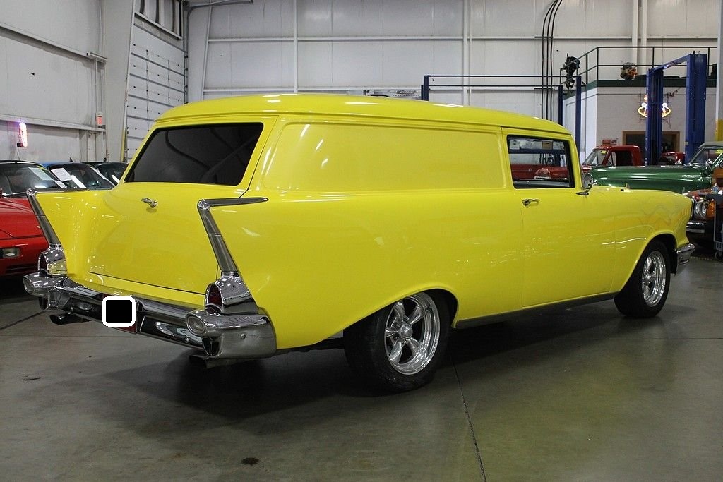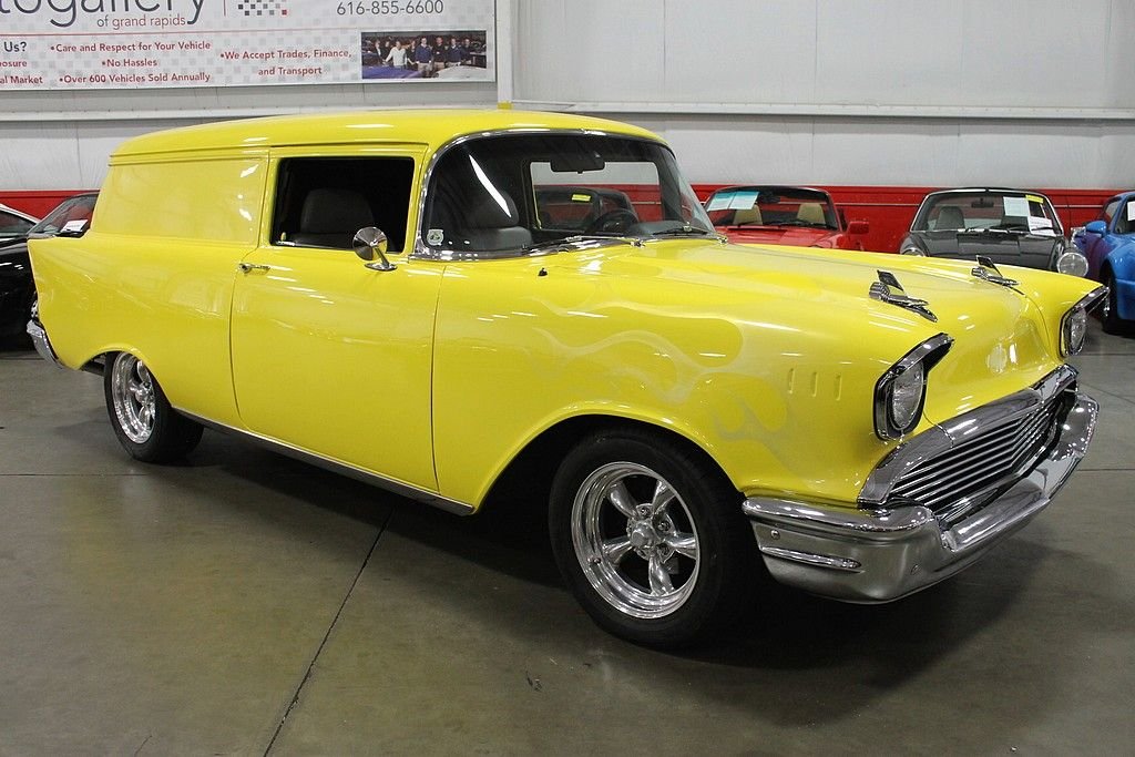 We are pleased to offer this 1957 Chevrolet Sedan Delivery for purchase. The Sedan Delivery is one of the rarest 1950's body styles to still be found on the road. The Sedan Delivery features an upright B pillar unlike the sloped pillar of the Nomad Wagon. The Sedan Delivery is known to turn heads where ever it goes with its classic styling. This fantastic looking car is a result of a full nut & bolt restoration that begun 10 years ago. The frame was sandblasted and resealed to the highest quality. The Siesta Yellow paint looks excellent. The Yellow was off-set with some Pearl in it to prevent the color from being too “loud”. There are very subtle ghost flames on the front end that look different from all angles. This Chevy is powered by a 350 V8 Vortec engine producing 375 horsepower. The transmission is a 700R4 by TCI . There are many impressive features of this car that include: 9” Detroit Locker with 323 gears, 4-wheel disc brakes, Cragar 16” wheels, power lumbar seat, power windows, power door locks with keyless entry, power antenna, heat & air conditioning, cruise control, power steering, power brakes, POSIES rear leaf springs, Z28 Camaro front clip, Dakota digital instruments panel, and a custom dash. This is a really well done professional restoration. This Sedan Delivery has classic 50's looks, but drives & performs like a new vehicle. It has great style and great performance!