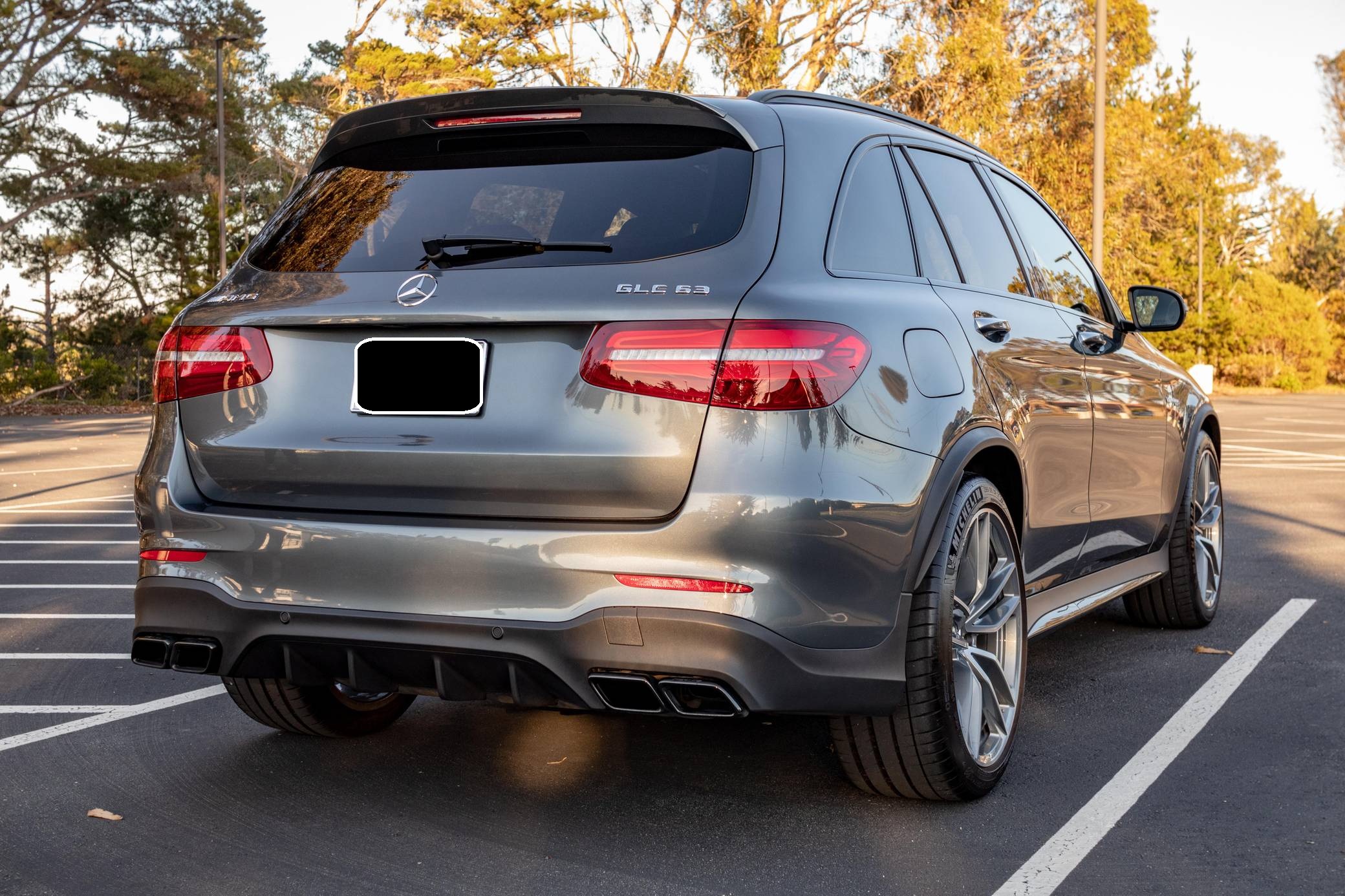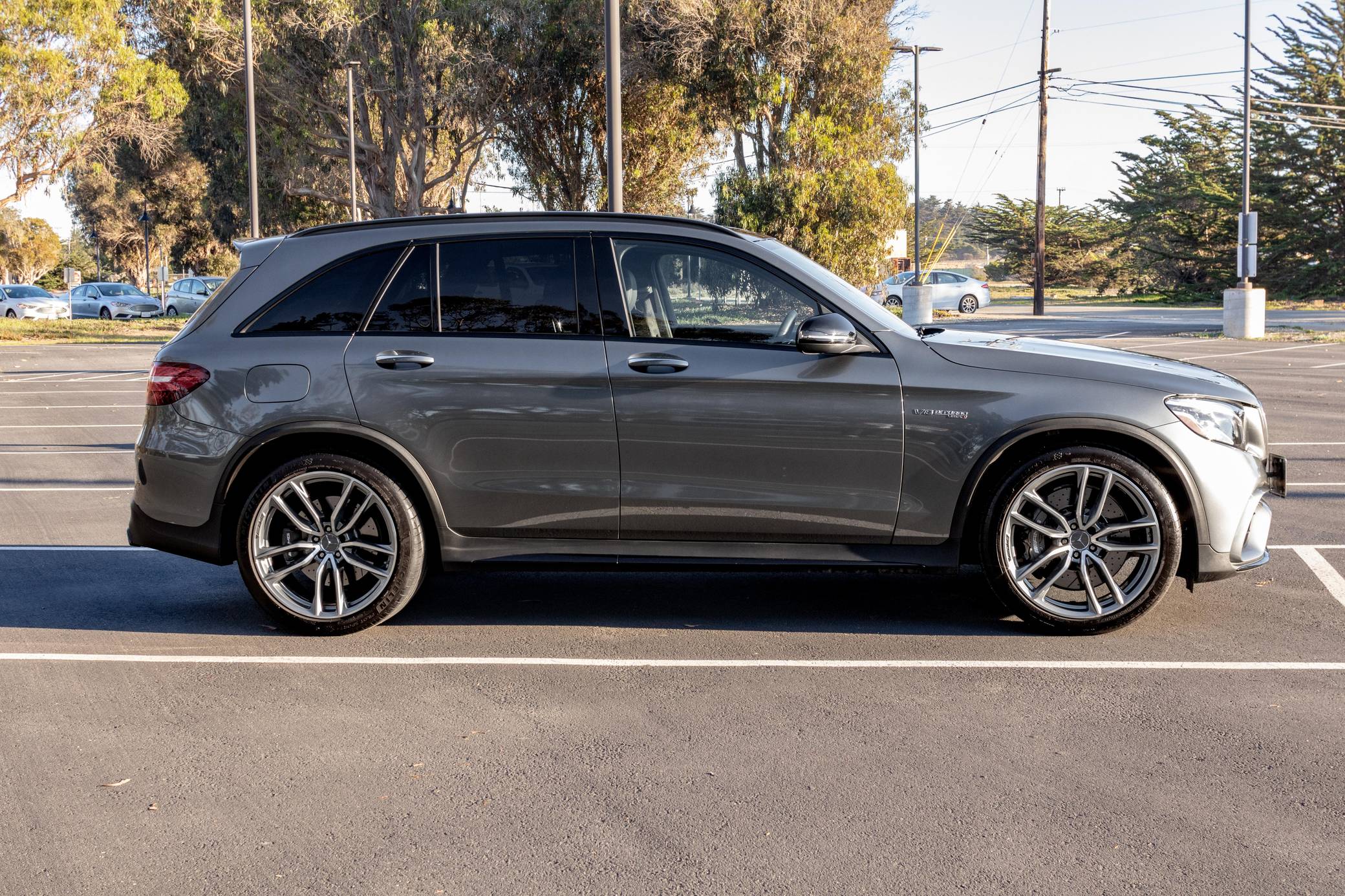 THIS… is a 2018 Mercedes-AMG GLC 63, finished in Selenite Grey Metallic with a Black Nappa interior. The odometer currently displays approximately 19,100 miles. Factory equipment includes the Multimedia Package, the AMG Night Package, 21-inch AMG wheels, a panorama roof, heated and ventilated seats, and more as detailed below. The seller reports no modifications. Mercedes-AMG introduced the GLC 63 in North America for the 2018 model year as the fastest variant of their mid-size SUV, featuring a hand-crafted turbocharged V8 under the hood. As a result, 0 to 60mph comes in just 3. 8 seconds. Features like the Panamericana front grille, model-specific bumpers, side sills, wider wheel arch cladding, and quad exhaust tips further distinguish the GLC 63 from its less potent siblings. Power comes from an "M177" 4. 0-liter twin-turbocharged V8, rated at 469 horsepower and 479 lb-ft of torque. Output is sent to all four wheels via a 9-speed automatic transmission and an AMG Performance 4MATIC+ all-wheel-drive system.